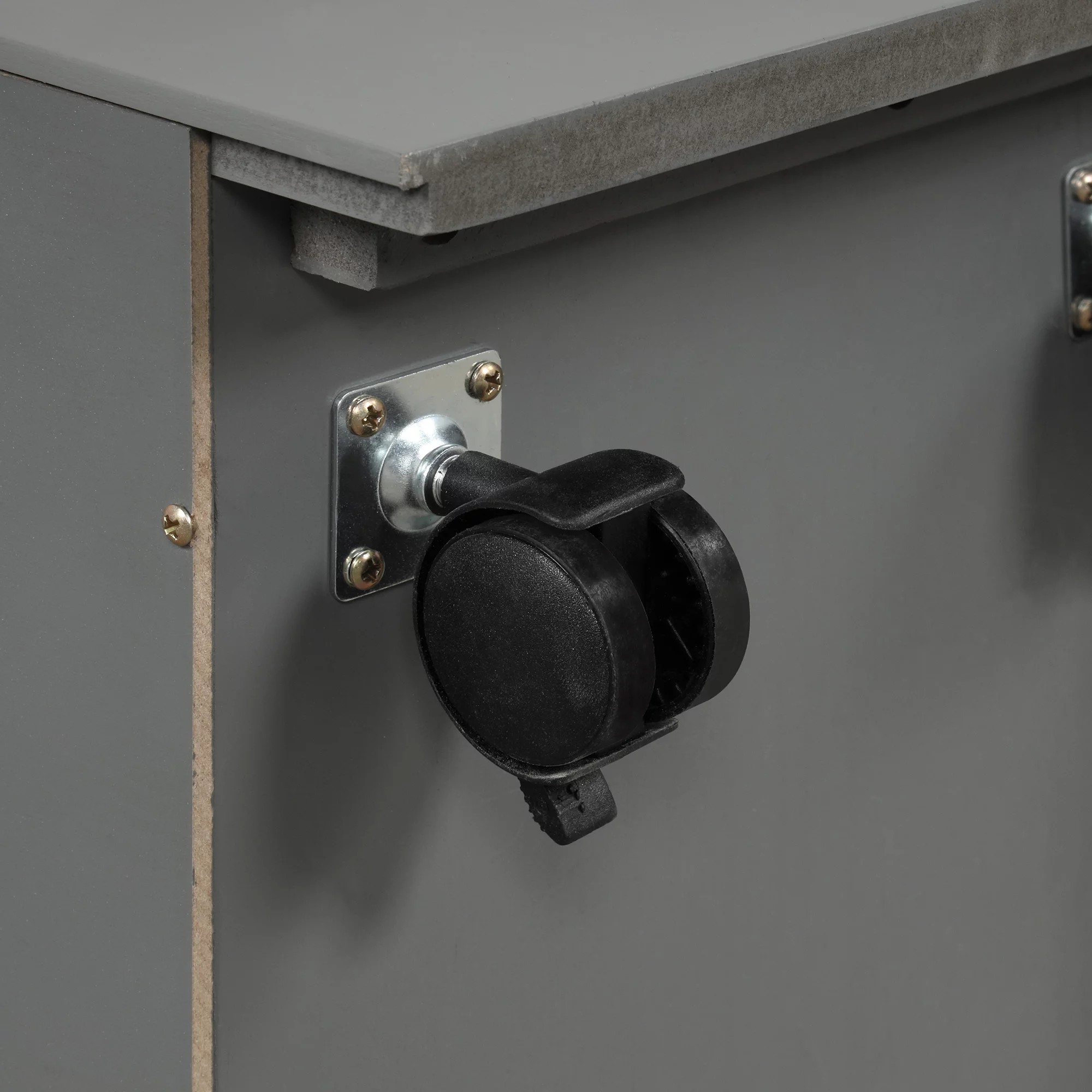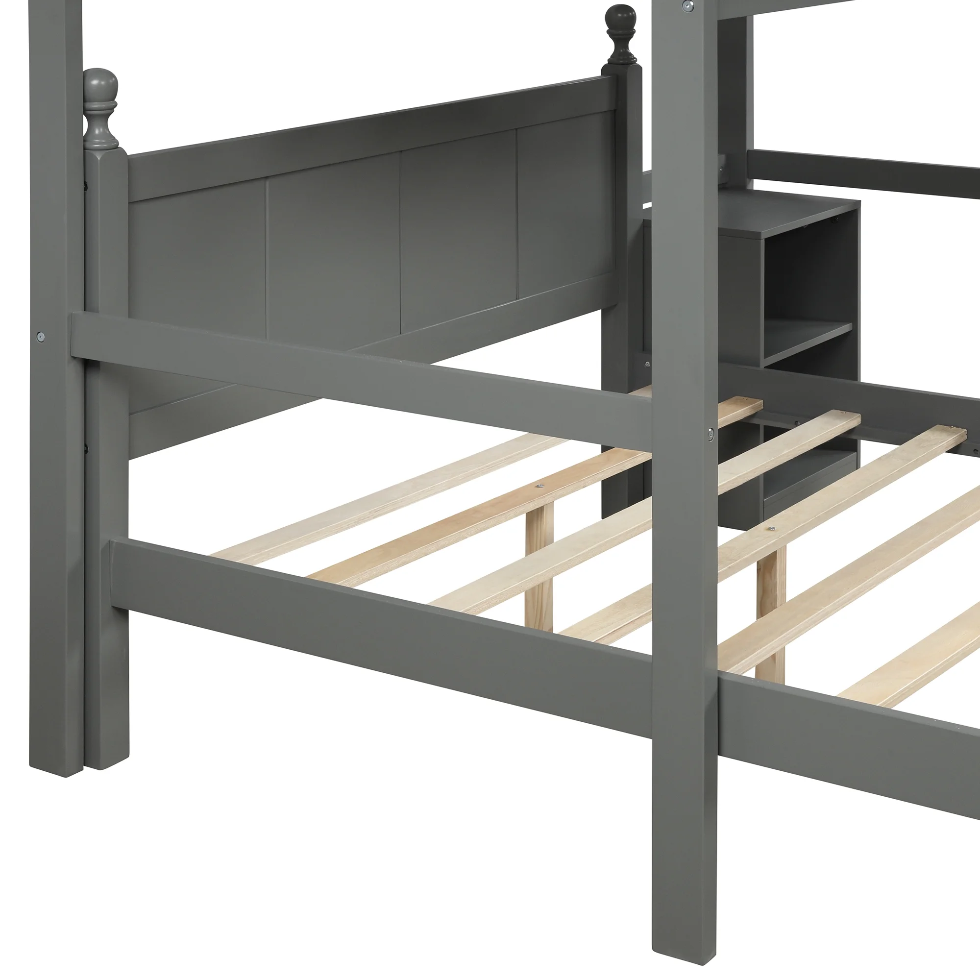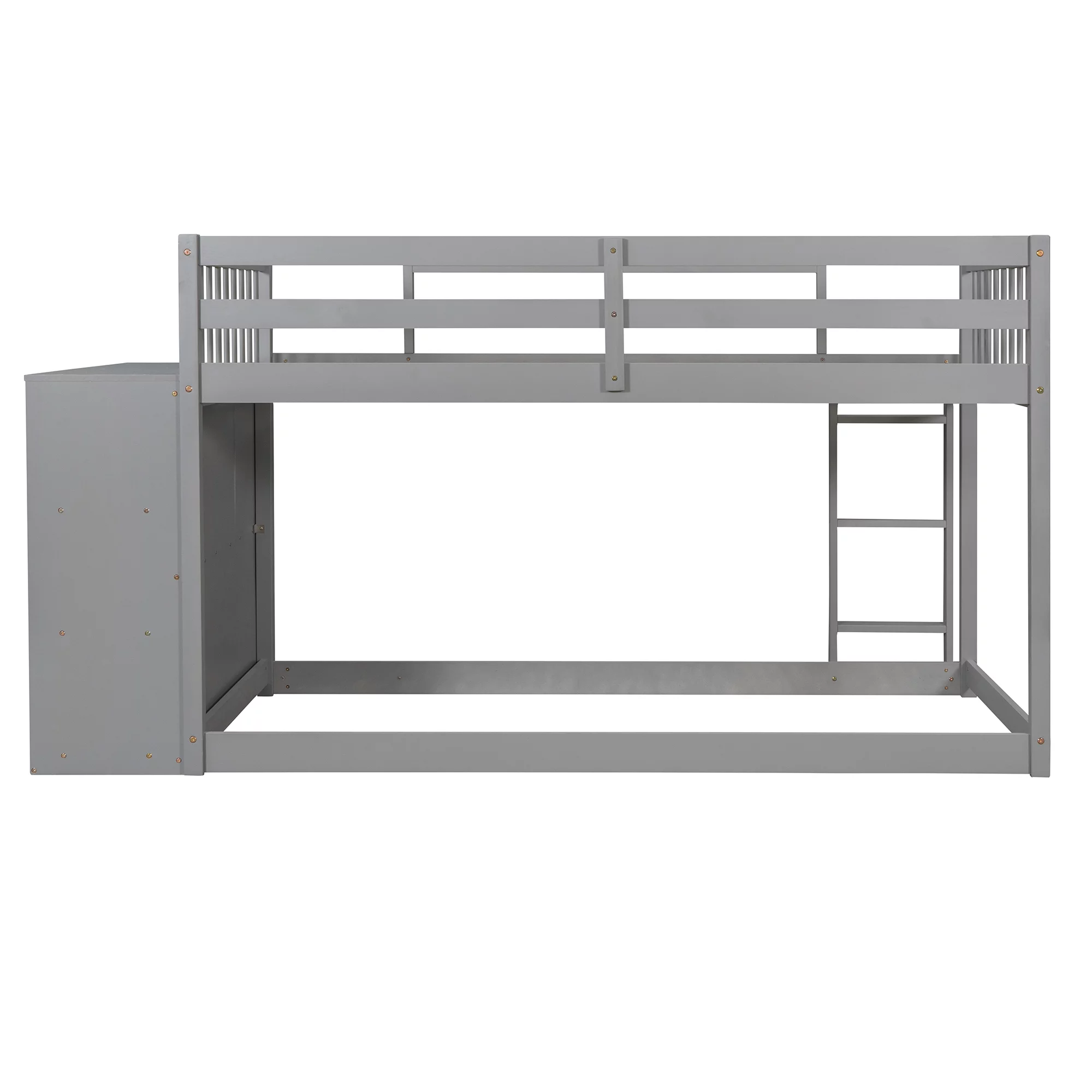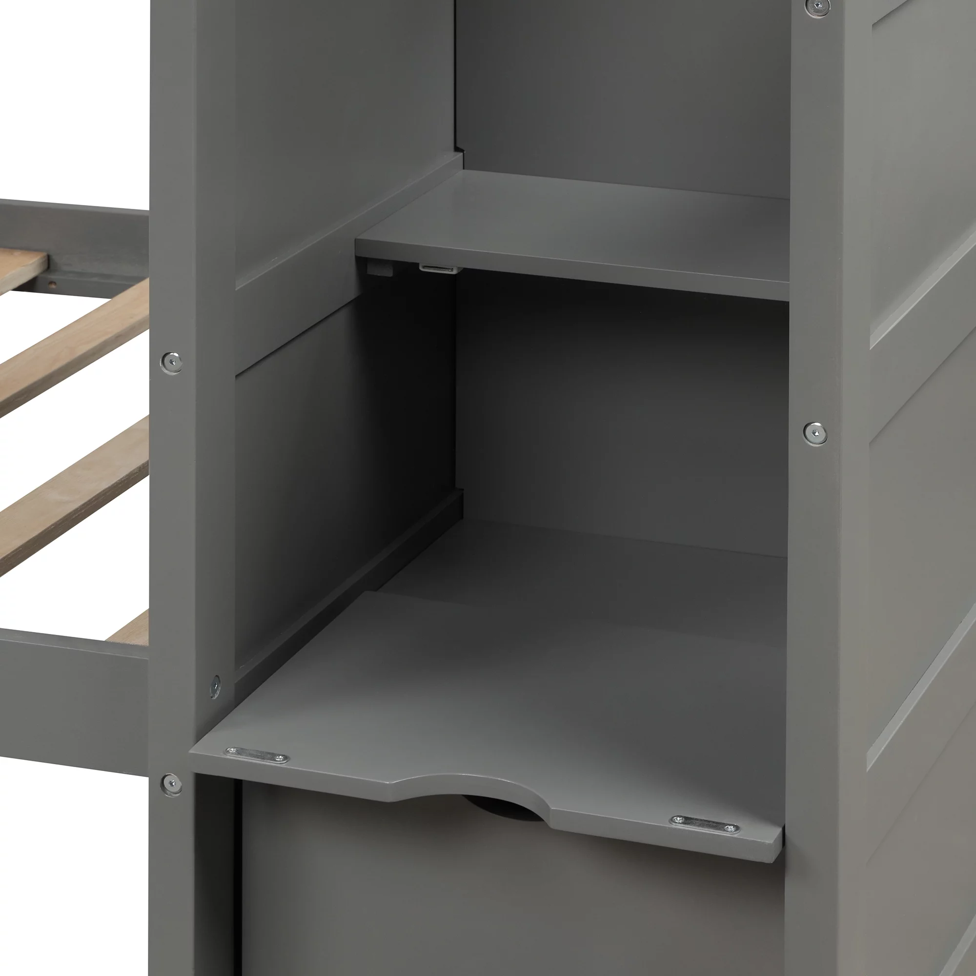 Euroco Wood Twin over Full Bunk Bed with Storage Cabinet for Kids' Room, Gray
