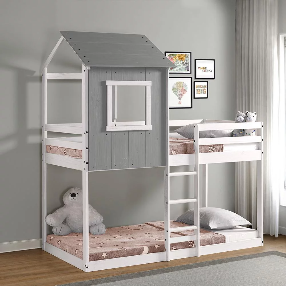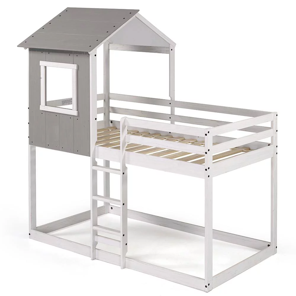 P'kolino Twin over Twin Tree House Low Bunk Bed - Rustic Dark Gray with White Frame