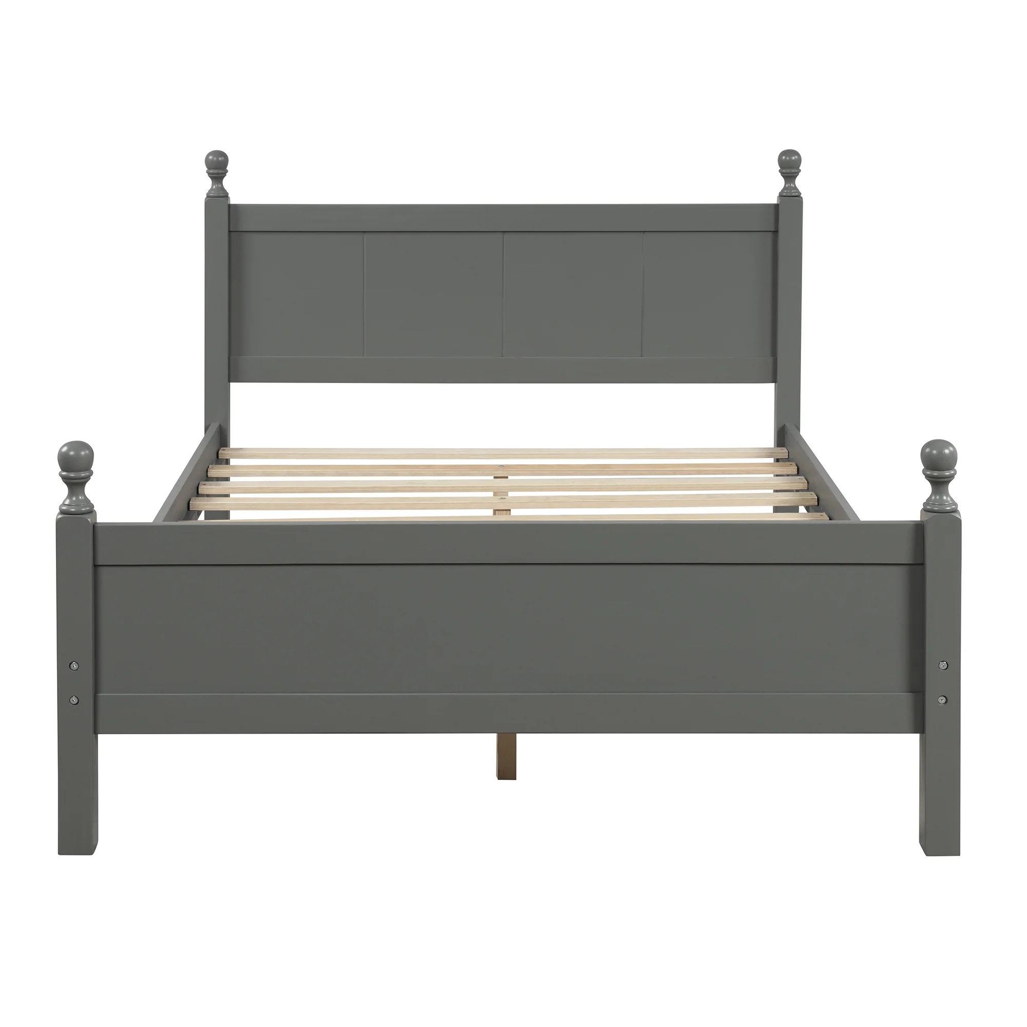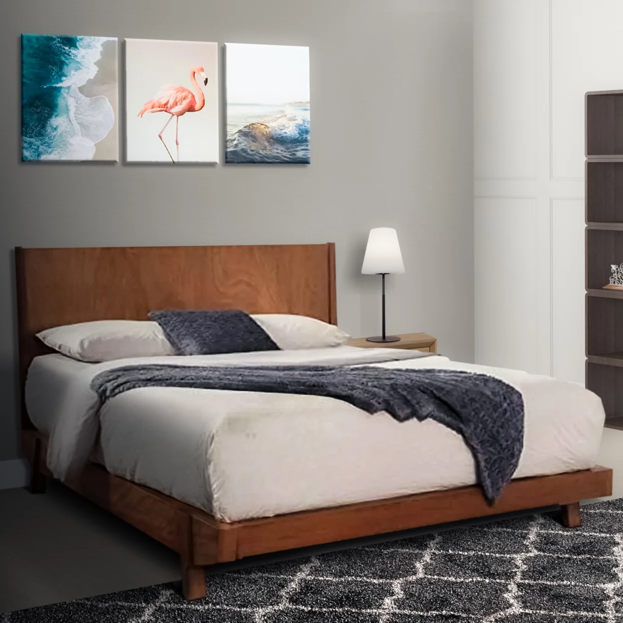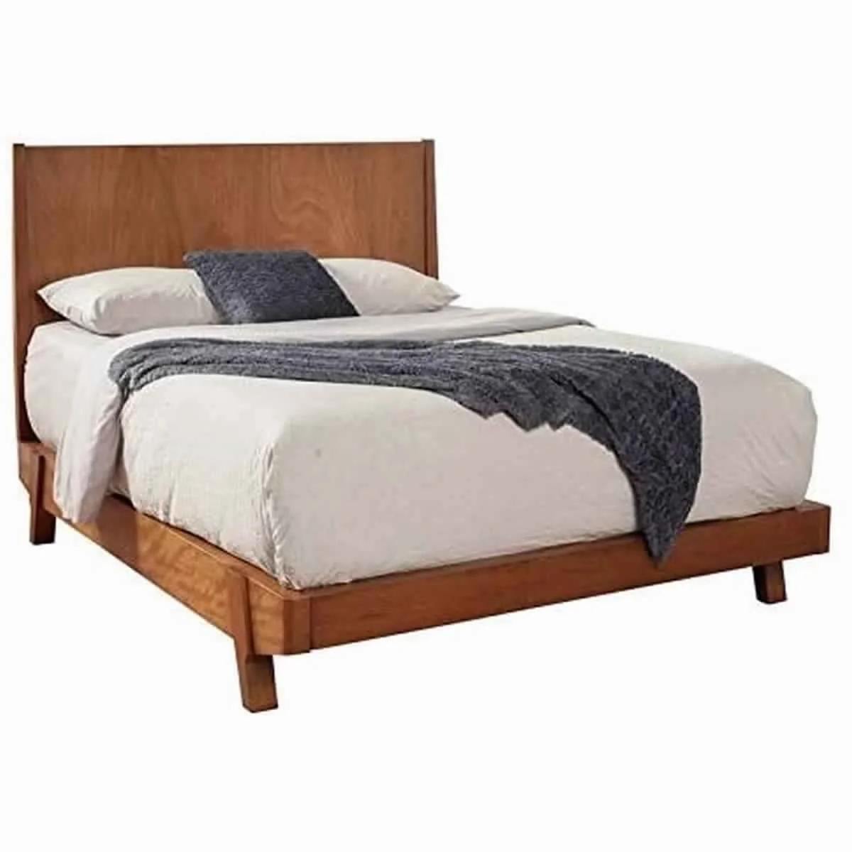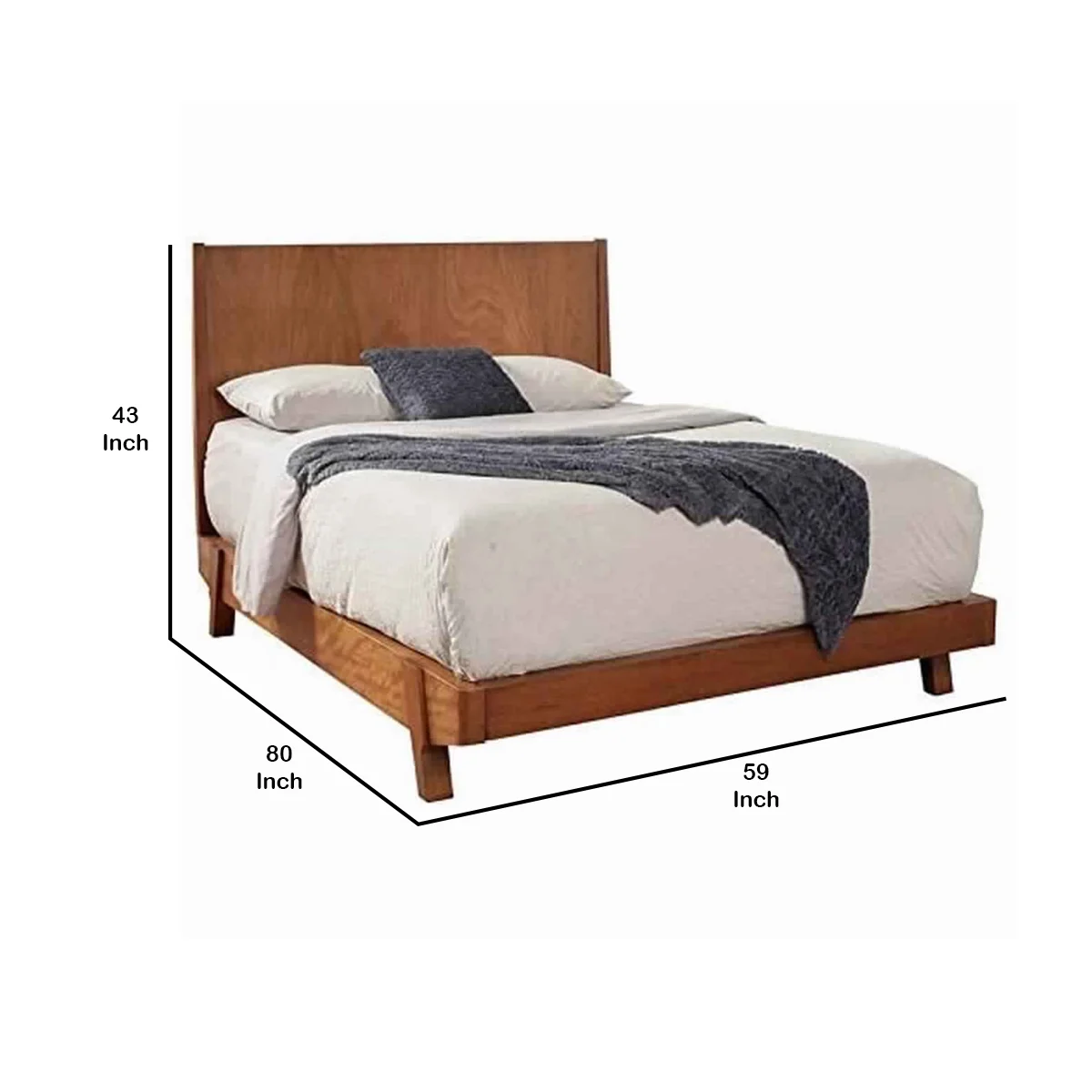 Full Platform Bed with Angled Block Legs and Grain Details Brown- Saltoro Sherpi