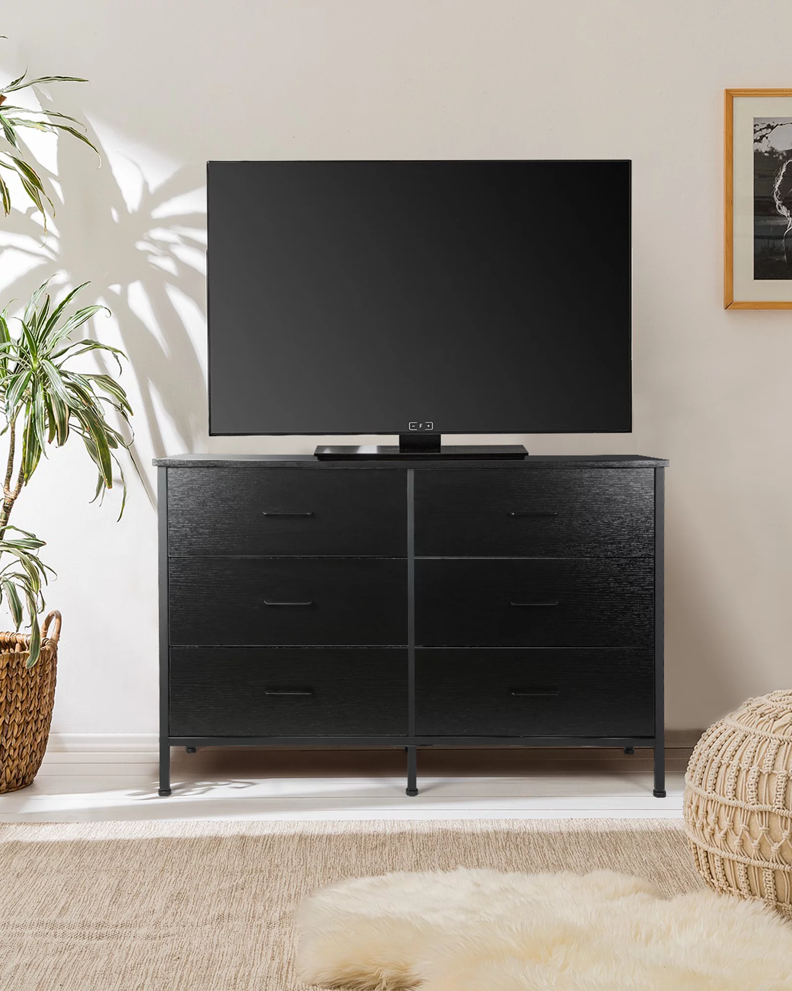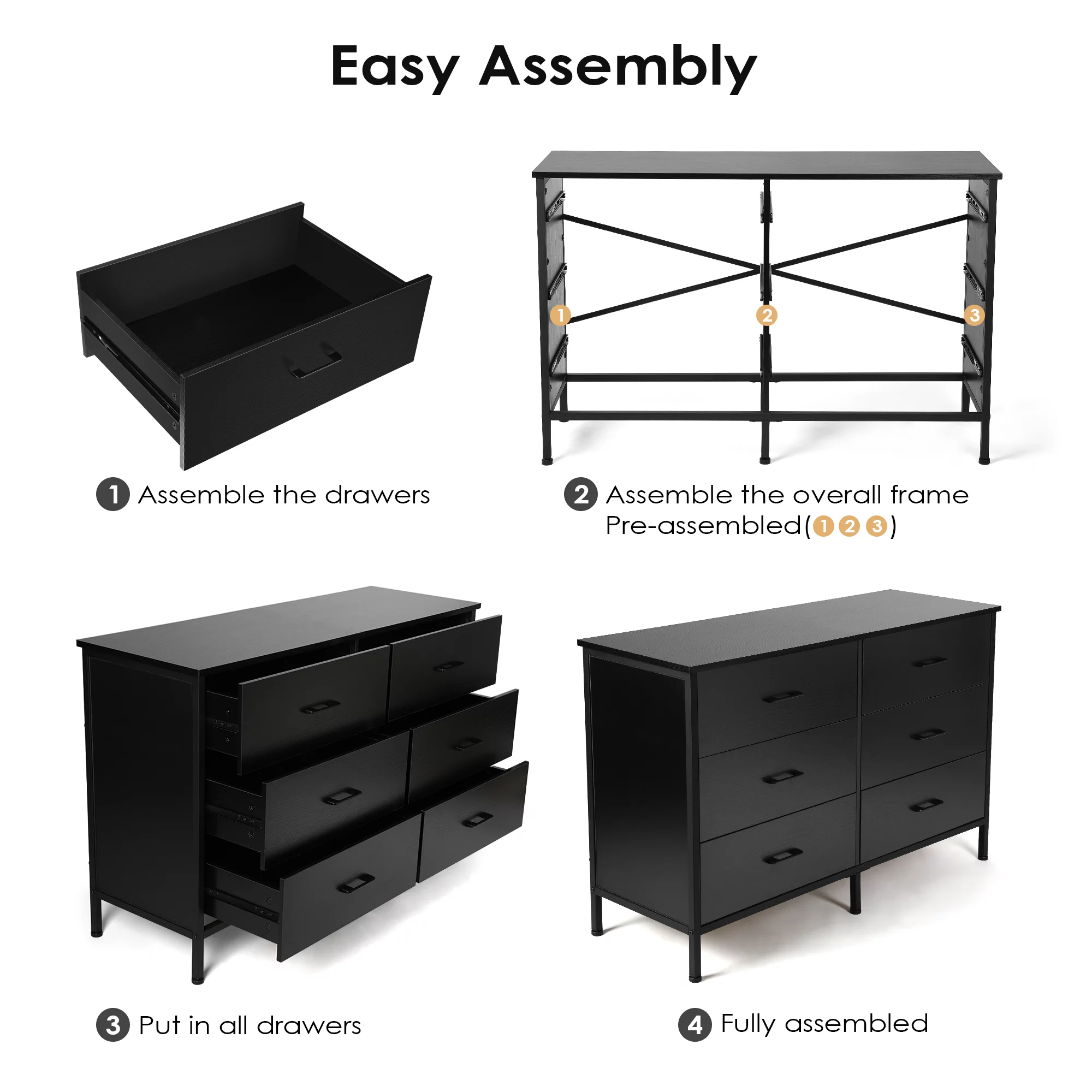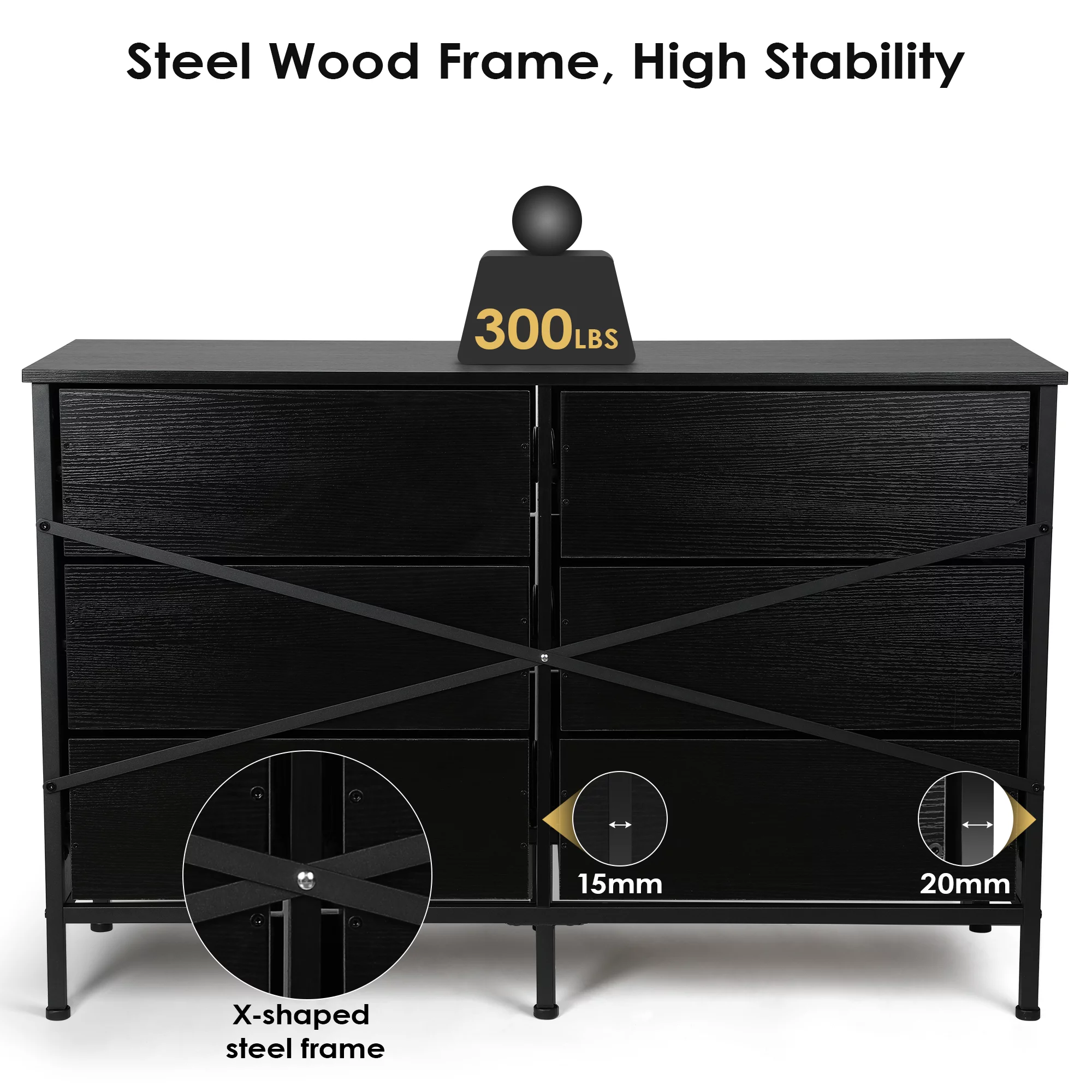 Richya 47.3'' Drawer Dresser Chest of 6 Drawers for Bedroom, Steel Frame, Black Storage Cabinet