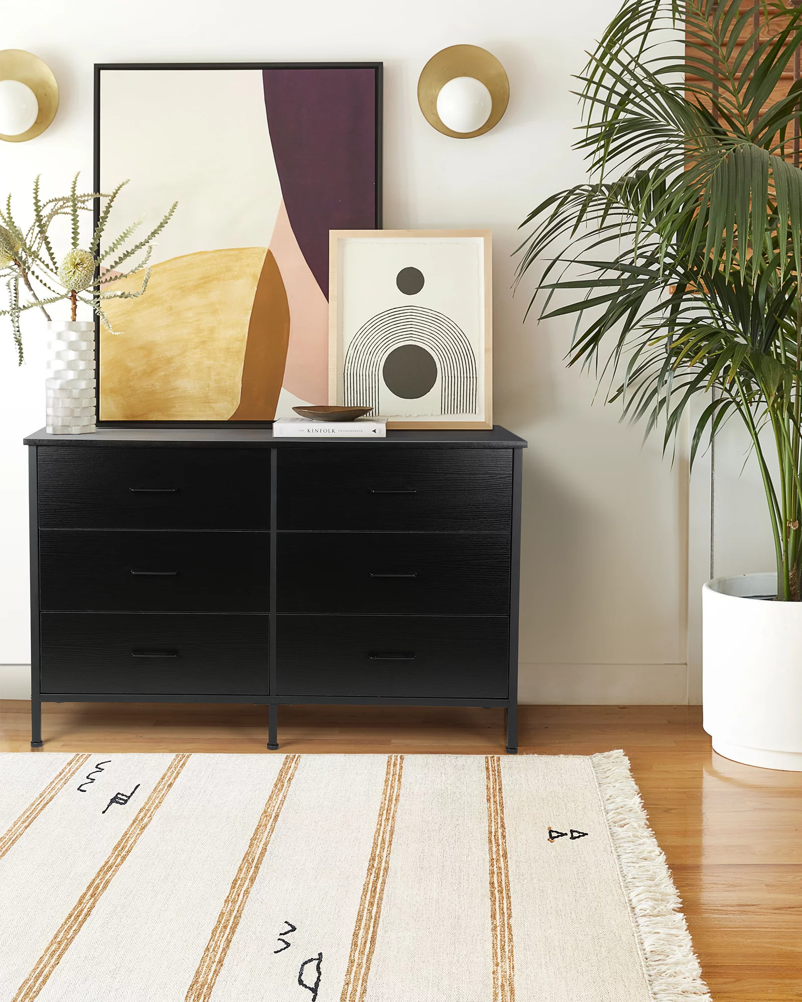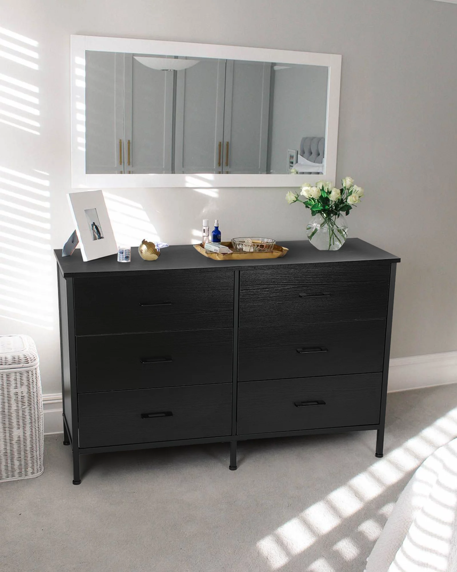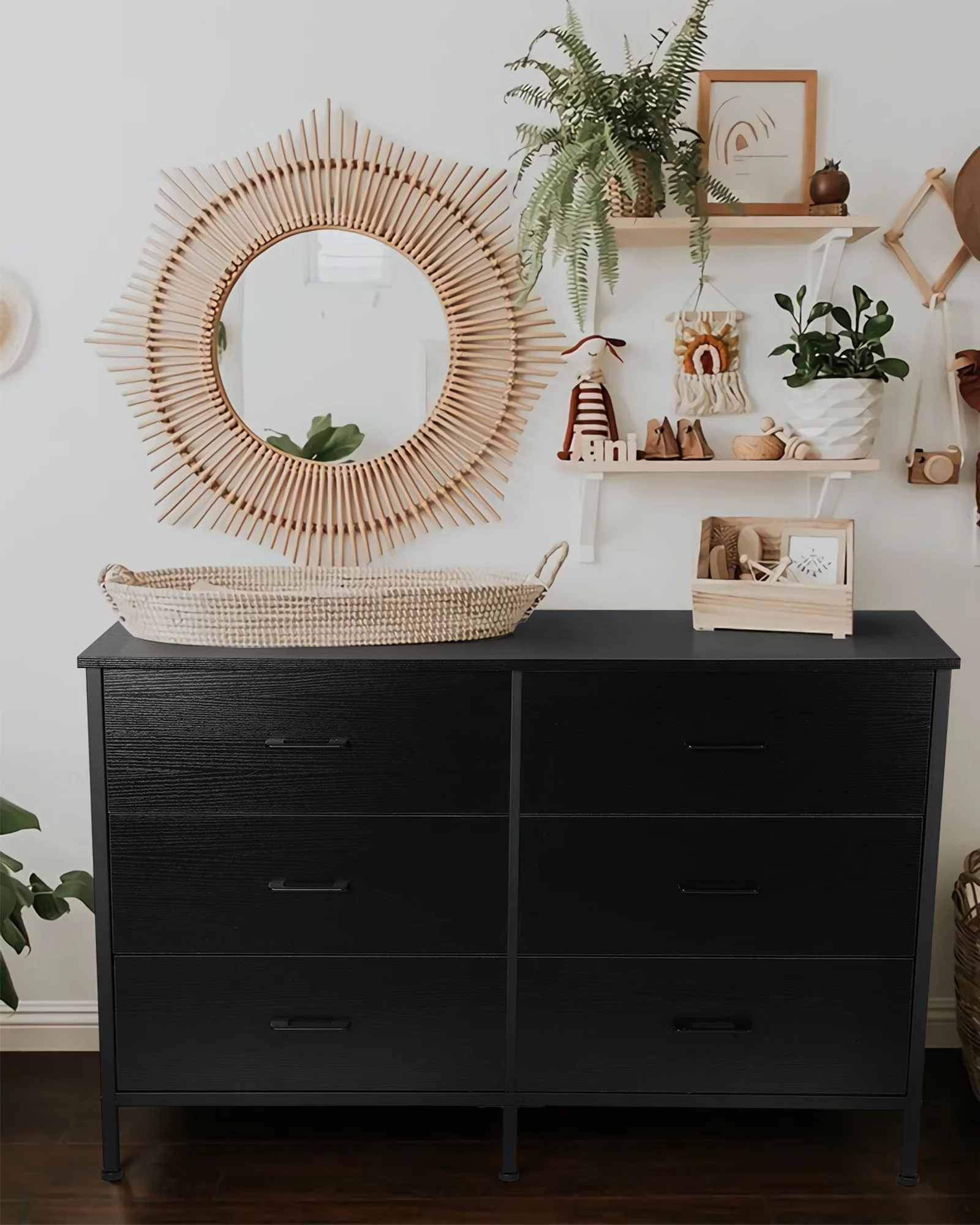 Richya 47.3'' Drawer Dresser Chest of 6 Drawers for Bedroom, Steel Frame, Black Storage Cabinet