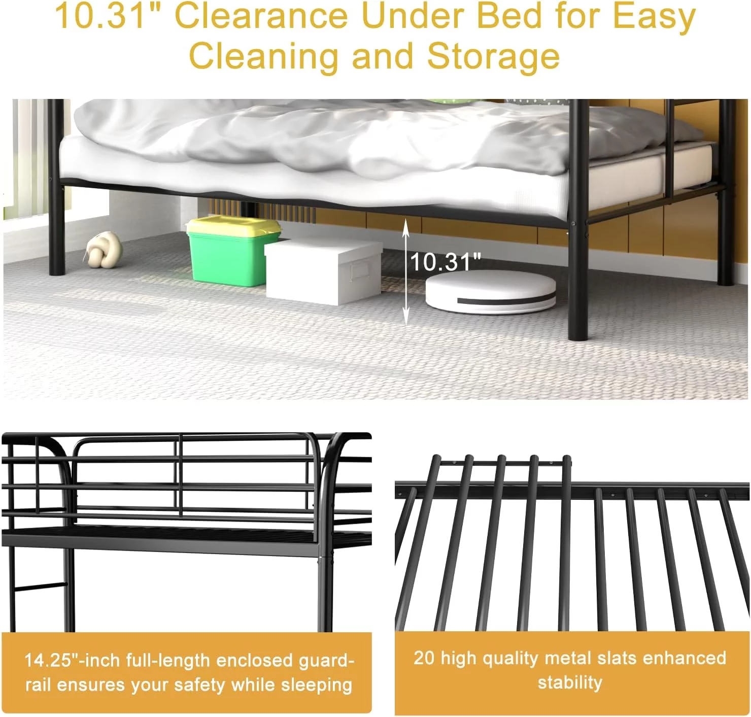 GoDecor Twin Metal Bunk Beds,Bunk Beds Frame Ladder Bedroom Dorm for Kids/Adult/Children,White
