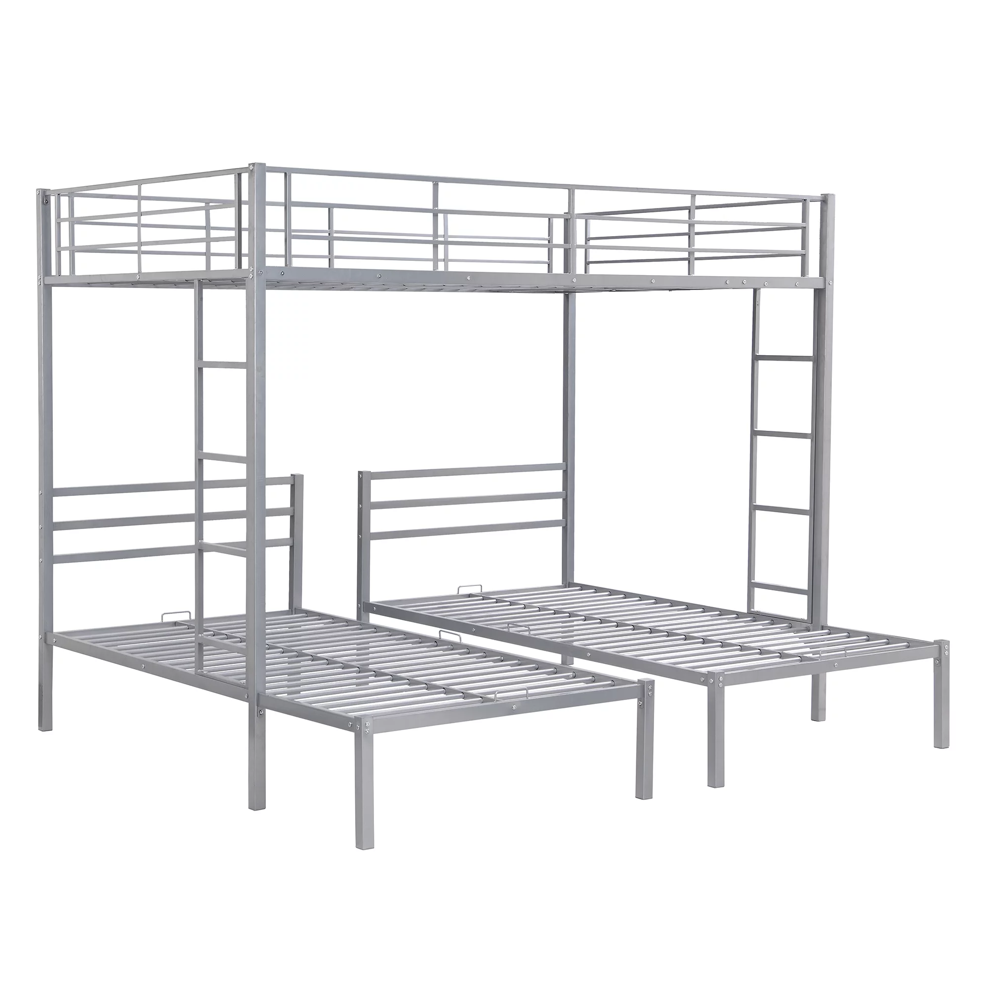Novogratz Maxwell Twin-Over-Full Metal Bunk Bed with Ladder and Guardrails, Easy Assembly, Grey