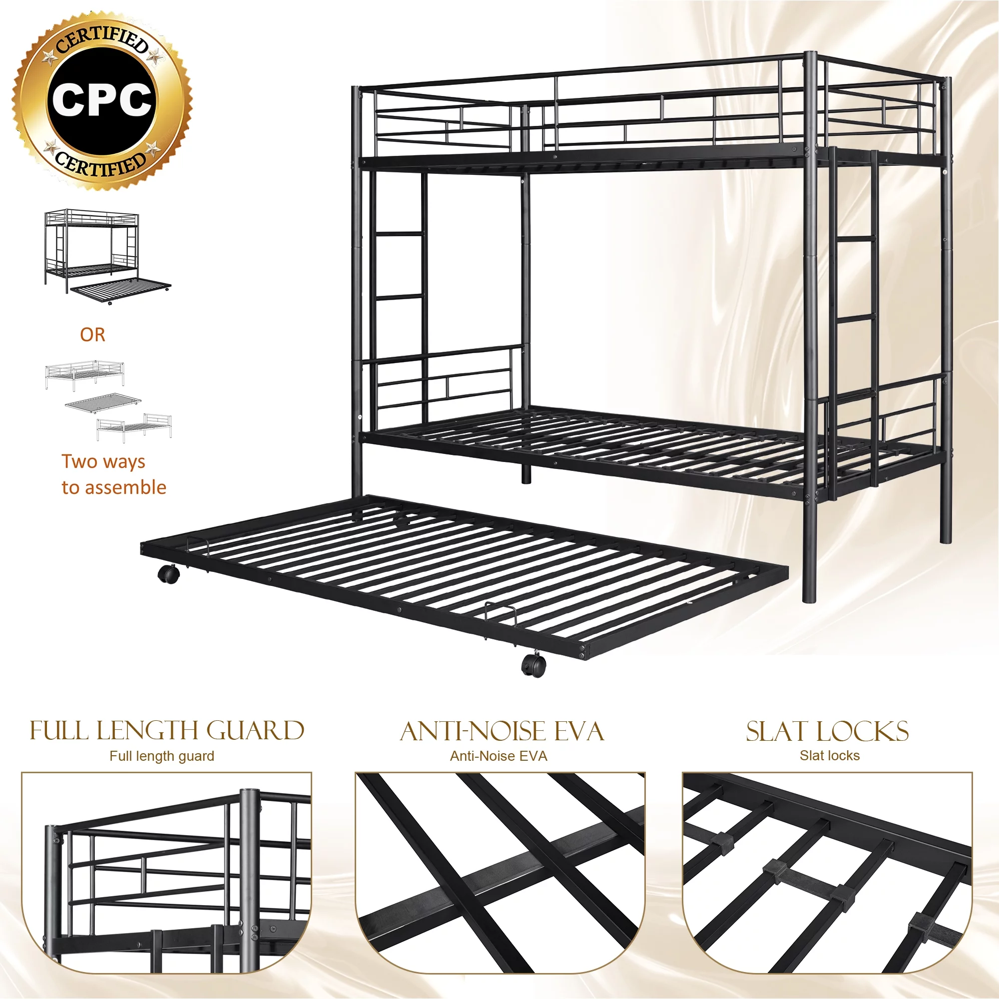 Walker Edison Premium Metal Twin Over Futon Bunk Bed - Black, Mattresses Not Included