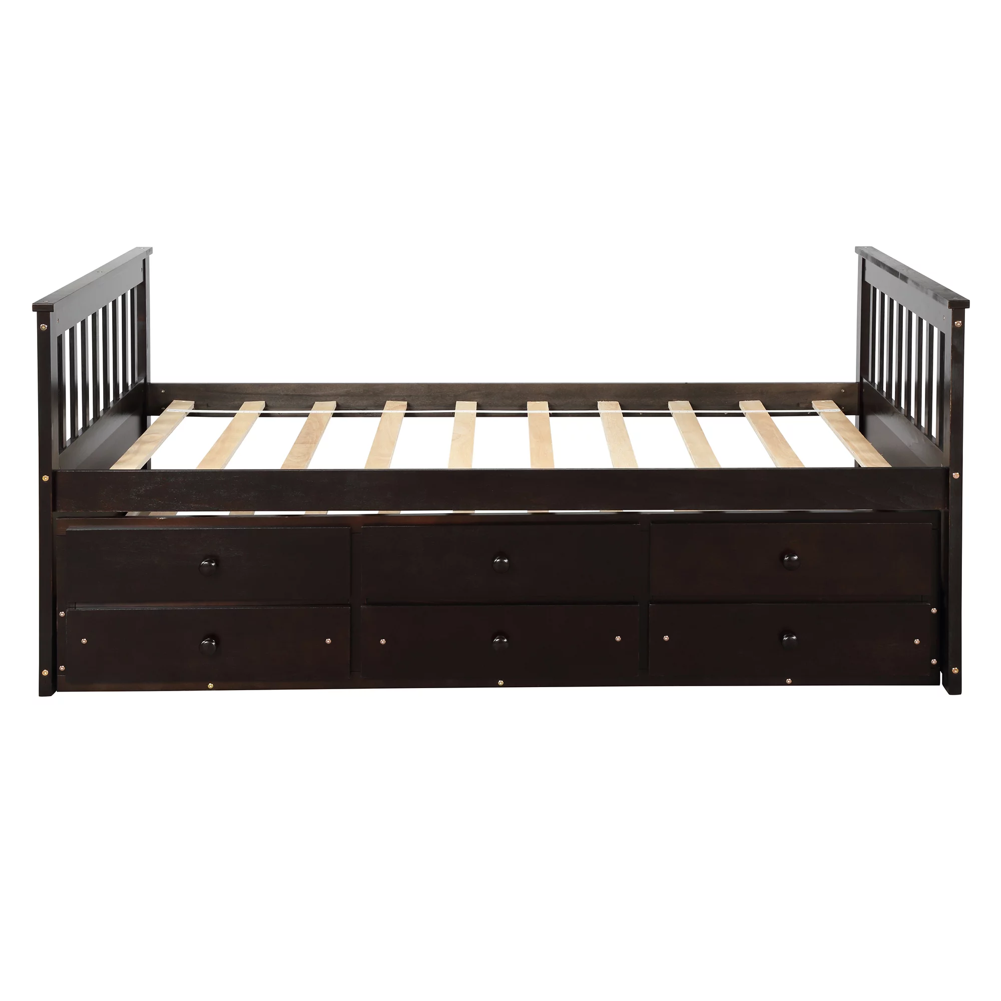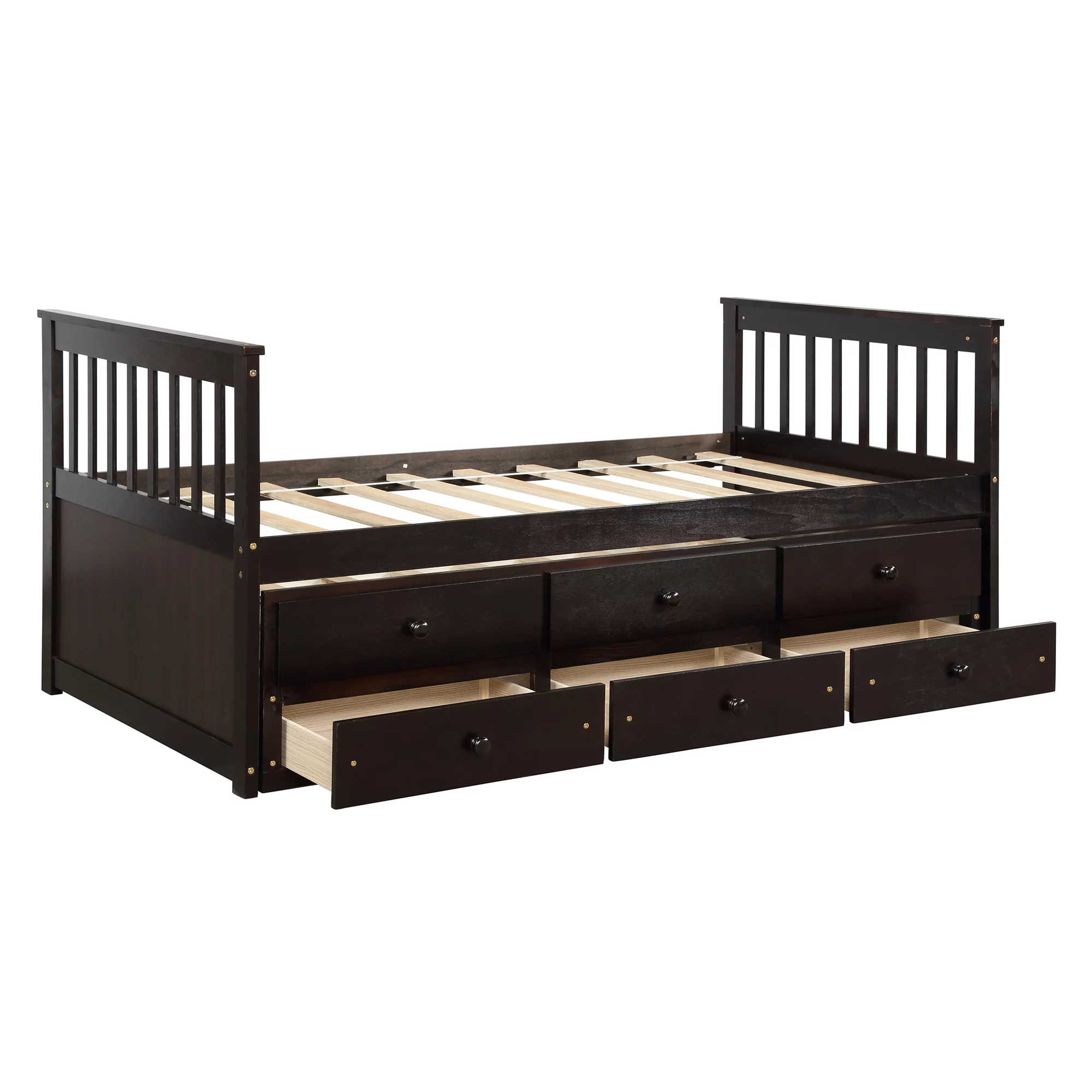 Twin Captain’s Bed Storage daybed with Trundle and Drawers for Kids Guests, Espresso