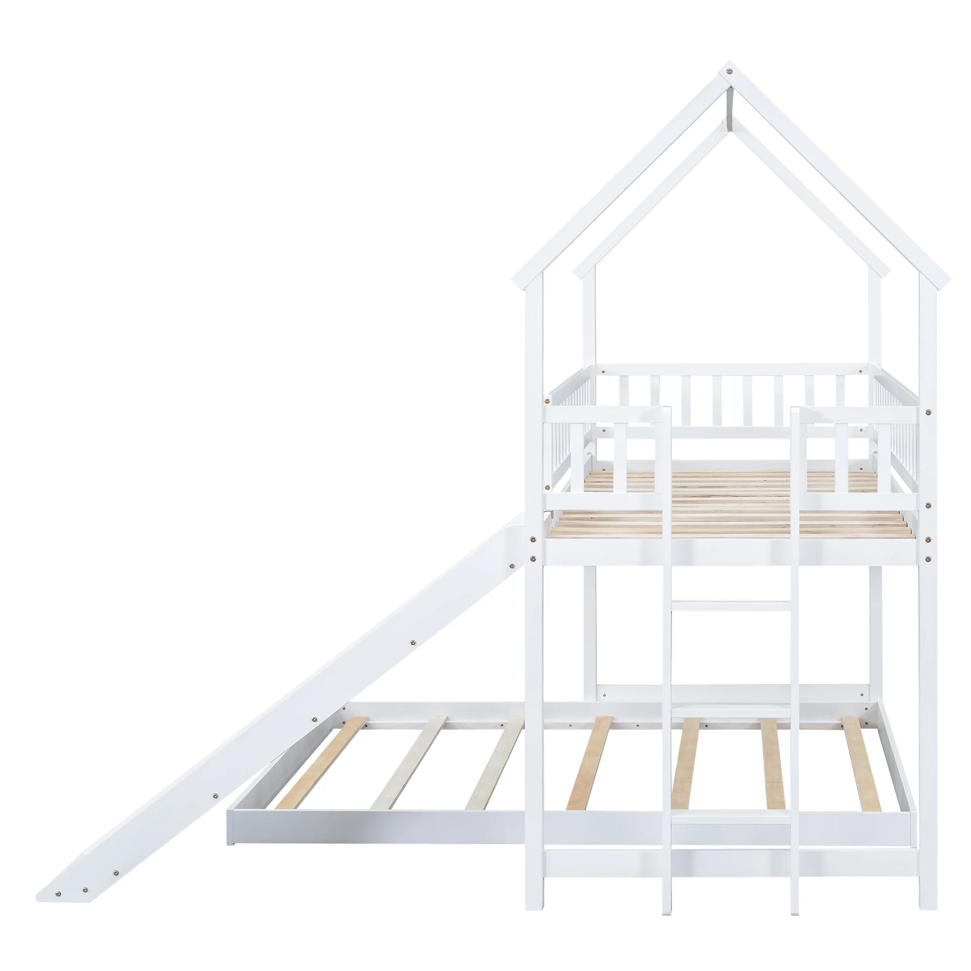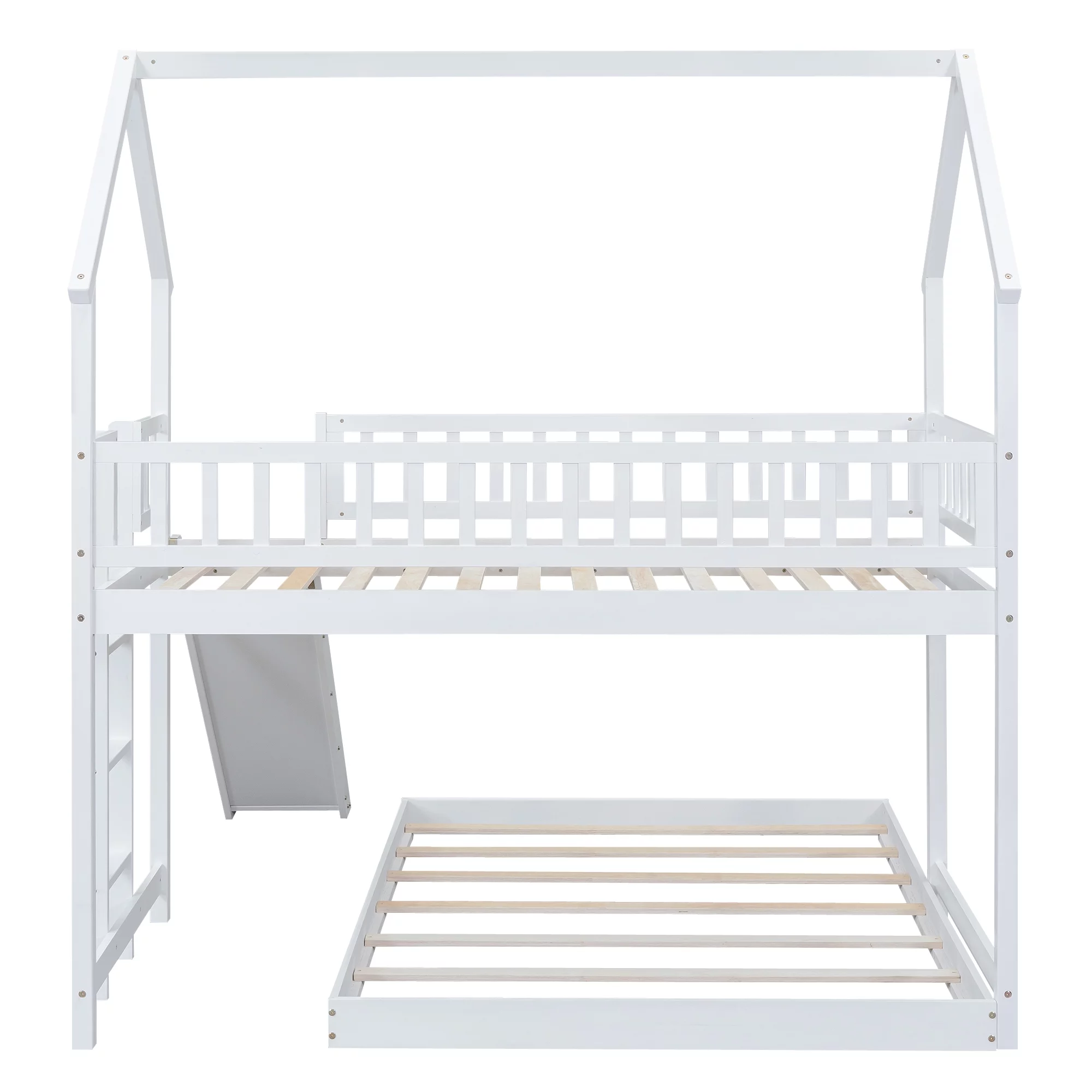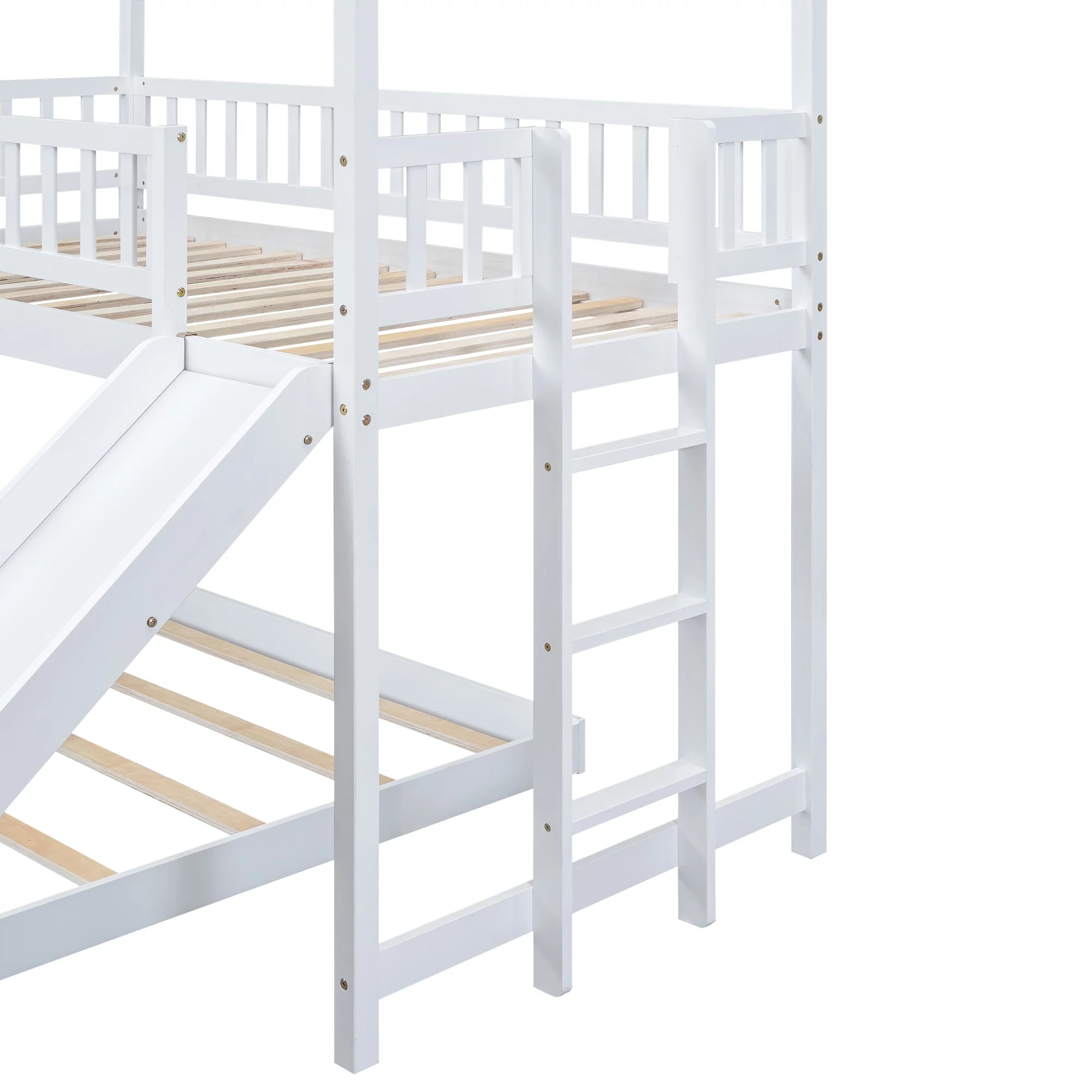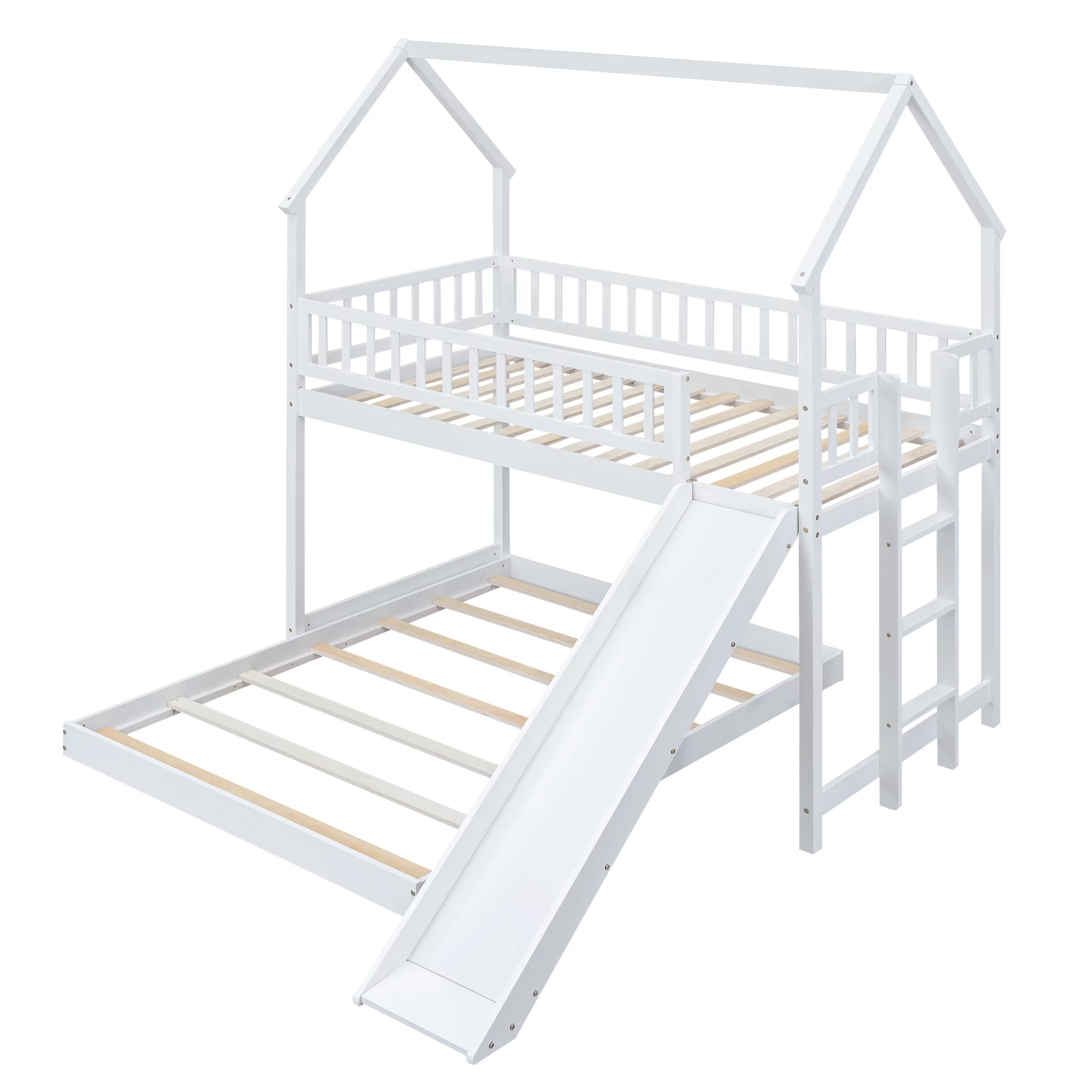 EUROCO Twin over Full House Bunk Bed with Slide and Built-in Ladder, White