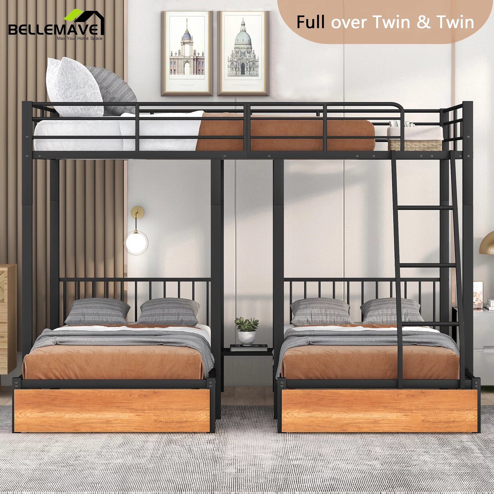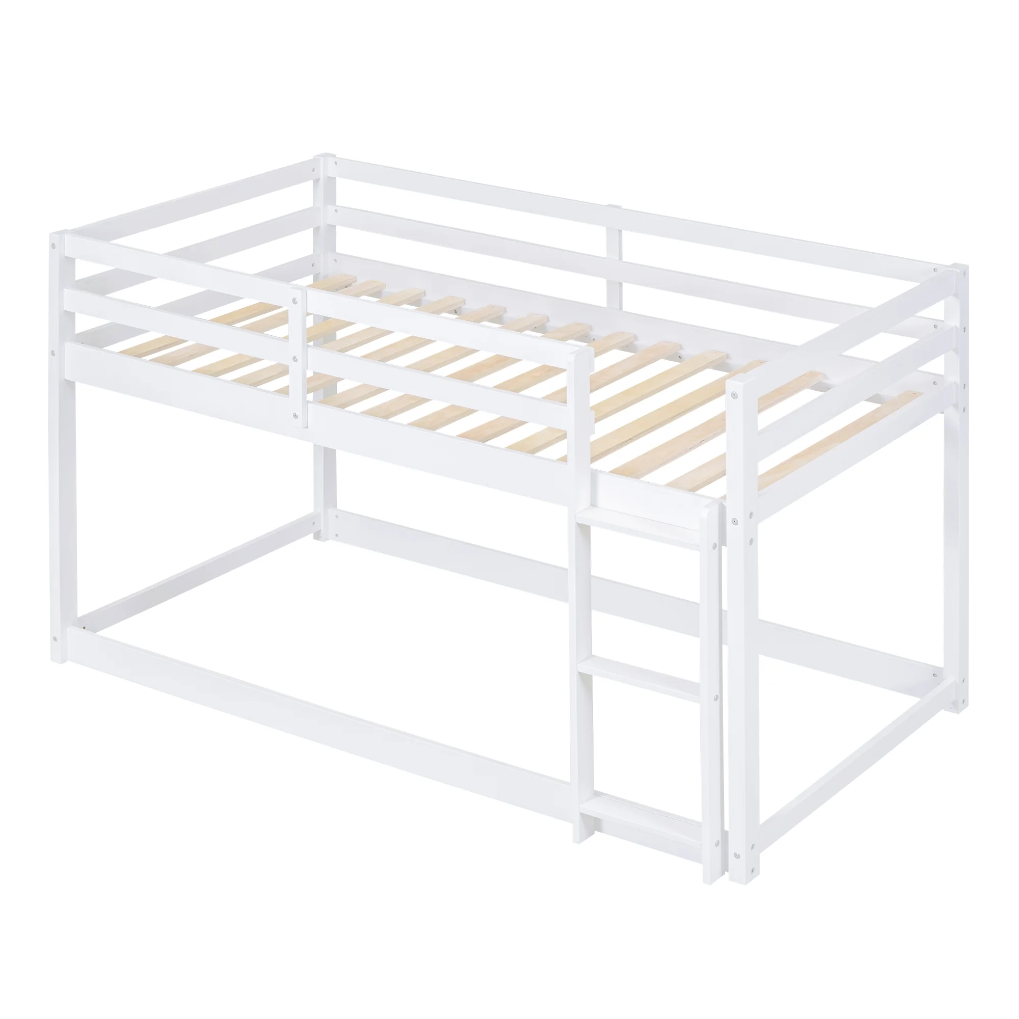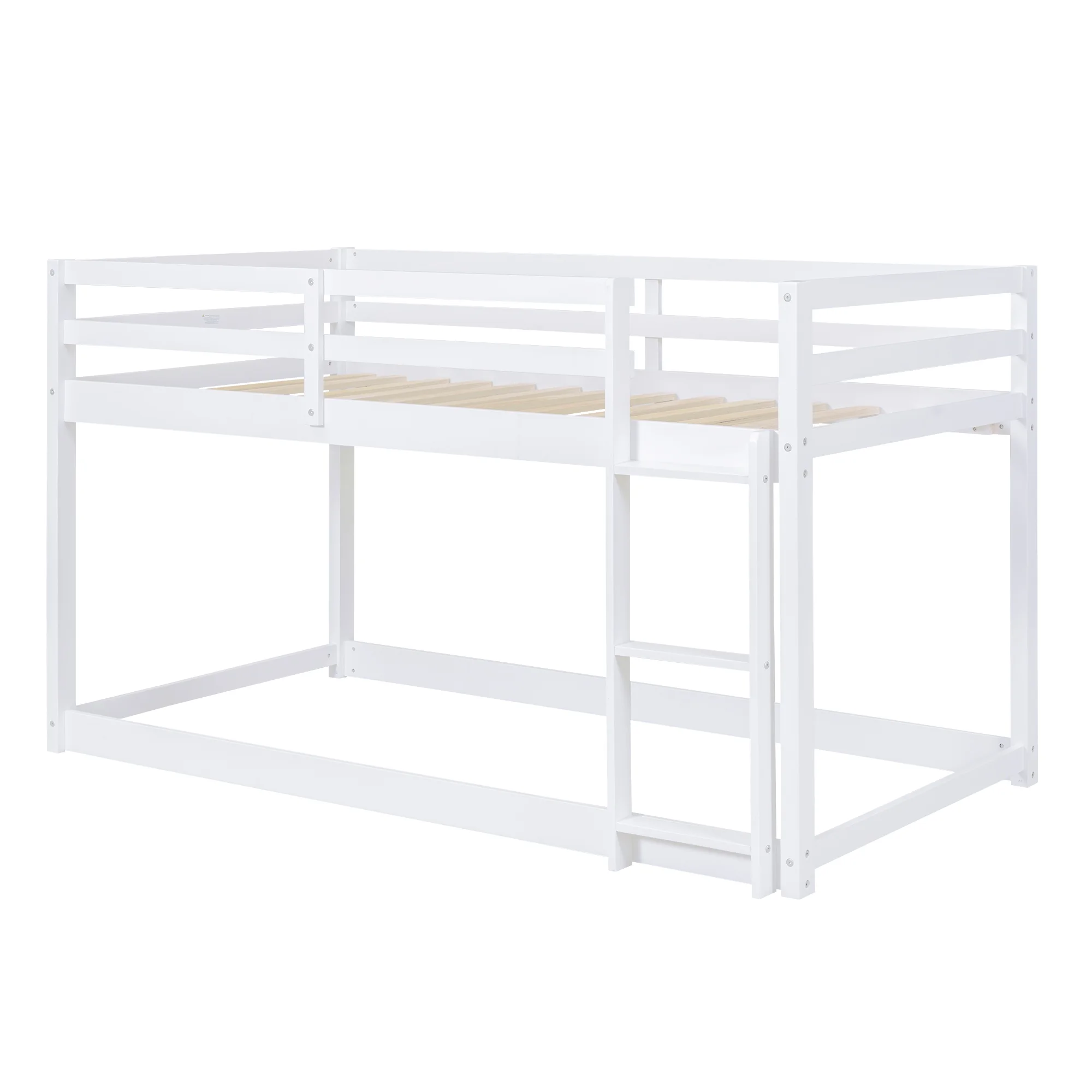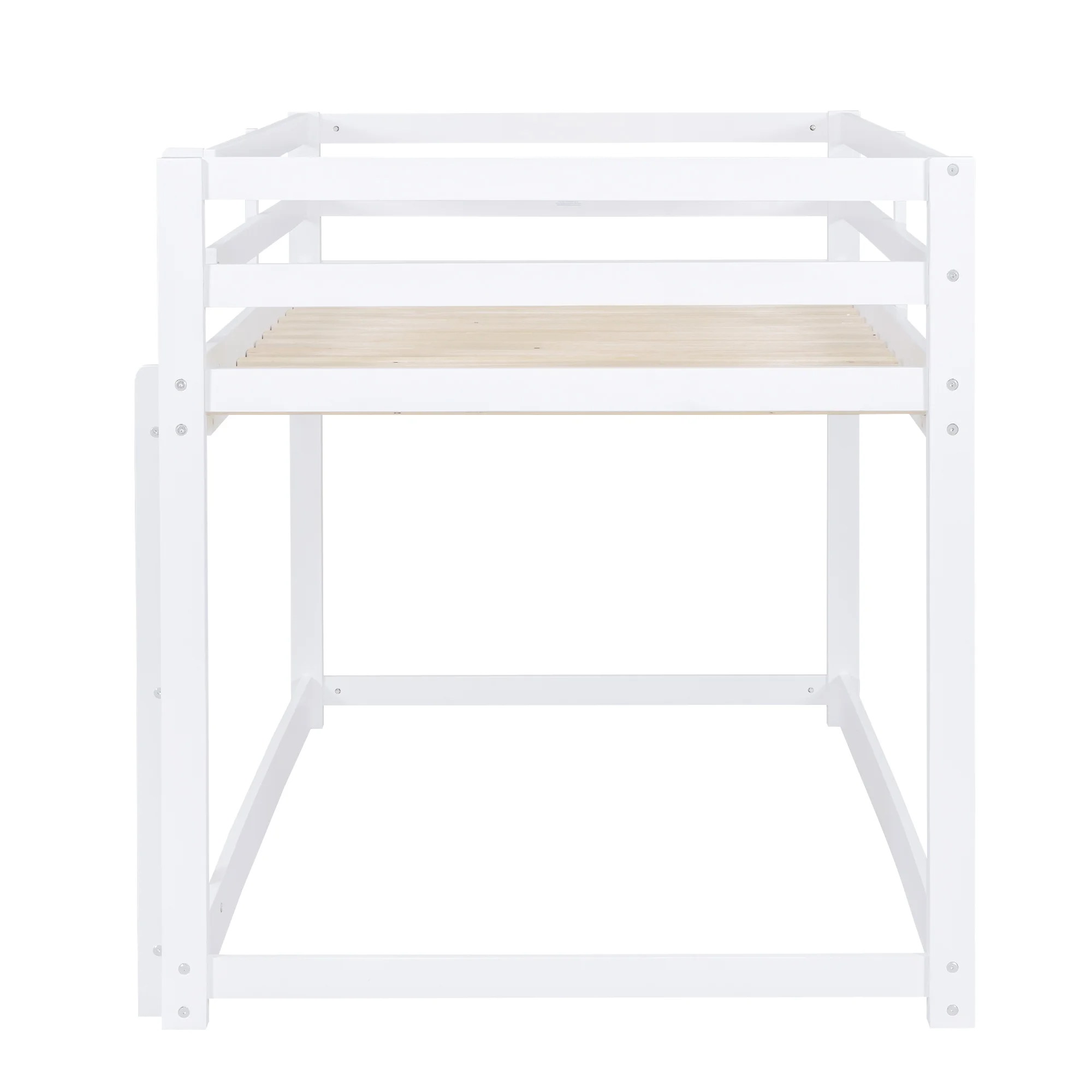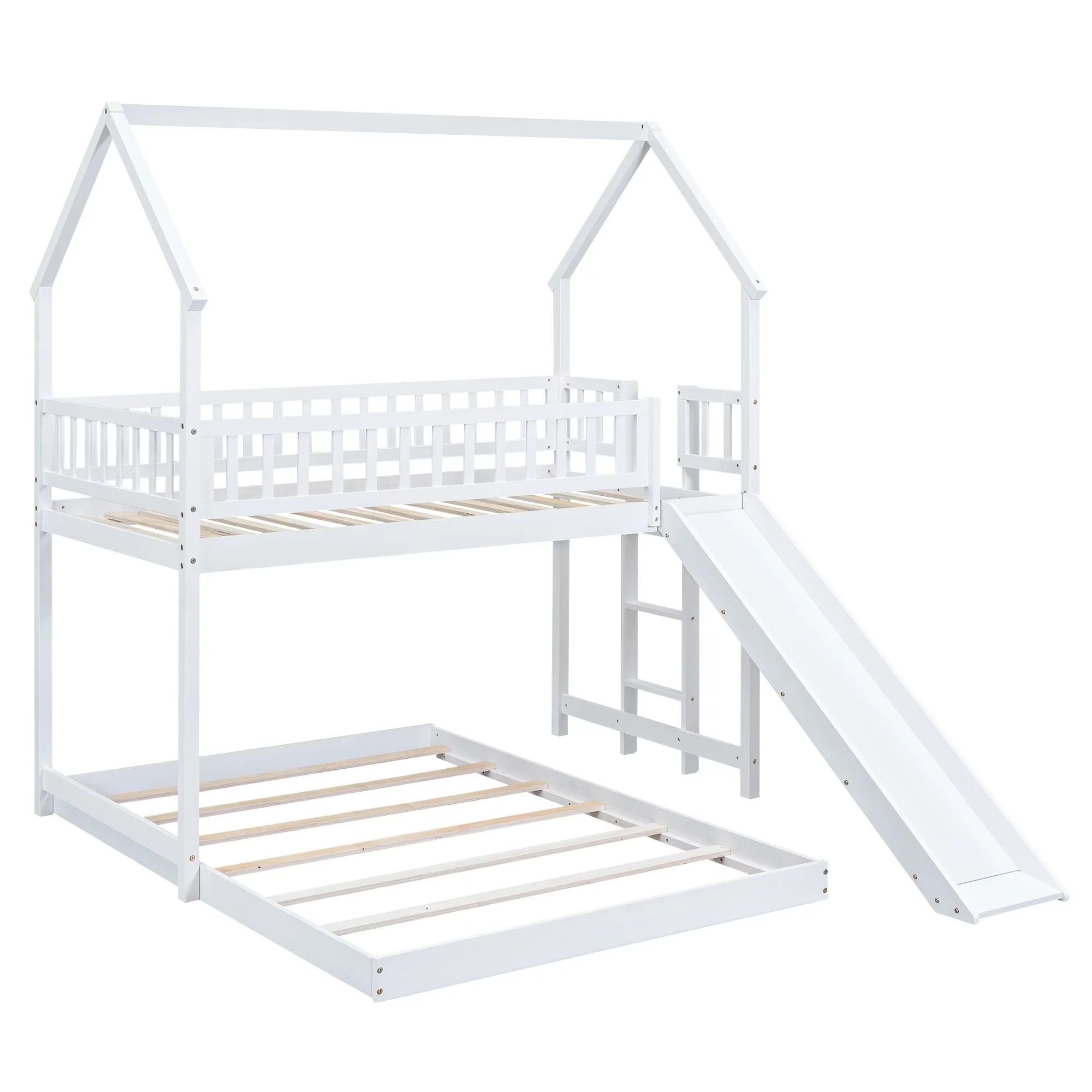 EUROCO Twin over Full House Bunk Bed with Slide and Built-in Ladder, White