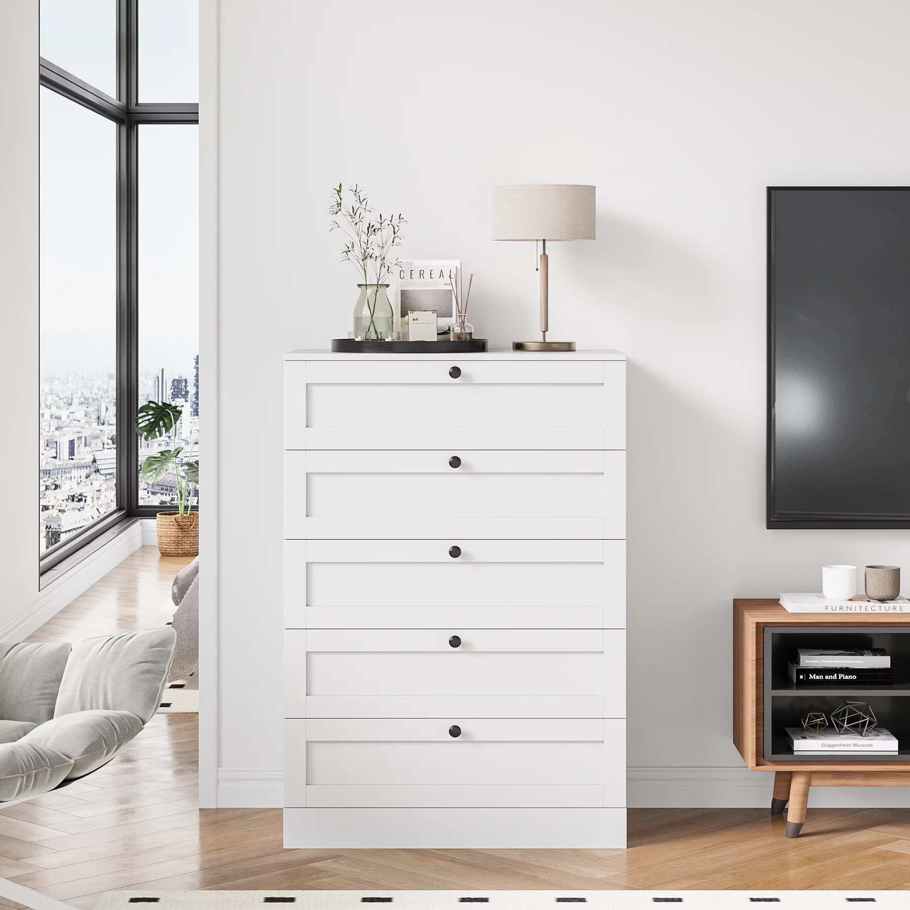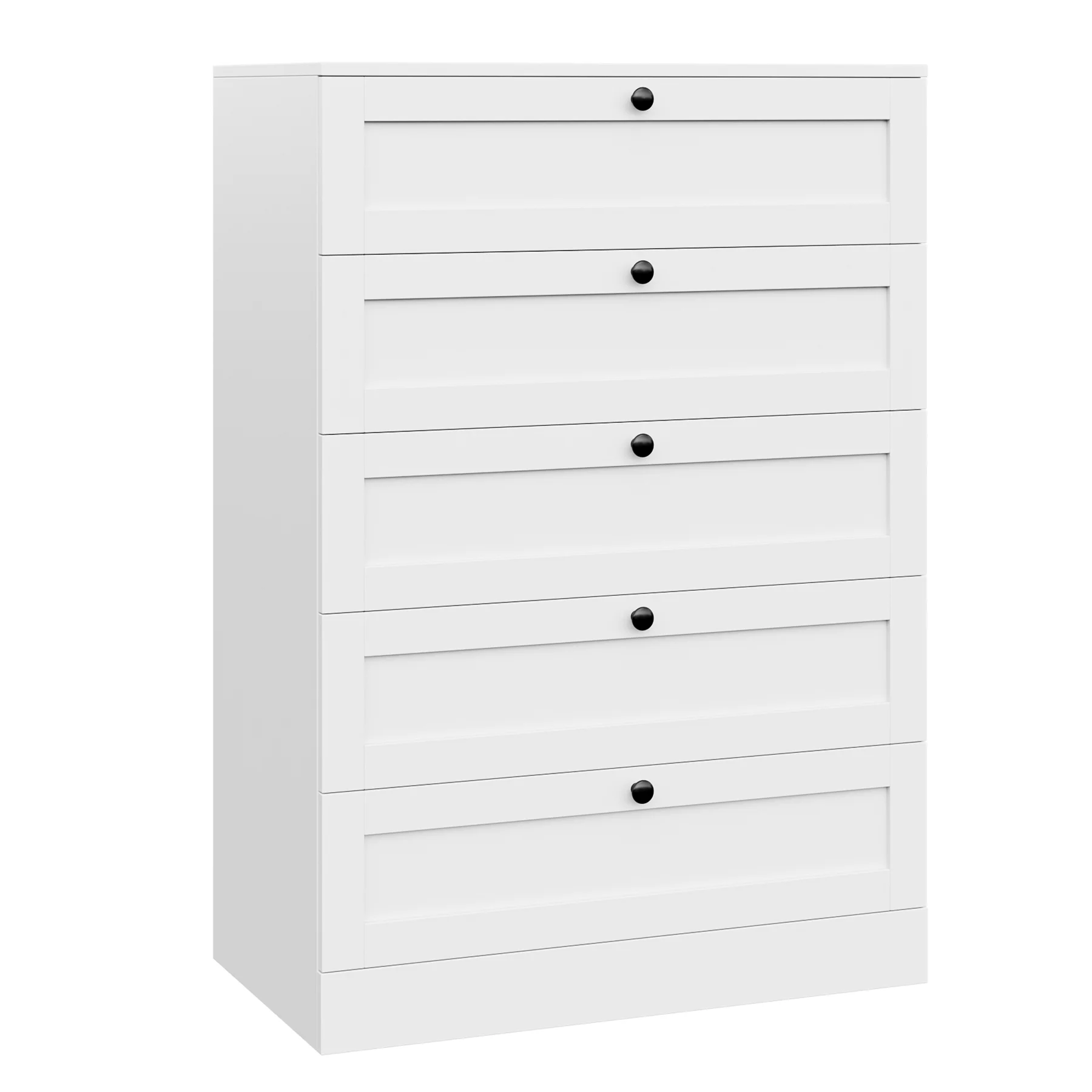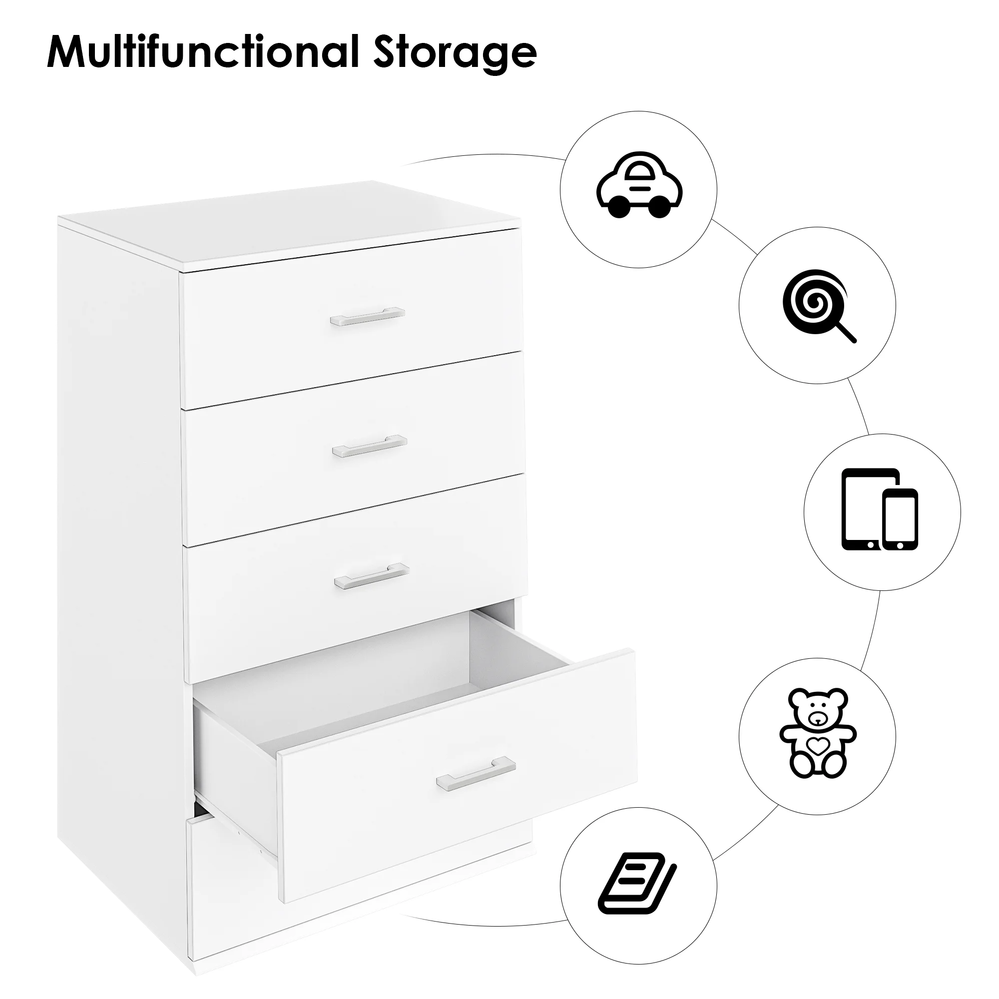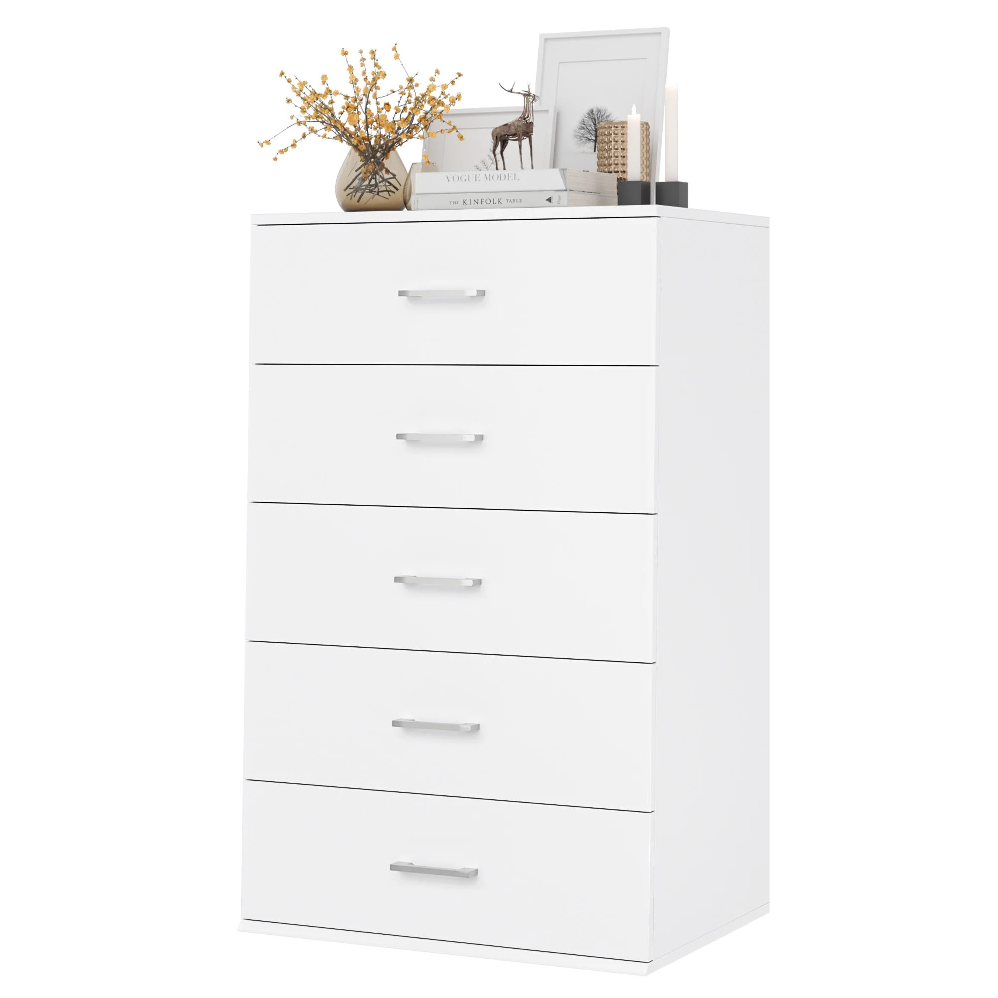 Homfa White Dresser with 5 Drawers, Vertical Chest of Drawers Wood Storage Cabinet for Bedroom Living Room