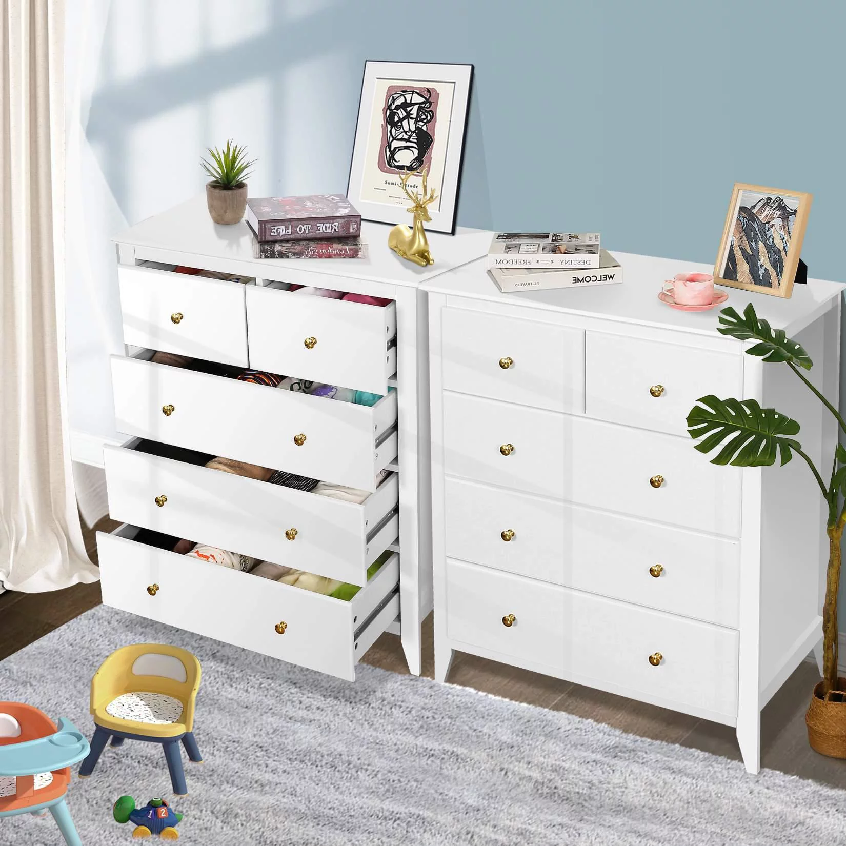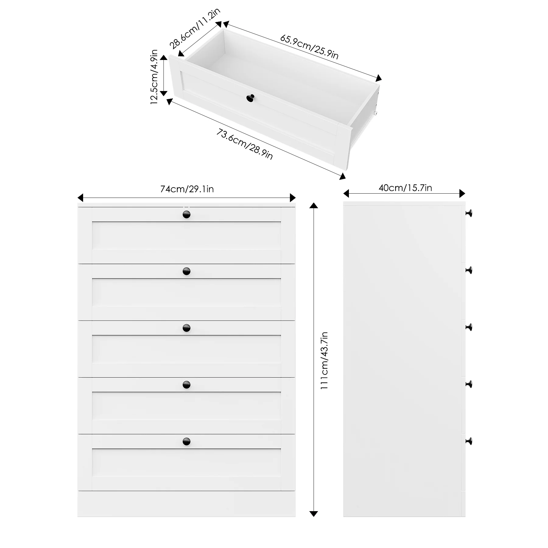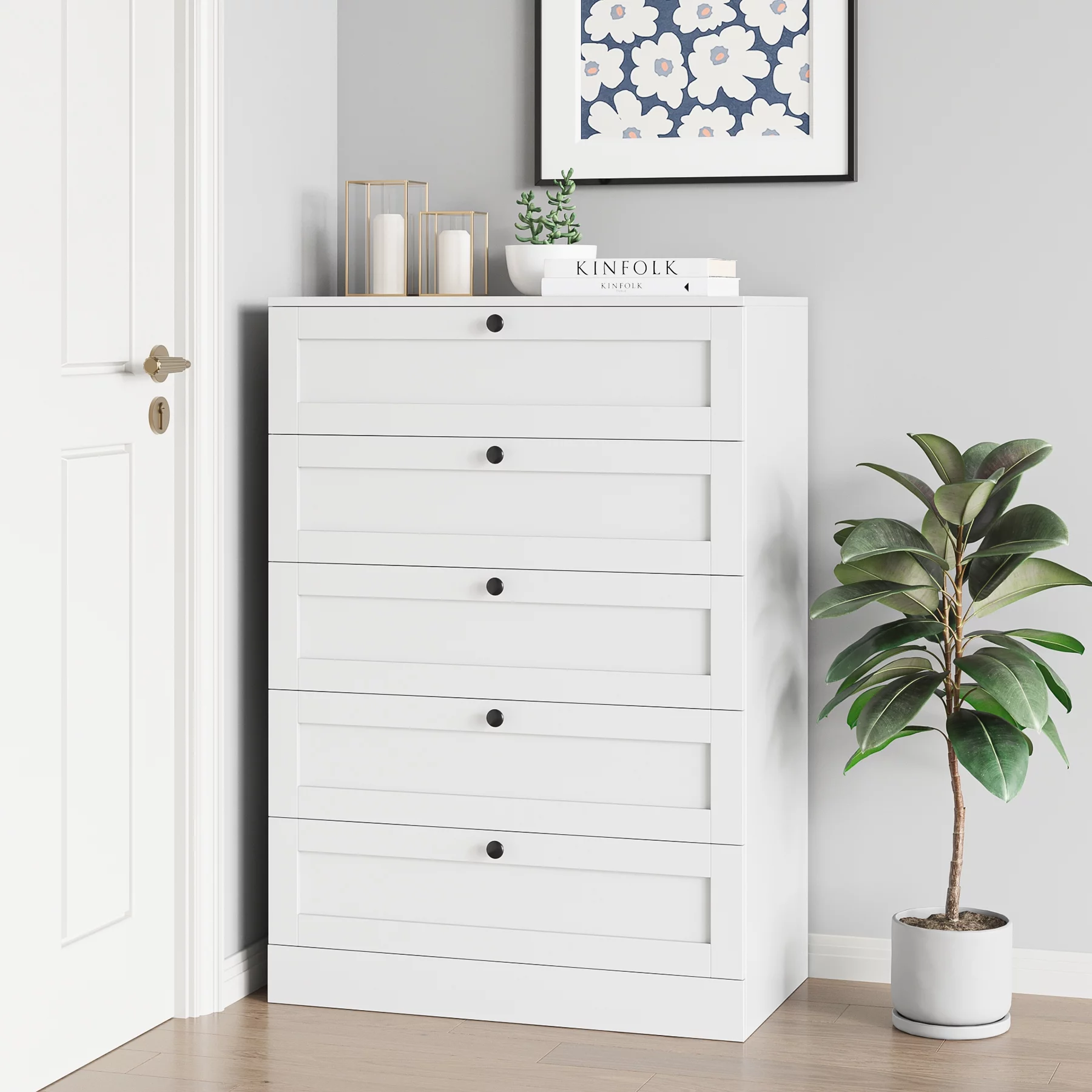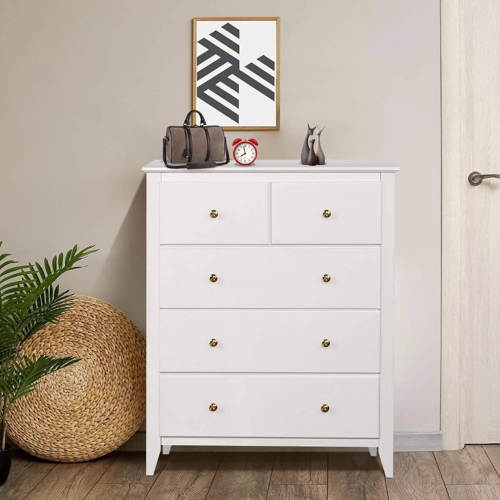 Homfa White Dresser with 5 Drawers, Vertical Chest of Drawers Wood Storage Cabinet for Bedroom Living Room