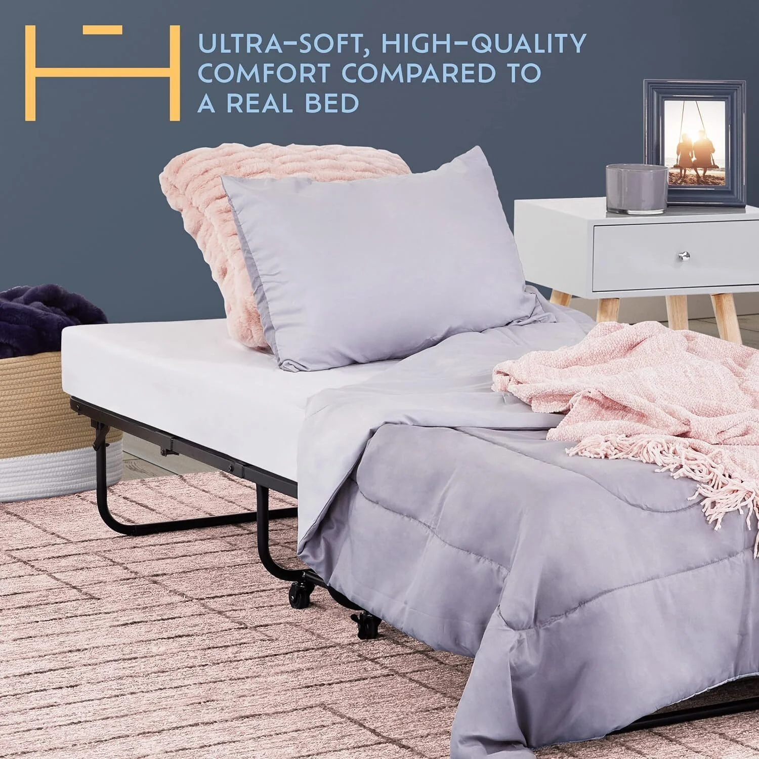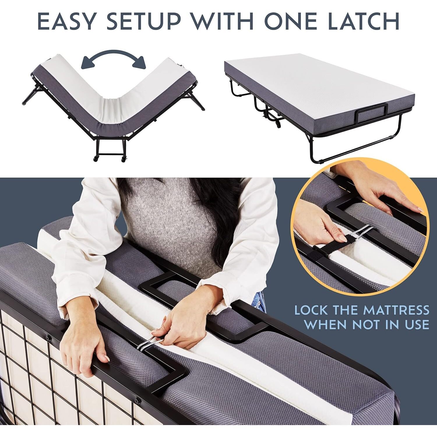 HomeStock Antique Appeal Folding Bed, Machine Washable Memory Foam Mattress W/Bed Frame