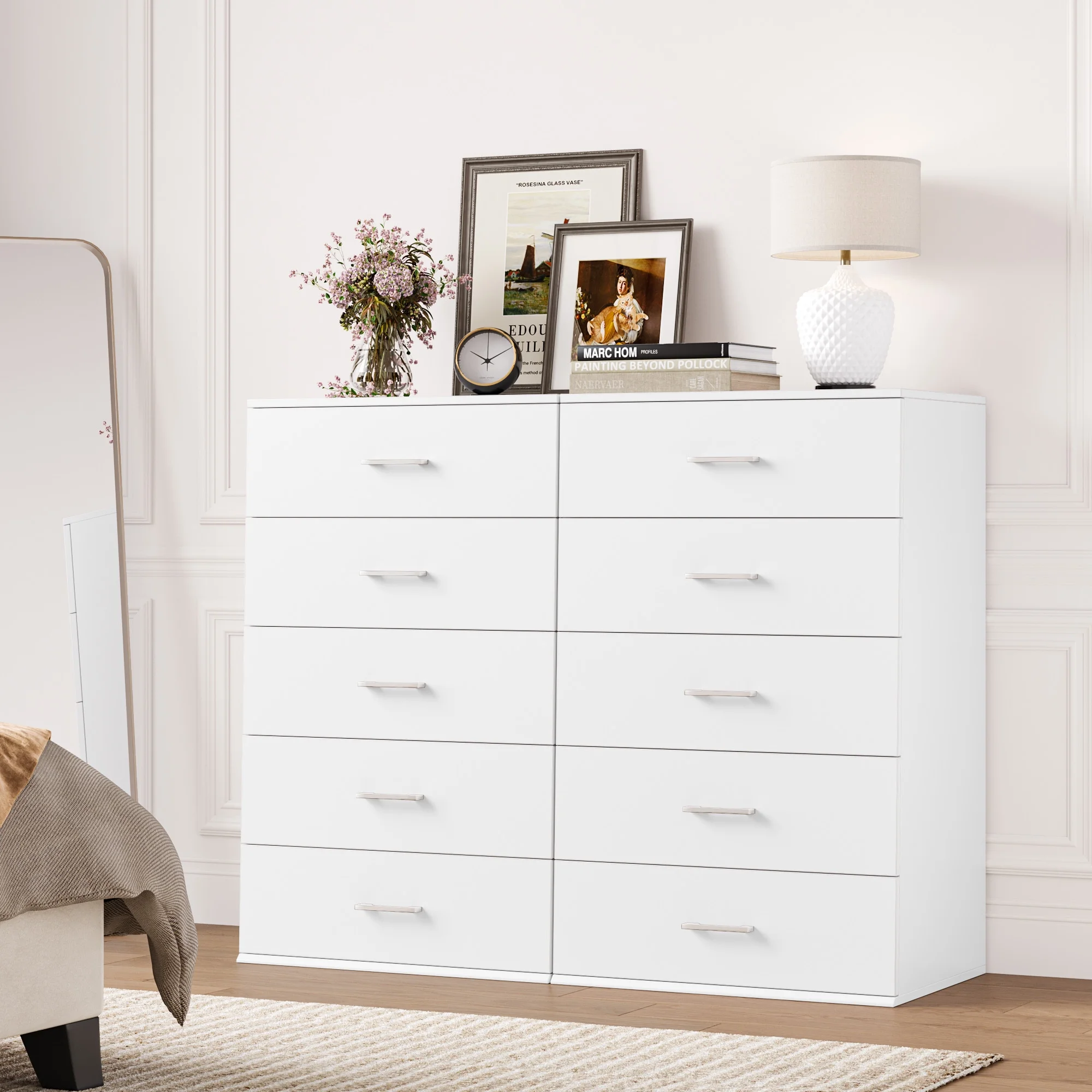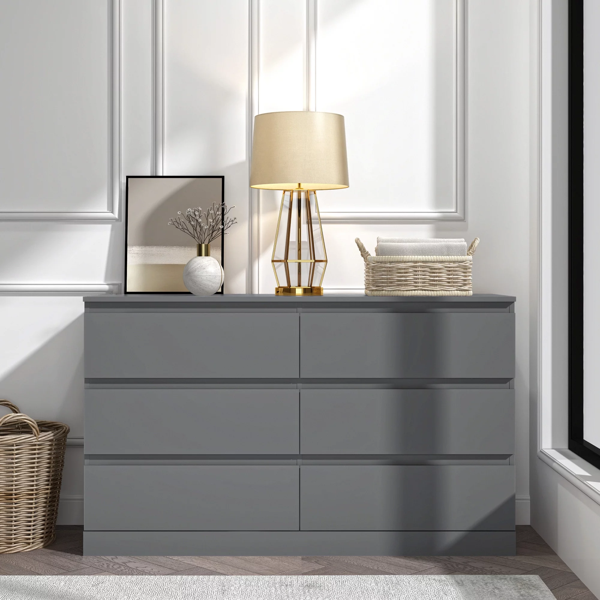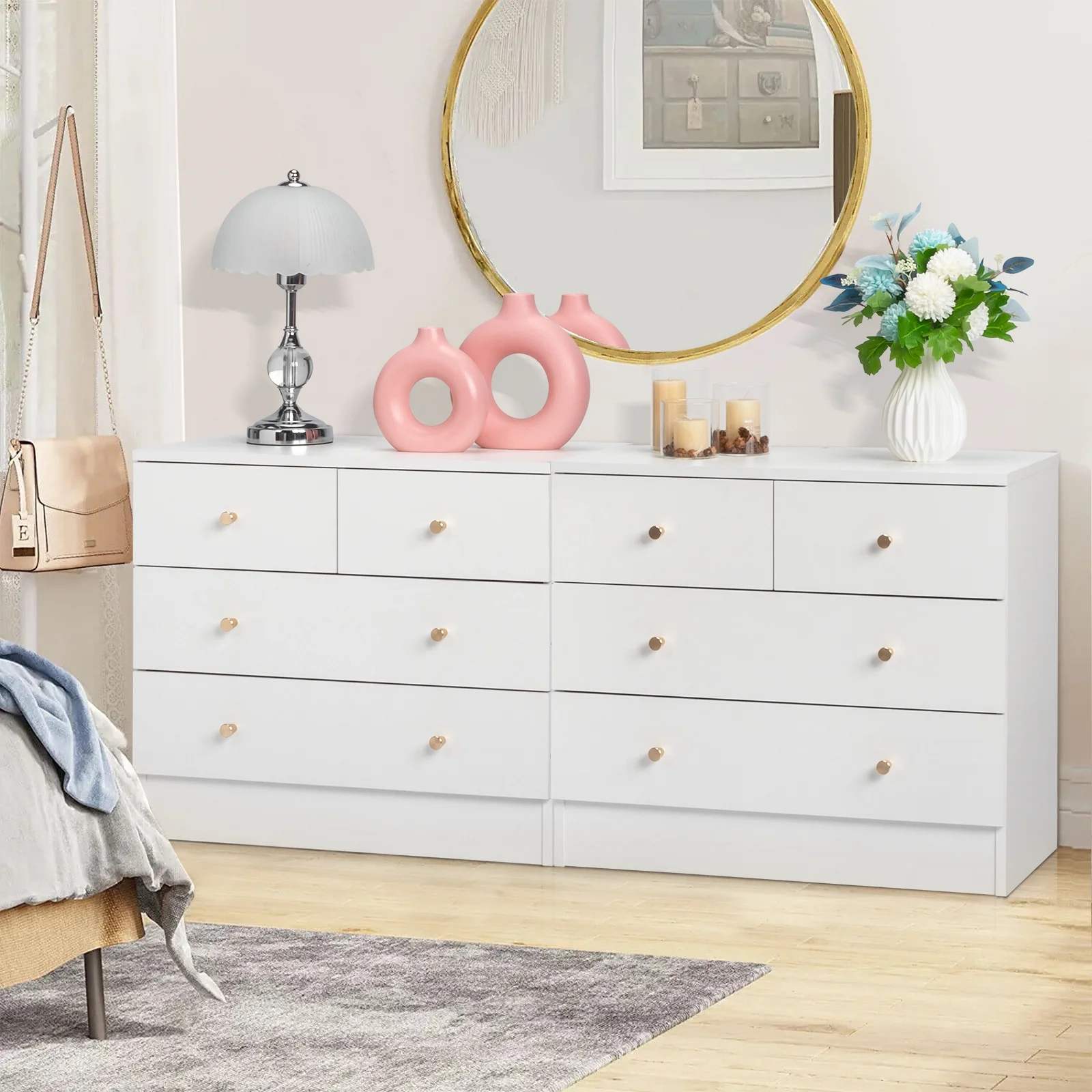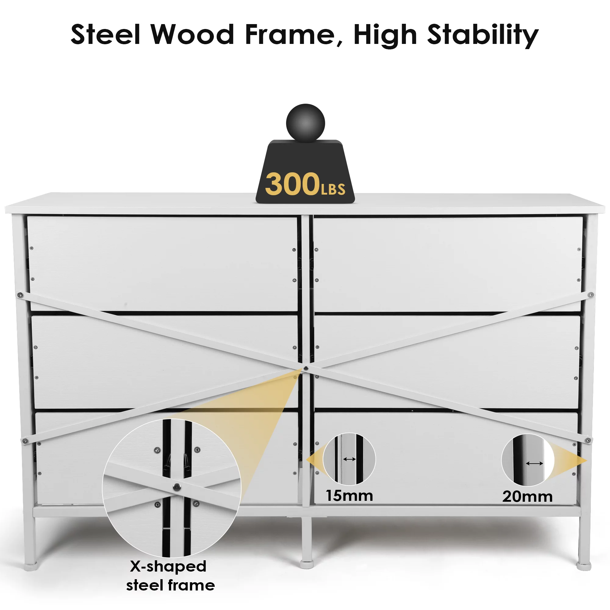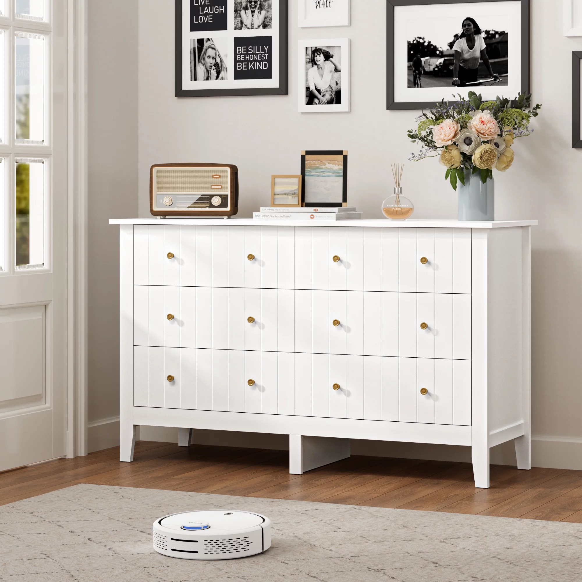 Homfa 6 Drawer Double White Dresser for Bedroom, Modern Wood Dresser Storage Cabinet for Living Room