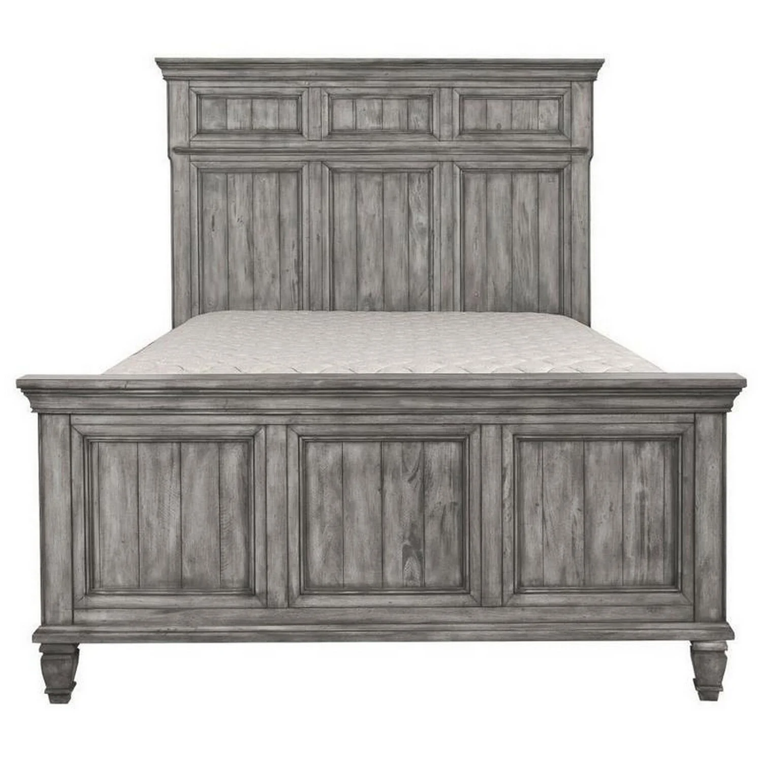 Benjara Paneled Headboard Dan Wood Queen Size Bed with Crown Molded Details, Gray
