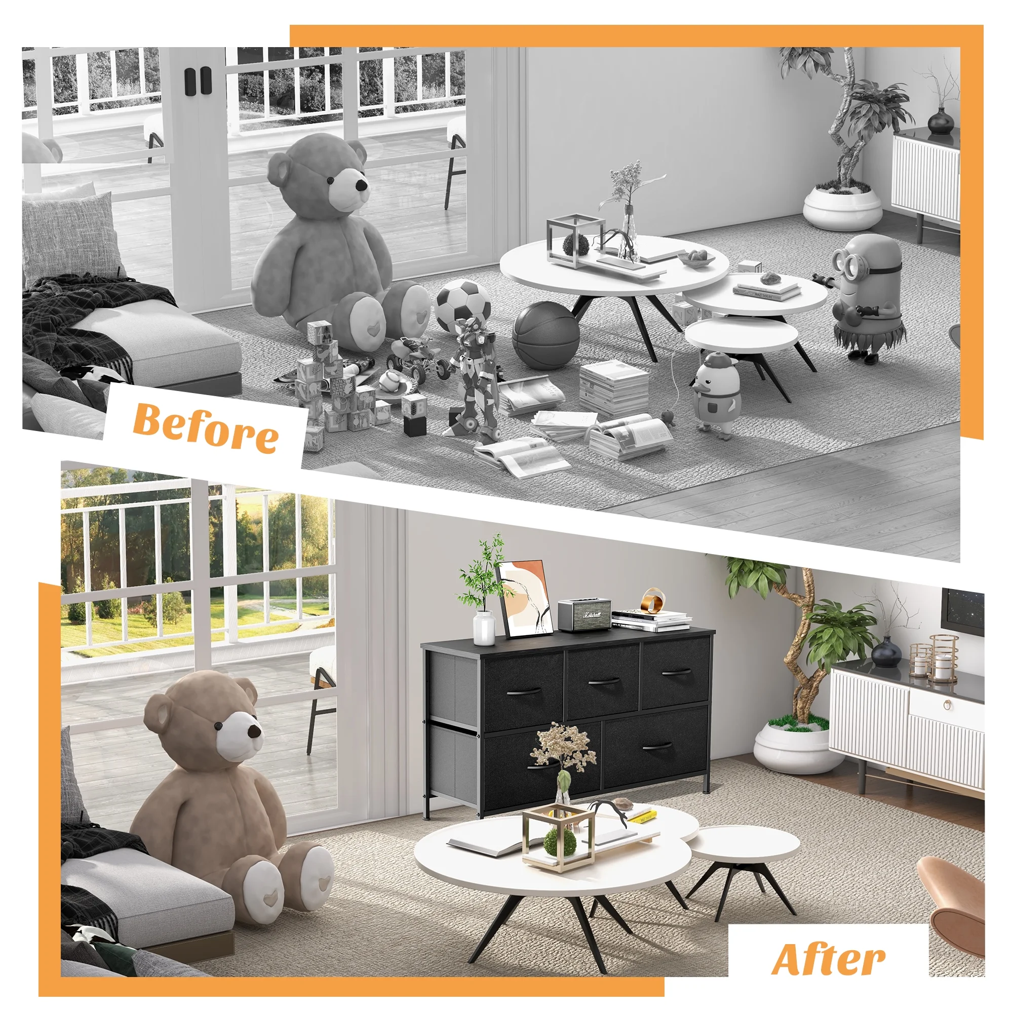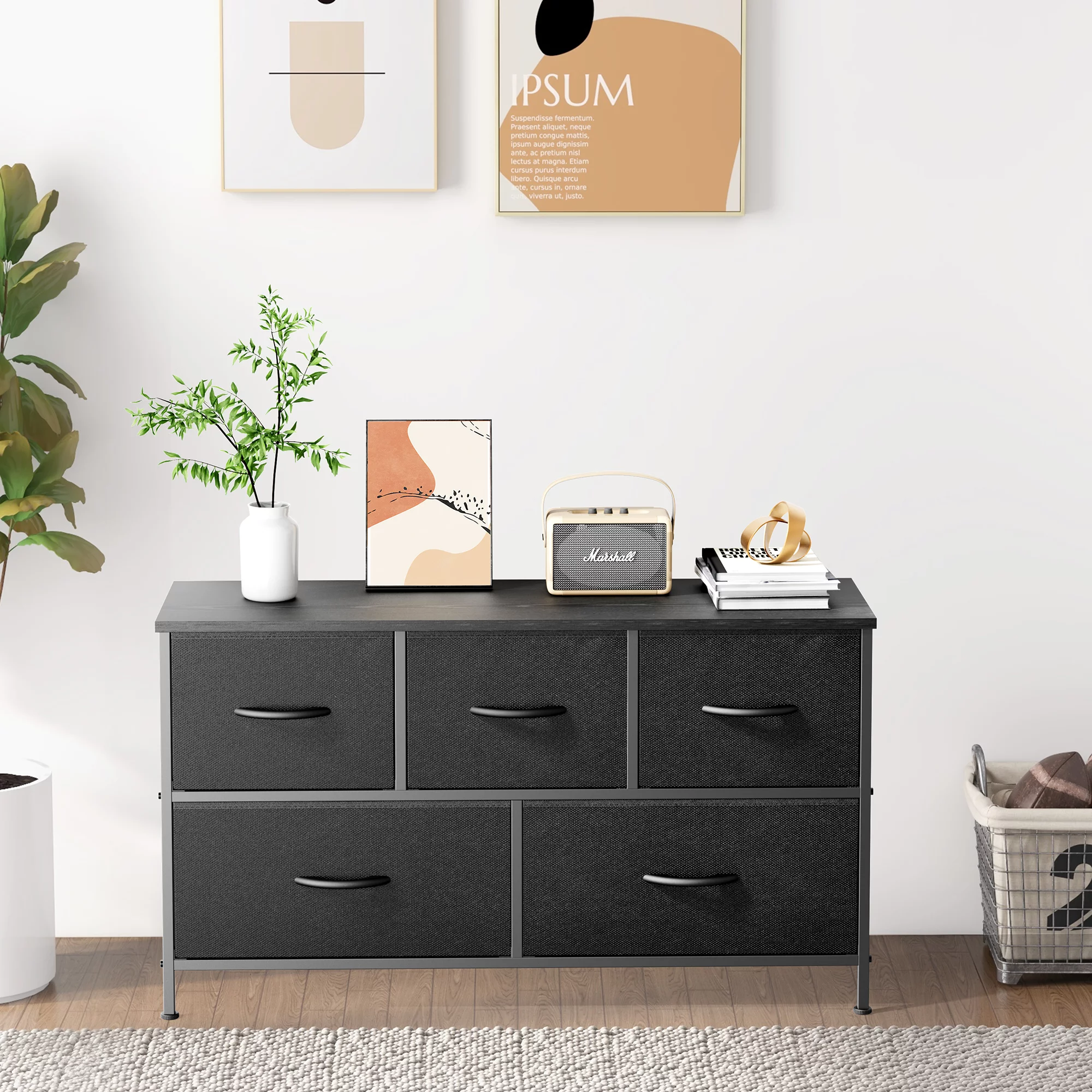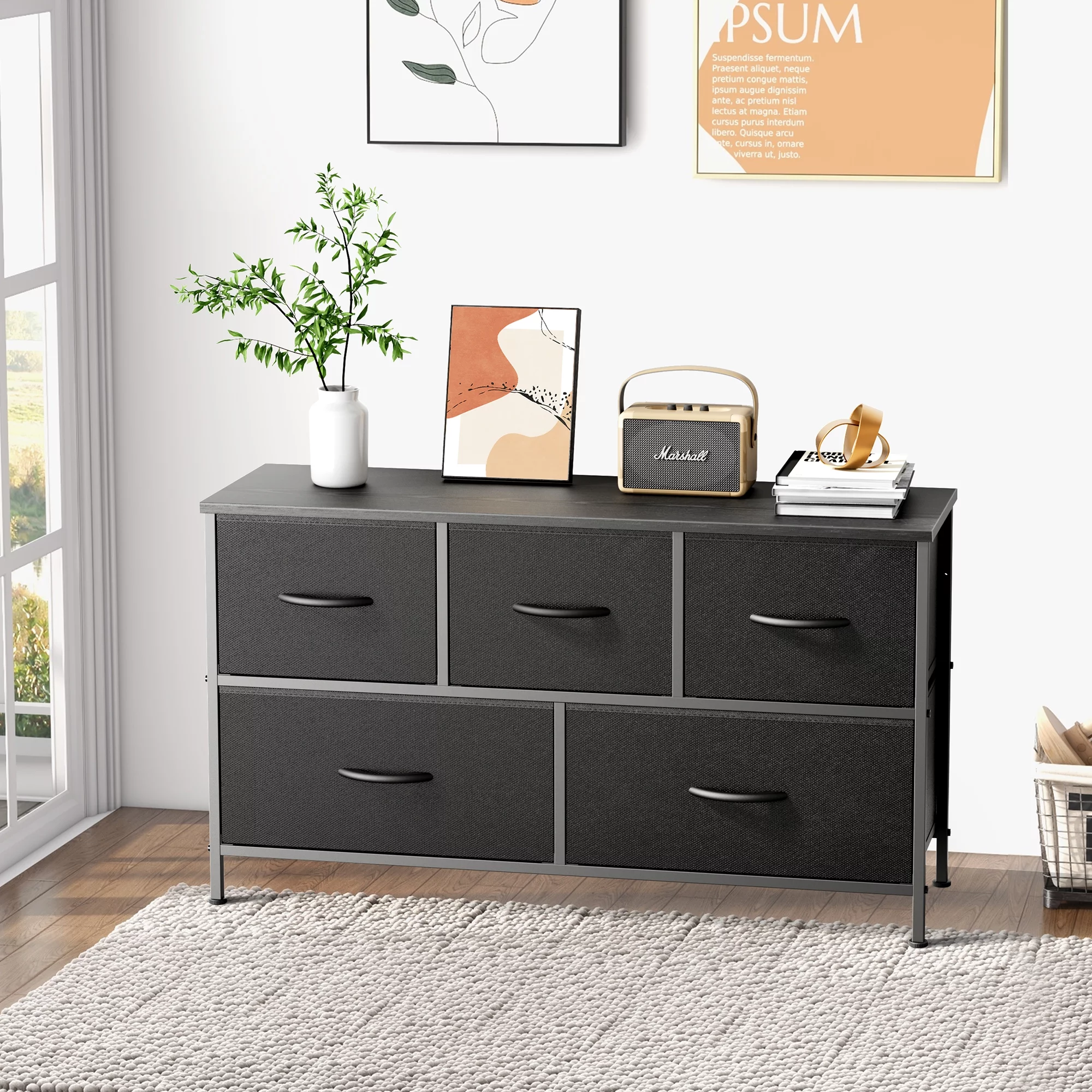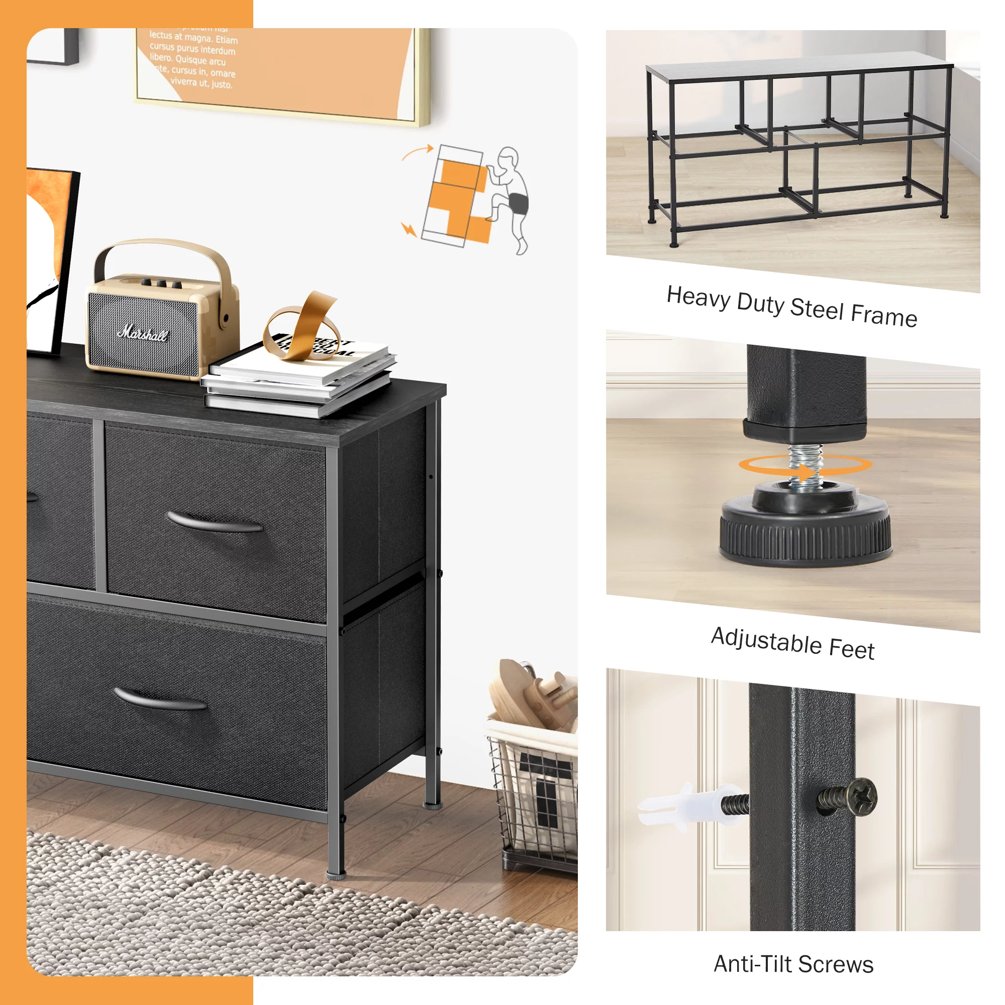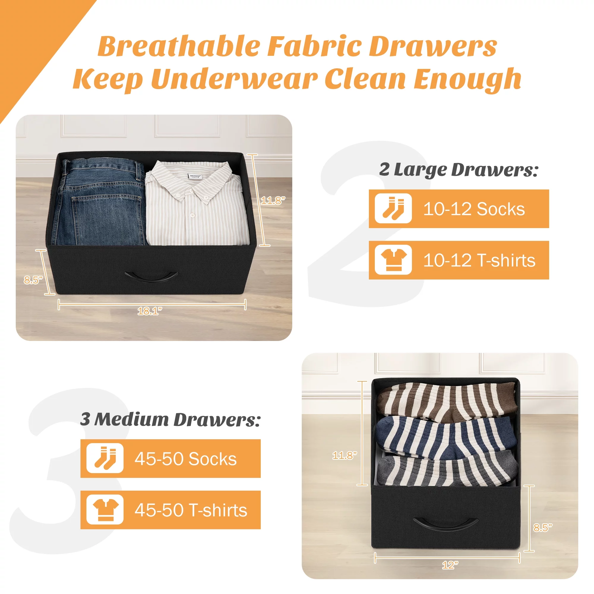 DWVO 10 Drawer Dresser Chest of Storage Dresser Tall Fabric Dresser Storage Cabinet Bin Nightstand Cabinet, Black Grey