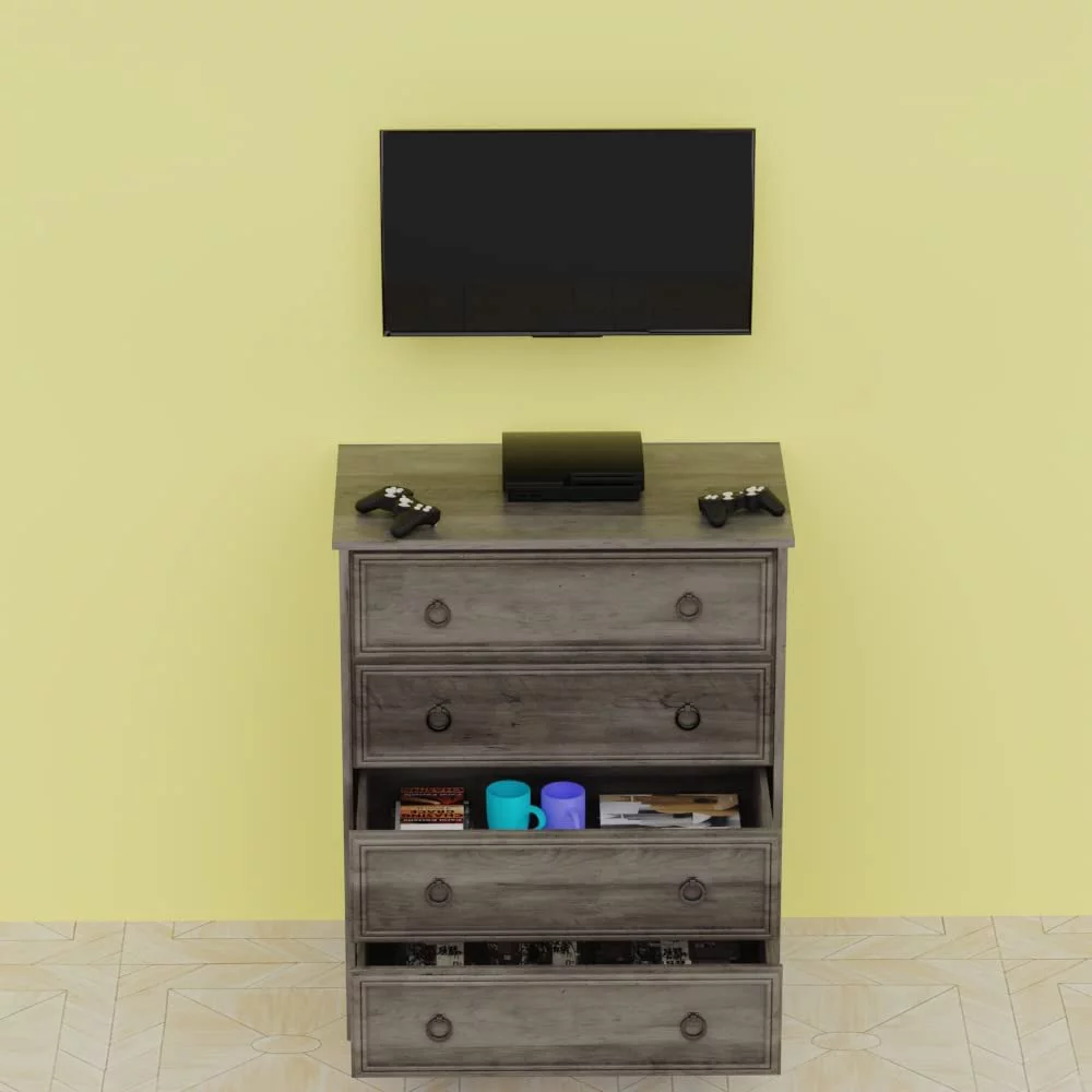 LGHM 4 Drawer Dresser, Modern Wood Chest Dresser for Bedroom Livingroom Gray