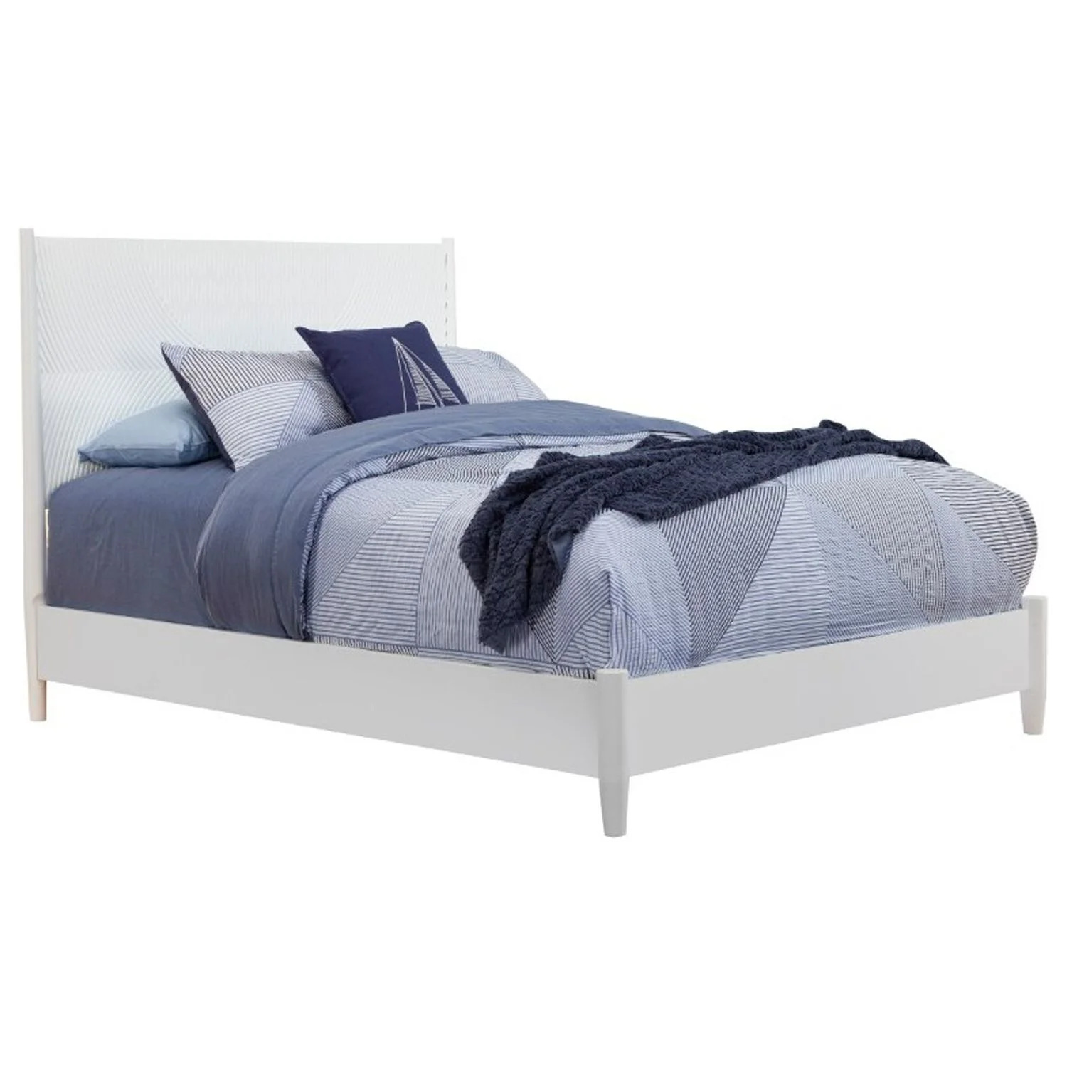 Transitional Queen Size Wooden Panel Bed with Circular Accent Headboard White