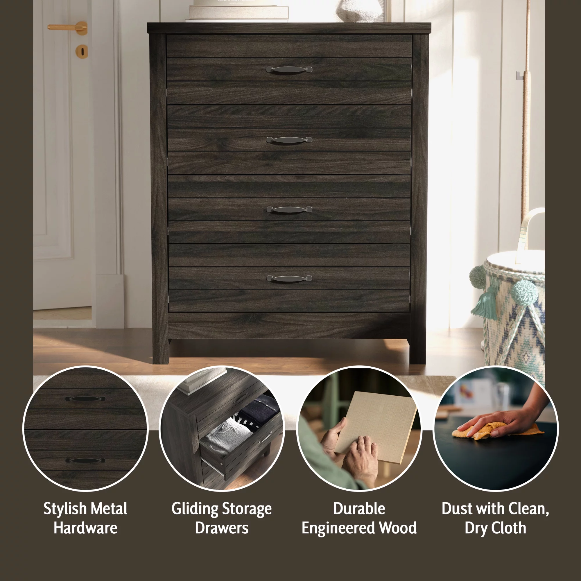 Lancaster Farmhouse 4-Drawer Dresser, Espresso, by Hillsdale Living Essentials