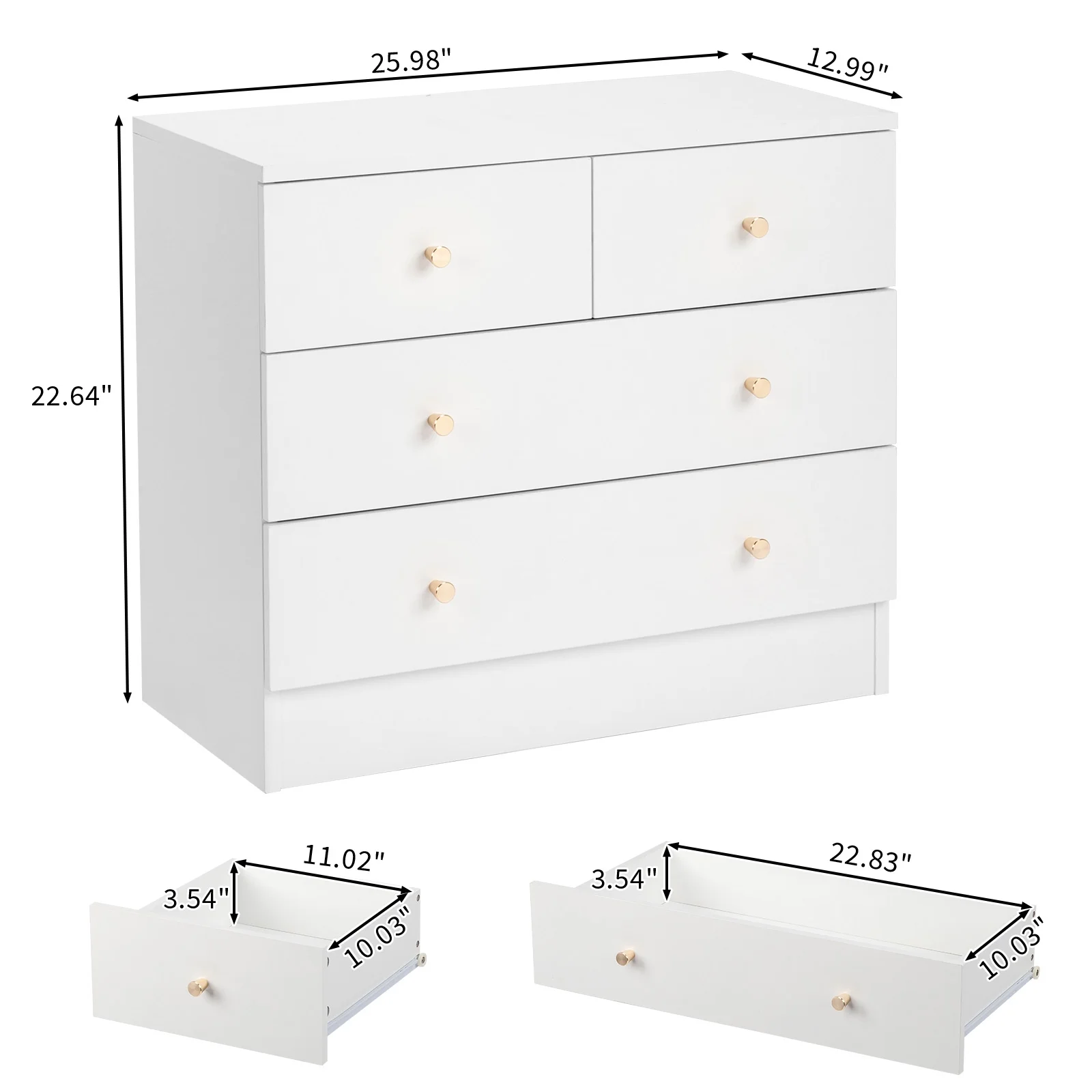 UBesGoo Modern Wood 4-Drawer Dresser Chest Bedside Table for Bedroom,Living Room,White