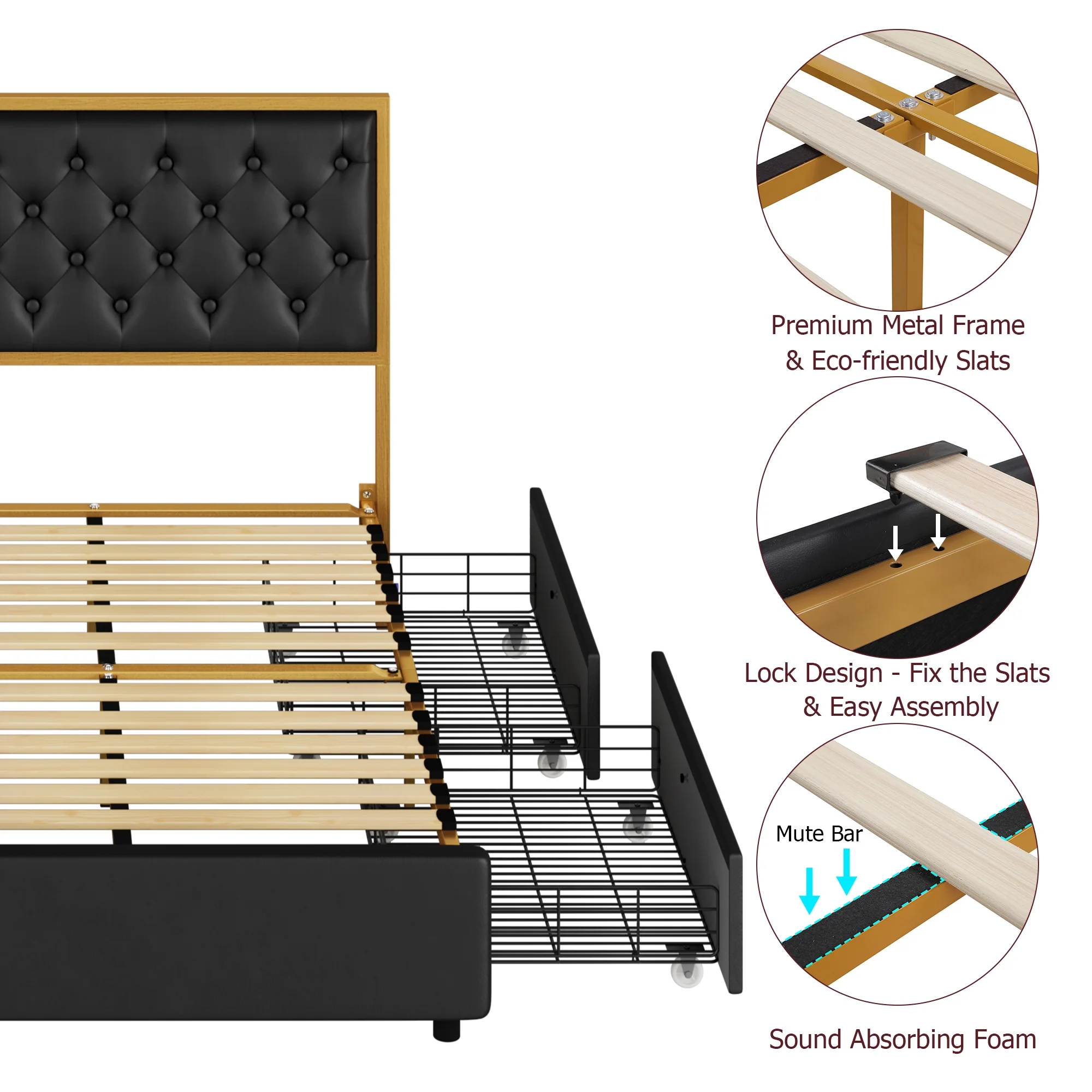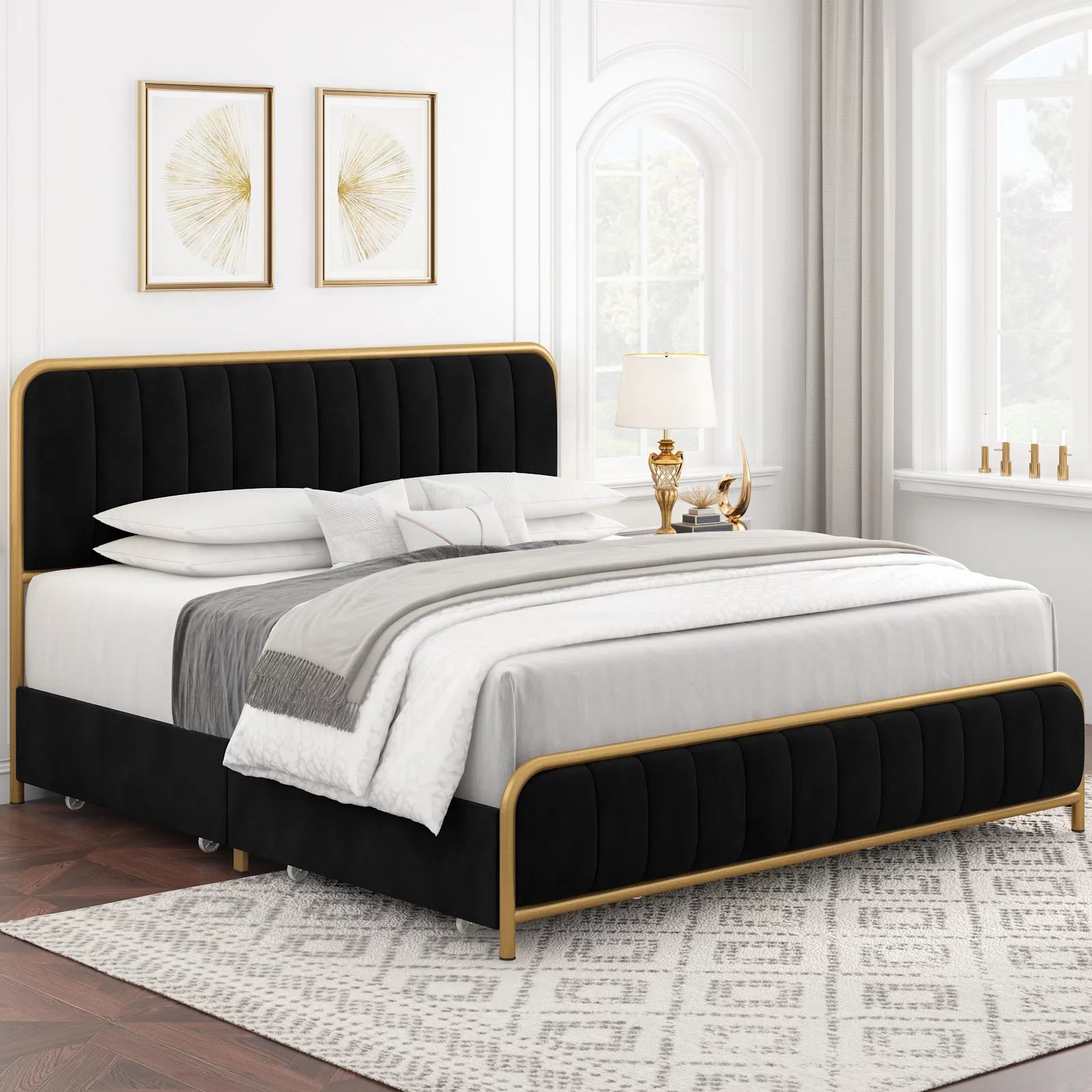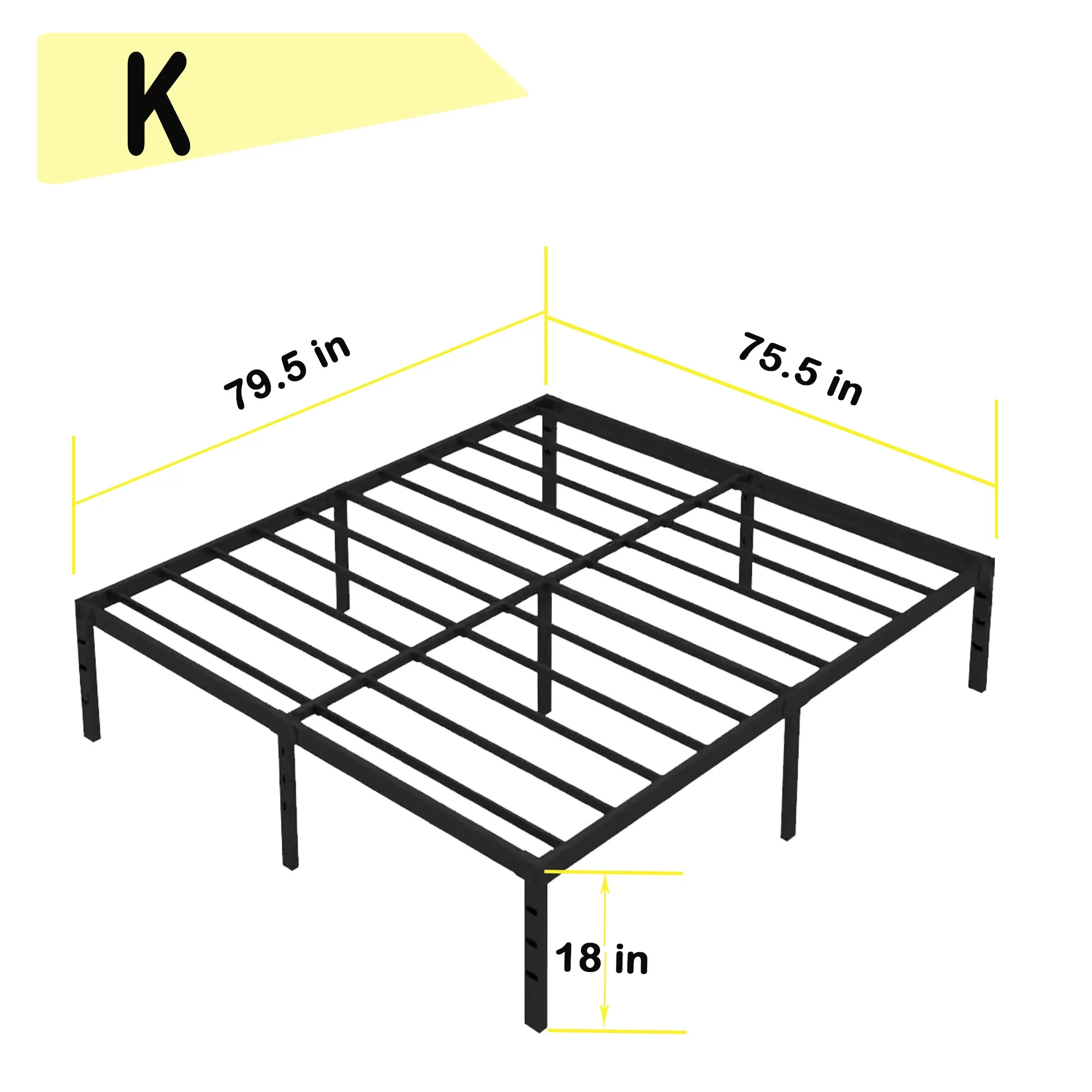LIKIMIO King Metal Bed Frame with Black Storage Headboard for Adults, Retro Black
