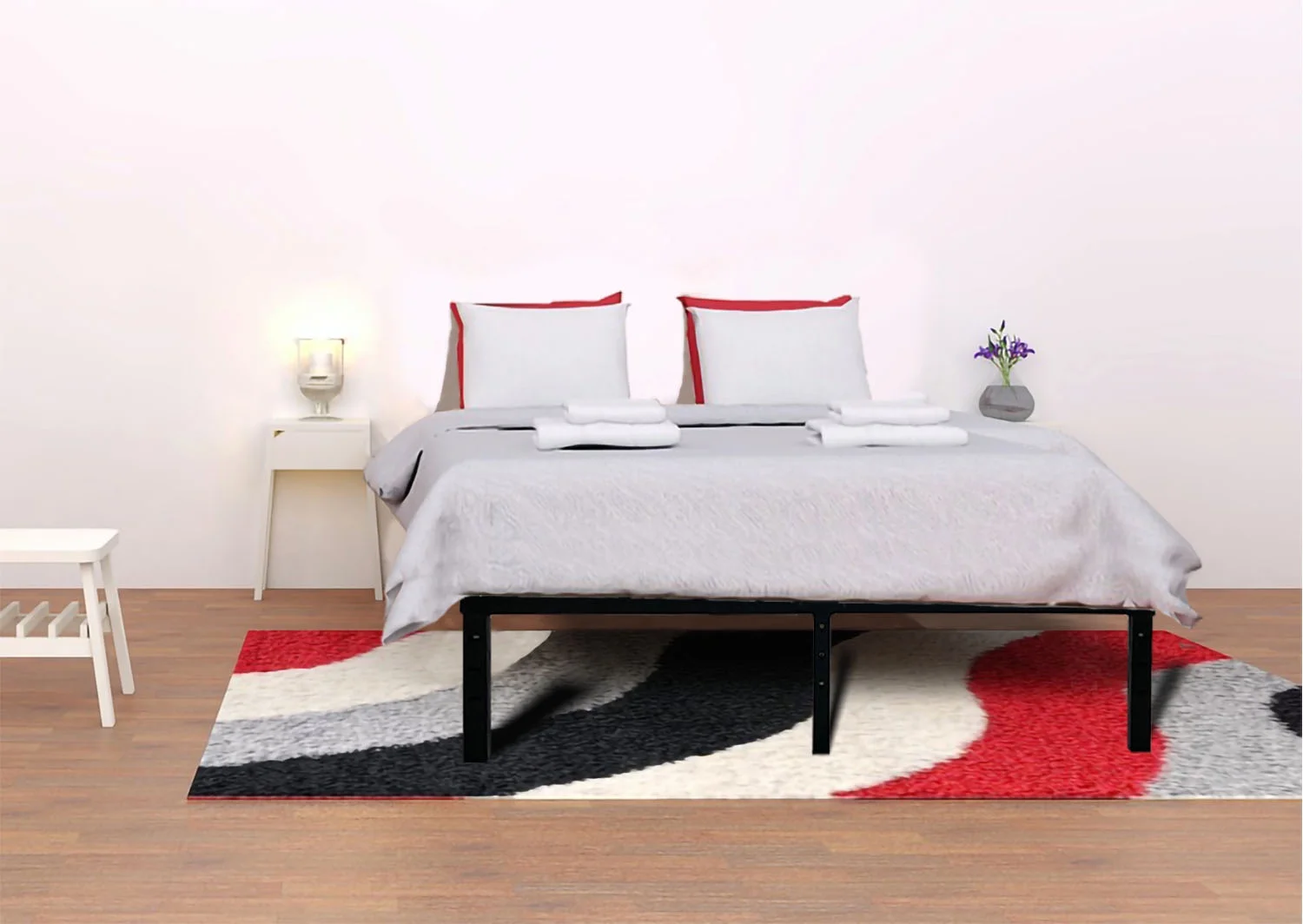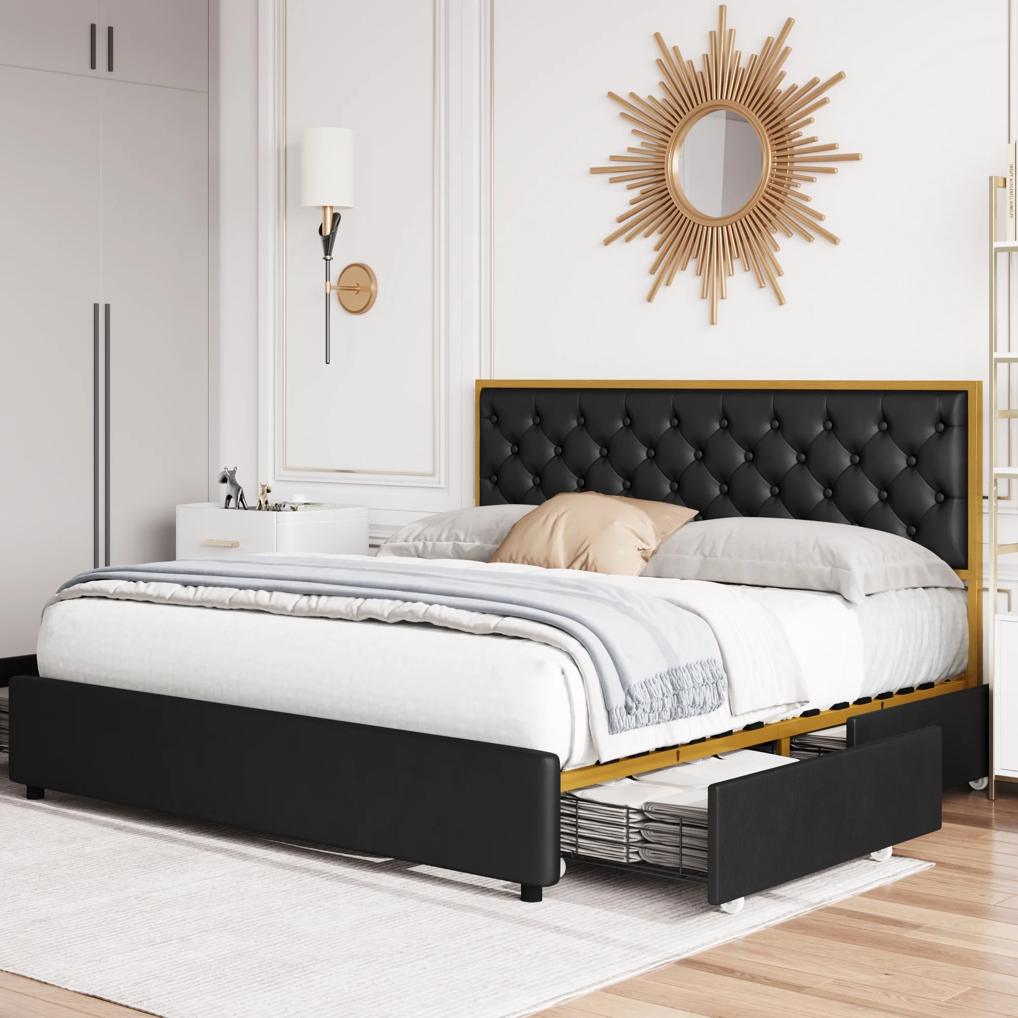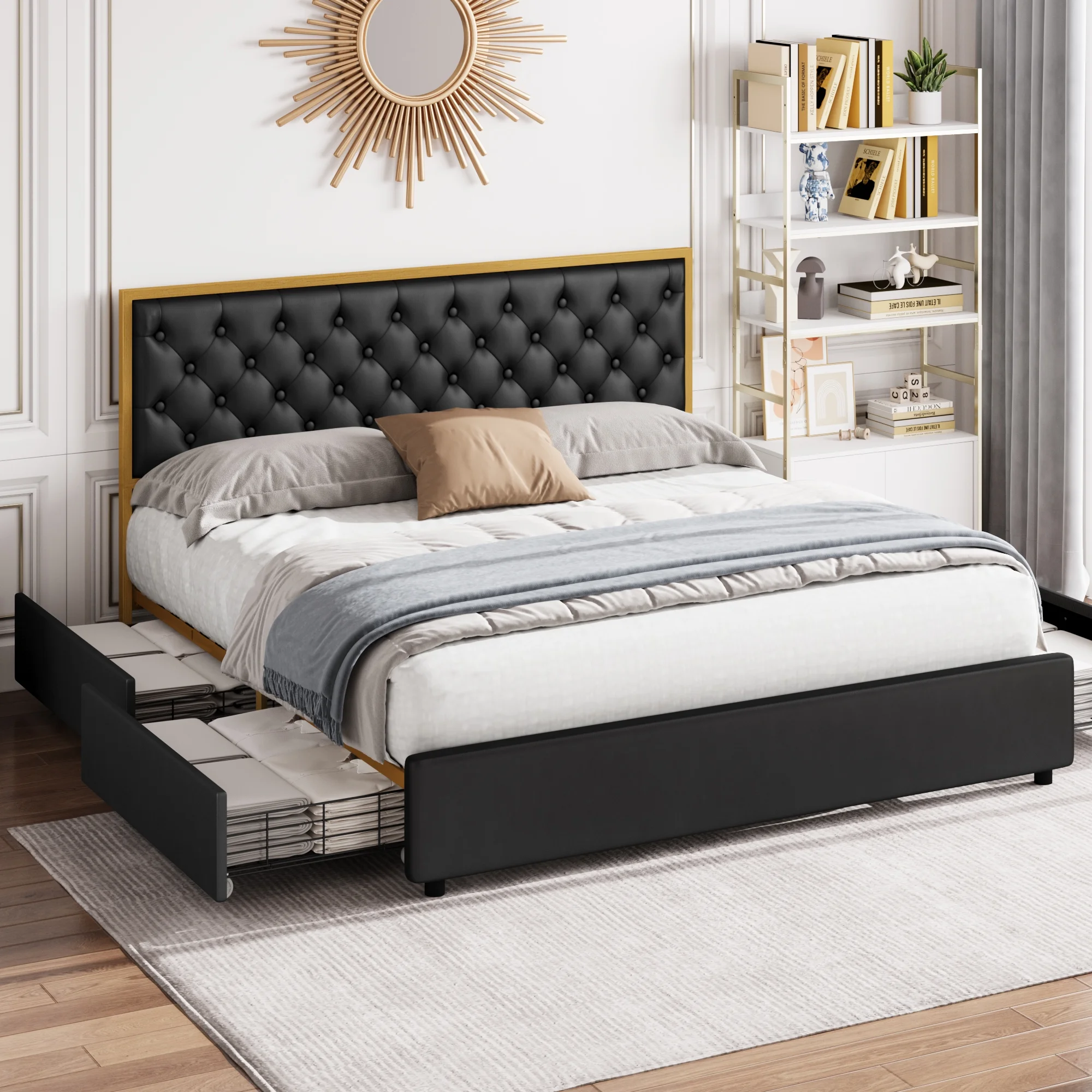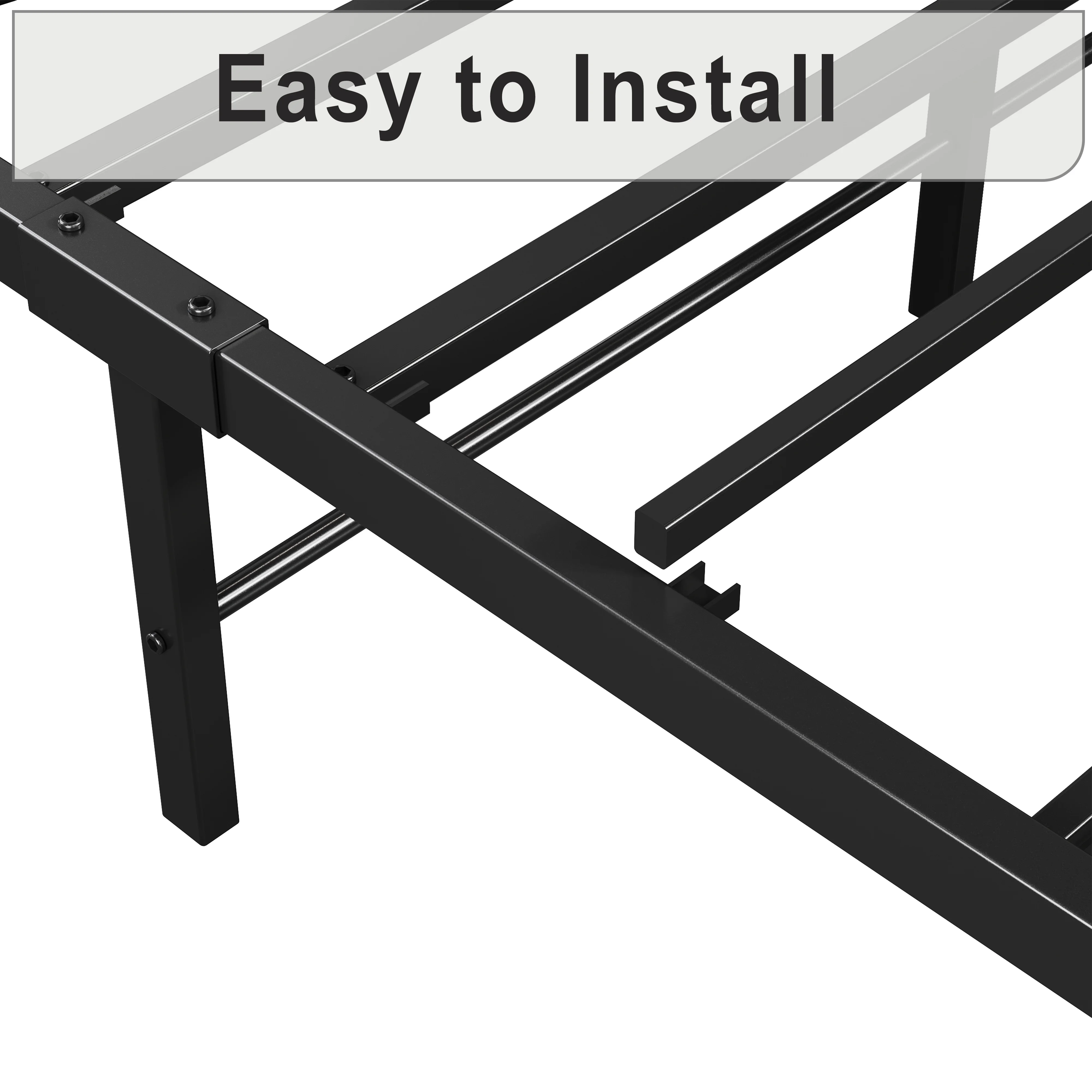 LIKIMIO King Metal Bed Frame with Black Storage Headboard for Adults, Retro Black