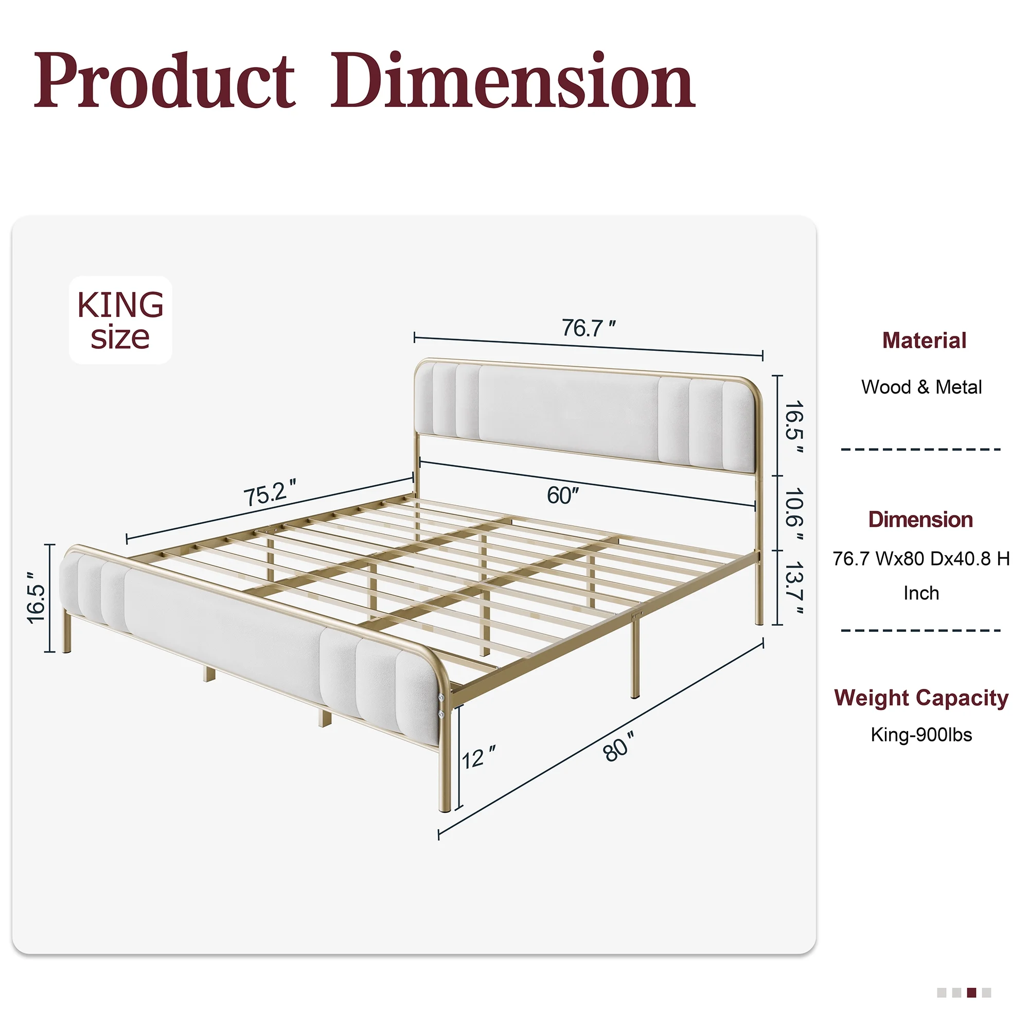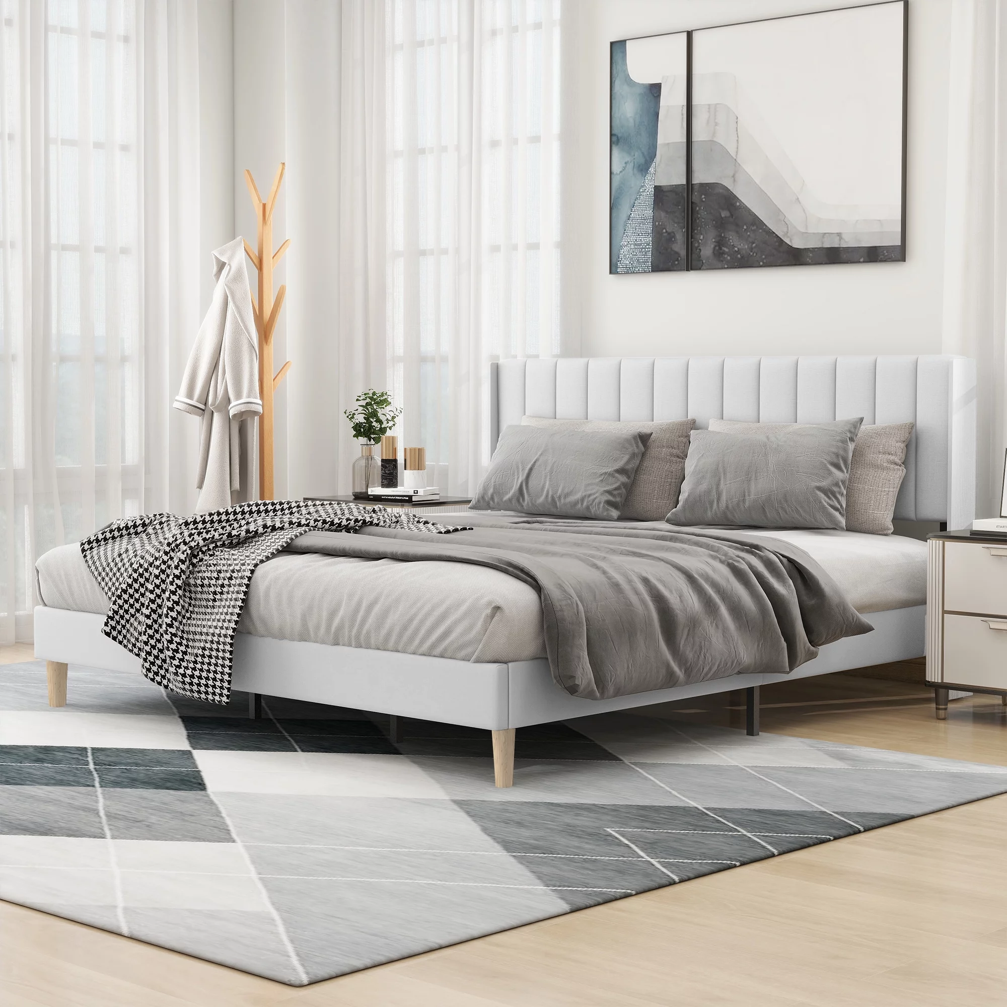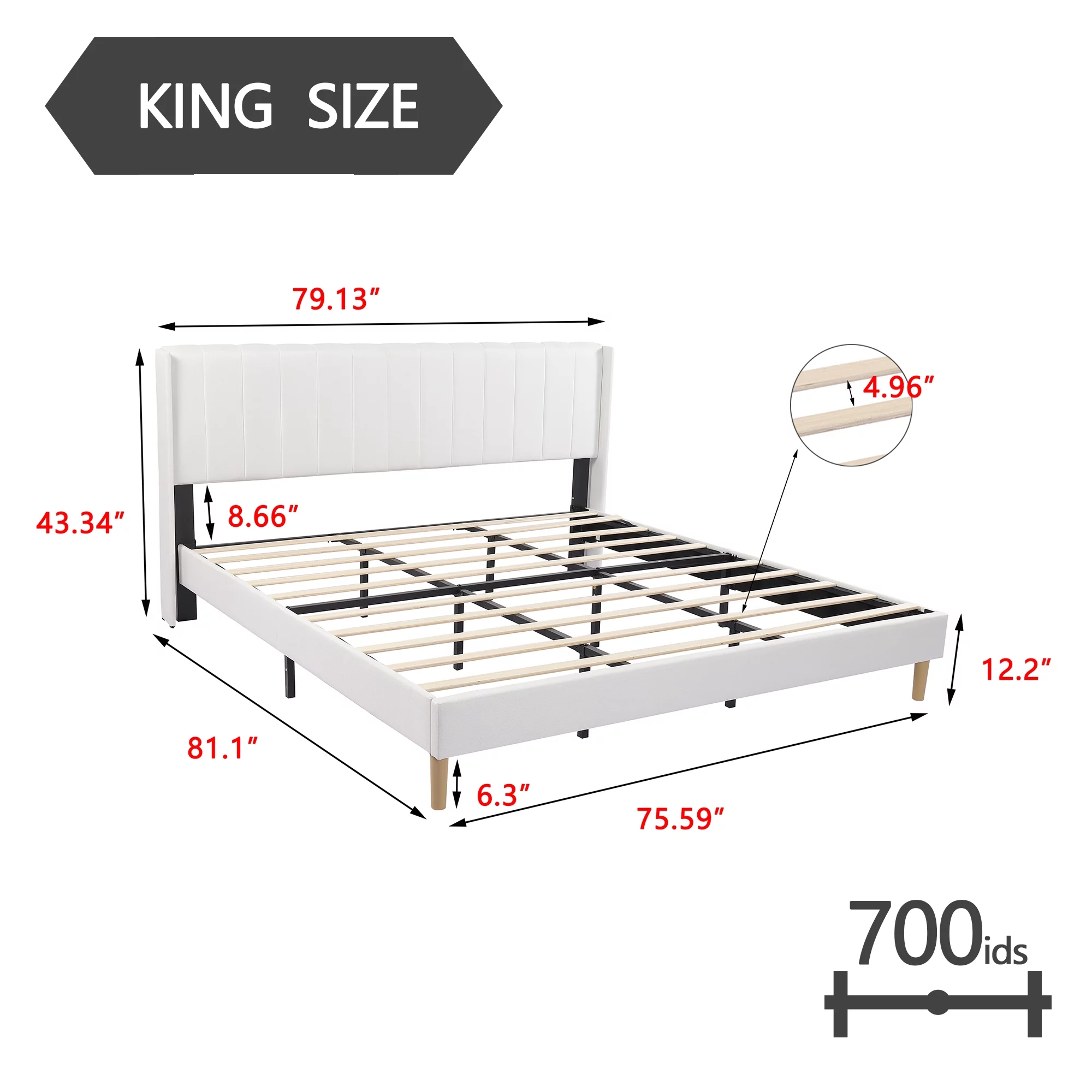 alazyhome King Size Upholstered Platform Bed Frame, Easy Assemble, White