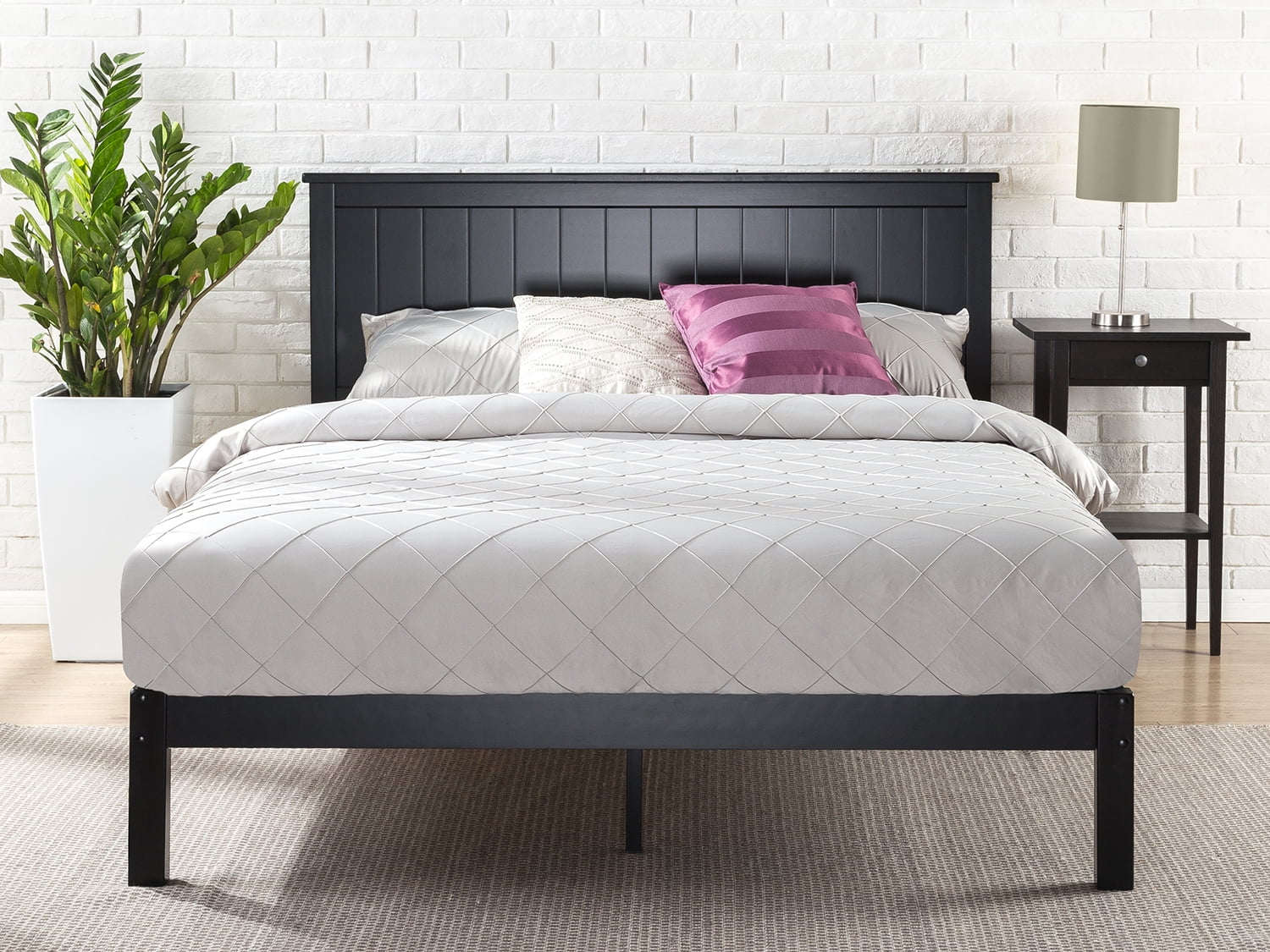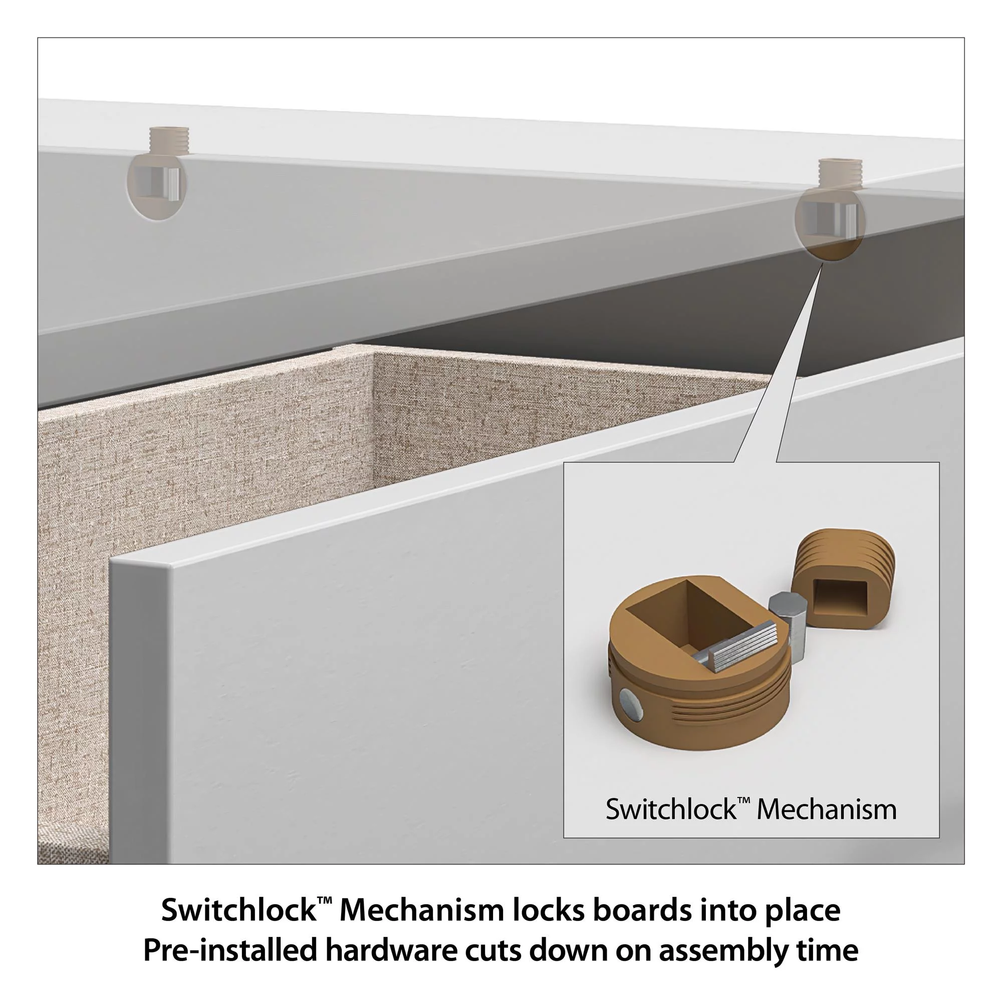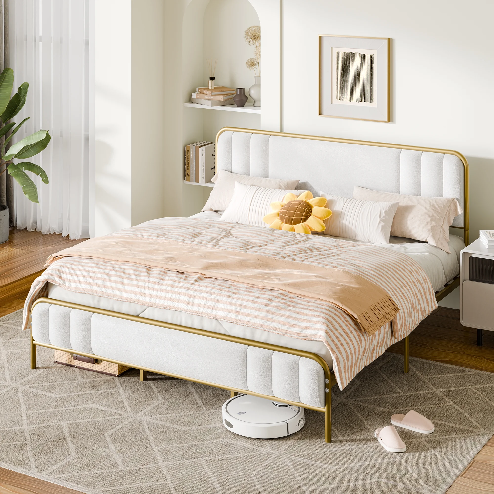 alazyhome King Size Upholstered Platform Bed Frame, Easy Assemble, White