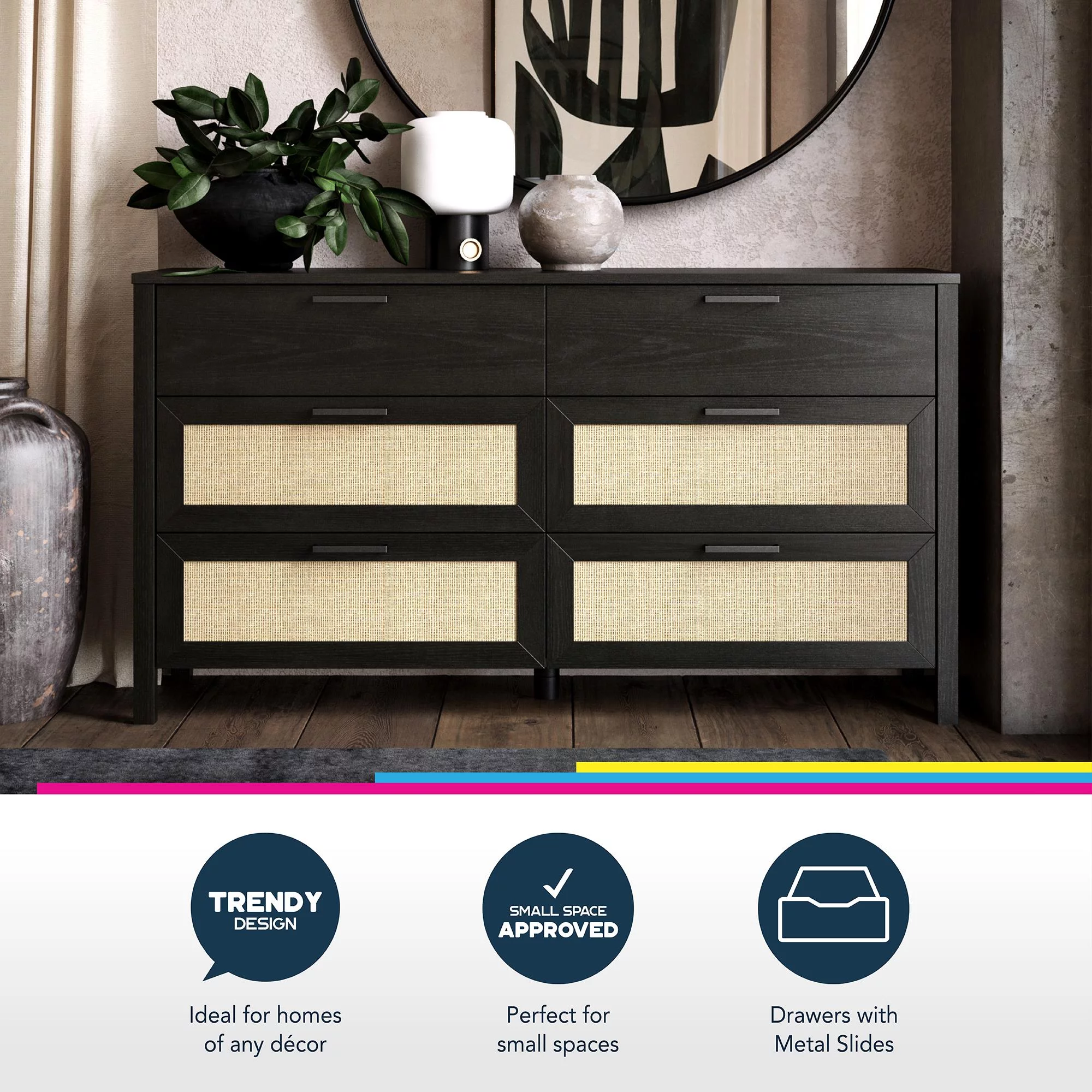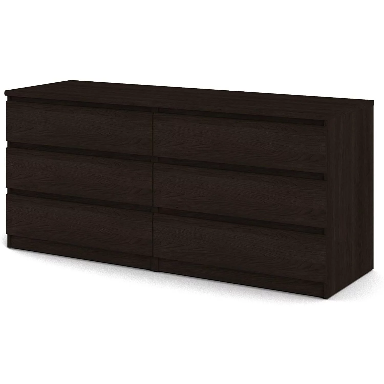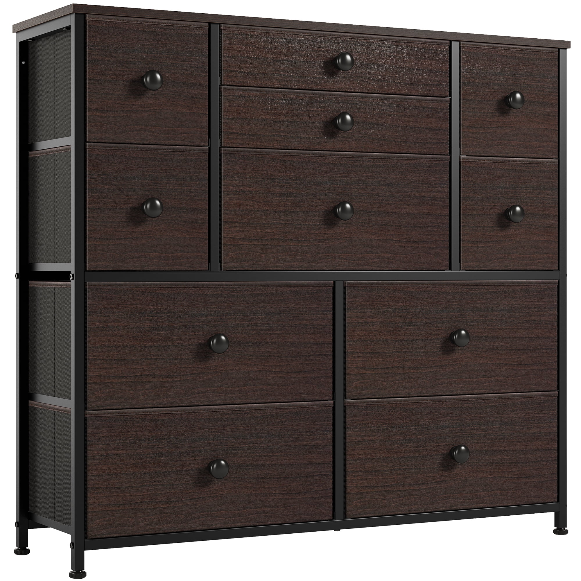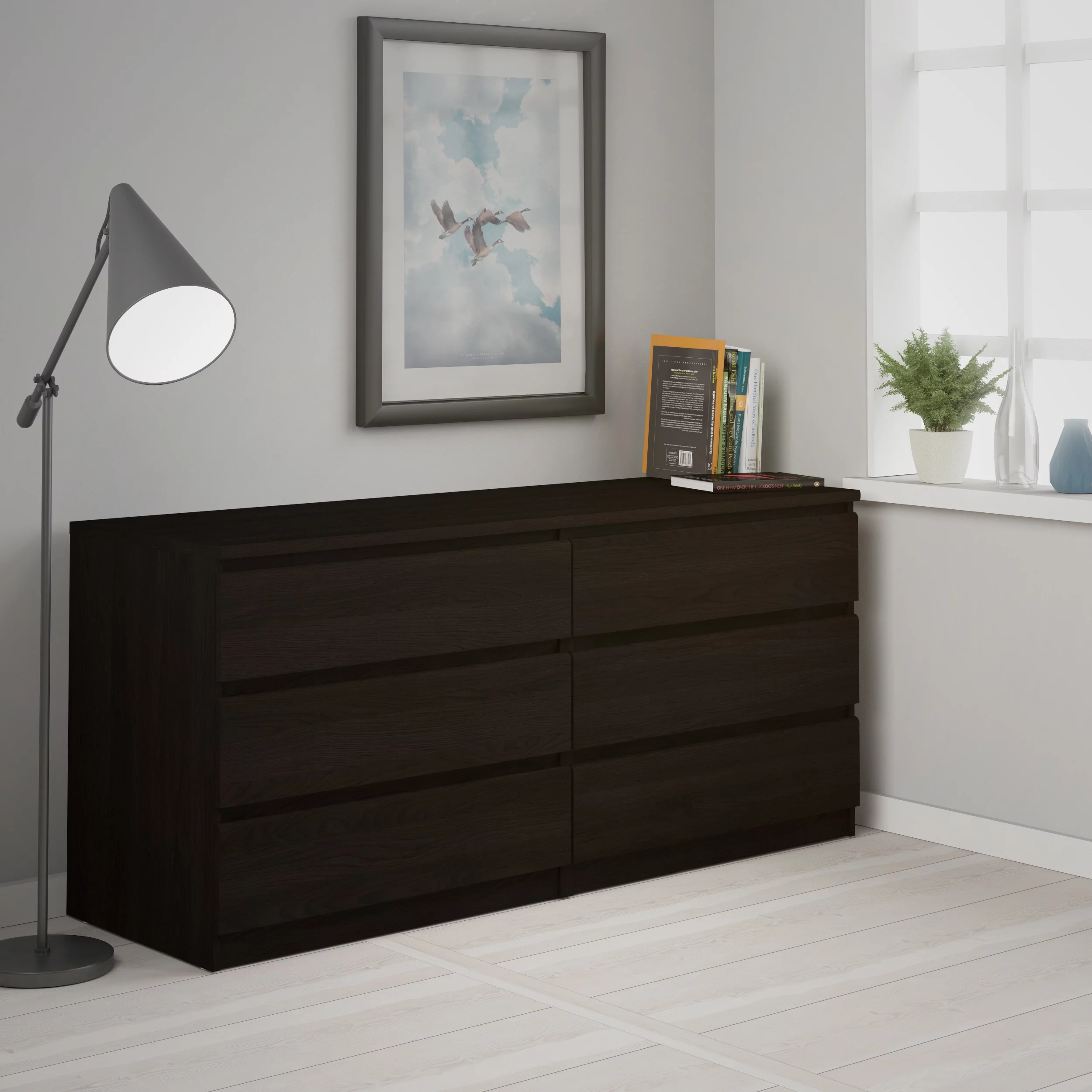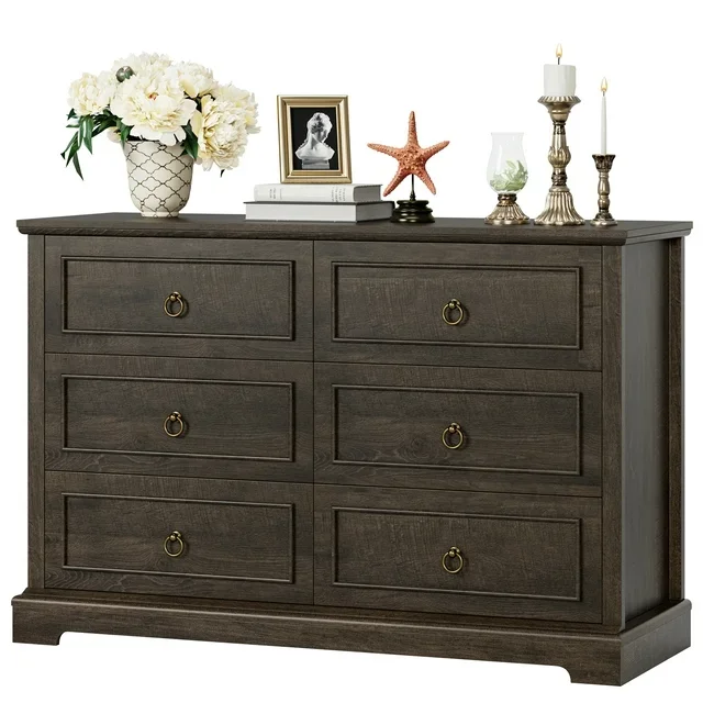 Homfa Double Dresser with 6 Drawers, 47'' Wide Chest of Drawers for Bedroom, Storage Cabinet for Living Room, Dark Brown