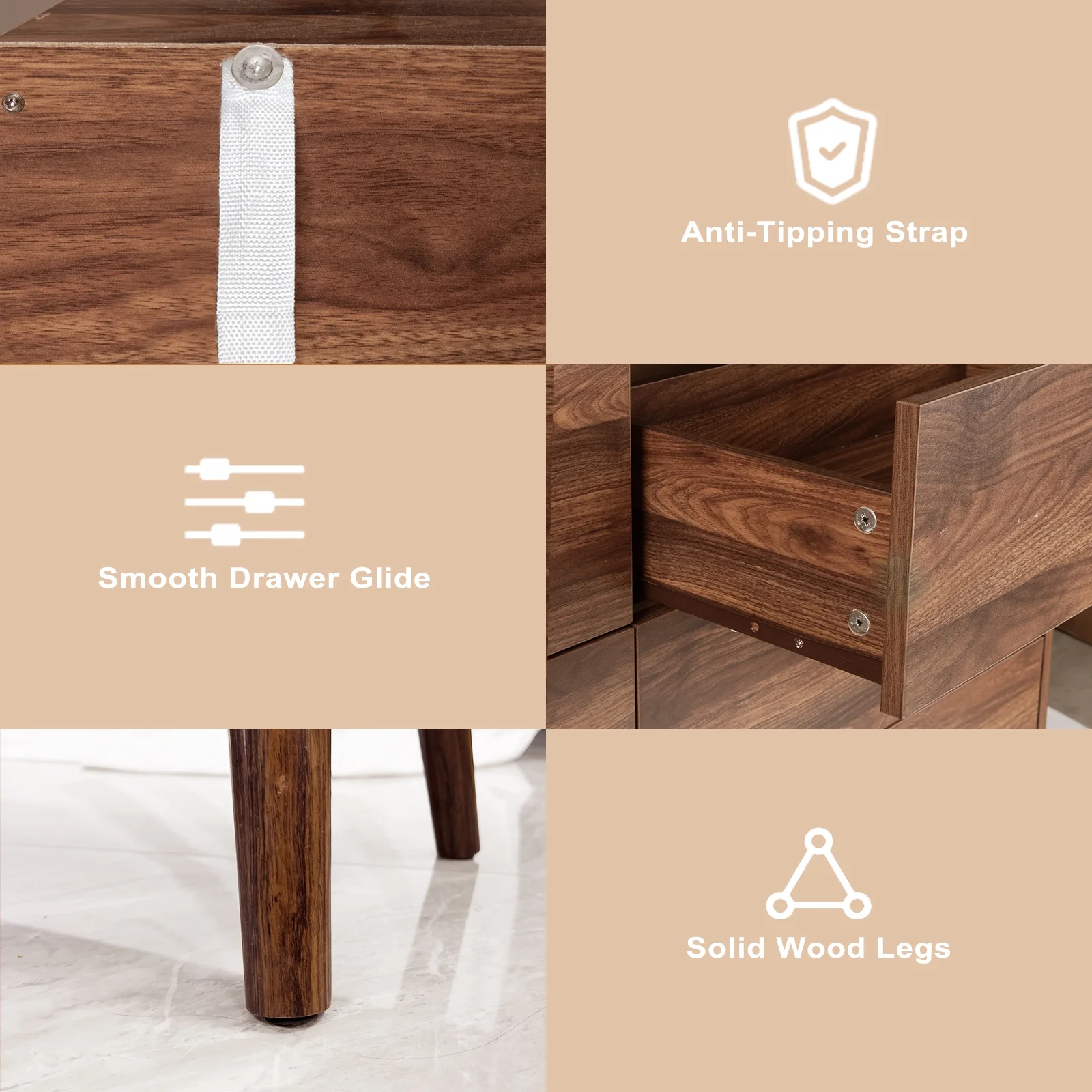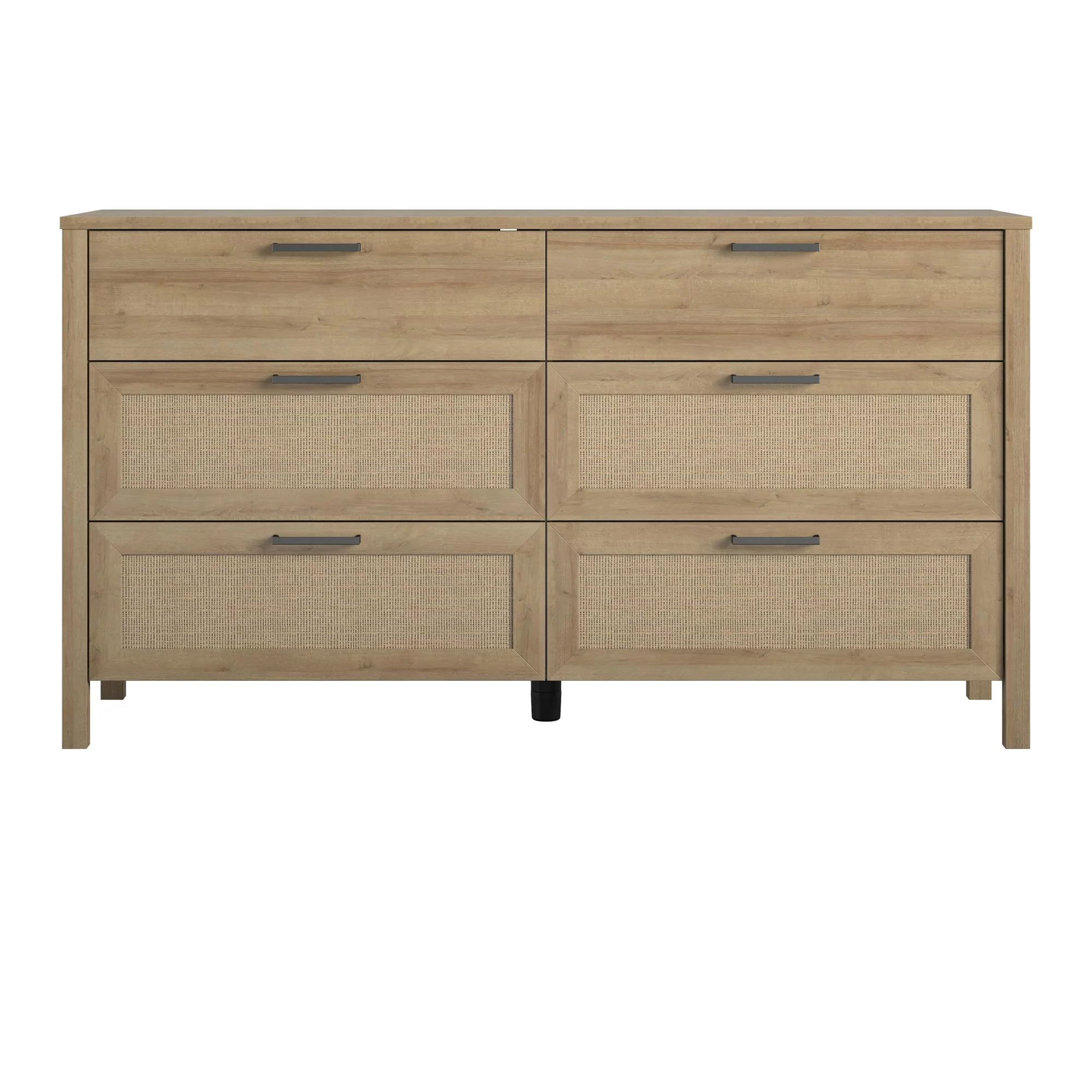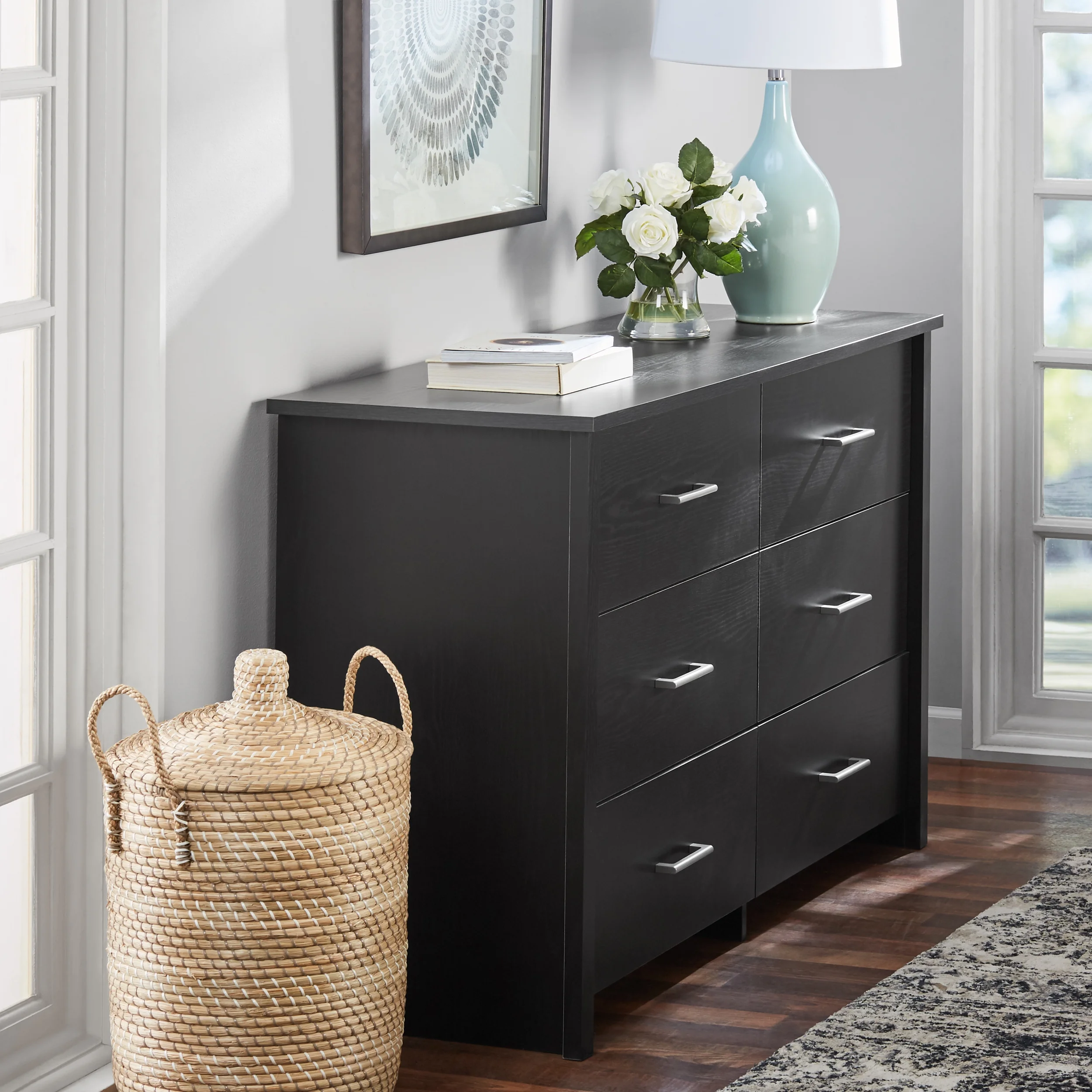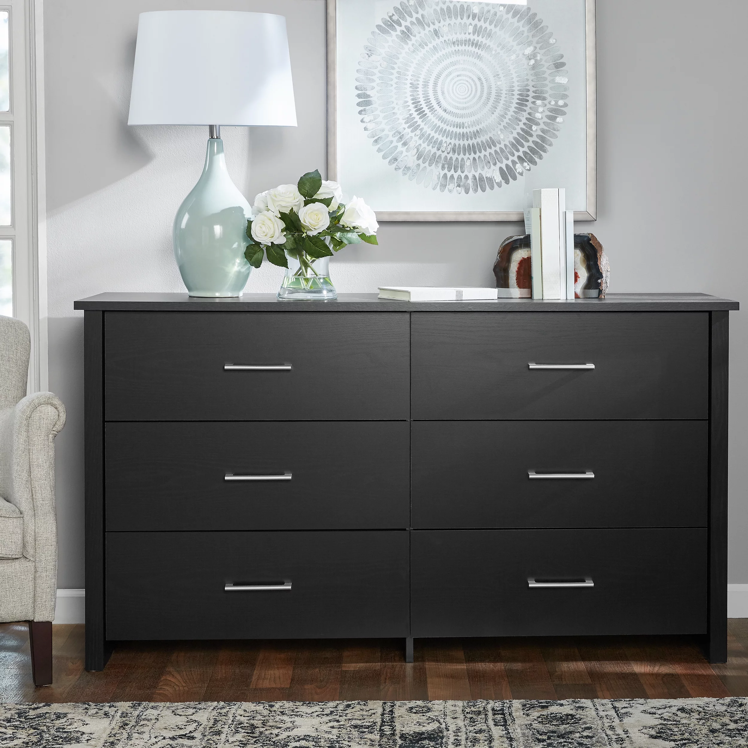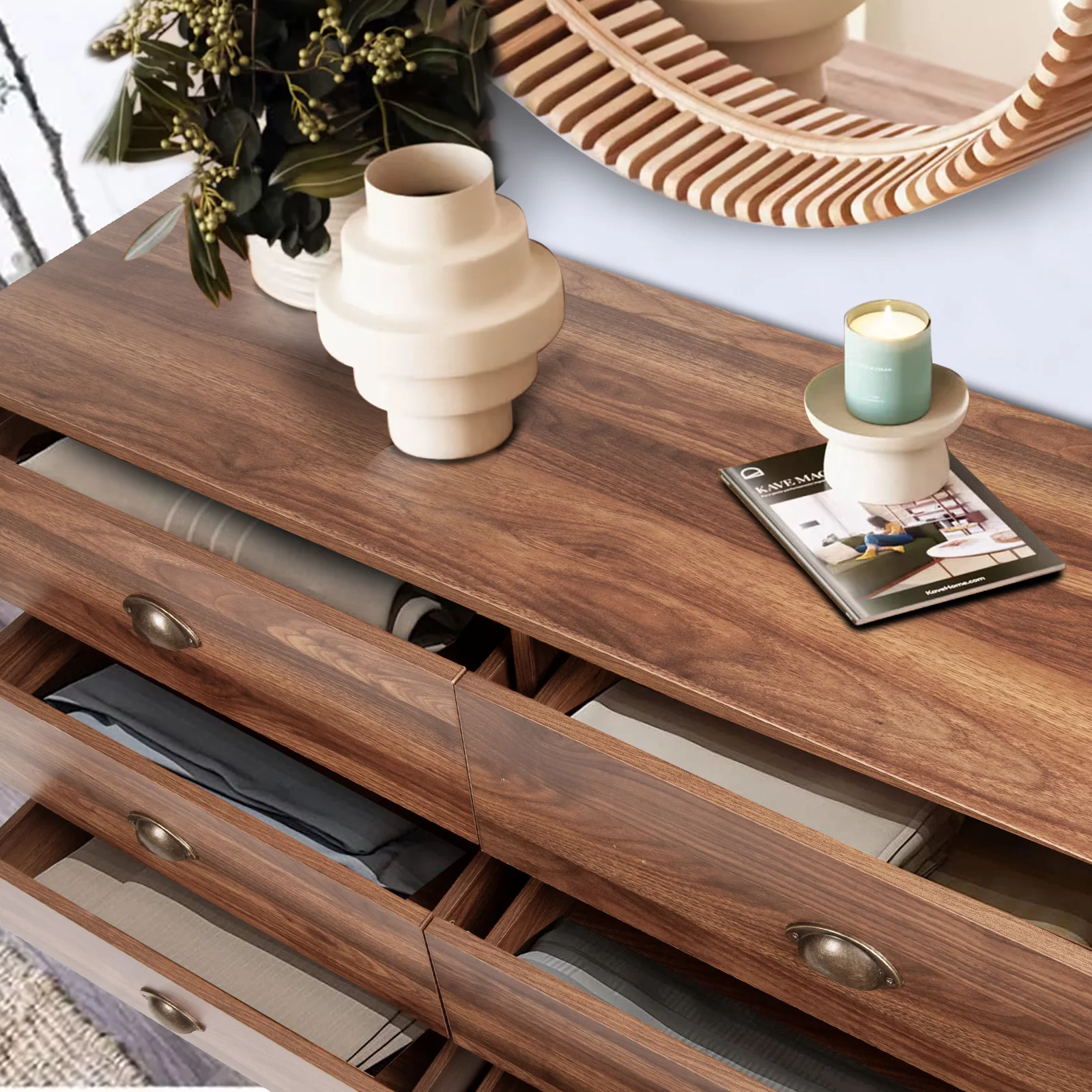 Polar Aurora Wood Dresser for Bedroom with 6 Drawers, Mid Century Modern Chests of Drawer with Metal Handles