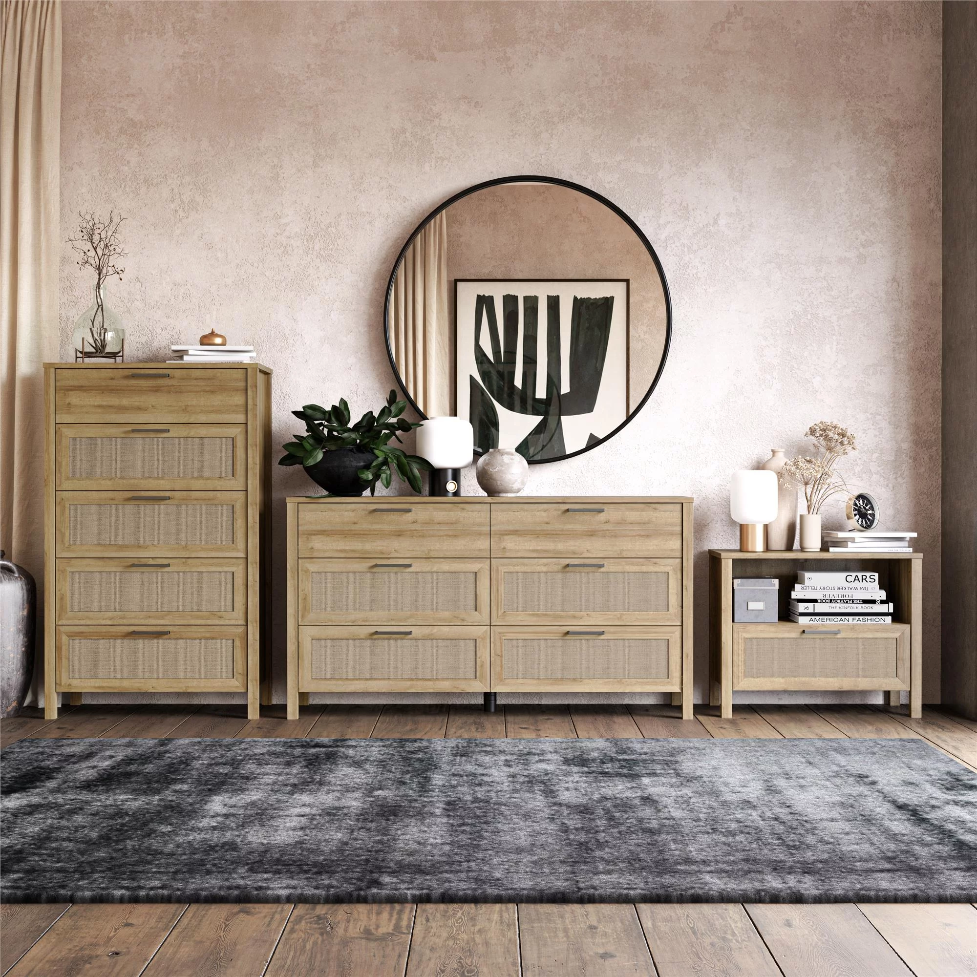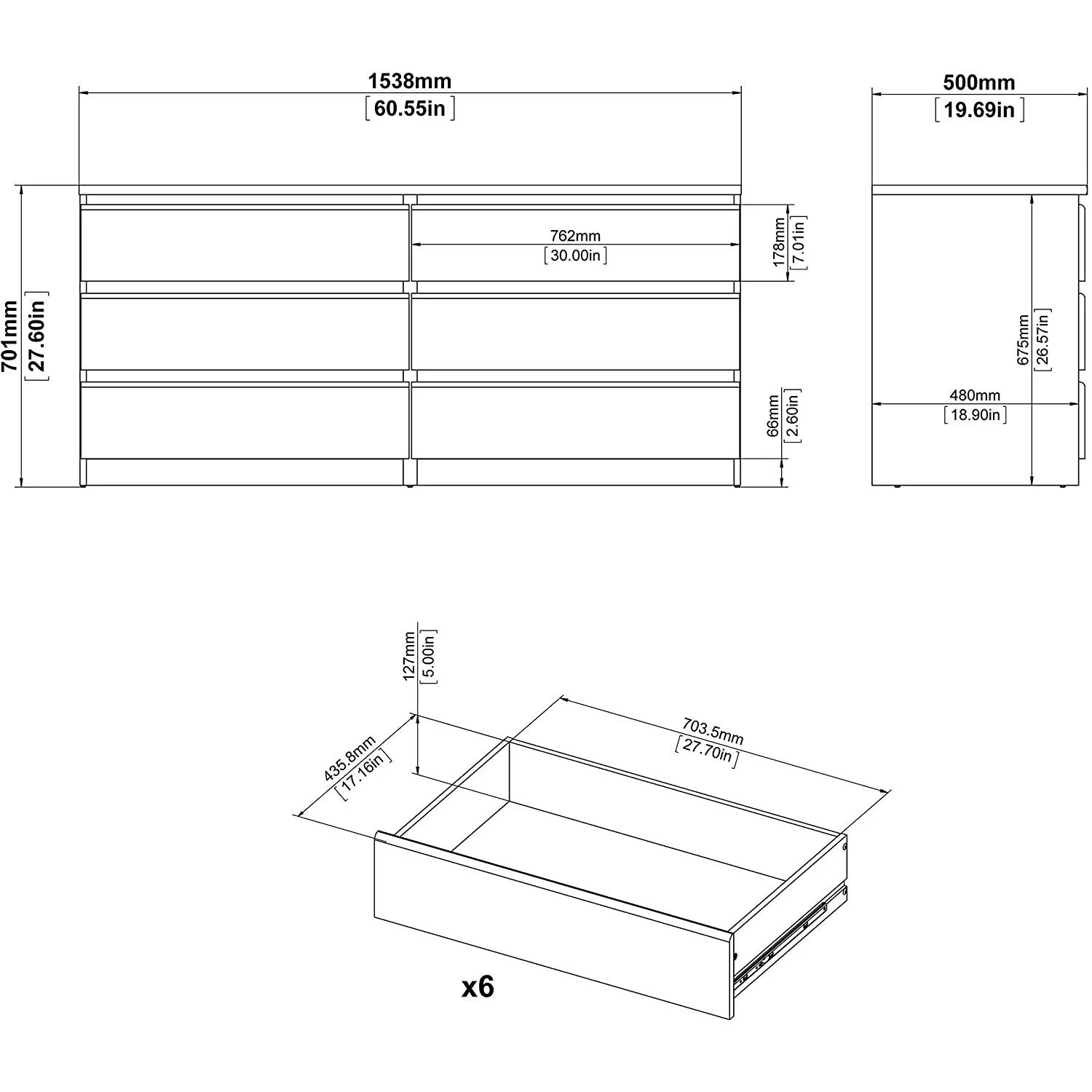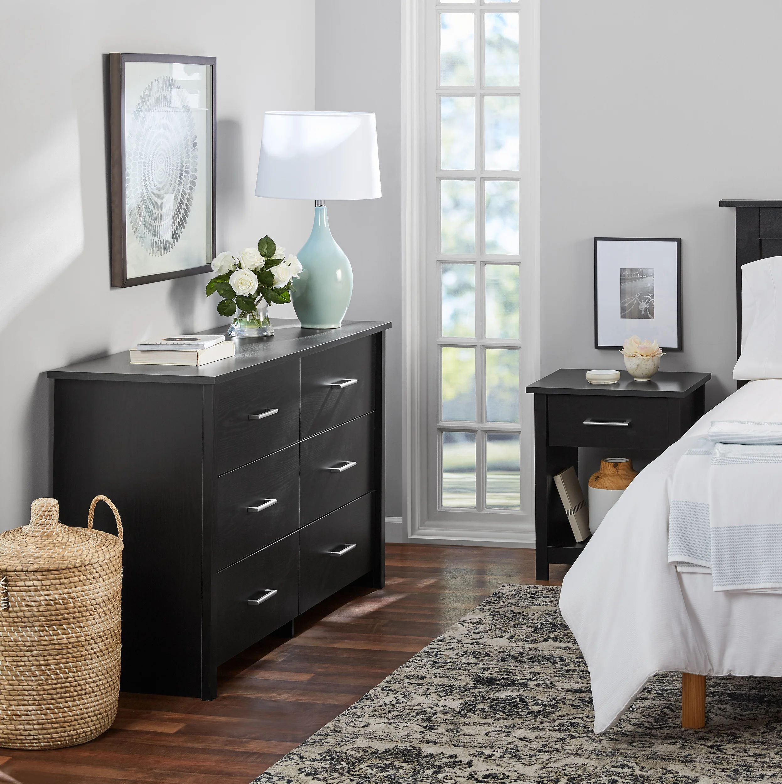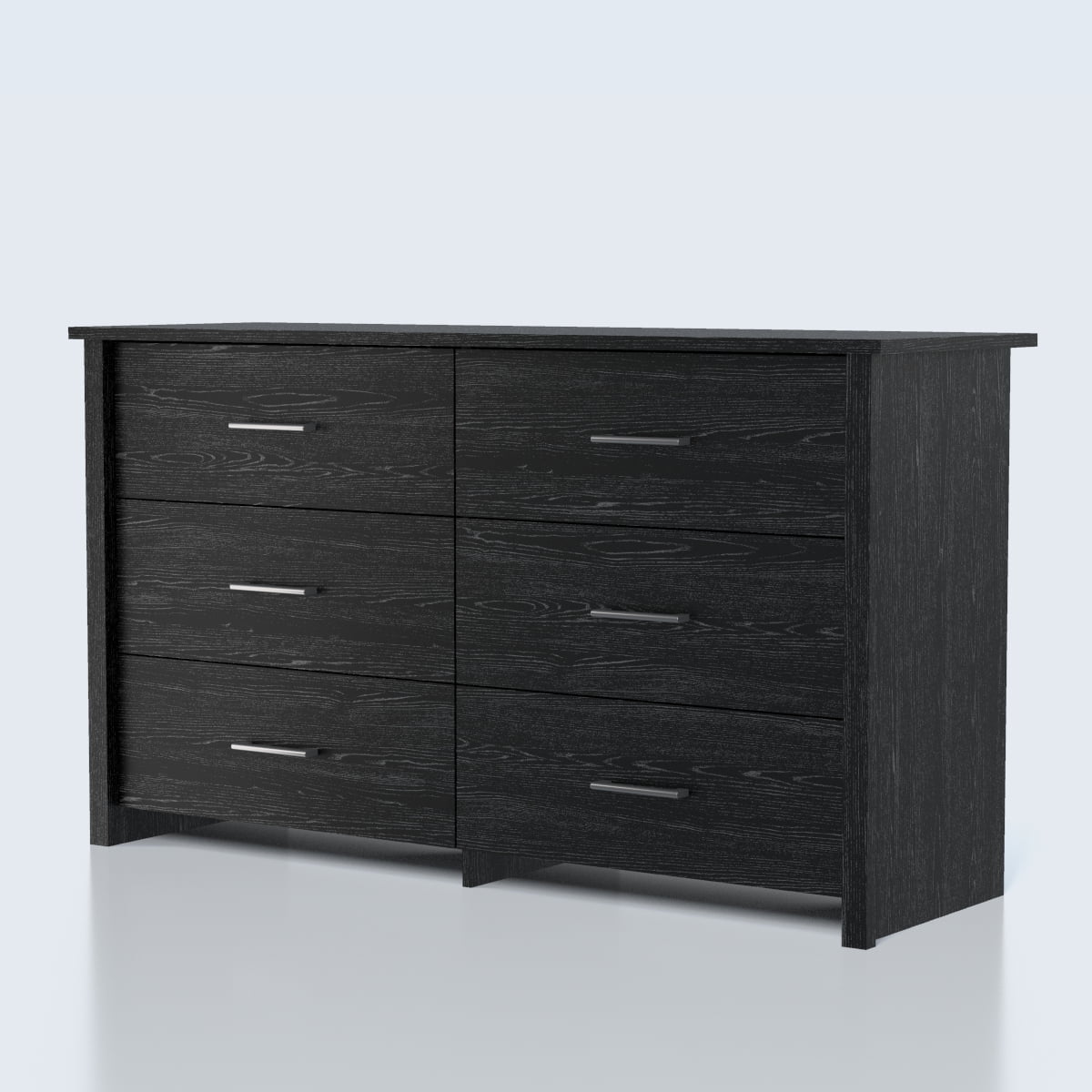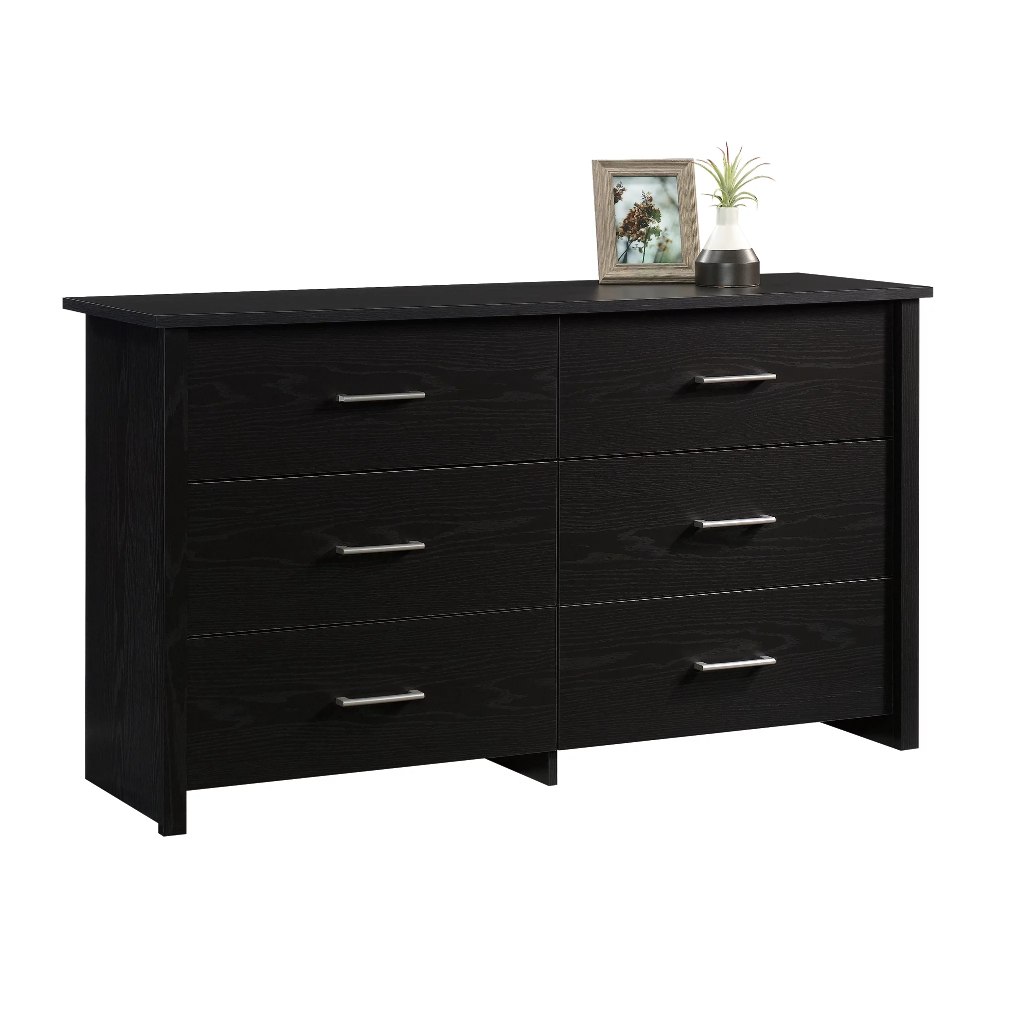 Polar Aurora Wood Dresser for Bedroom with 6 Drawers, Mid Century Modern Chests of Drawer with Metal Handles