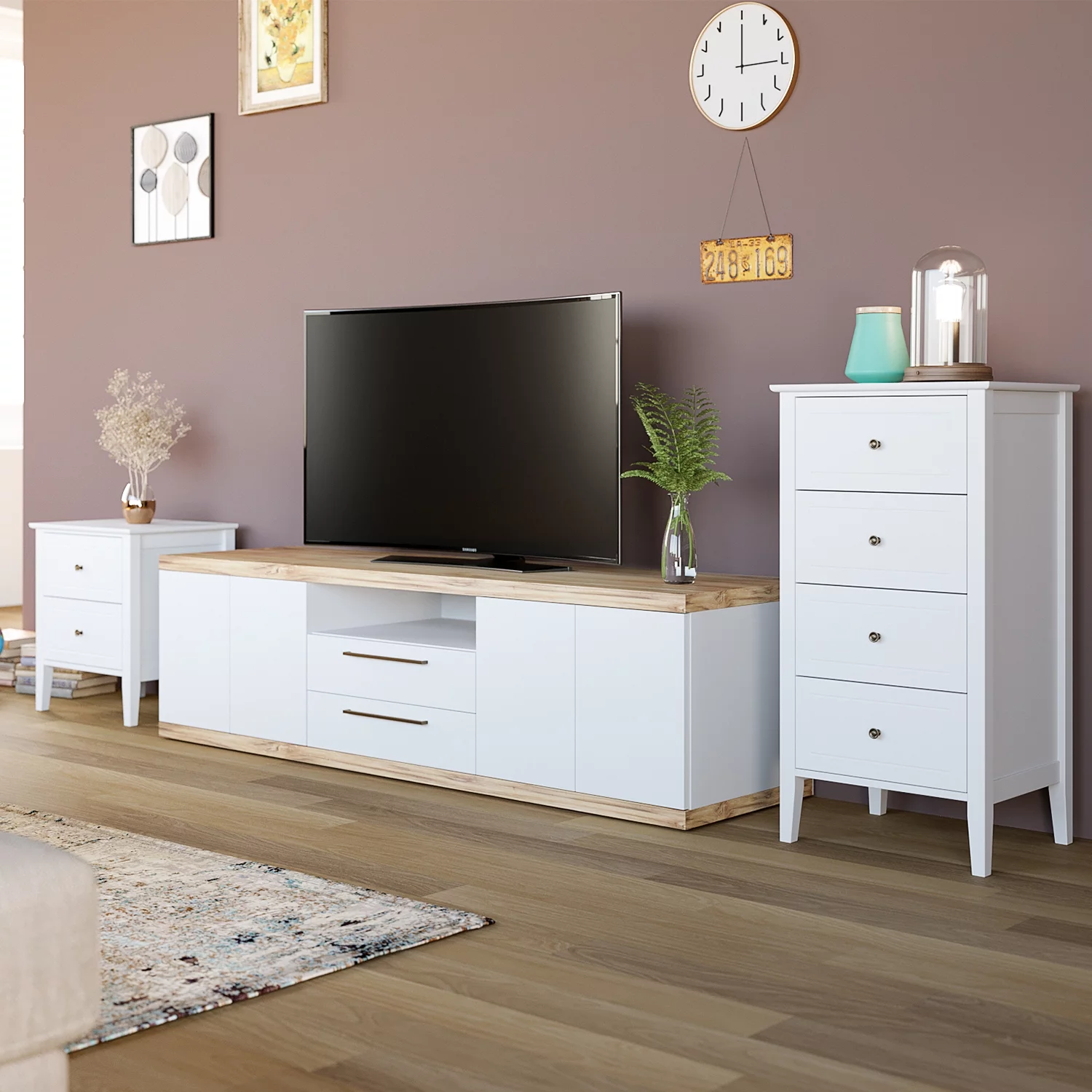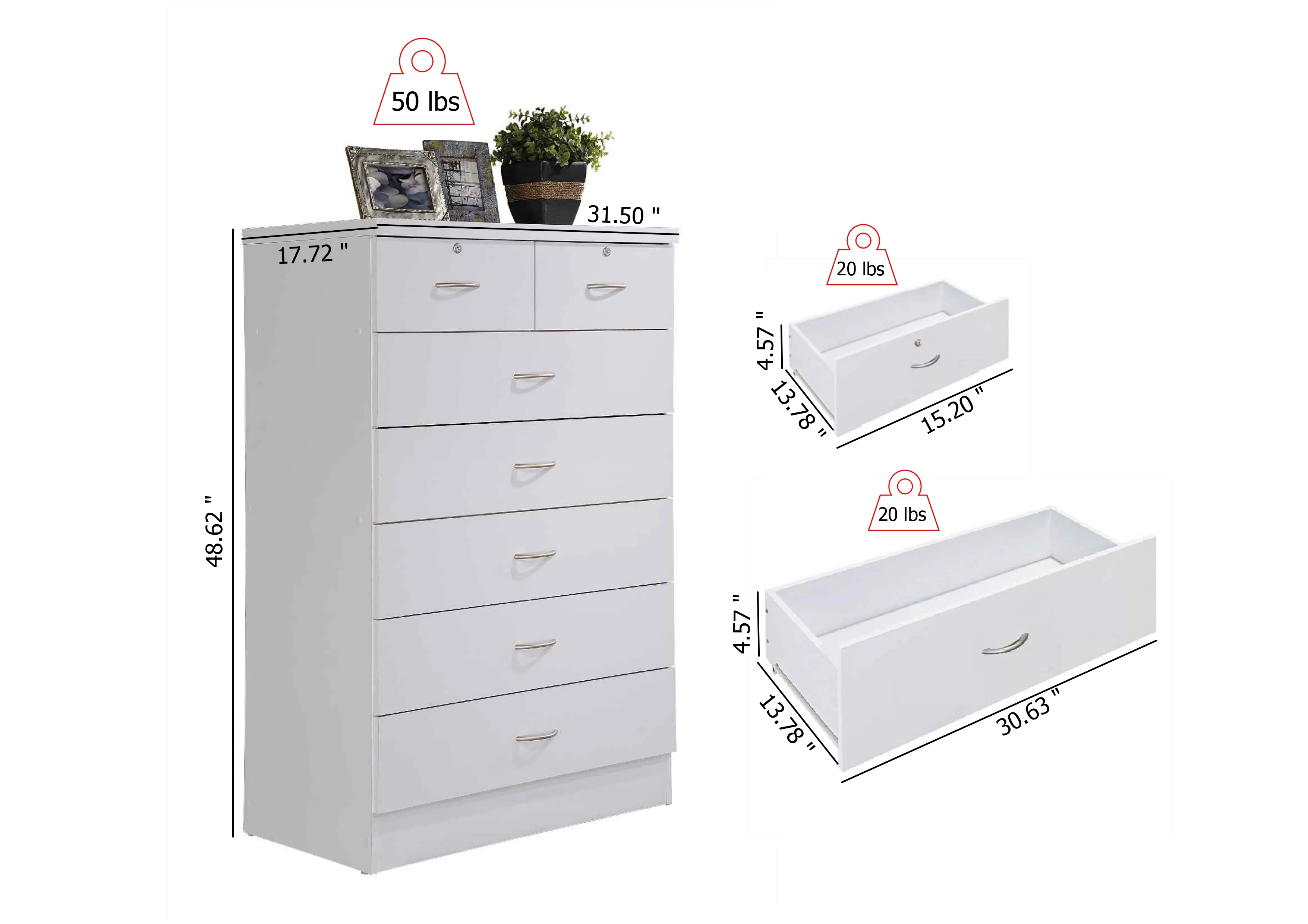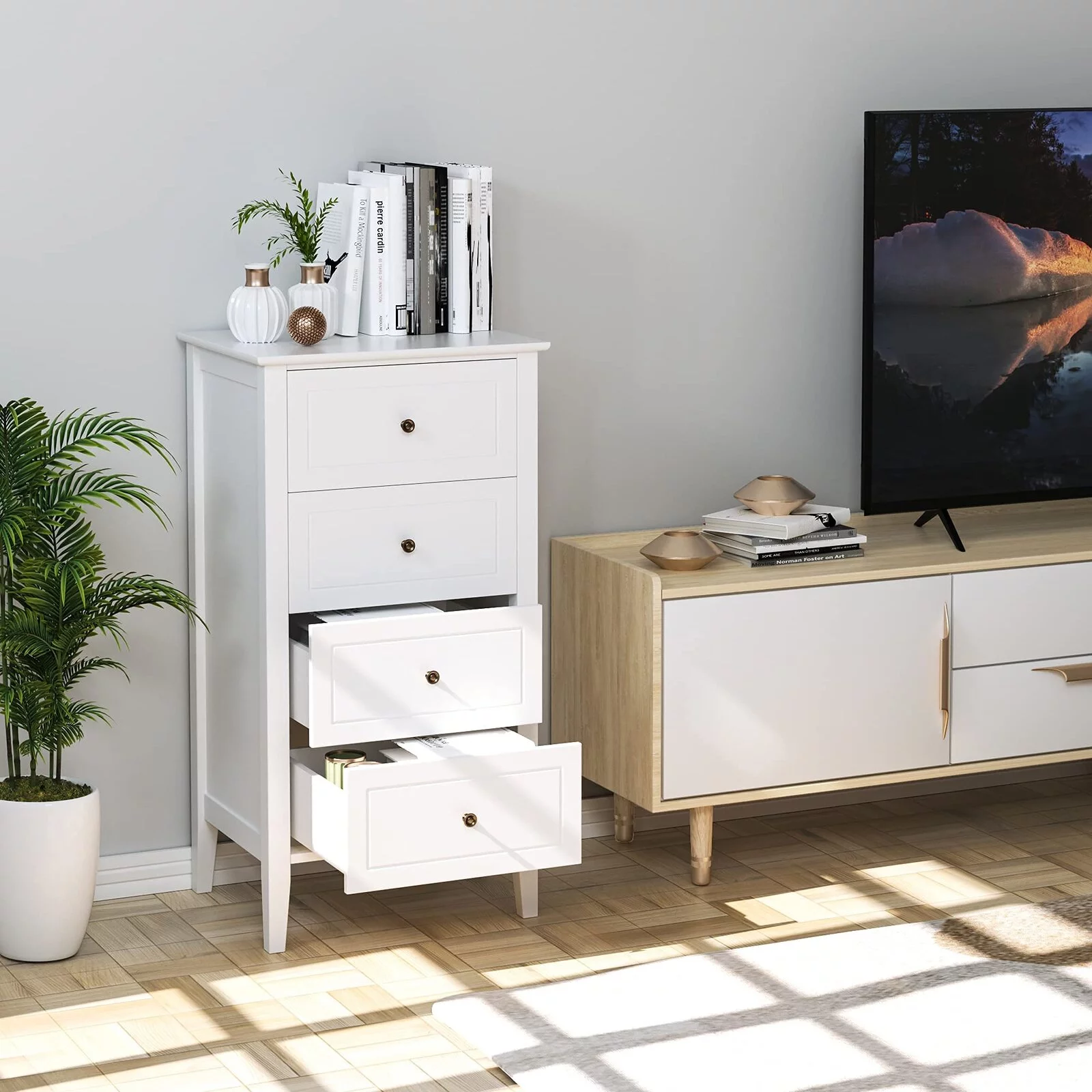 Homfa 4 Drawer White Dresser for Bedroom, Wood Nightstand Chest of Drawer with Tall Legs