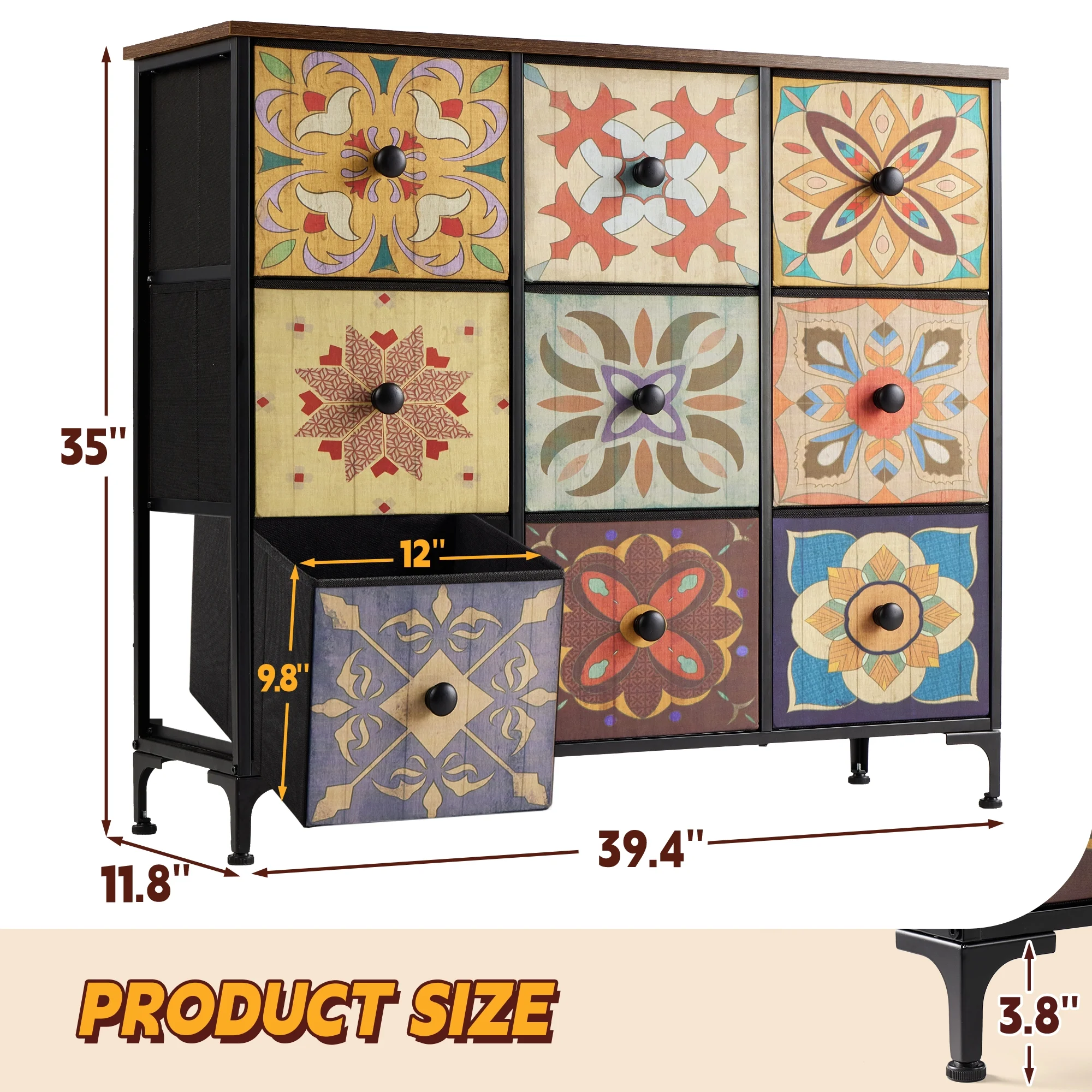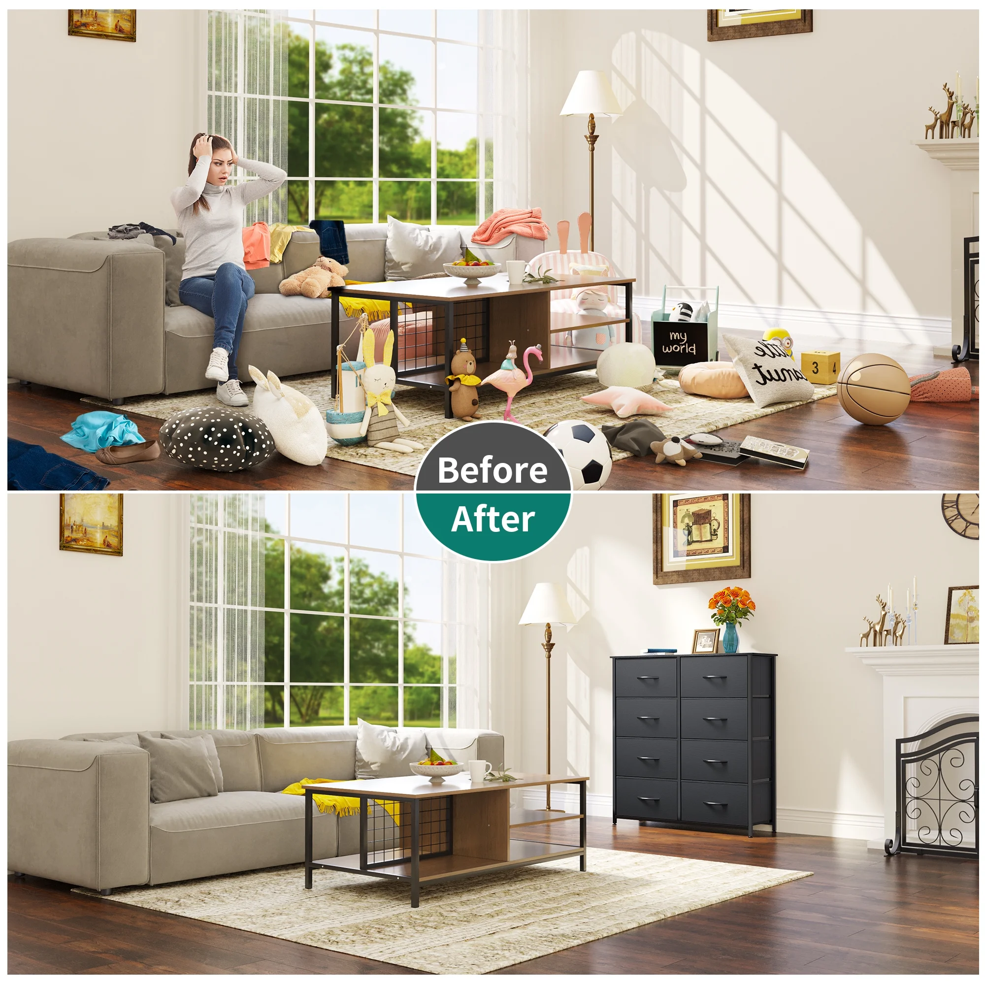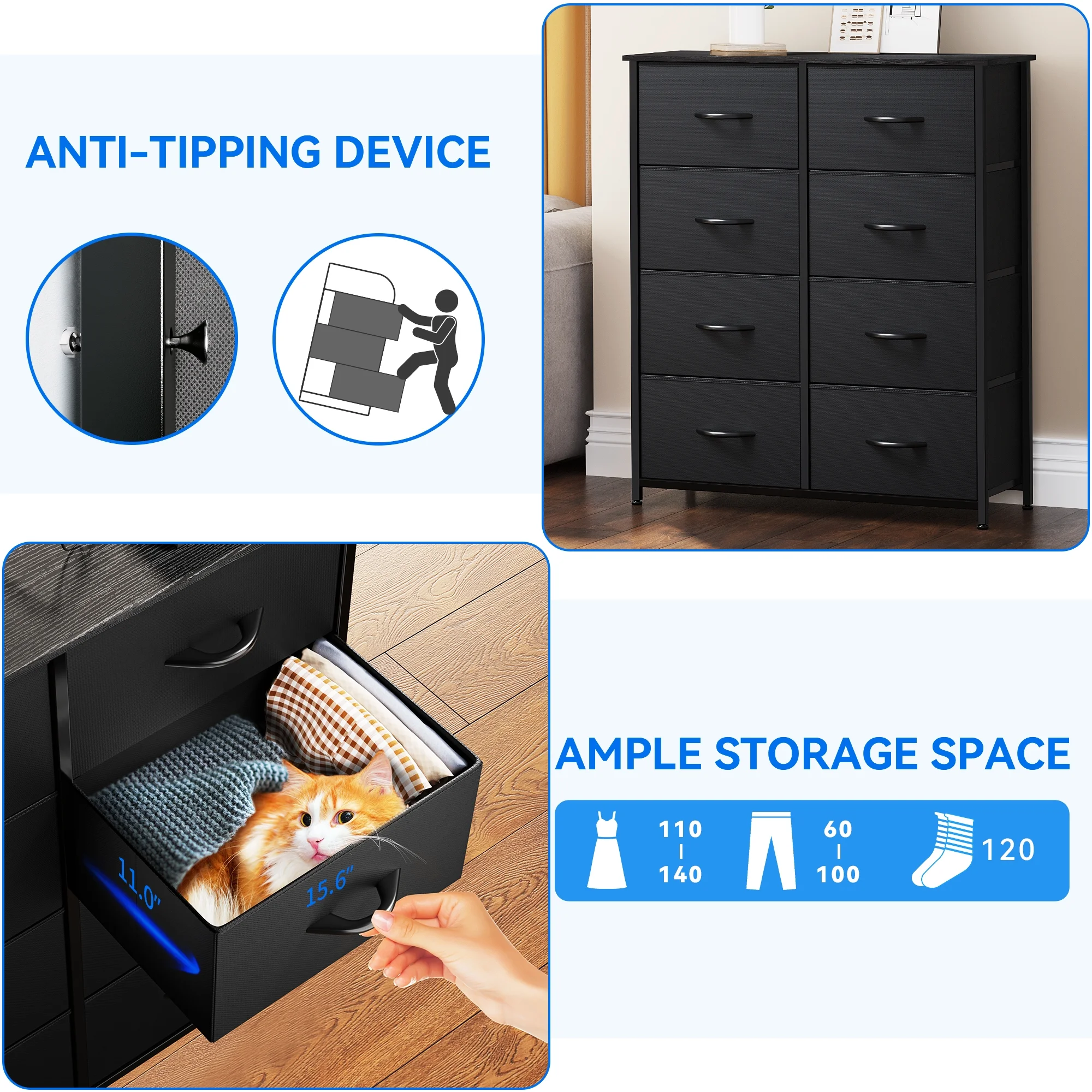 Dextrus 8 Drawer Dresser for Bedroom, Tall Dresser with Fabric Bins, Storage Tower Unit, Chest of Drawers