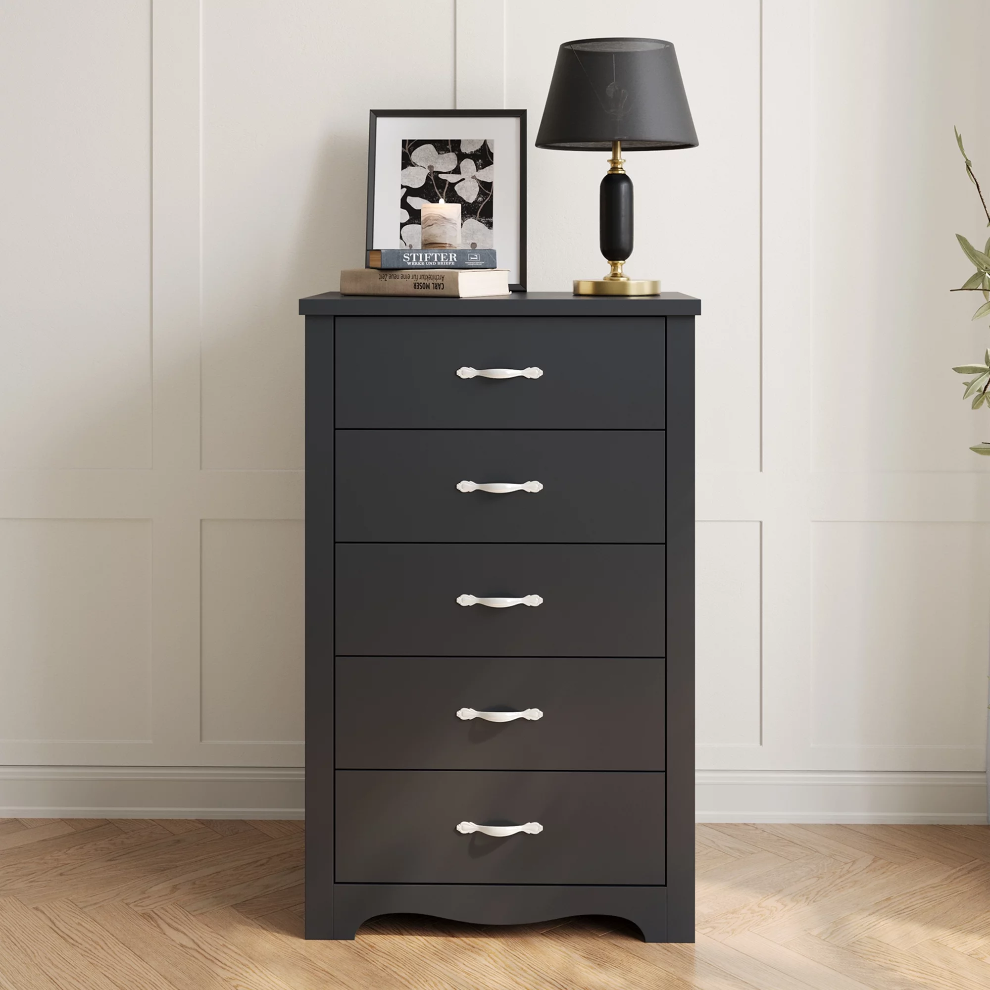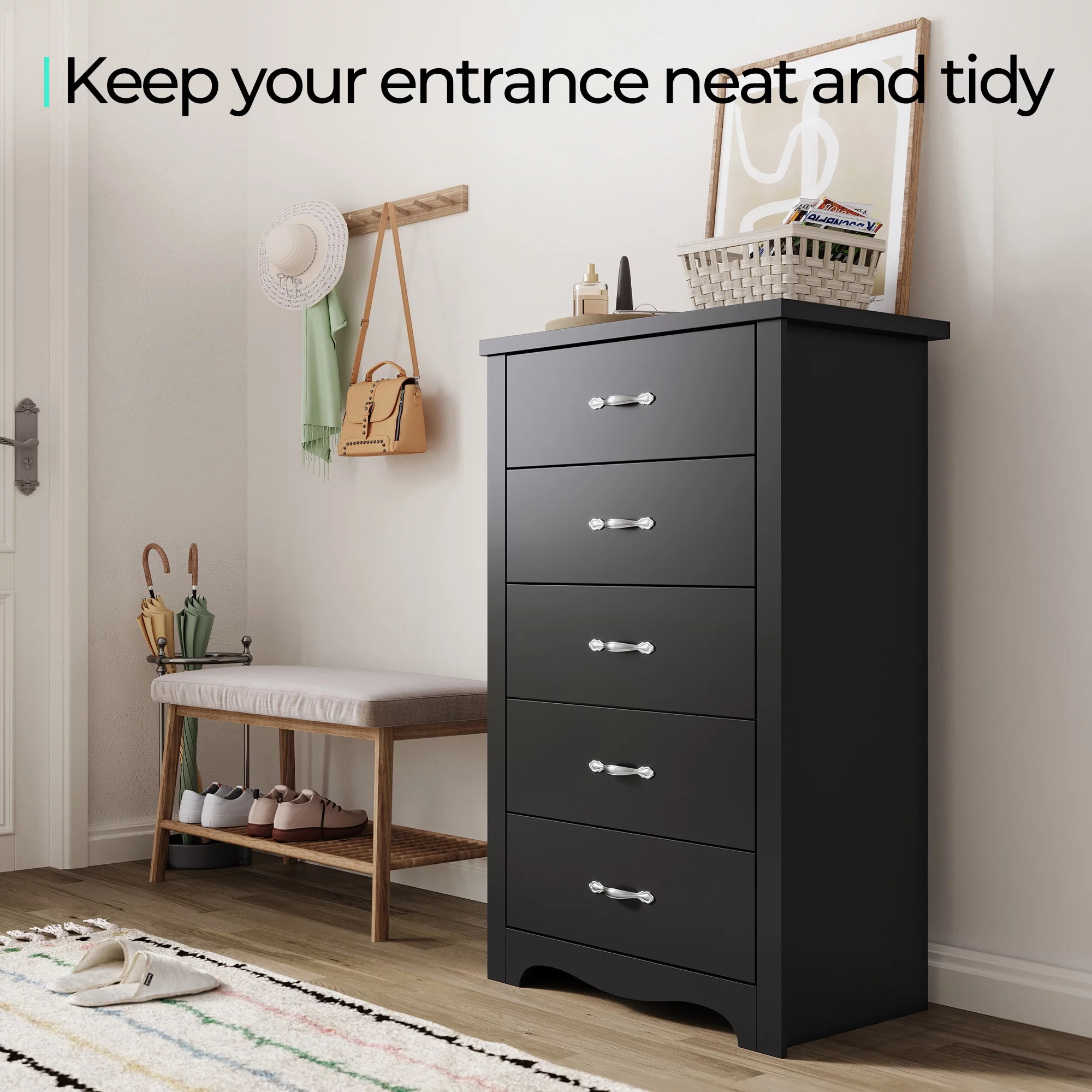 LINSY HOME Dressers for Bedroom, 5 Drawers Chest, Nursery Dresser Organizer, Tall Dresser Chest of Drawers - Black