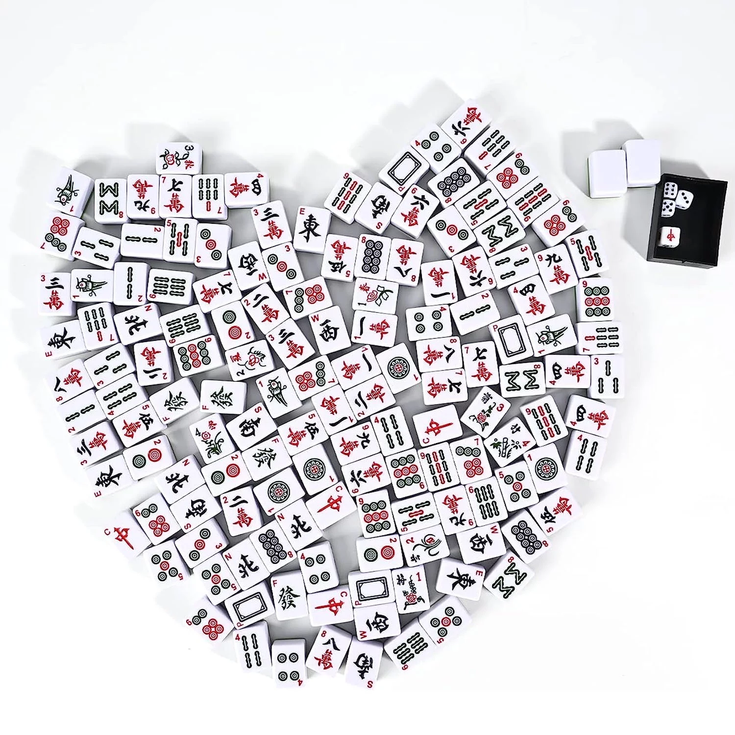 bimiti Playing MahJong Classic Strategy Game for Kids, Families, Melamine Chinese Mahjong Set Gift with Word
