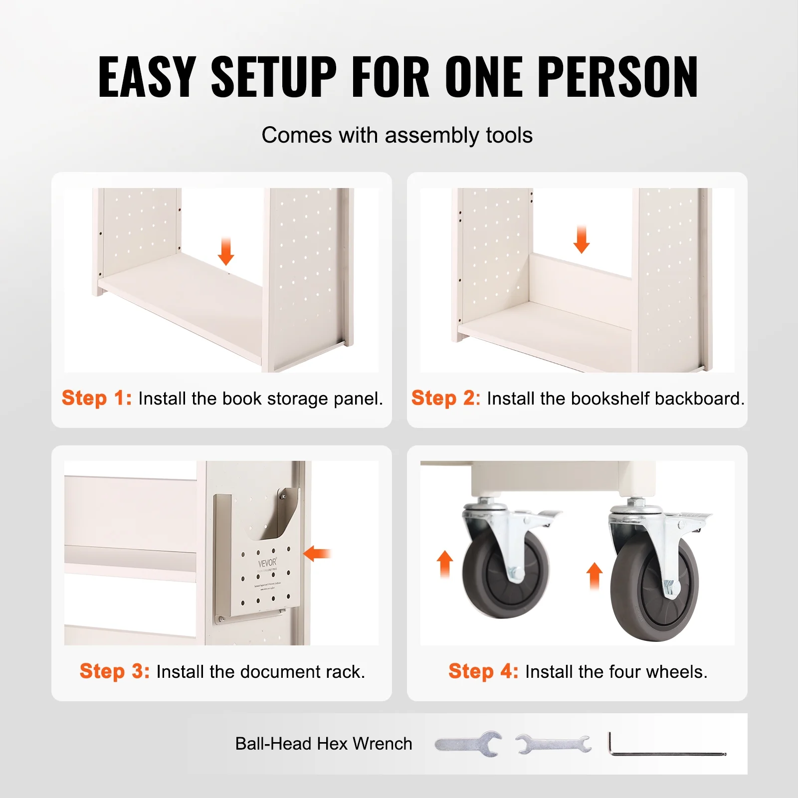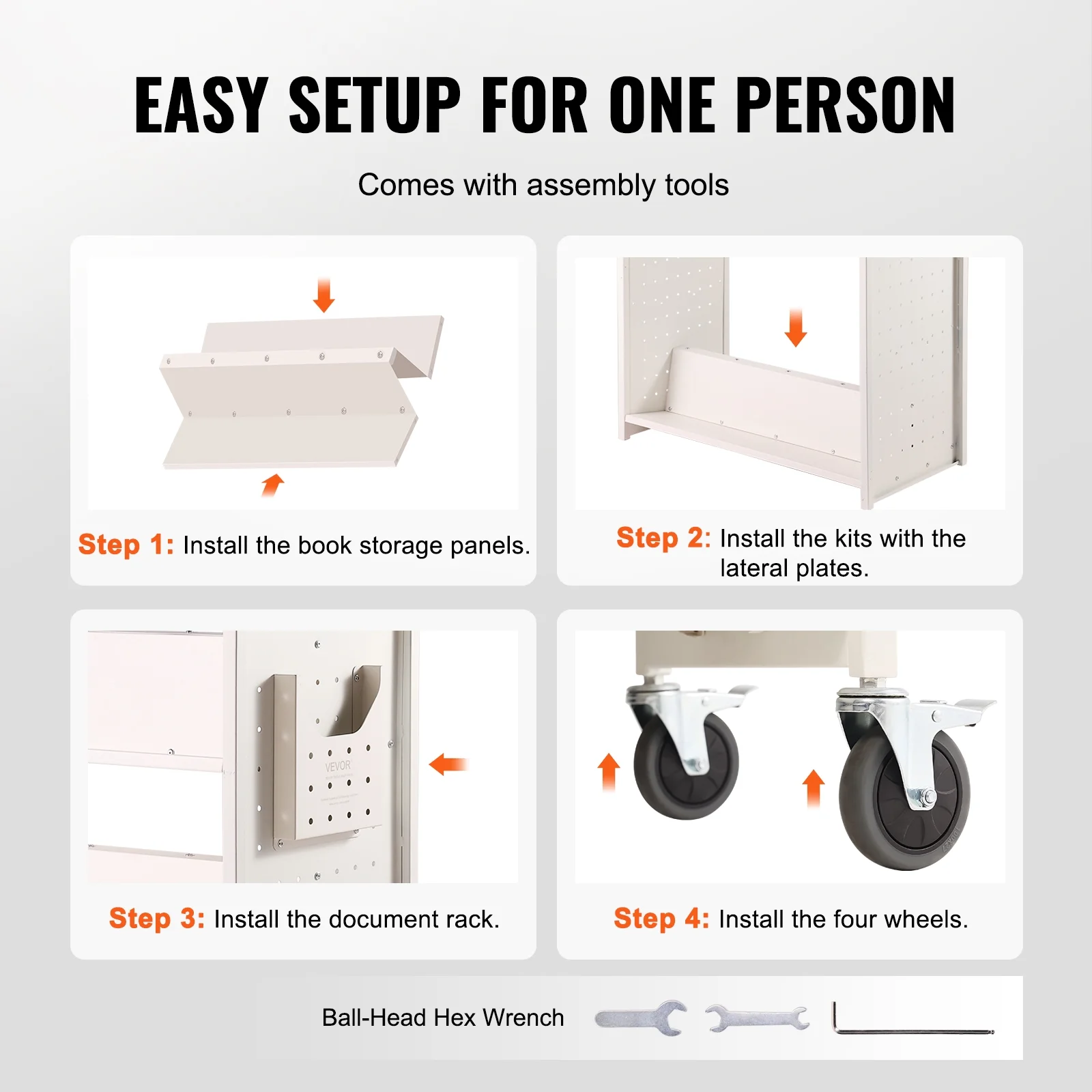 SKYSHALO Book Cart Library Cart 330 lbs Capacity with L-Shaped Shelves in White