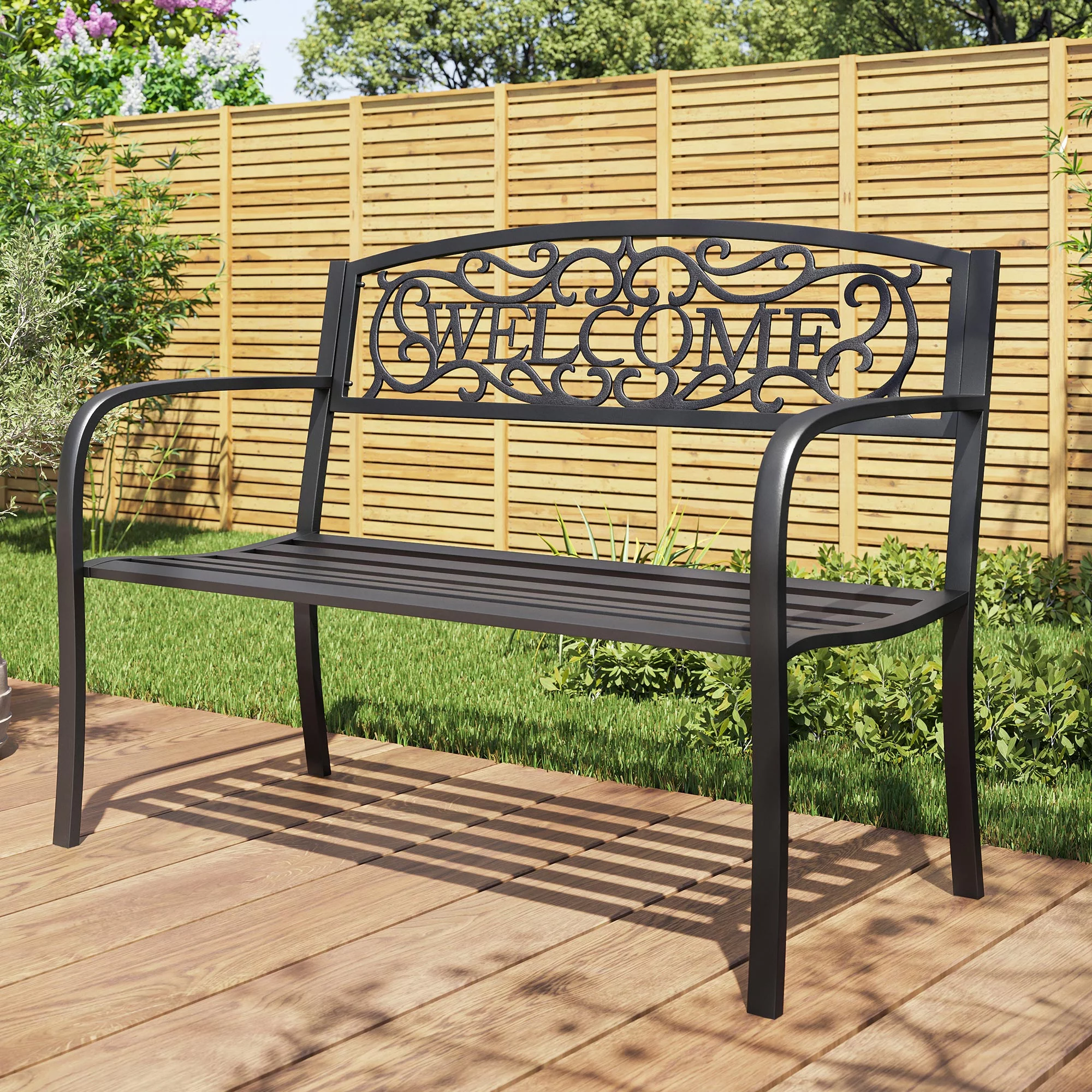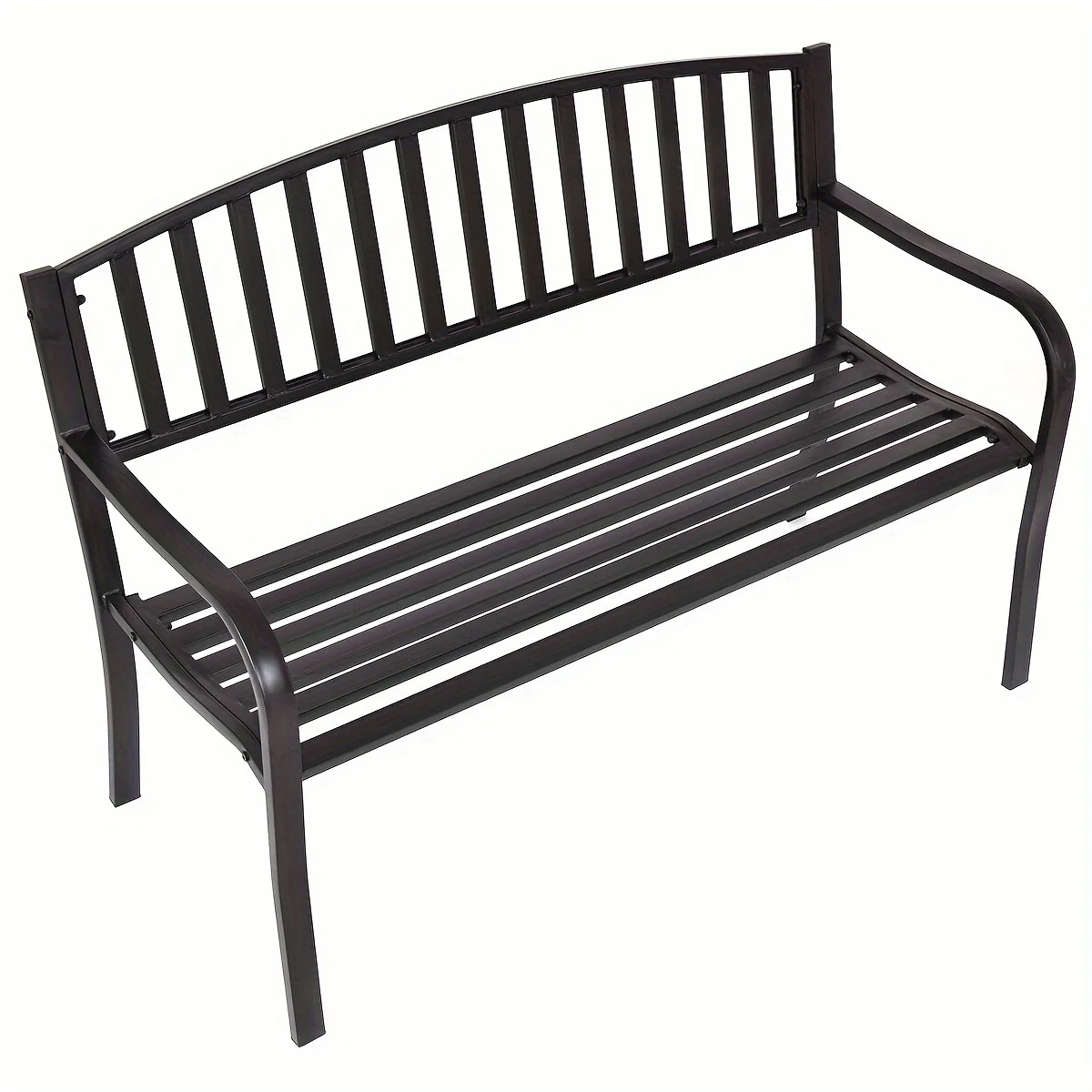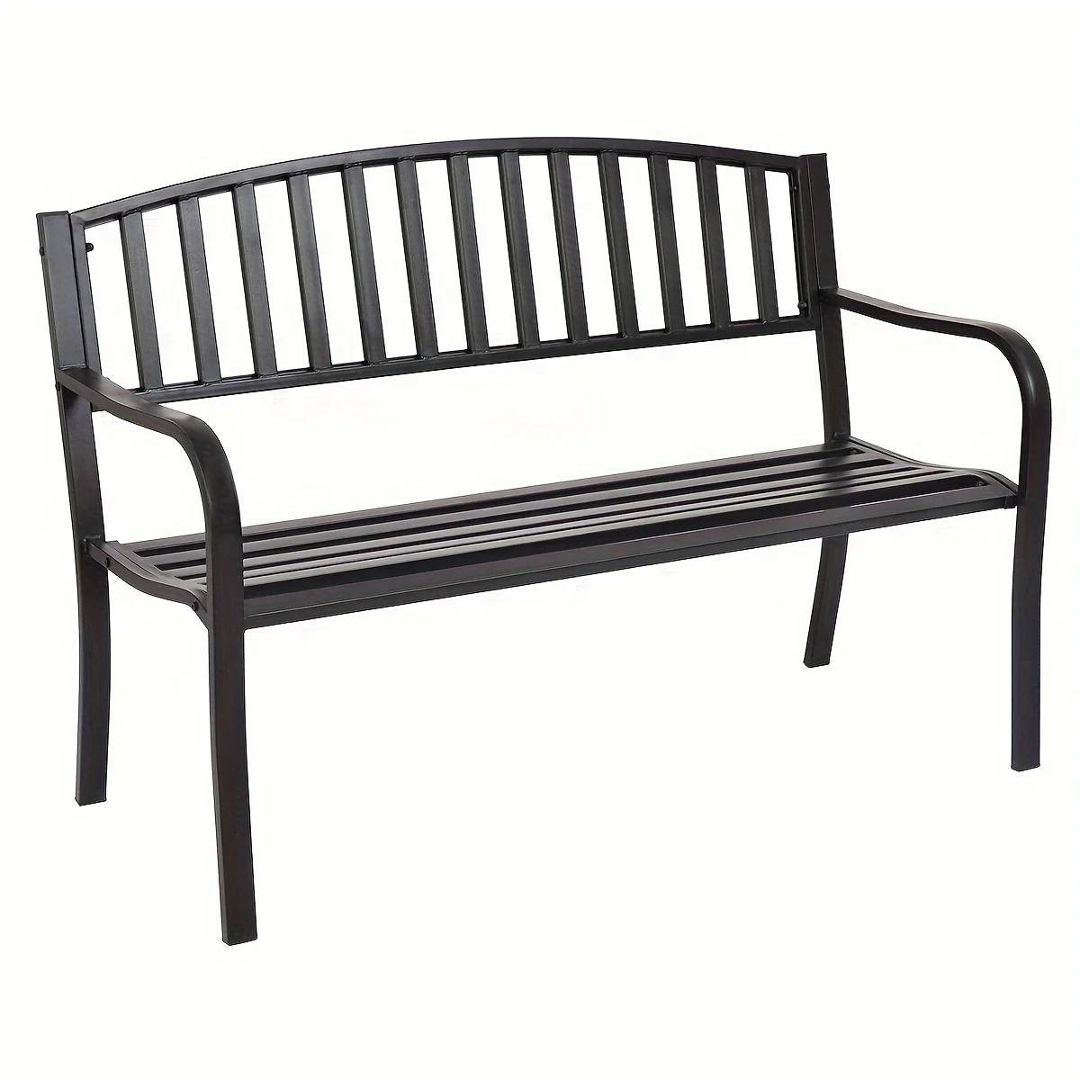COSTWAY 50" Patio Chair For Garden Bench Park Yard, Outdoor Furniture Steel Slats Porch Chair Seat