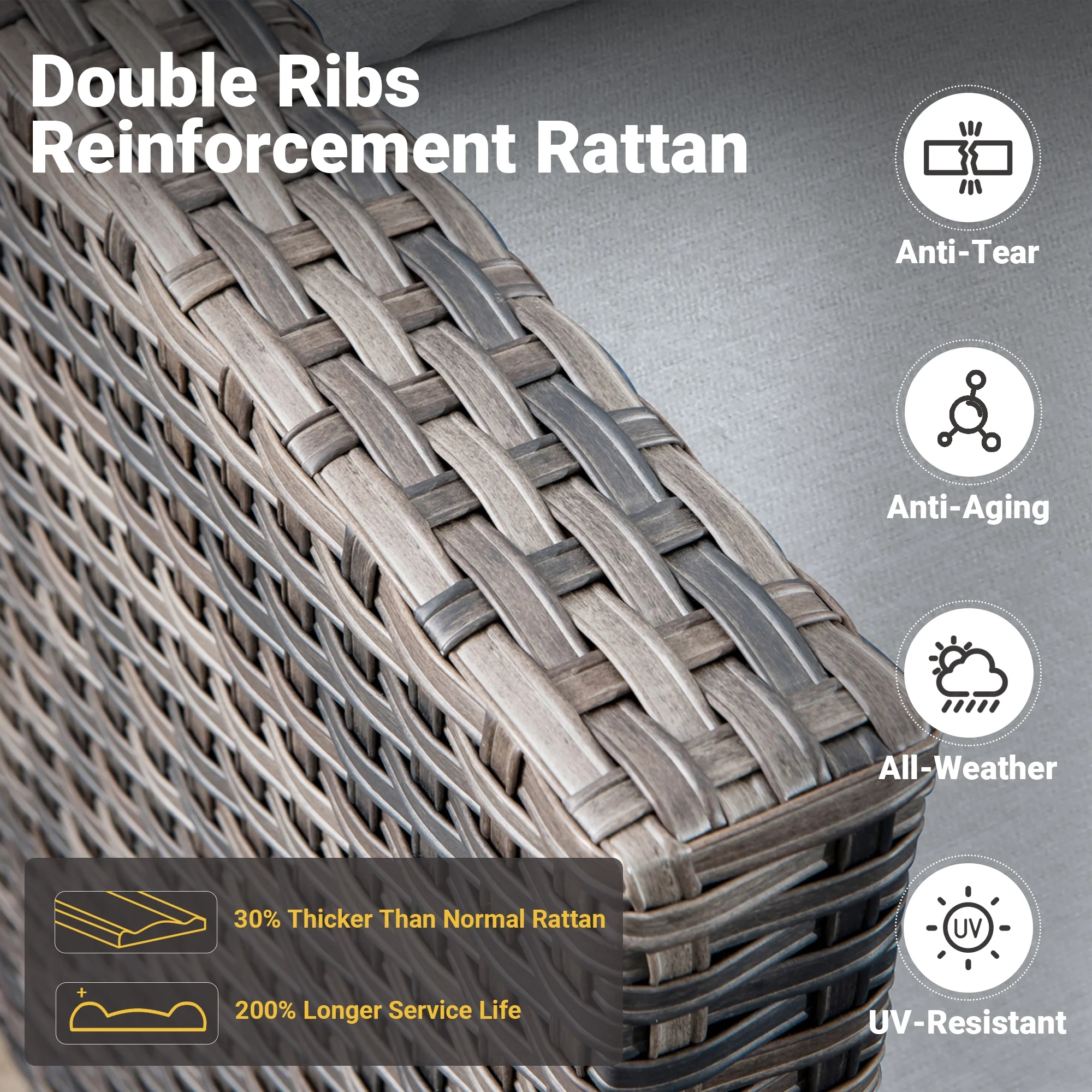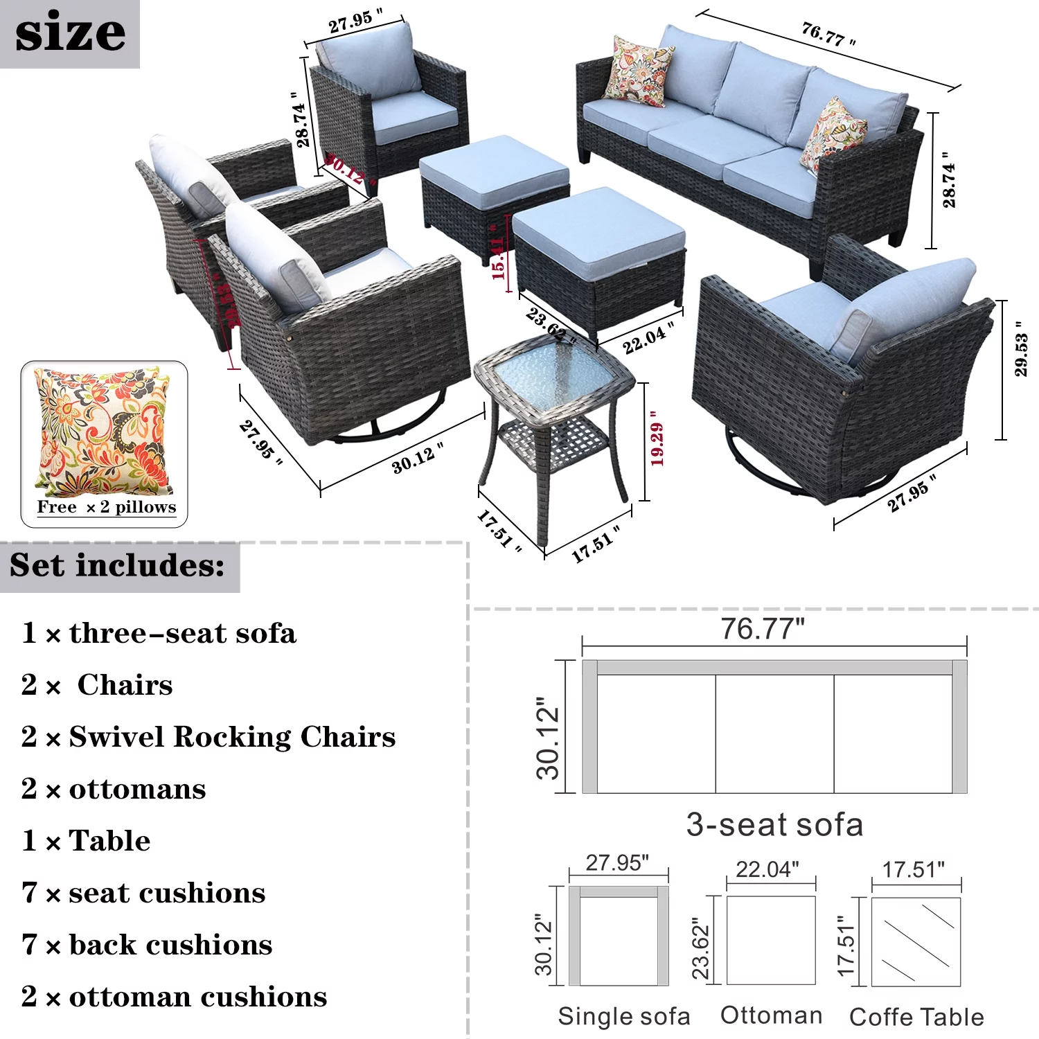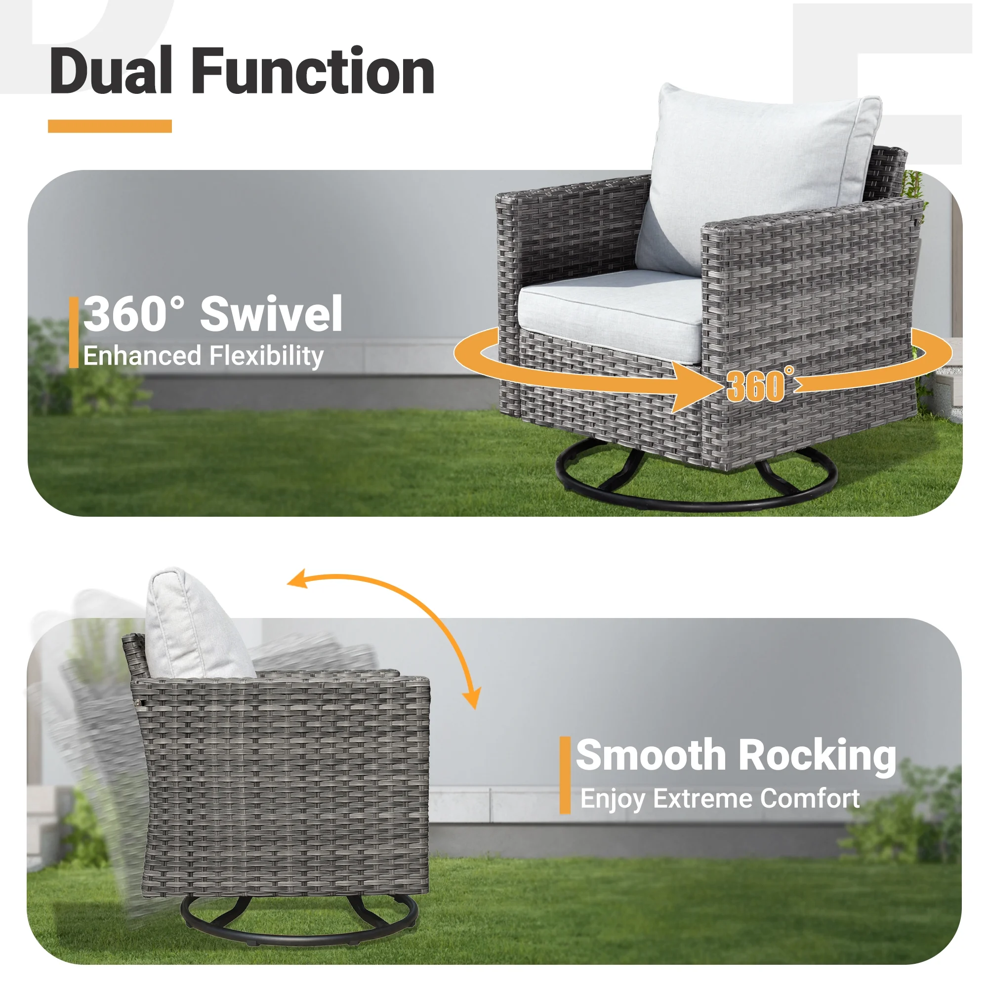 Ovios High-Back Outdoor Furniture 6 Pieces Gray Wicker Patio Conversation Set with Rocking Swivel Chairs for Backyard