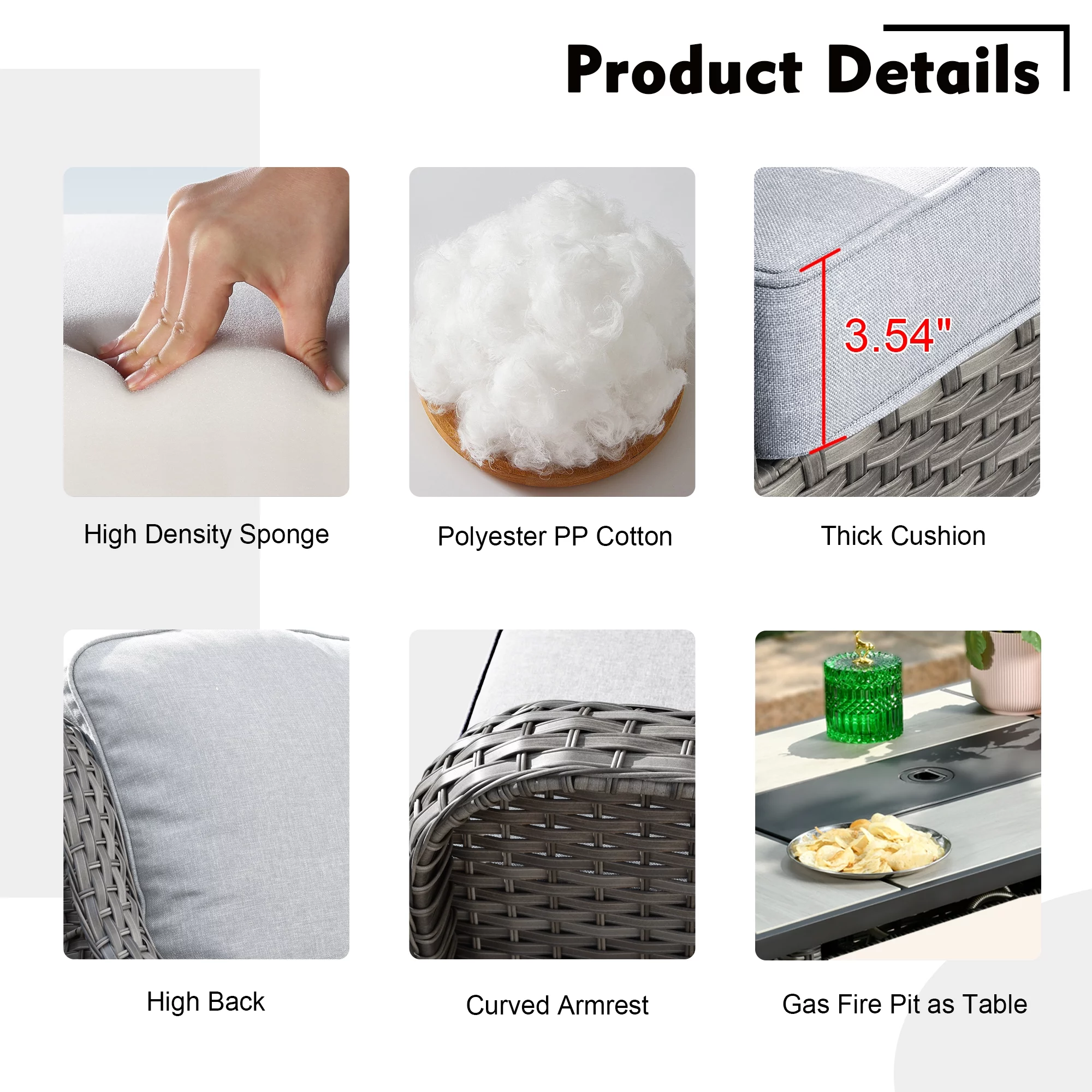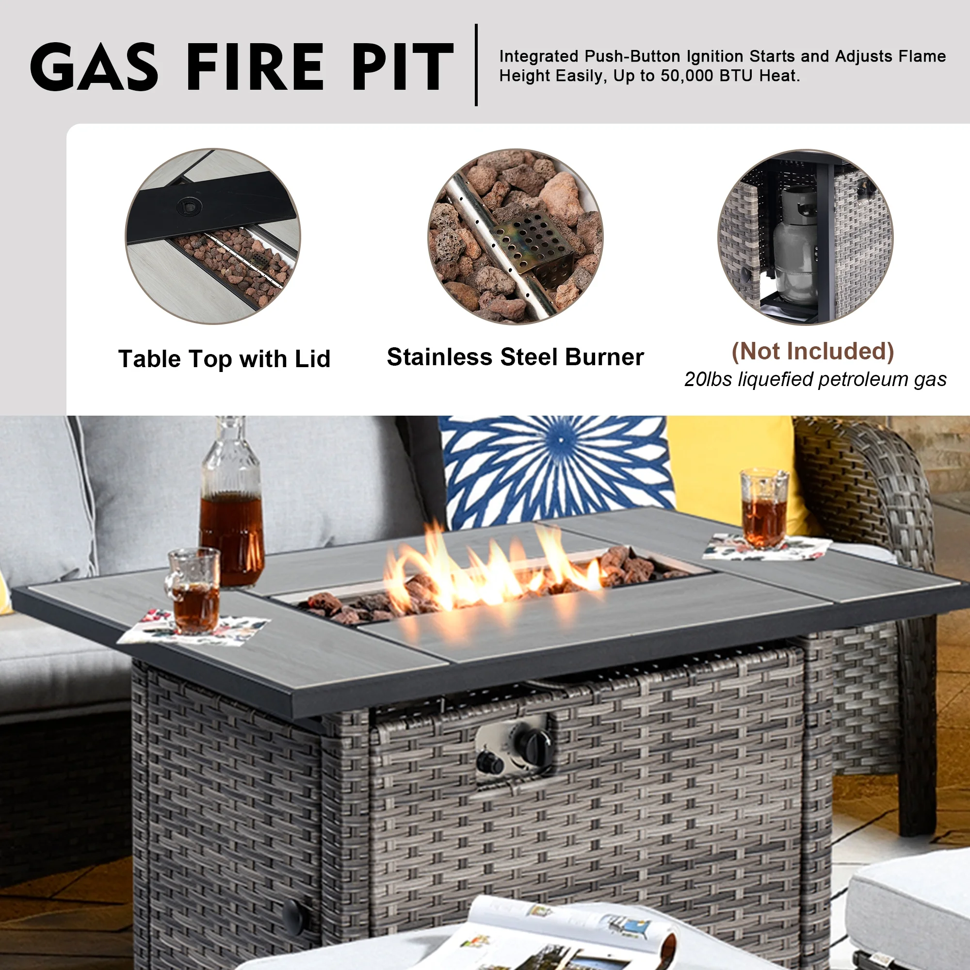 Ovios 5 Pieces Outdoor Patio Furniture with Rectangle Fire Pit Table Wicker Patio Sectional Sofa with Loveseat for Backyard