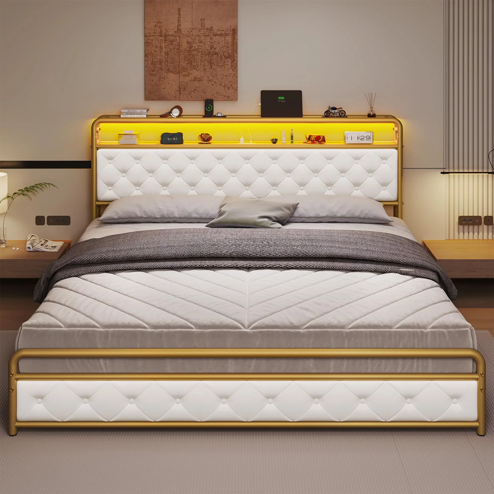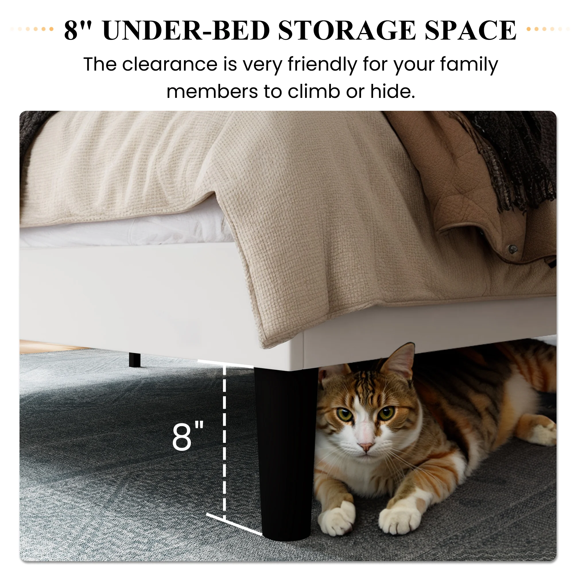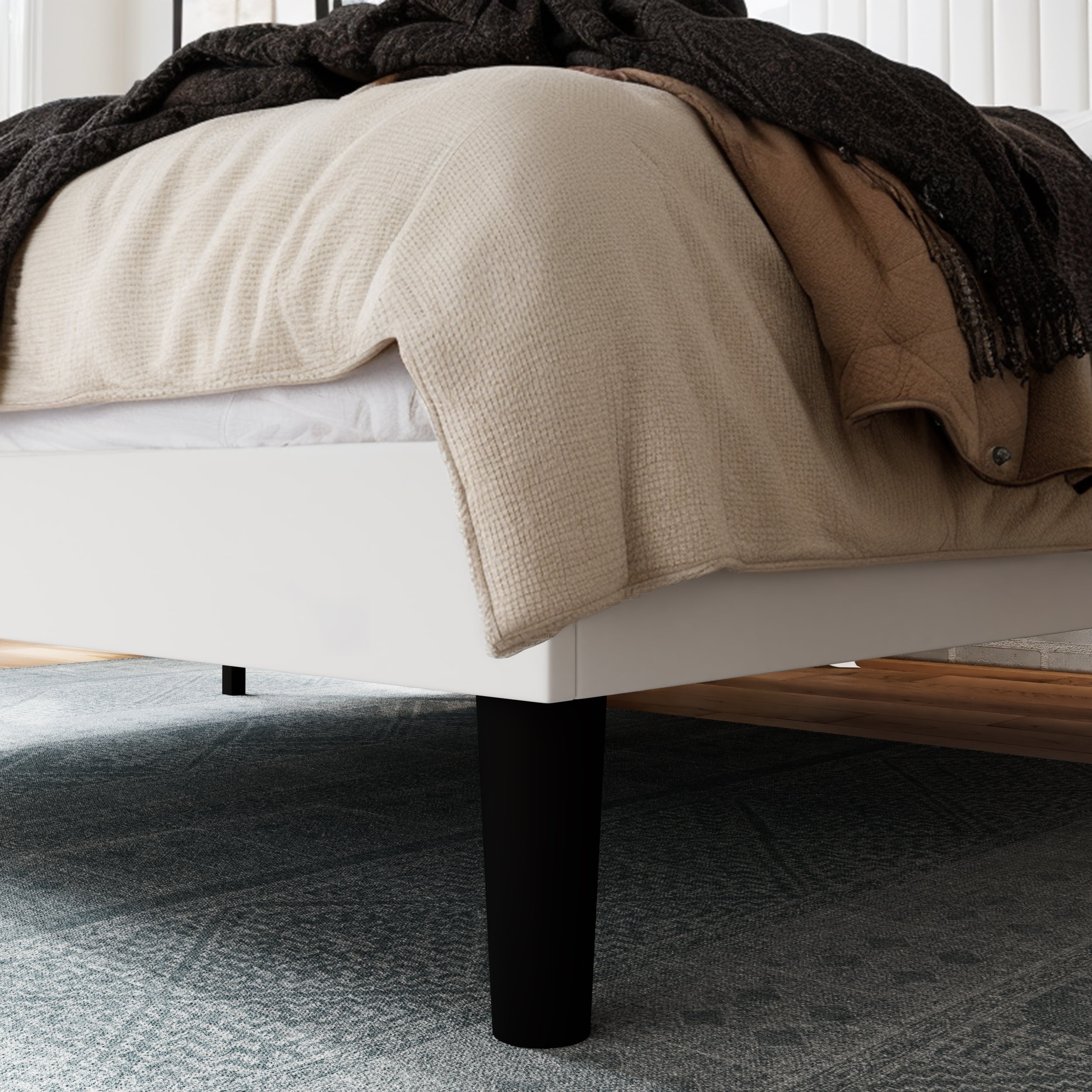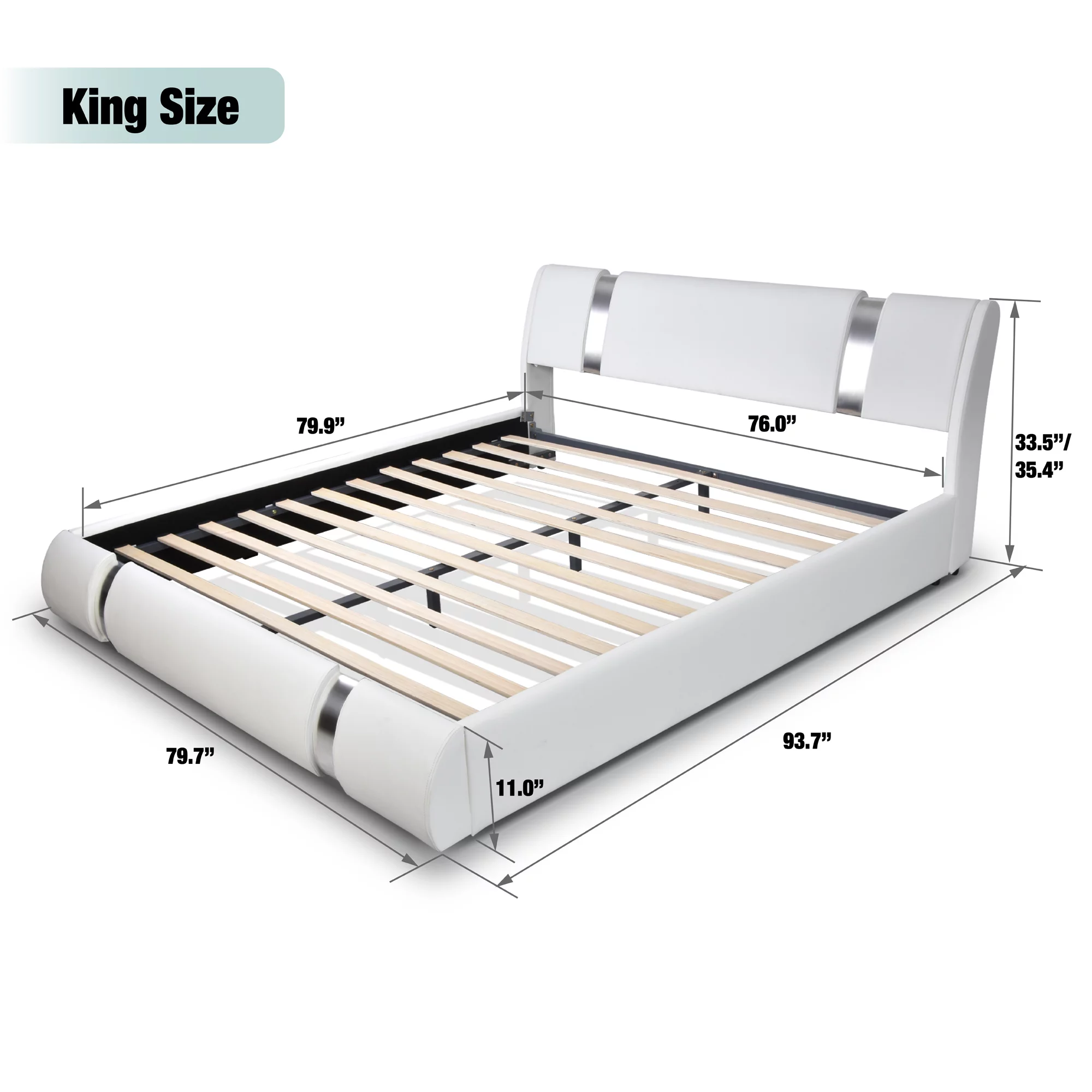 Amolife King Size Bed Frame with Iron Piece Adjustable Headboard, White