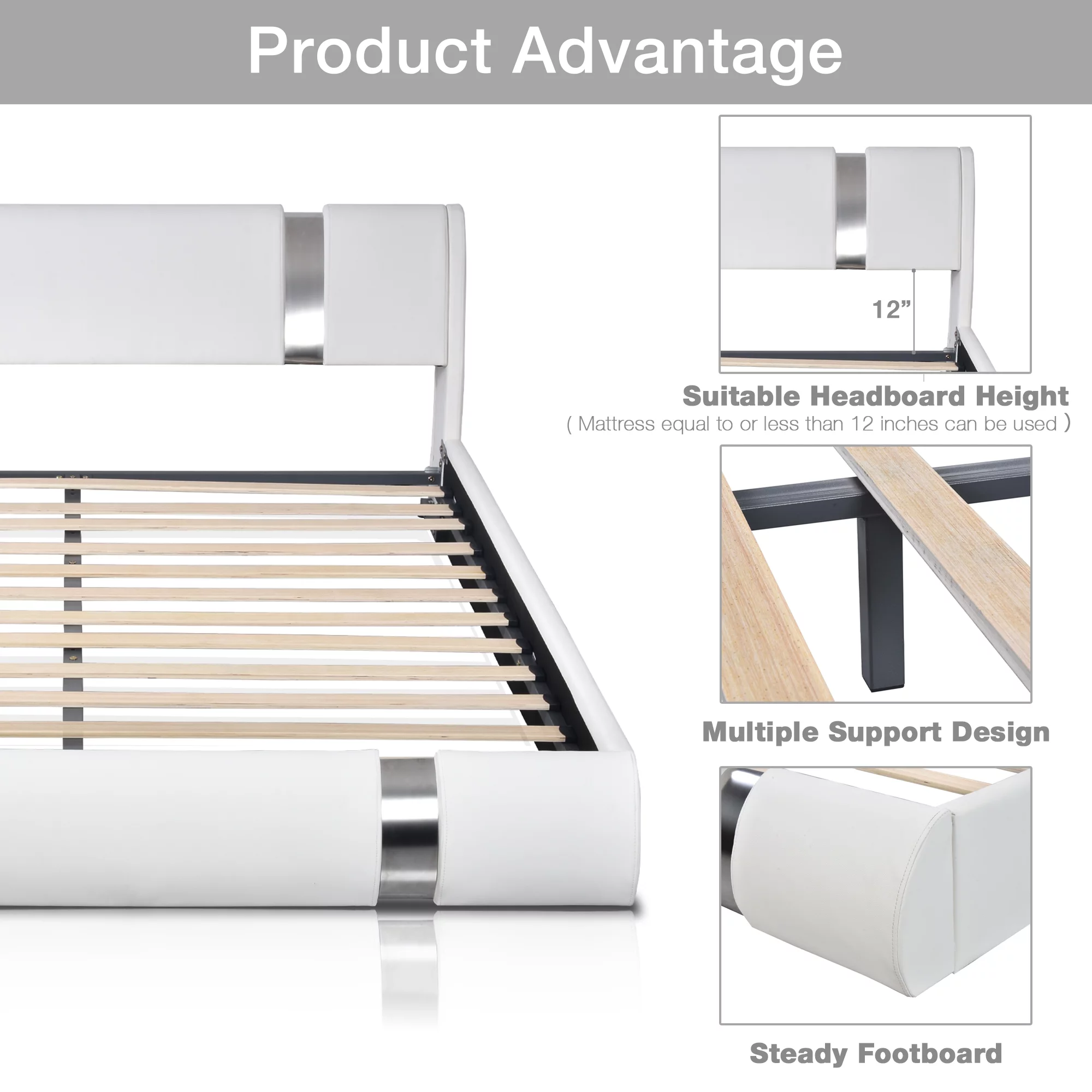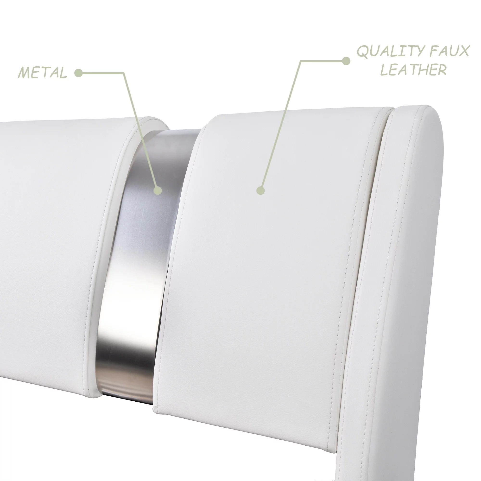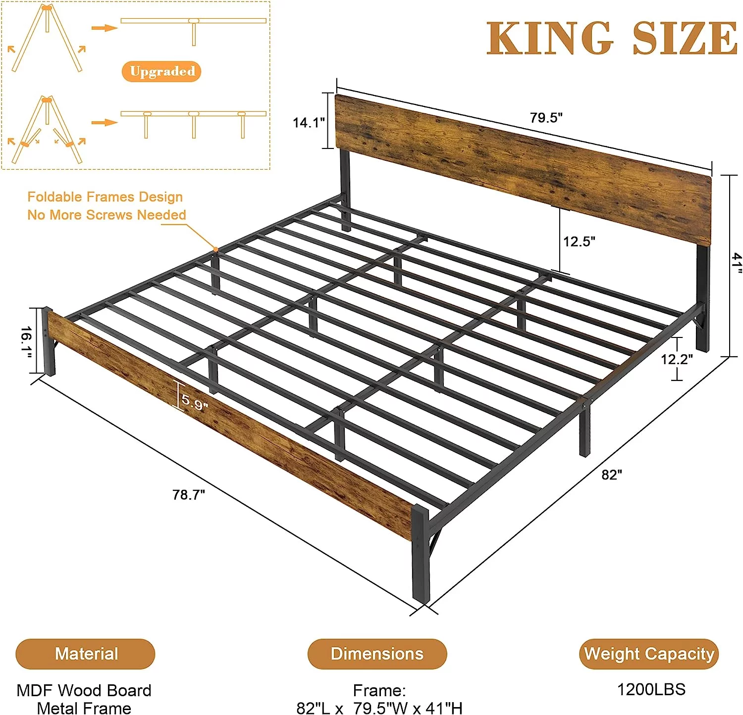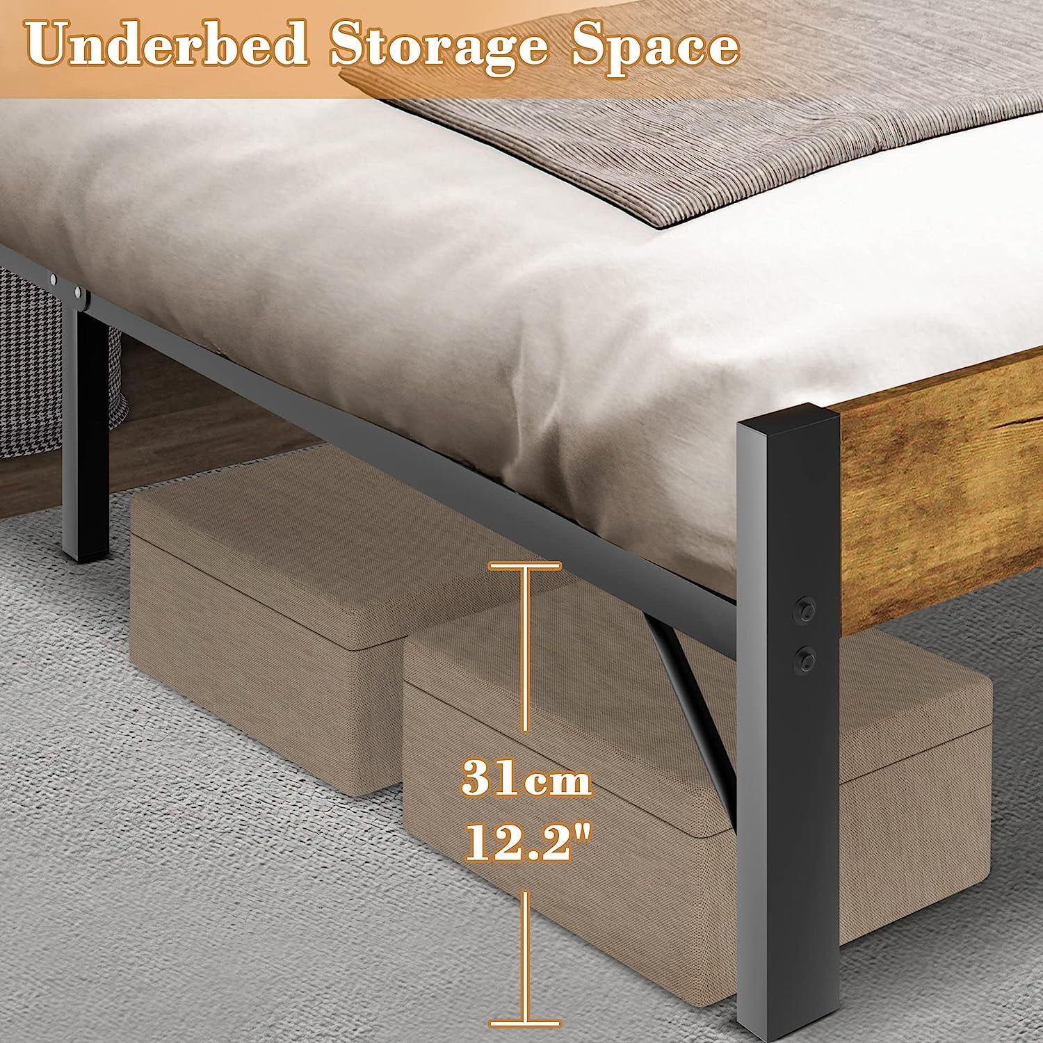 Amolife King Size Bed Frame with Iron Piece Adjustable Headboard, White