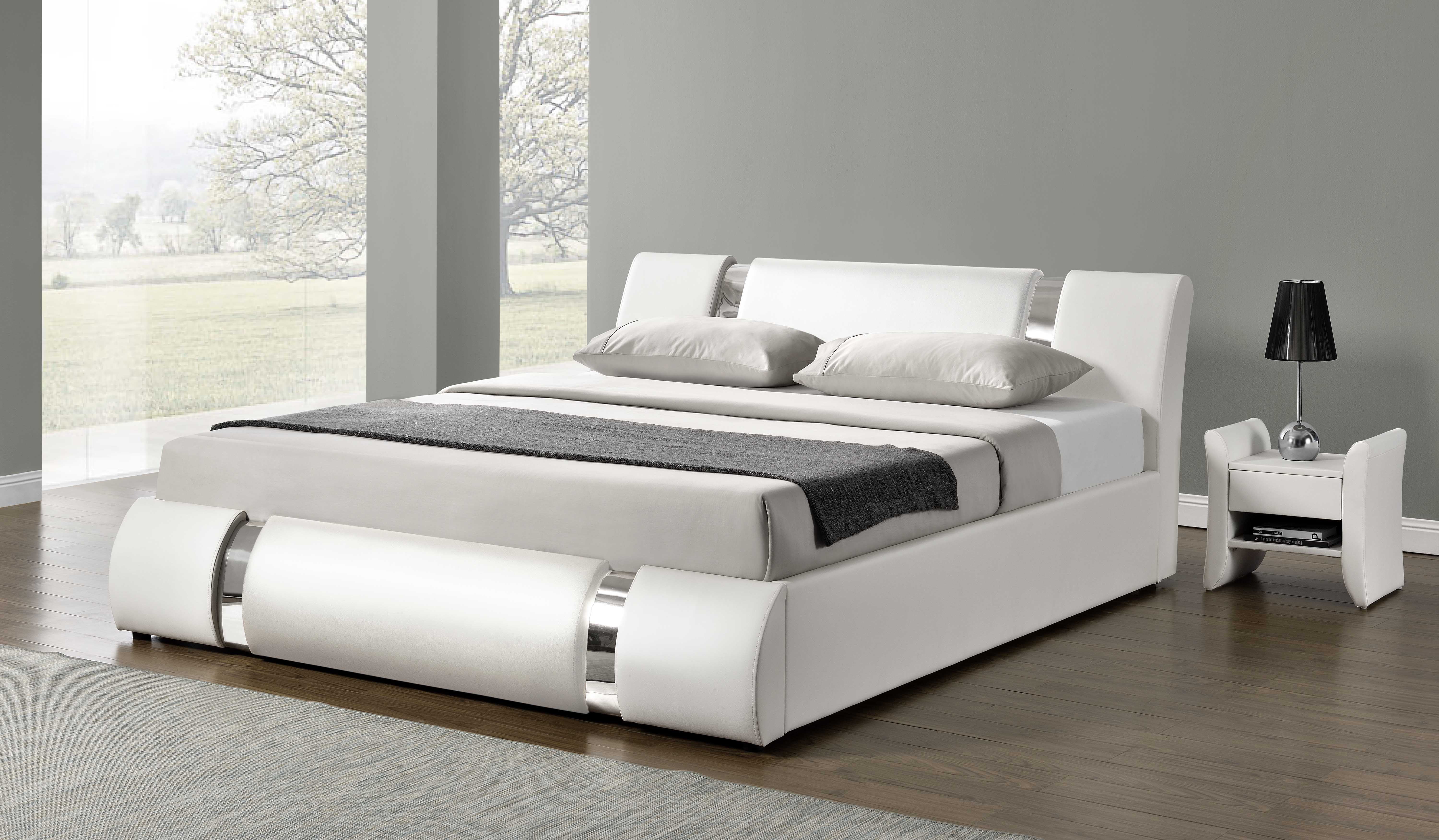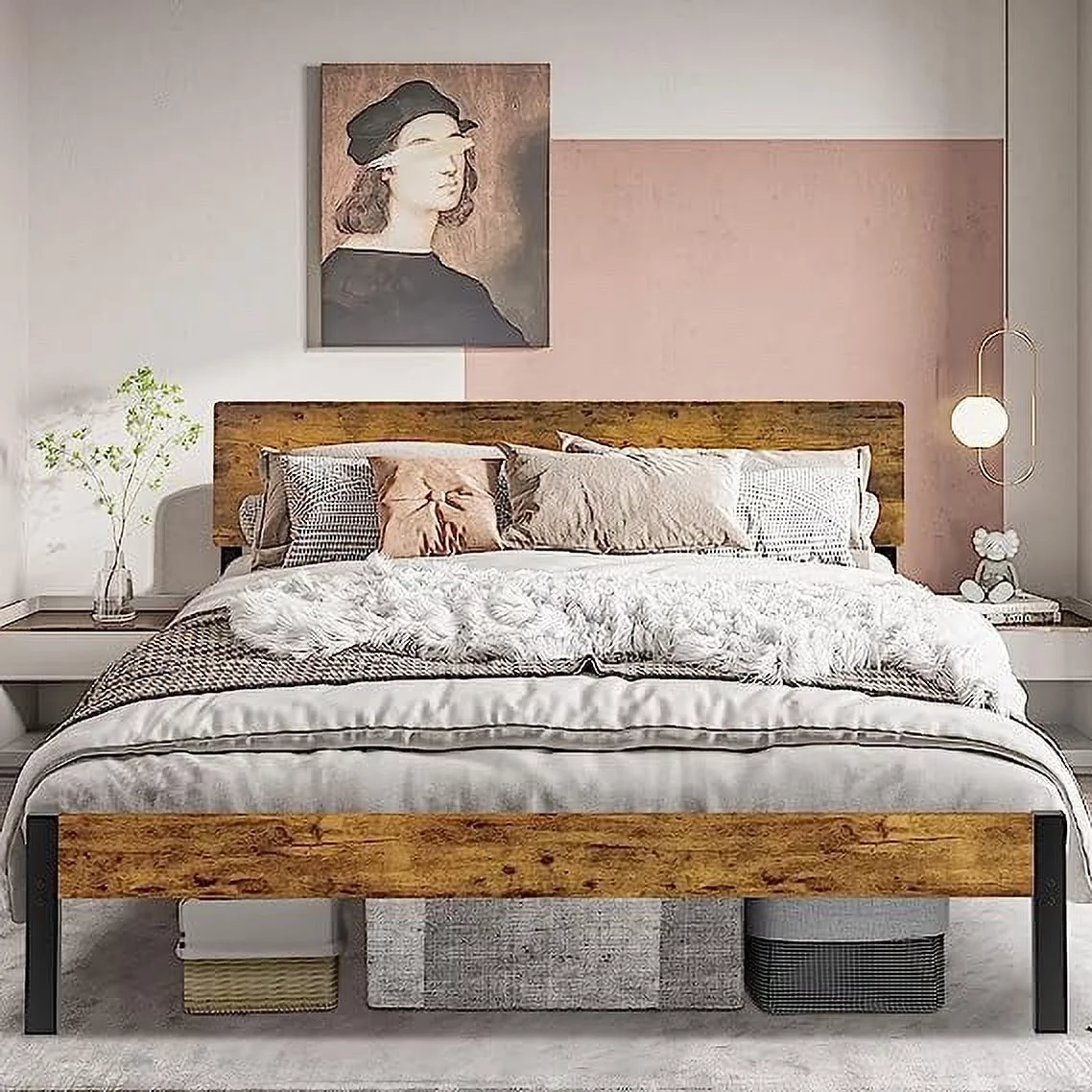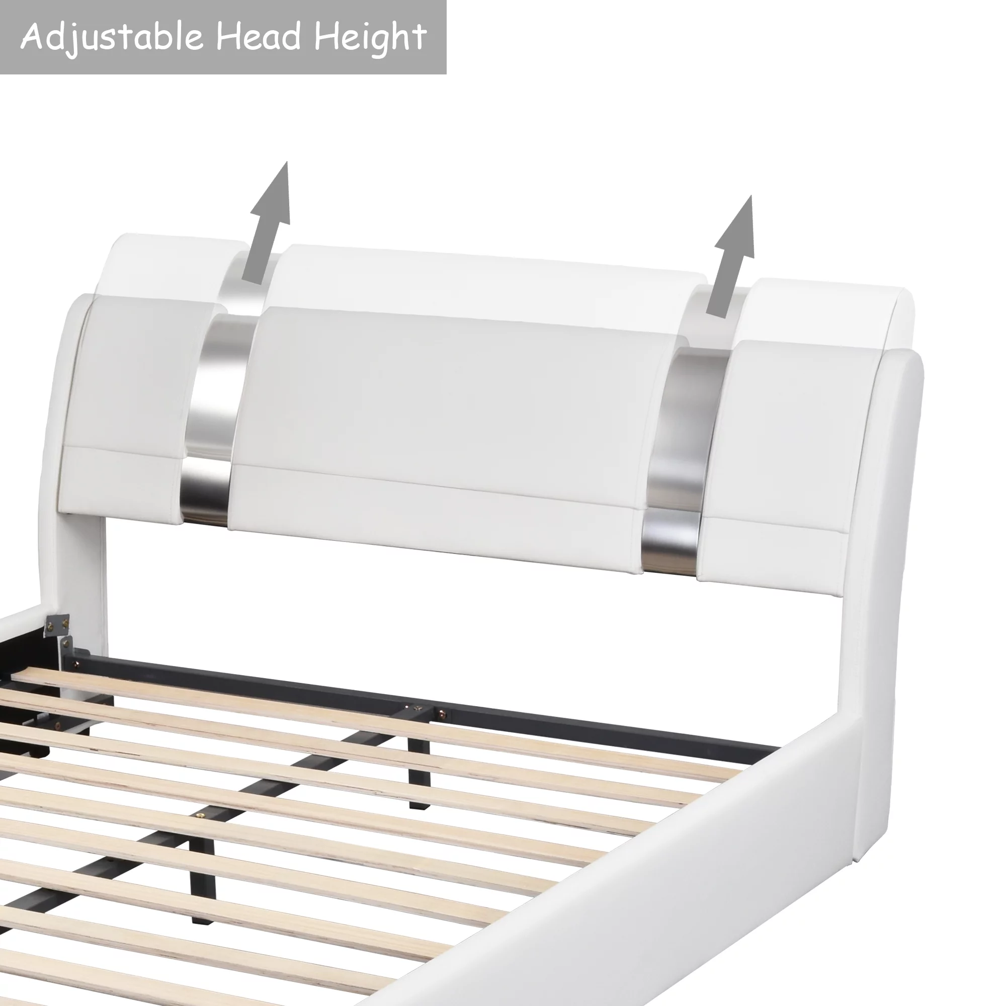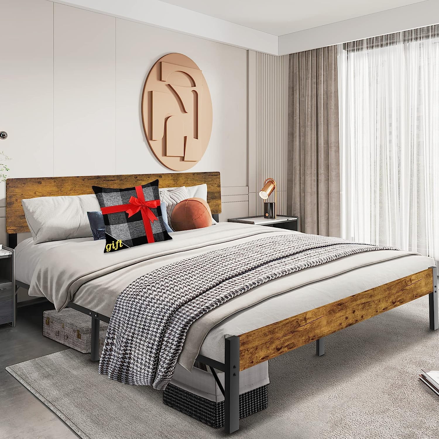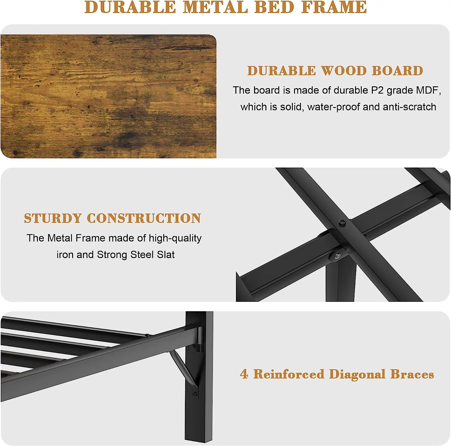 Amolife King Size Bed Frame with Iron Piece Adjustable Headboard, White