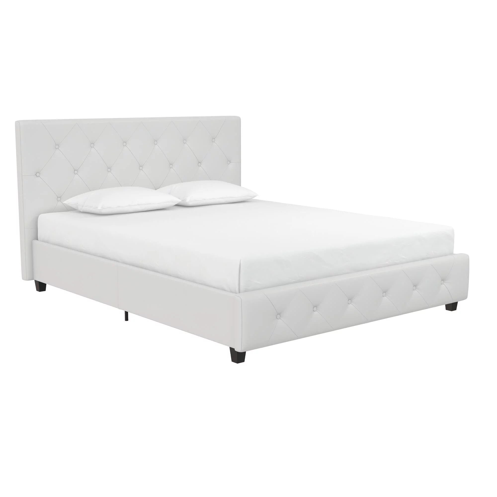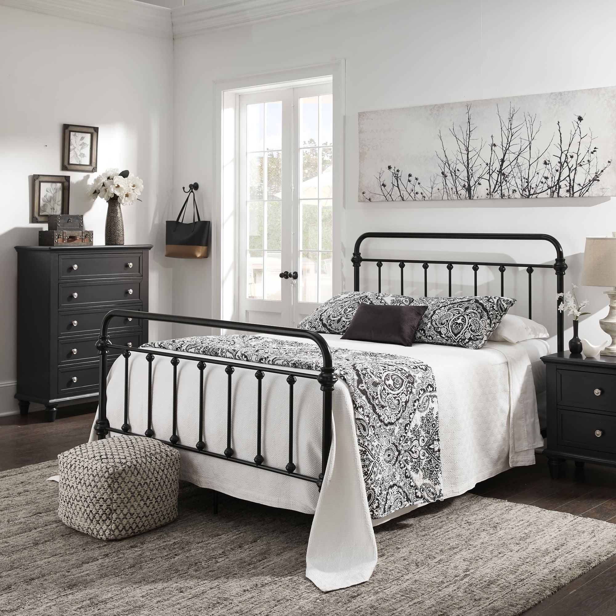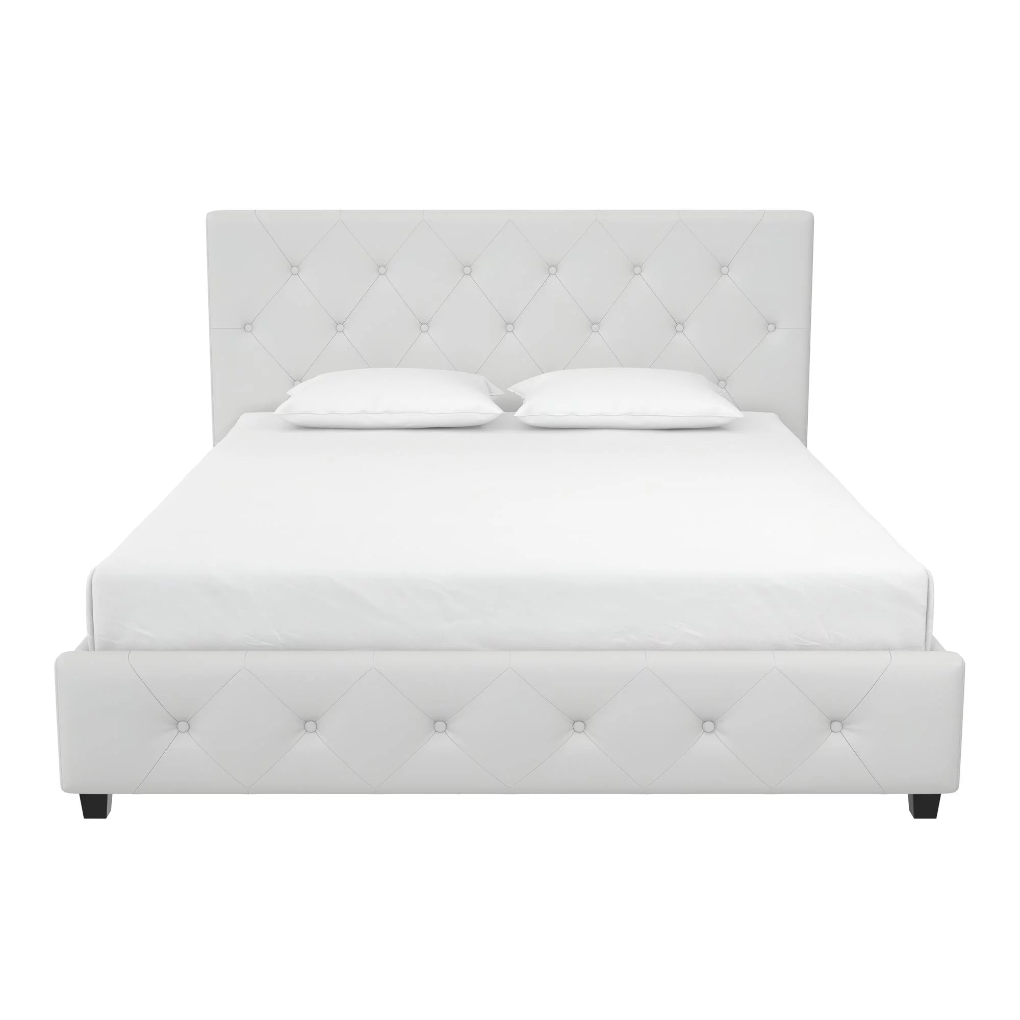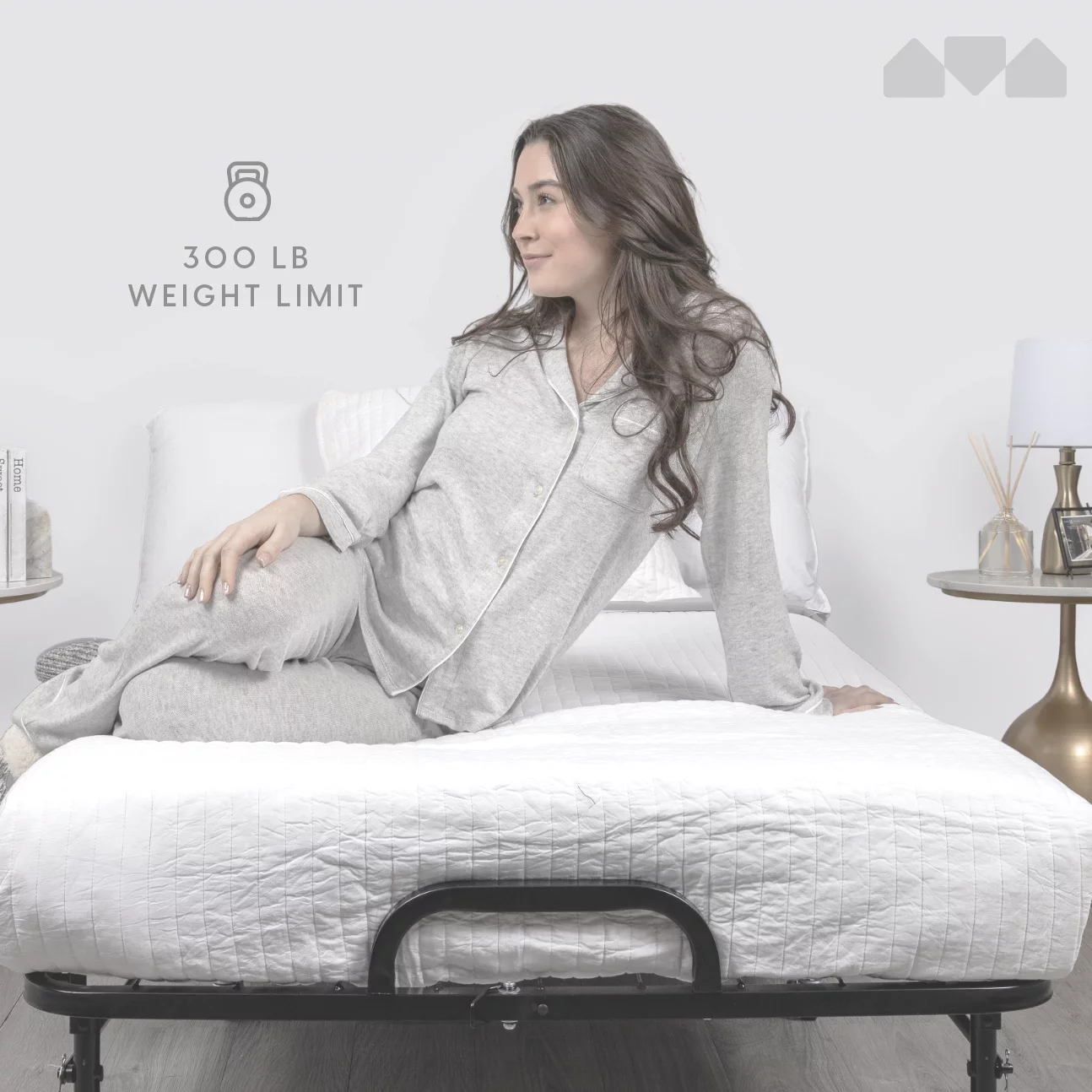 Amolife King Size Bed Frame with Iron Piece Adjustable Headboard, White