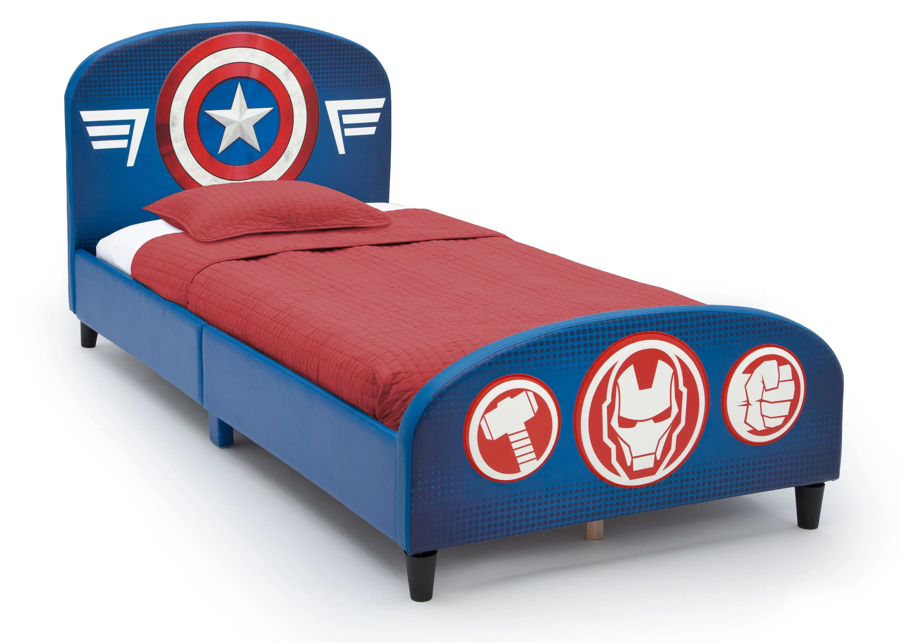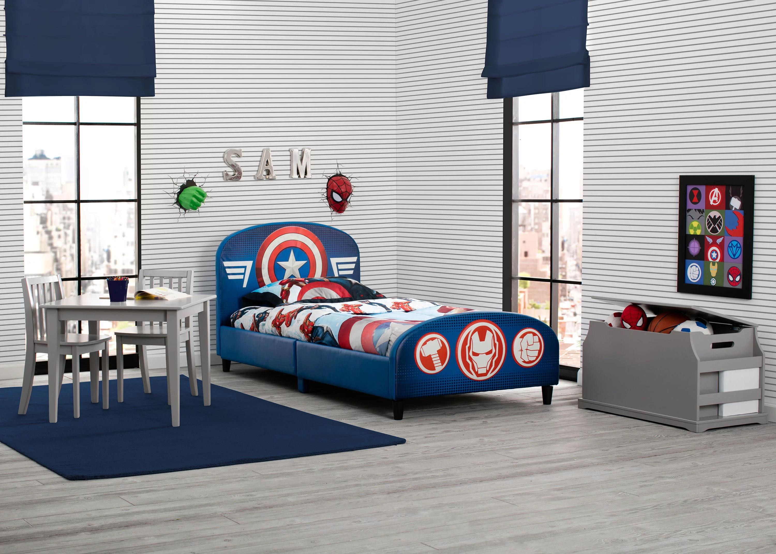 Delta Children Marvel Avengers Upholstered Twin Bed, with Thor, Iron Man, Hulk, & Captain America