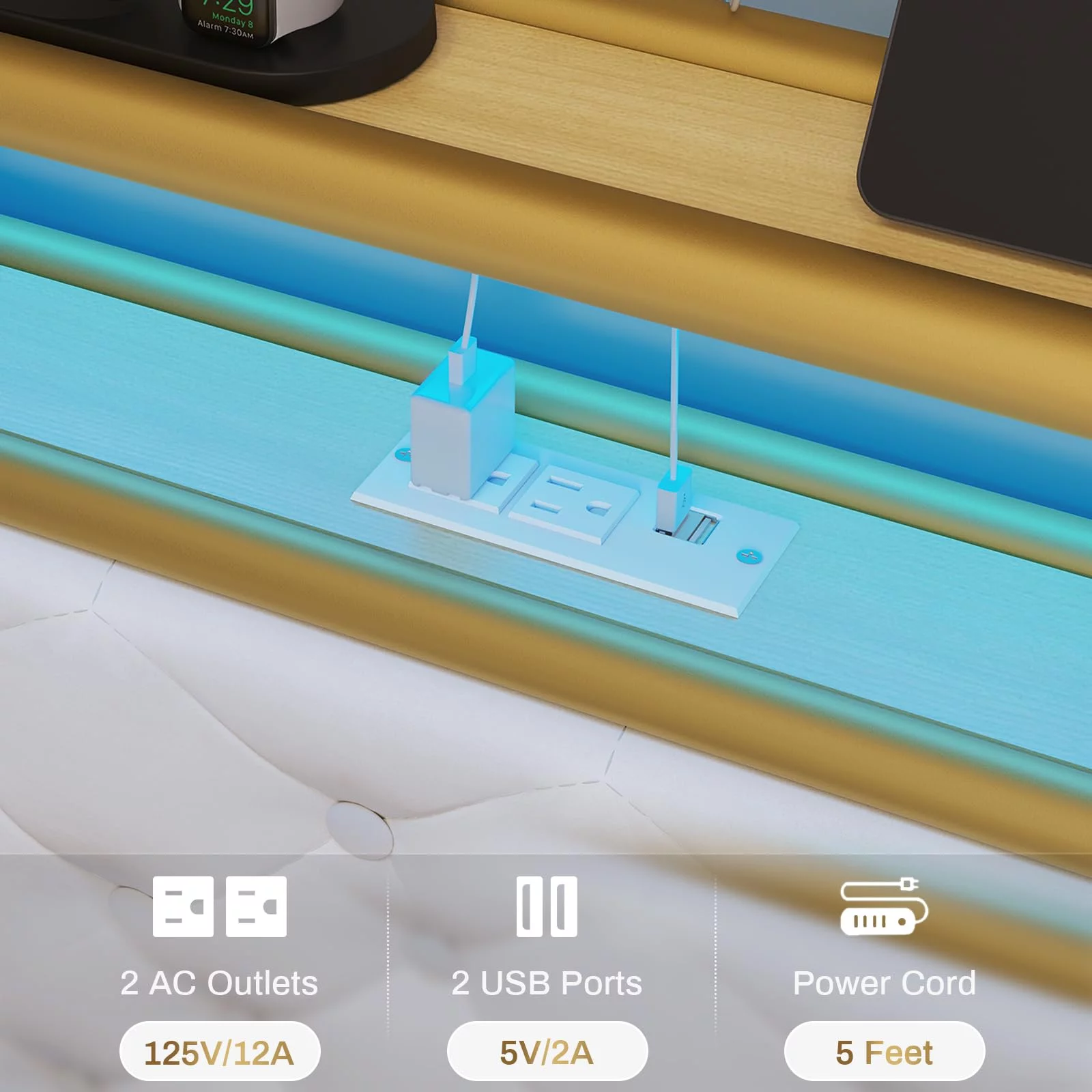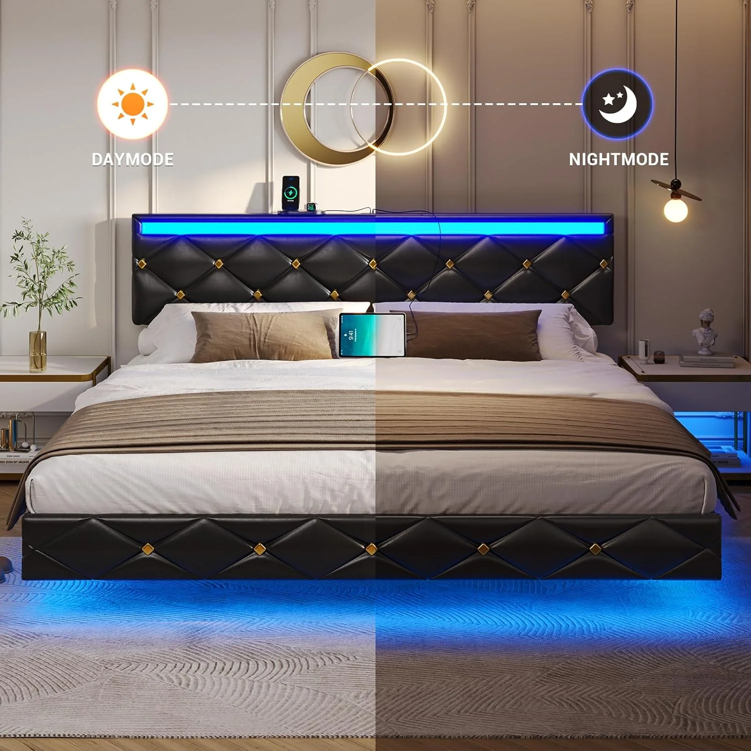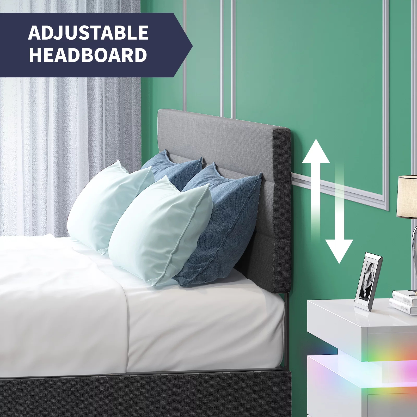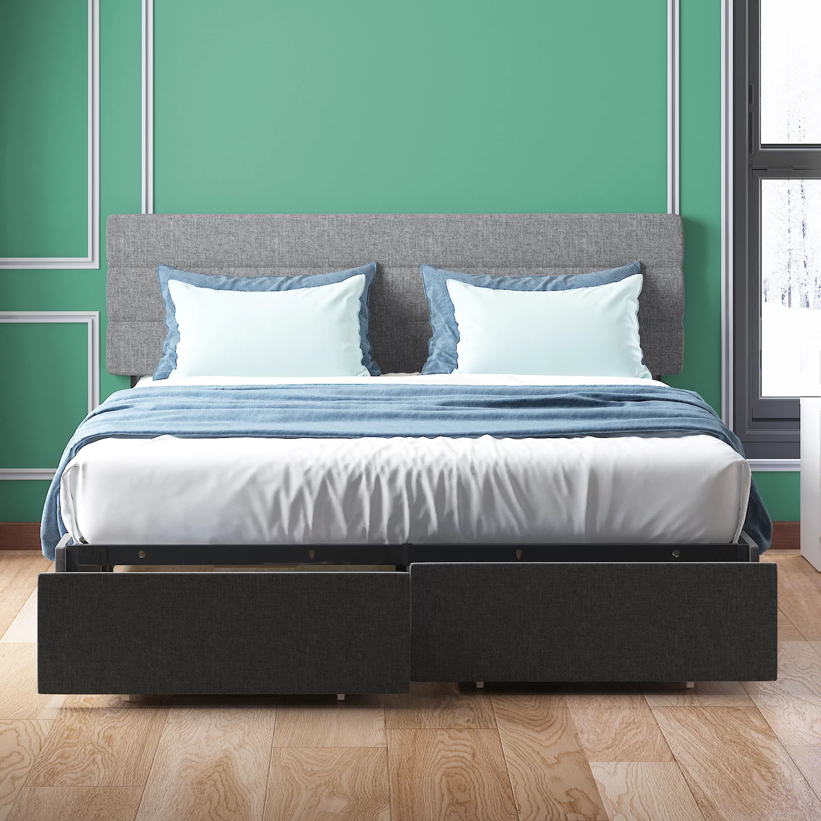 LED Bed Frame King Size Upholstered Platform Bed with 4 Drawers and LED Headboard and 2 USB Ports,Noise-Free, Dark Grey