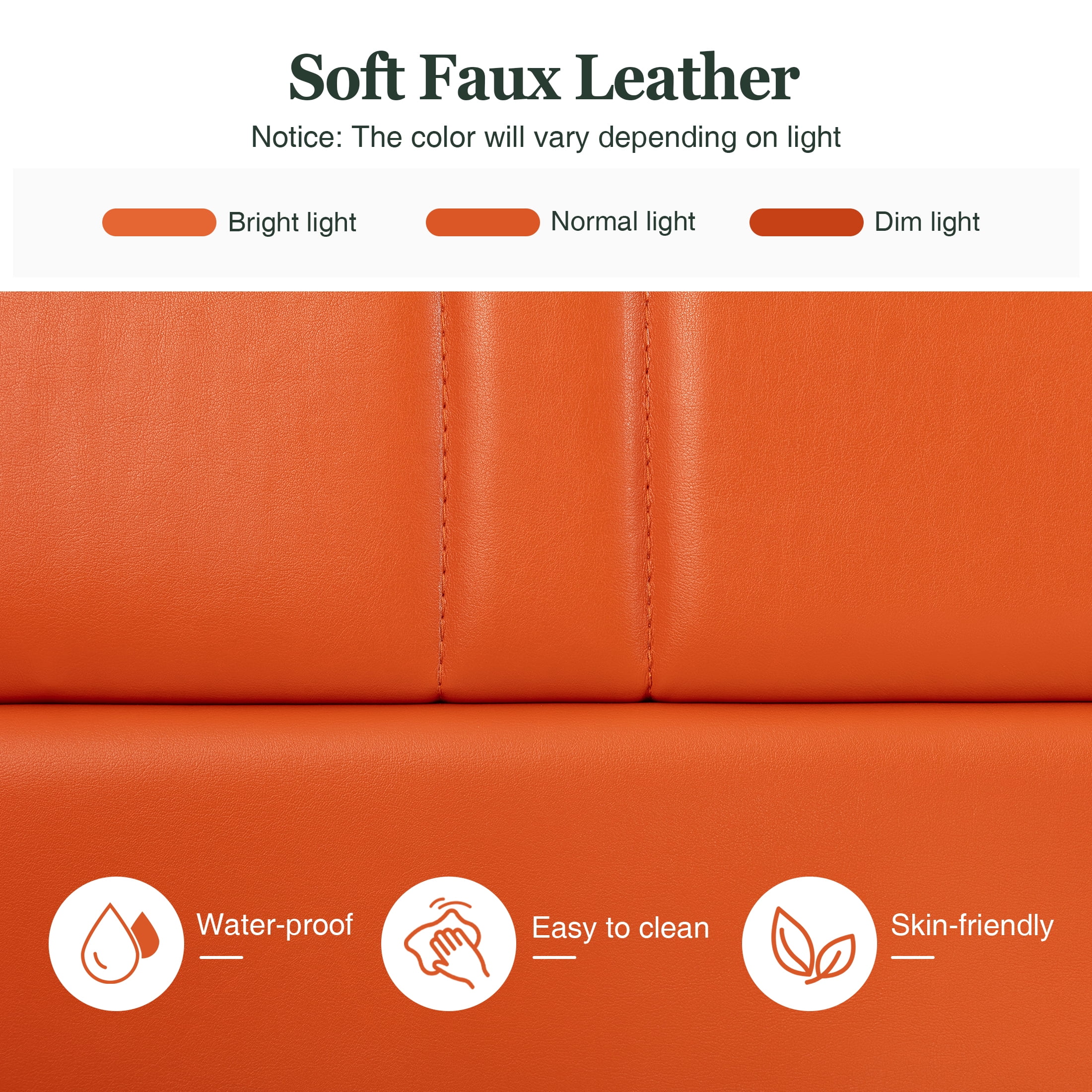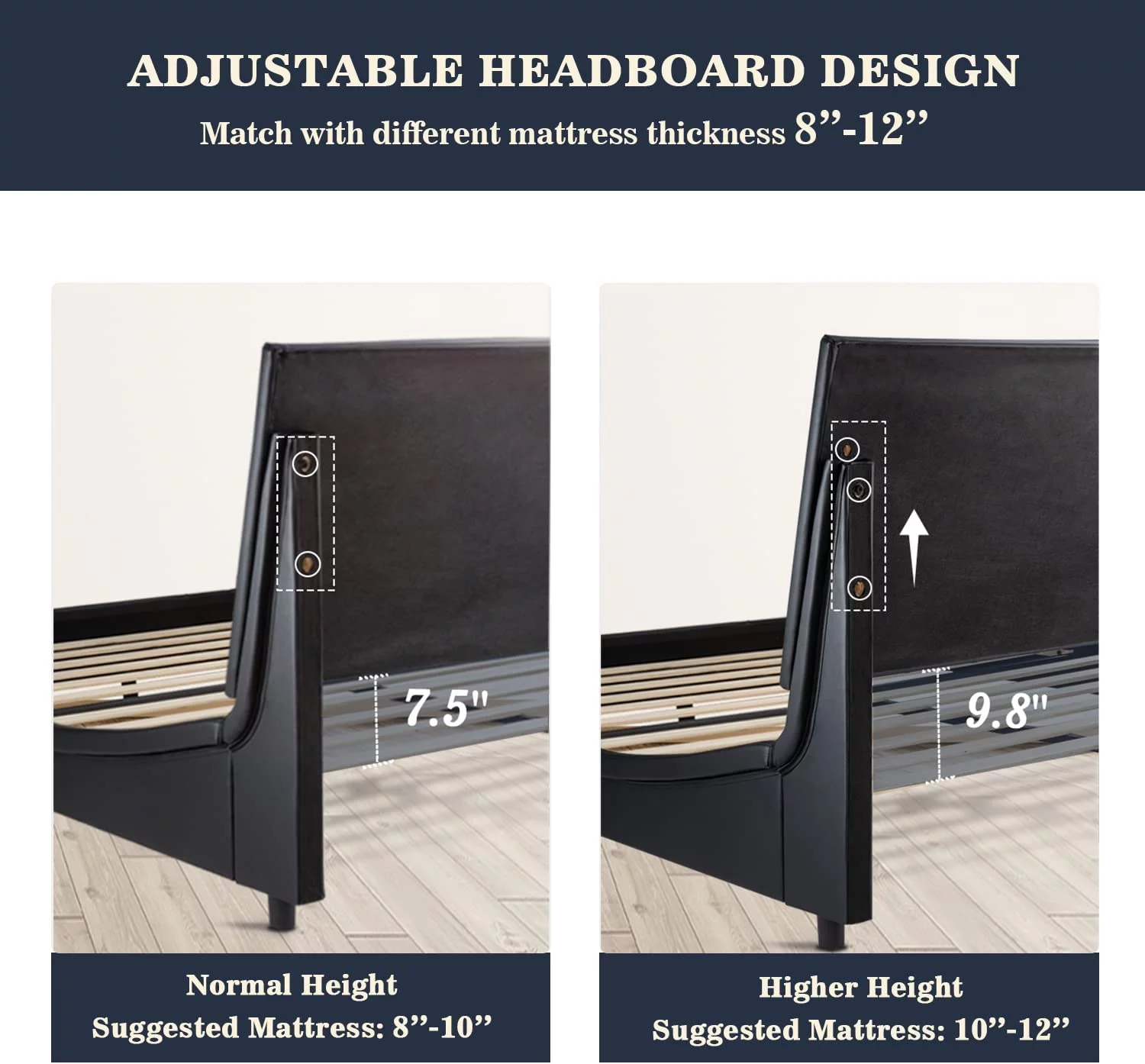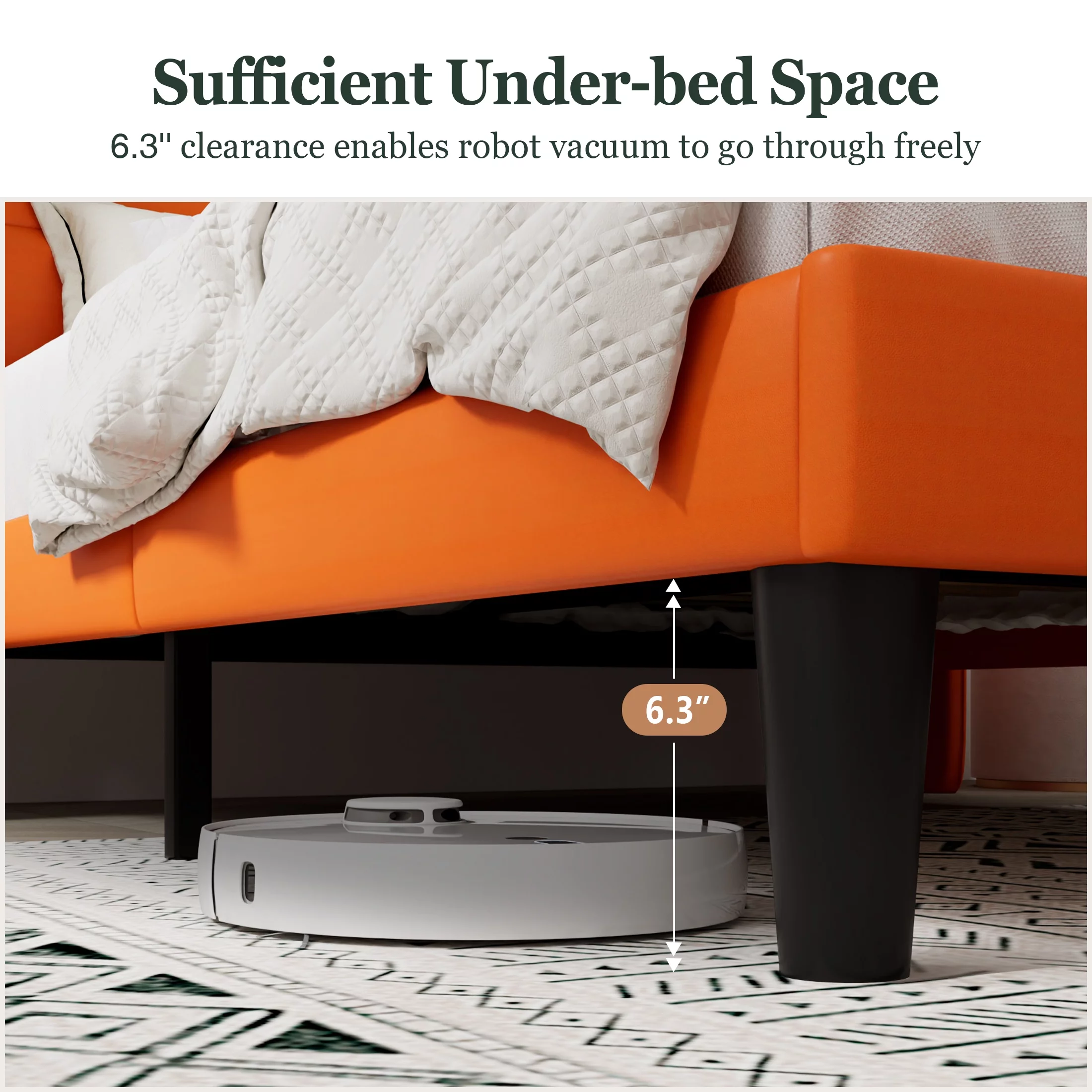 Amolife King Size Faux Leather Platform Bed Frame with Exquisite Wingback Headboard, Orange