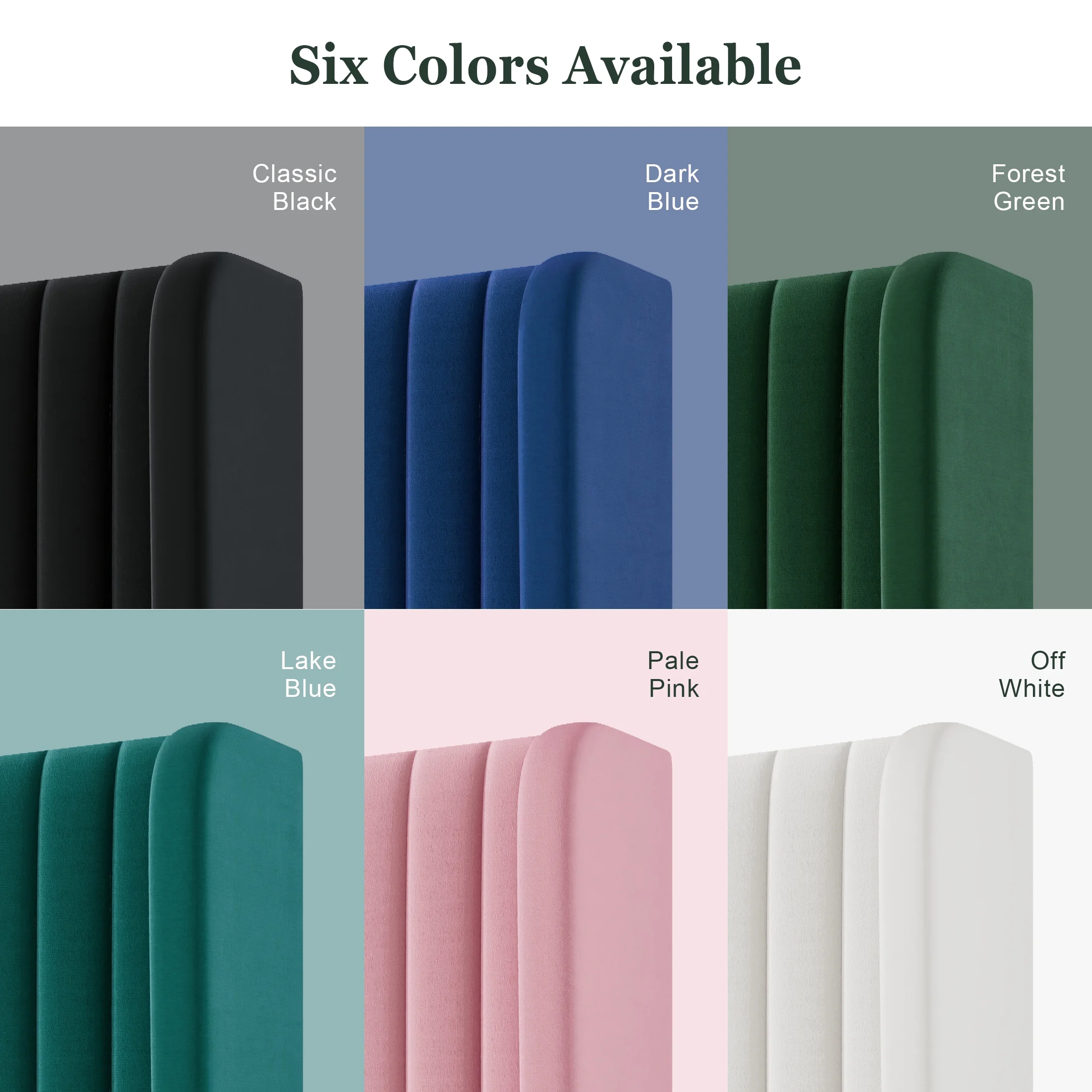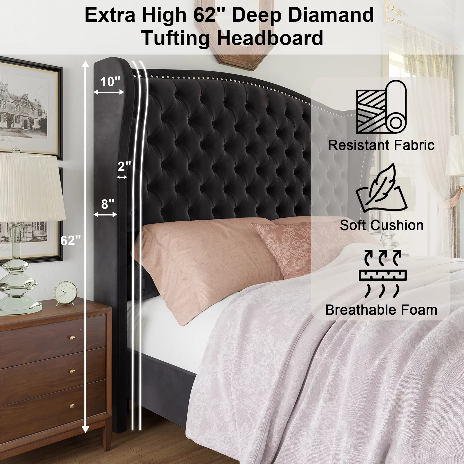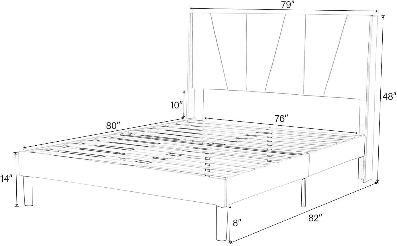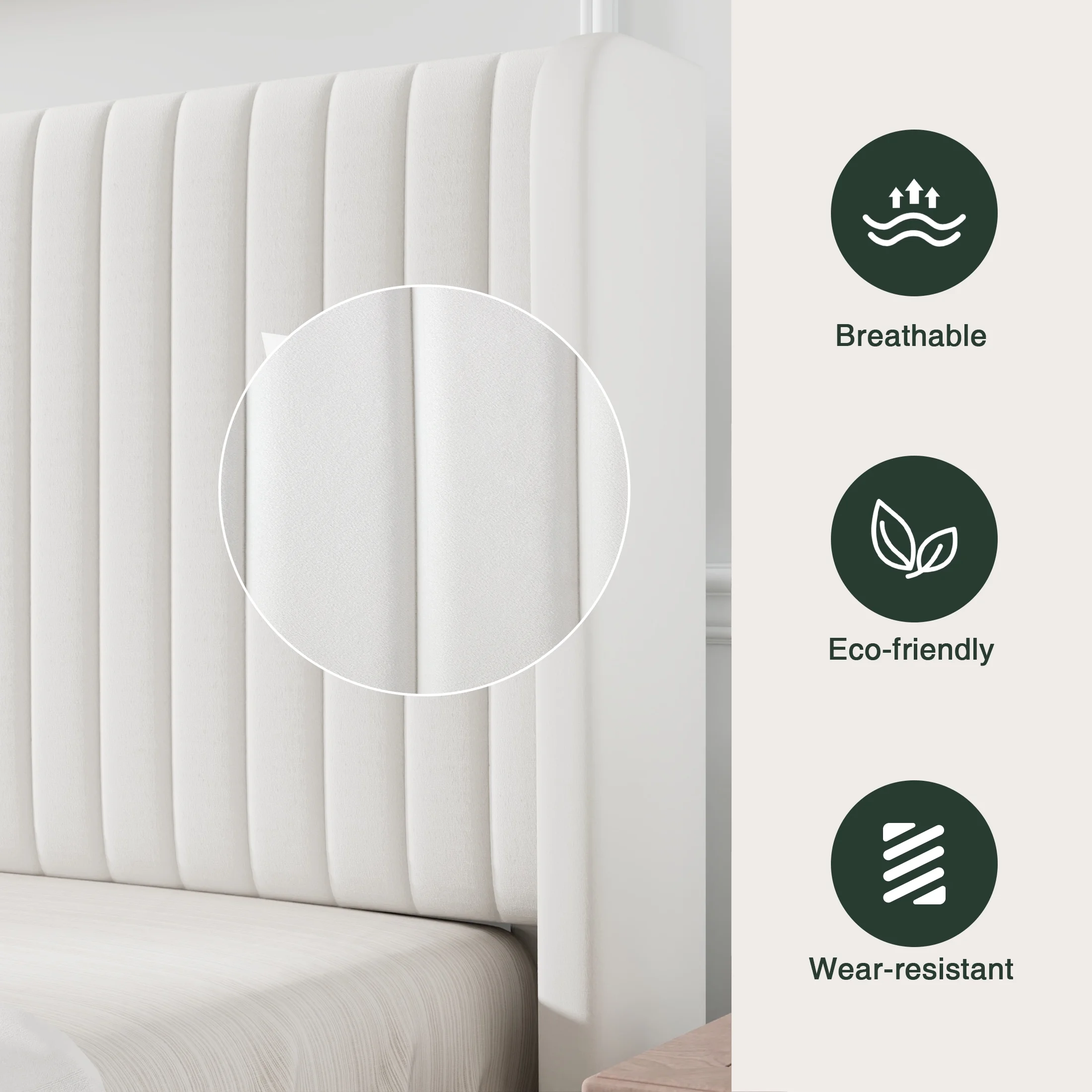 Sha Cerlin King Size Upholstered Platform Bed Frame with Velvet Channel Wingback Headboard, Off White