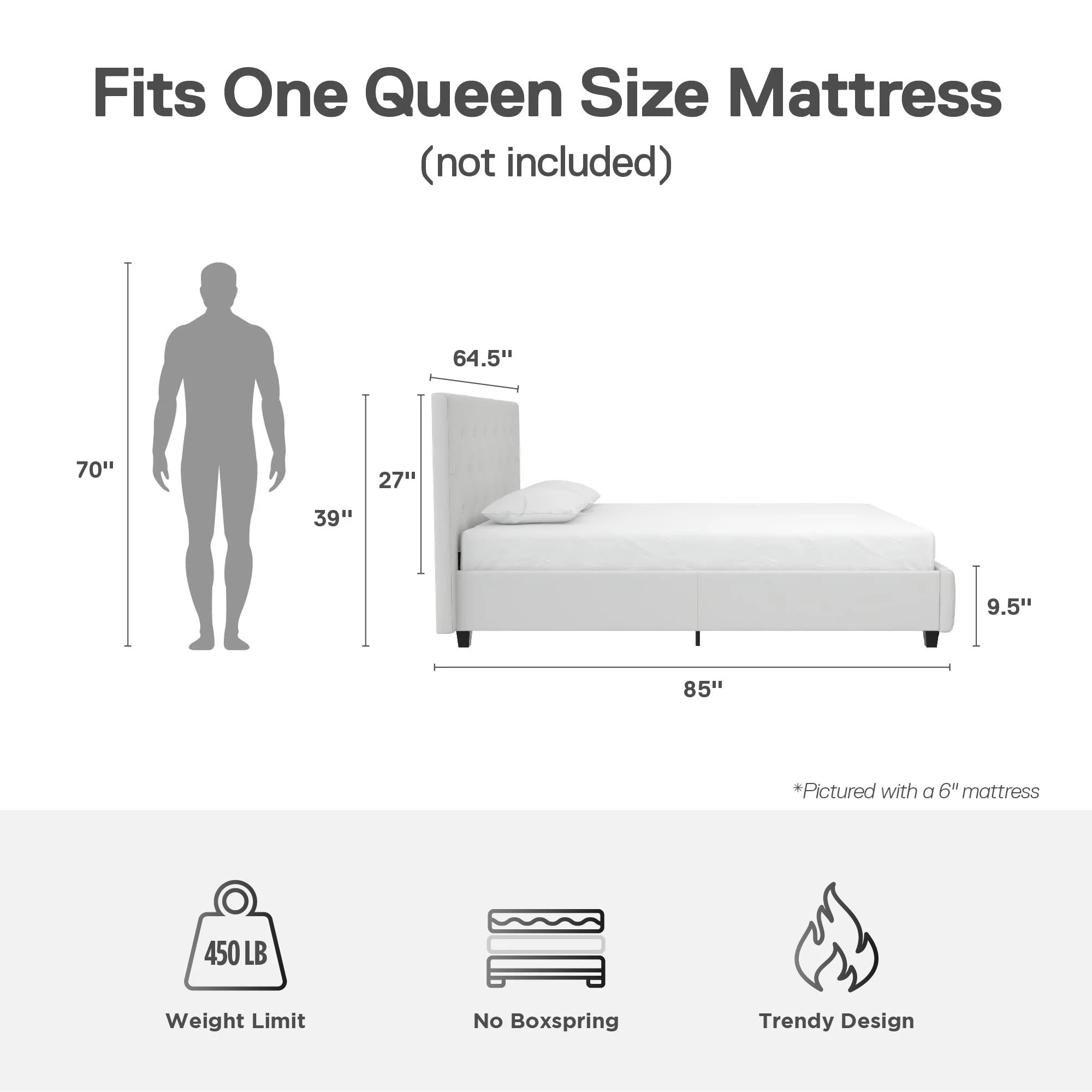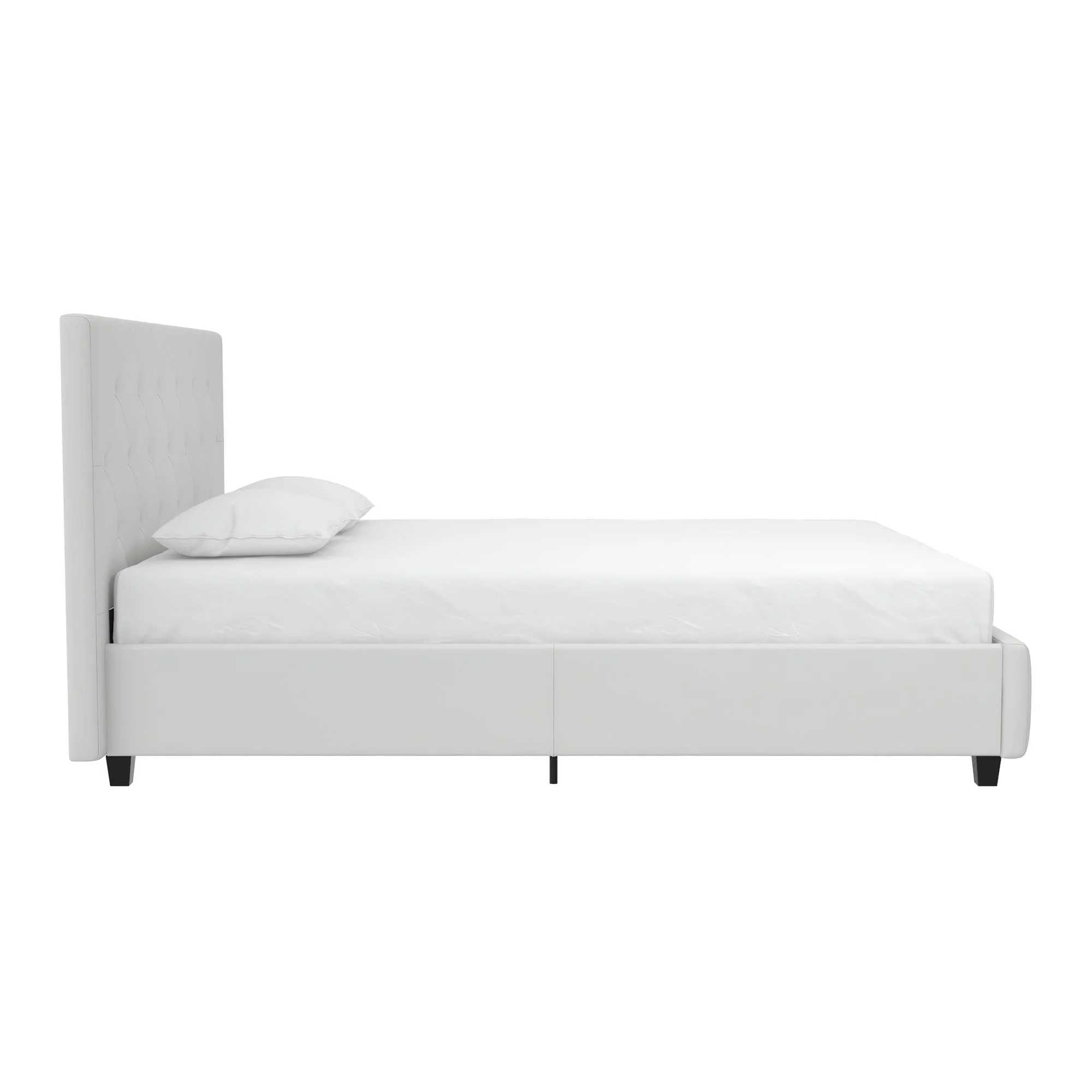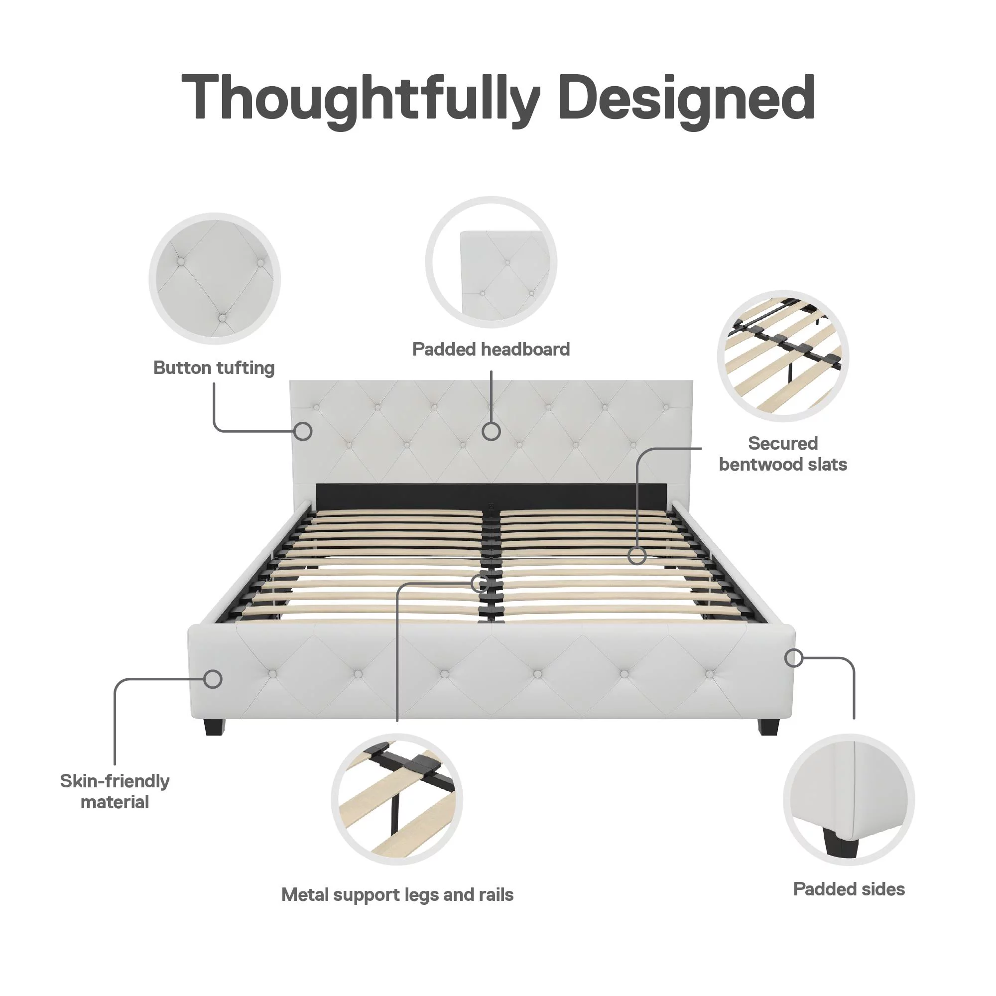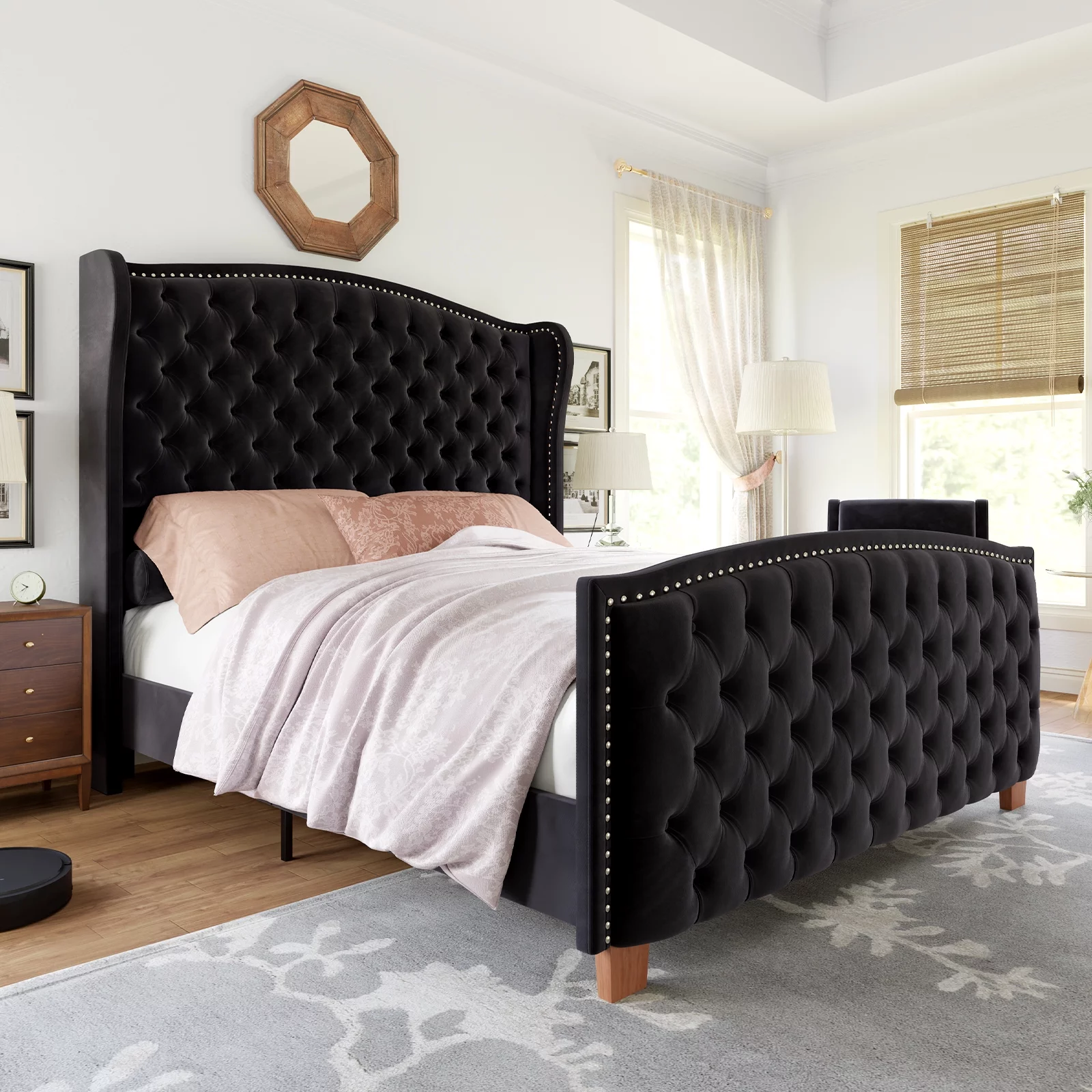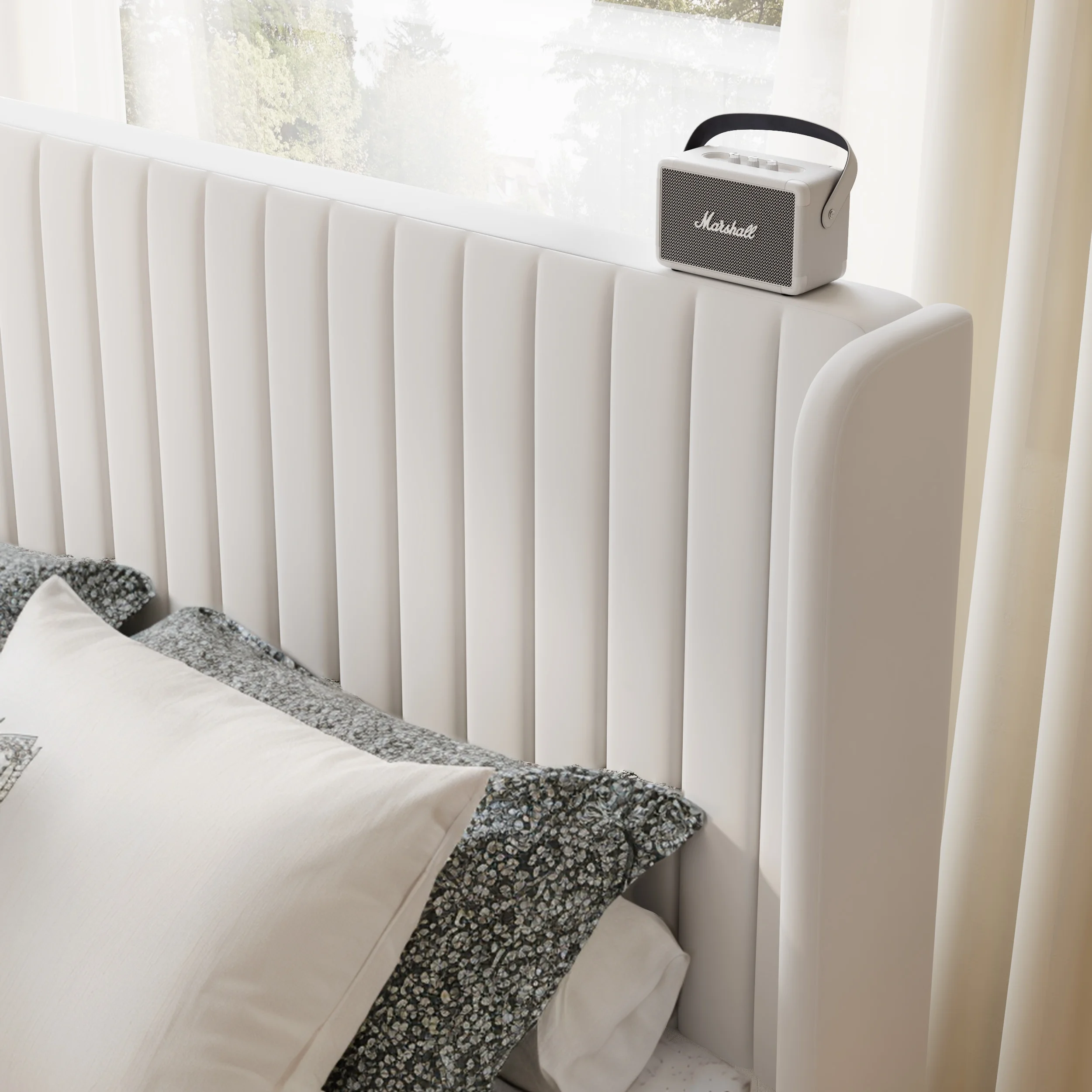 Sha Cerlin King Size Upholstered Platform Bed Frame with Velvet Channel Wingback Headboard, Off White