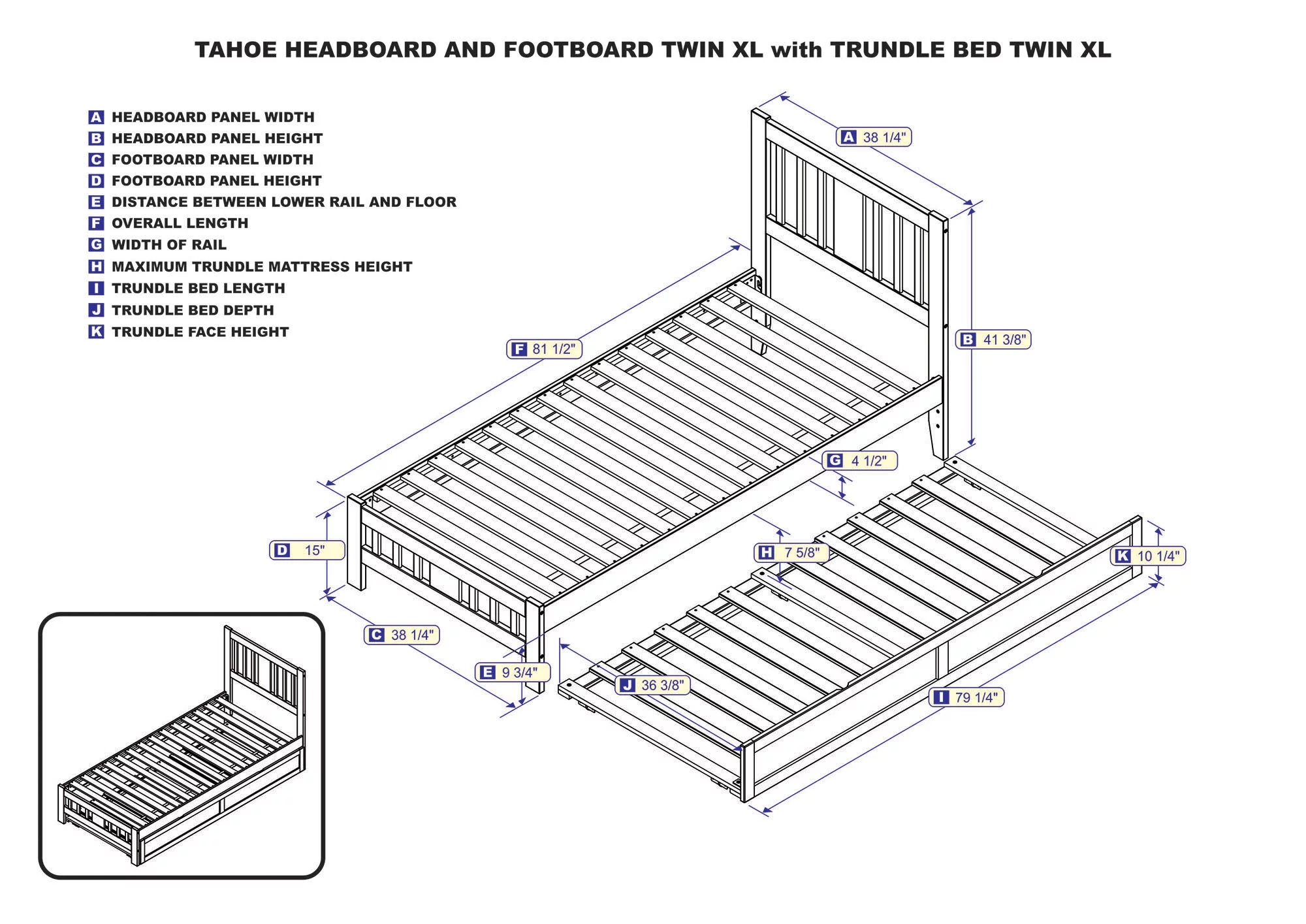 AFI Tahoe Twin XL Wood Platform Bed with Headboard Footboard & Twin XL Trundle, Grey