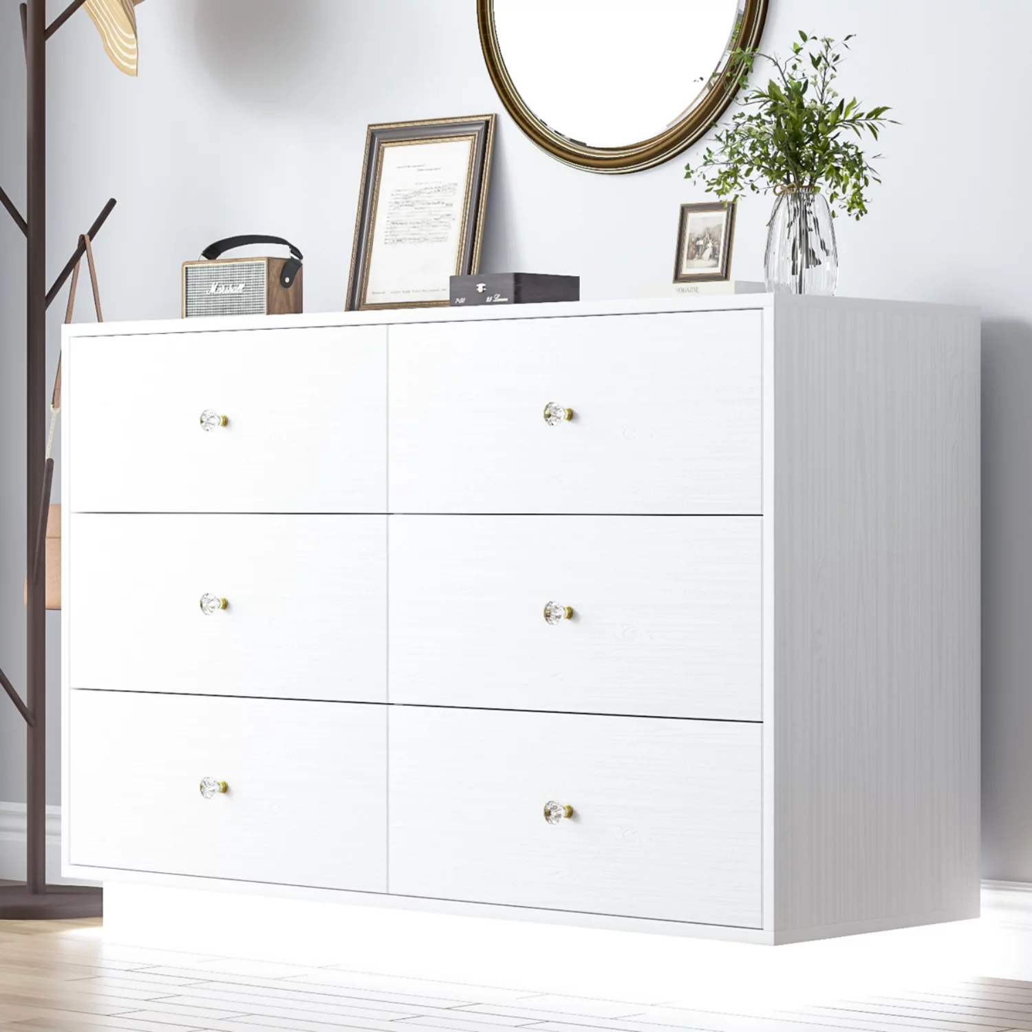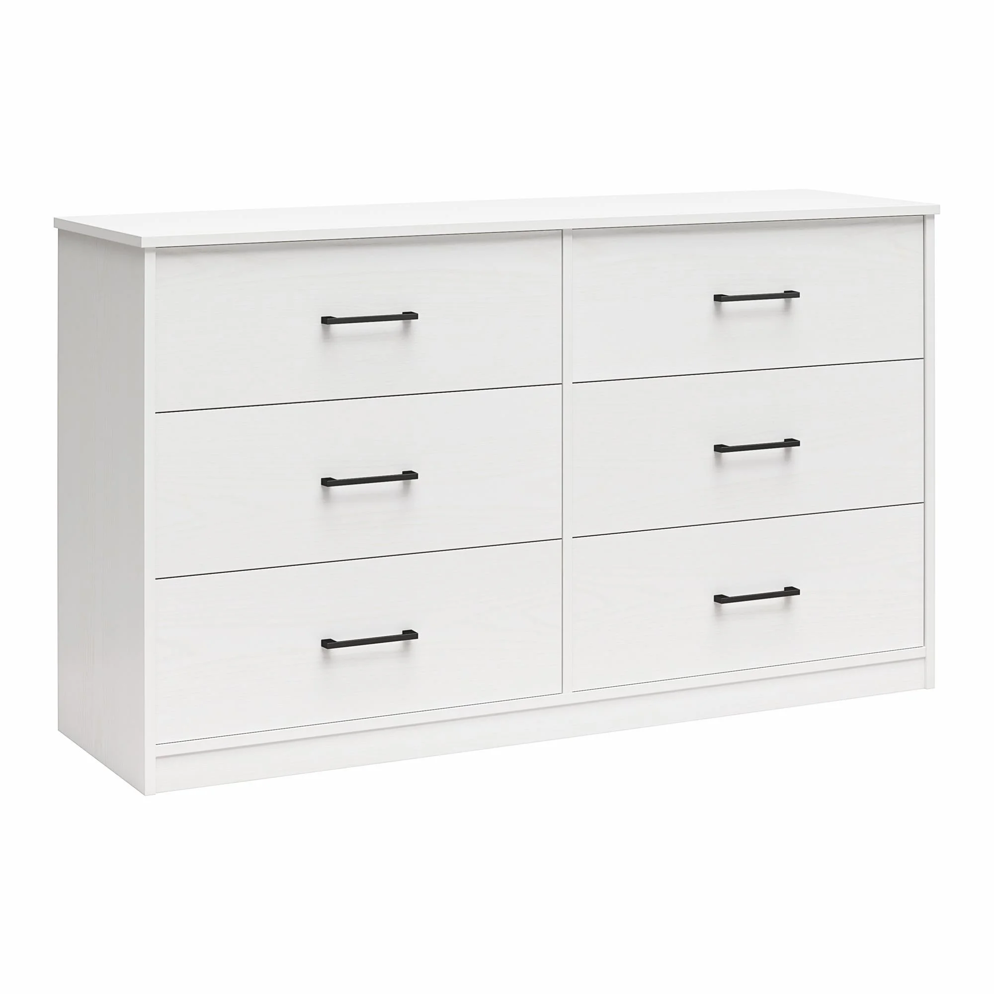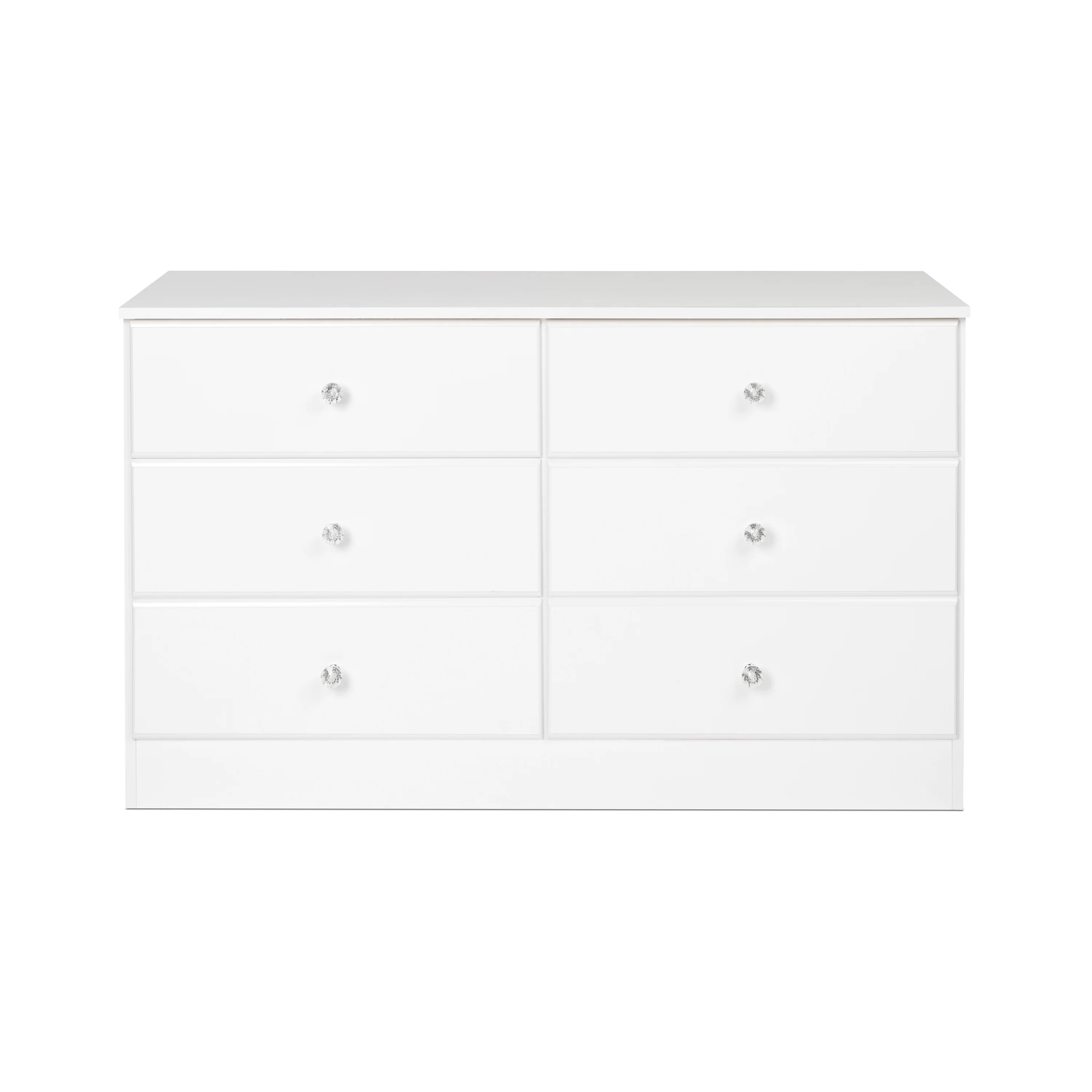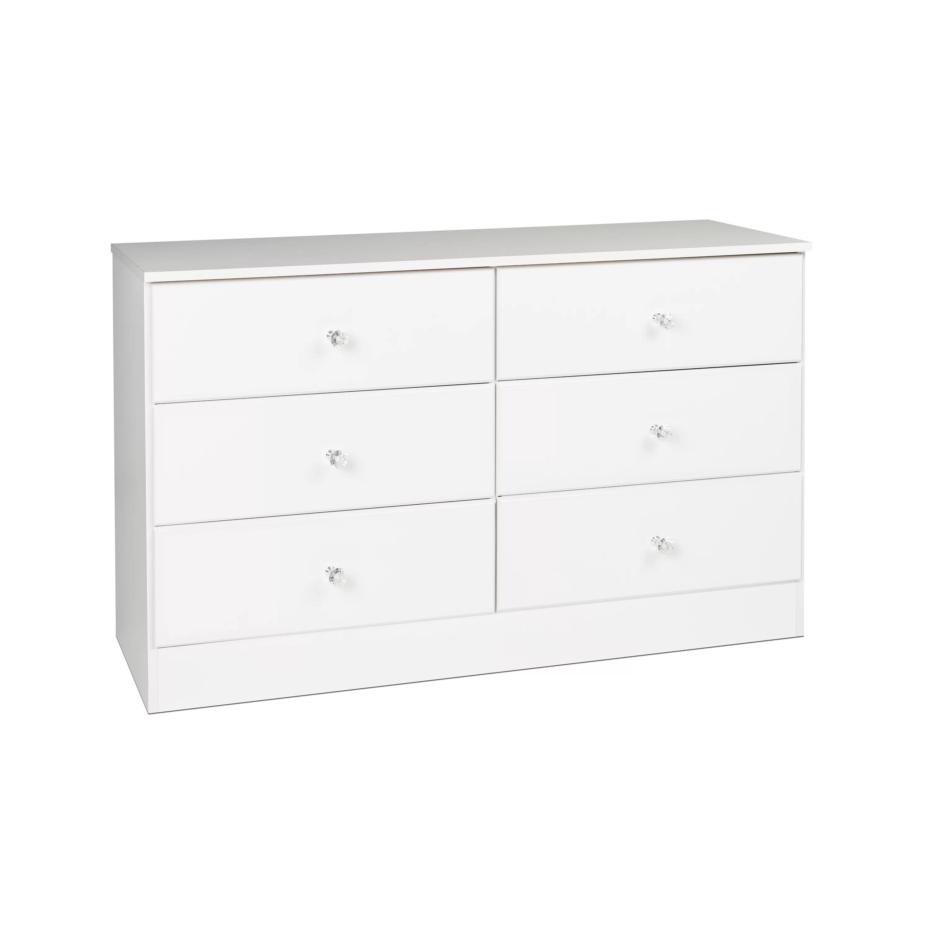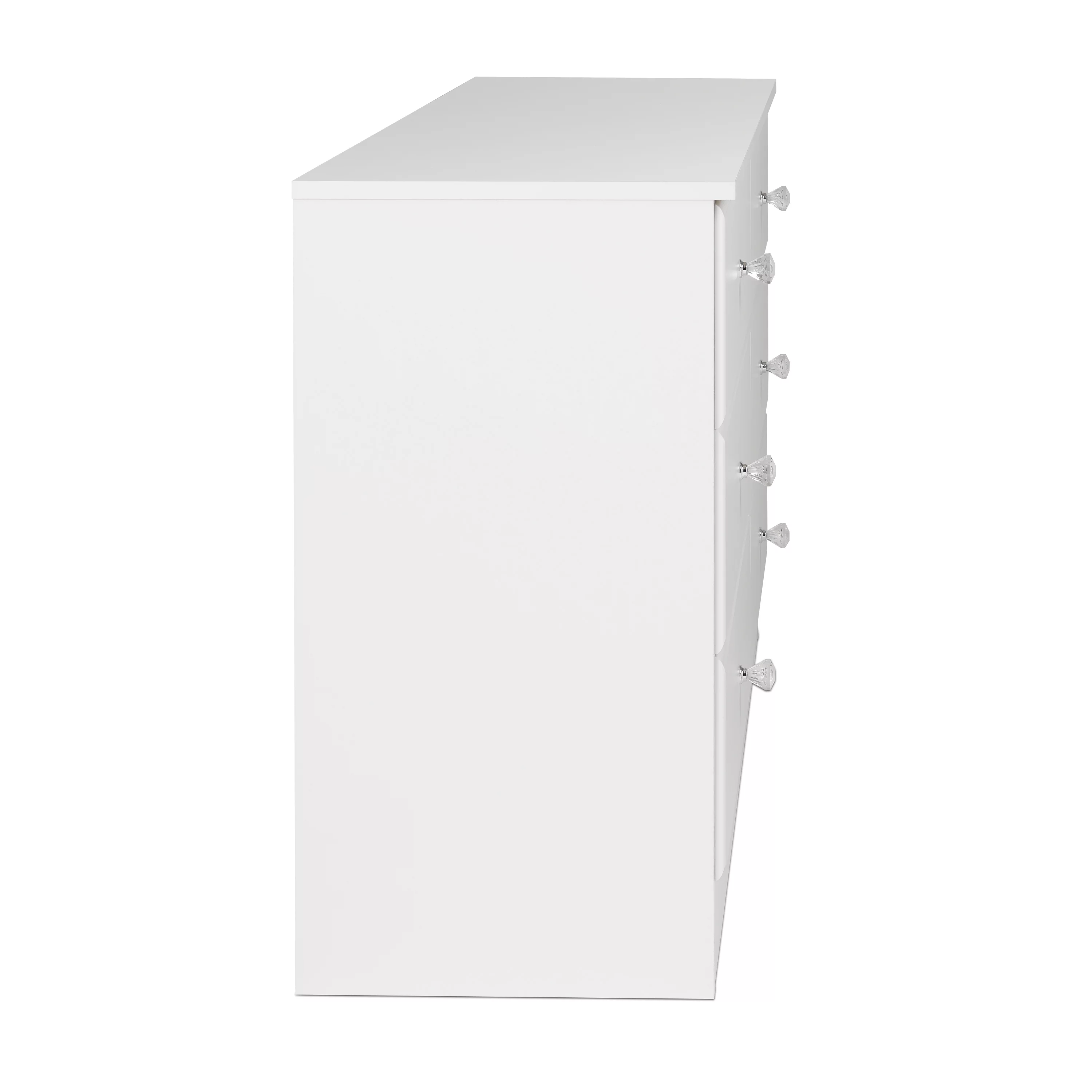 Prepac Astrid 6 Drawer Wooden Dresser with Crystal Knobs, 16" x 47.25" x 28.25", White