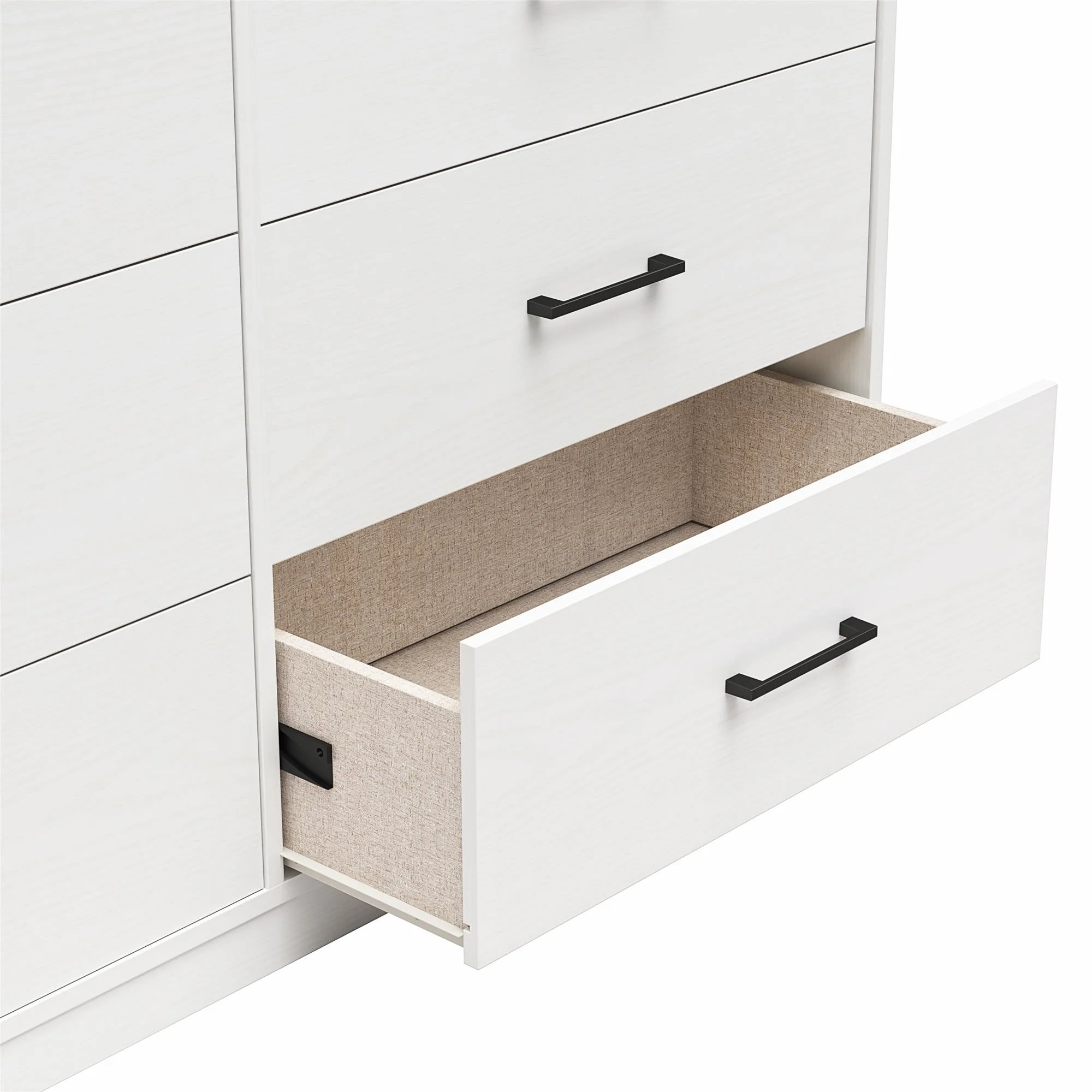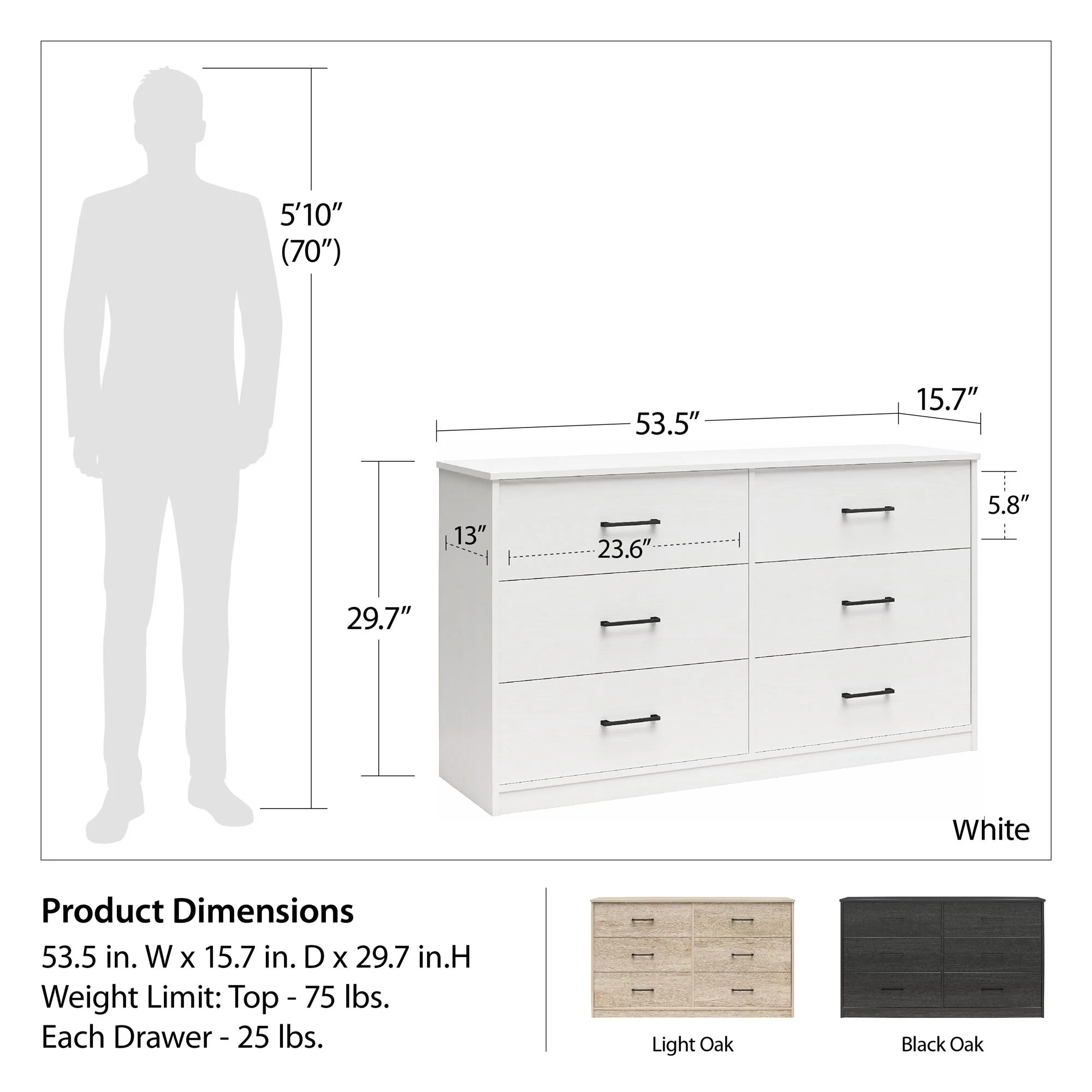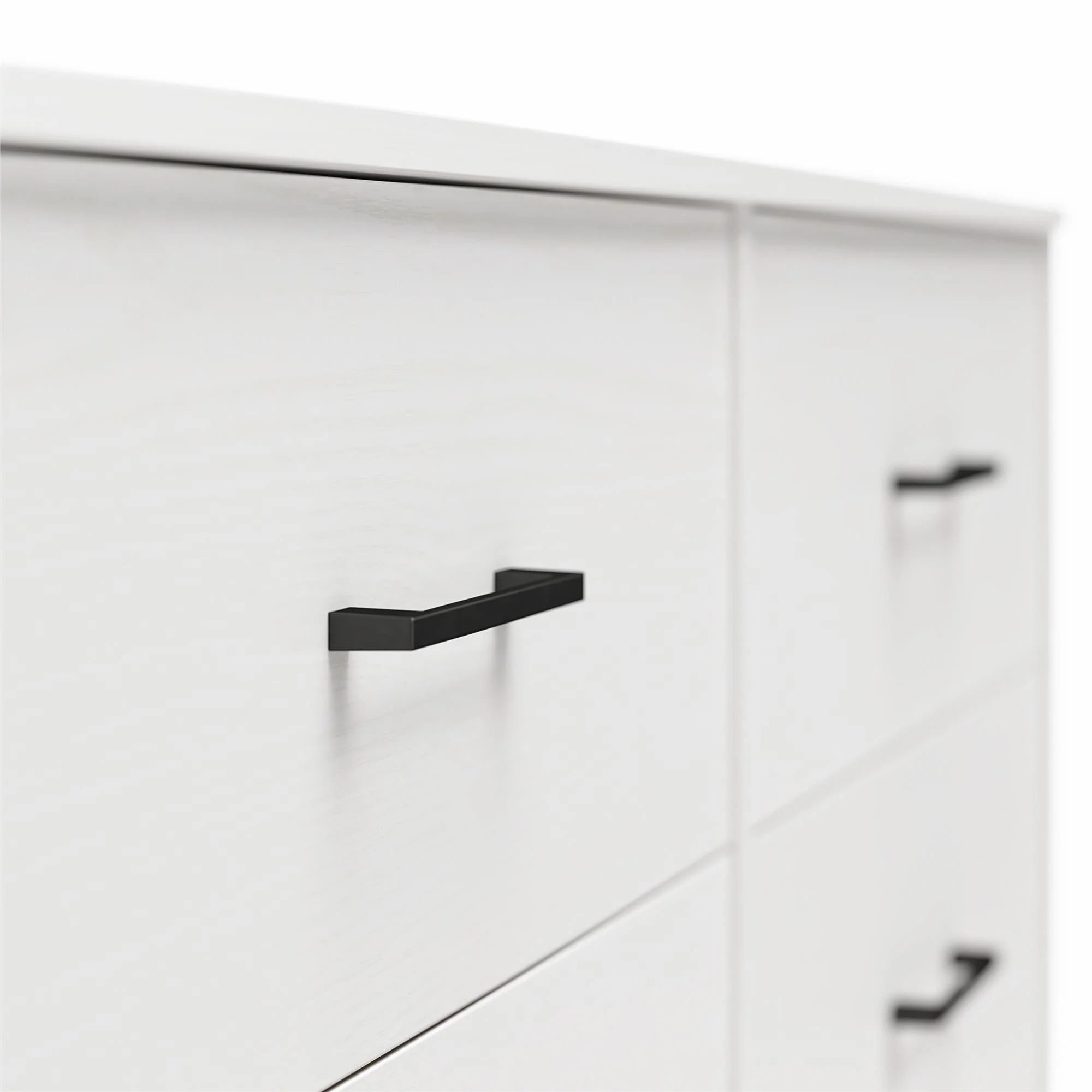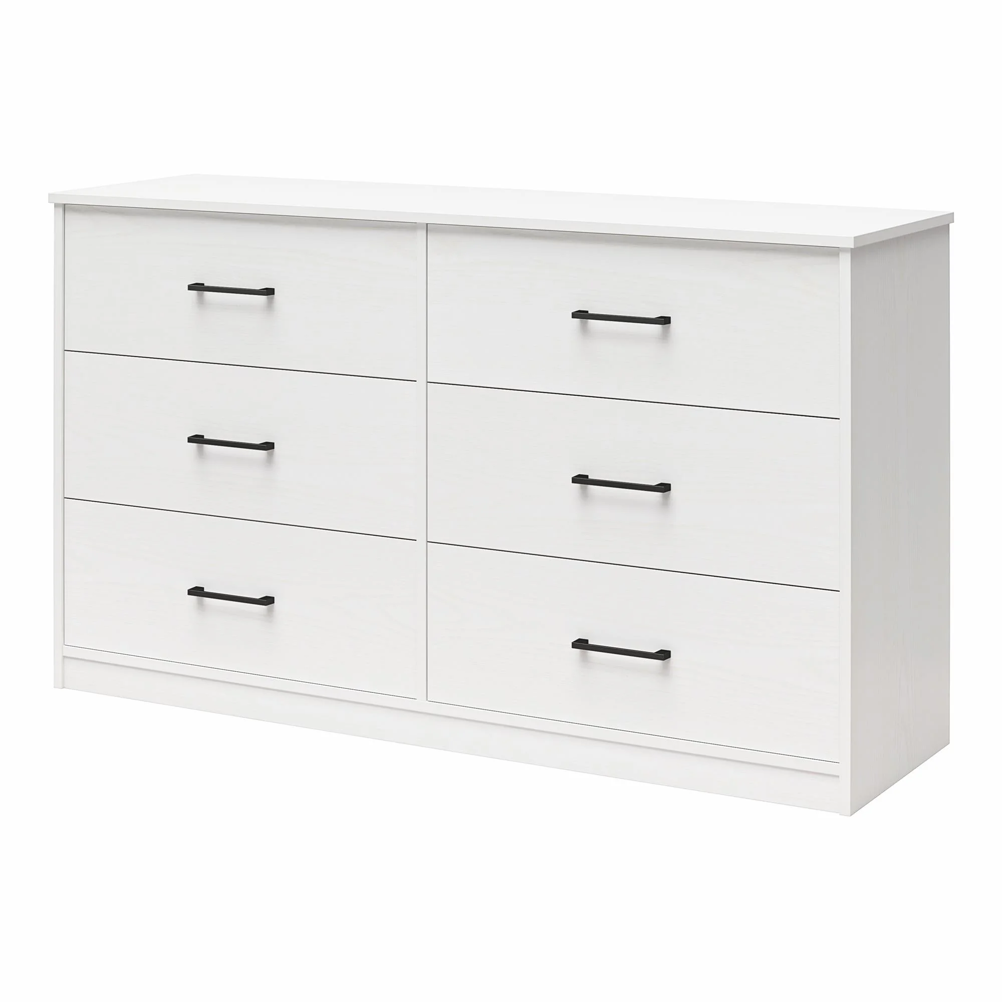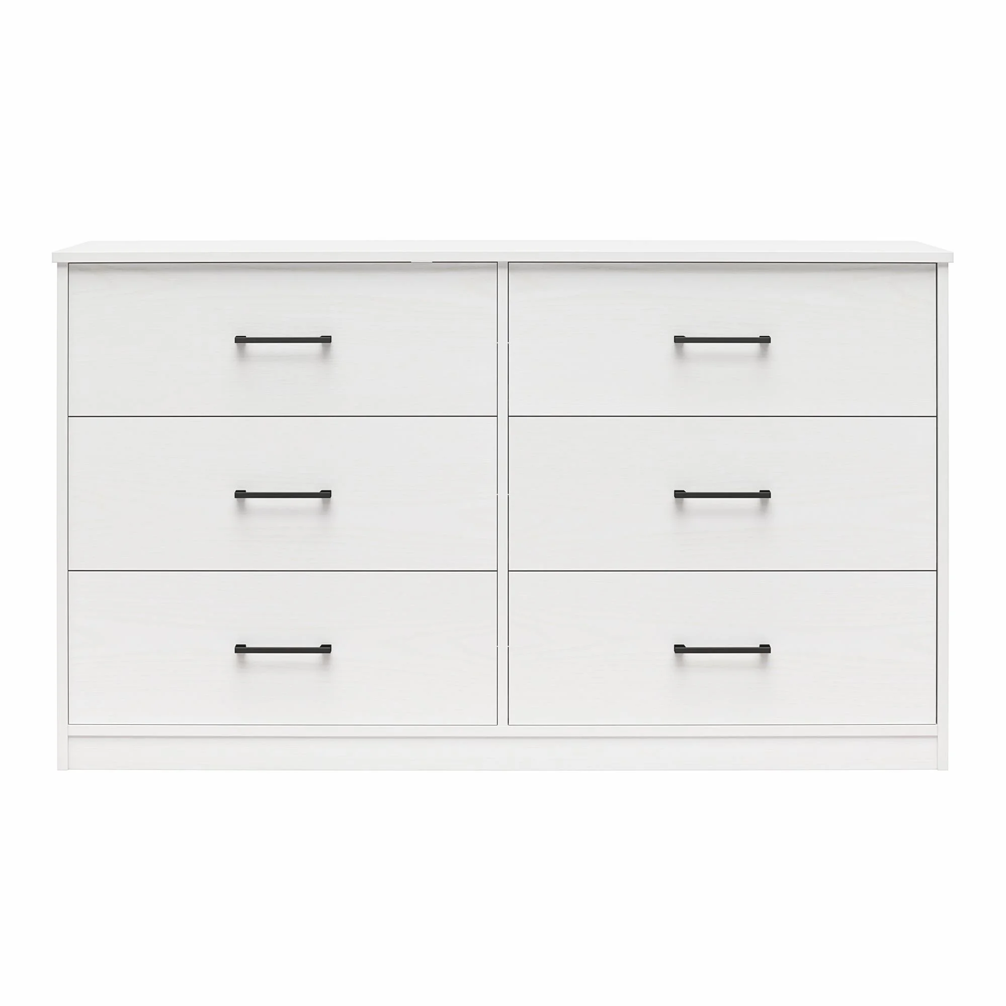 Prepac Astrid 6 Drawer Wooden Dresser with Crystal Knobs, 16" x 47.25" x 28.25", White