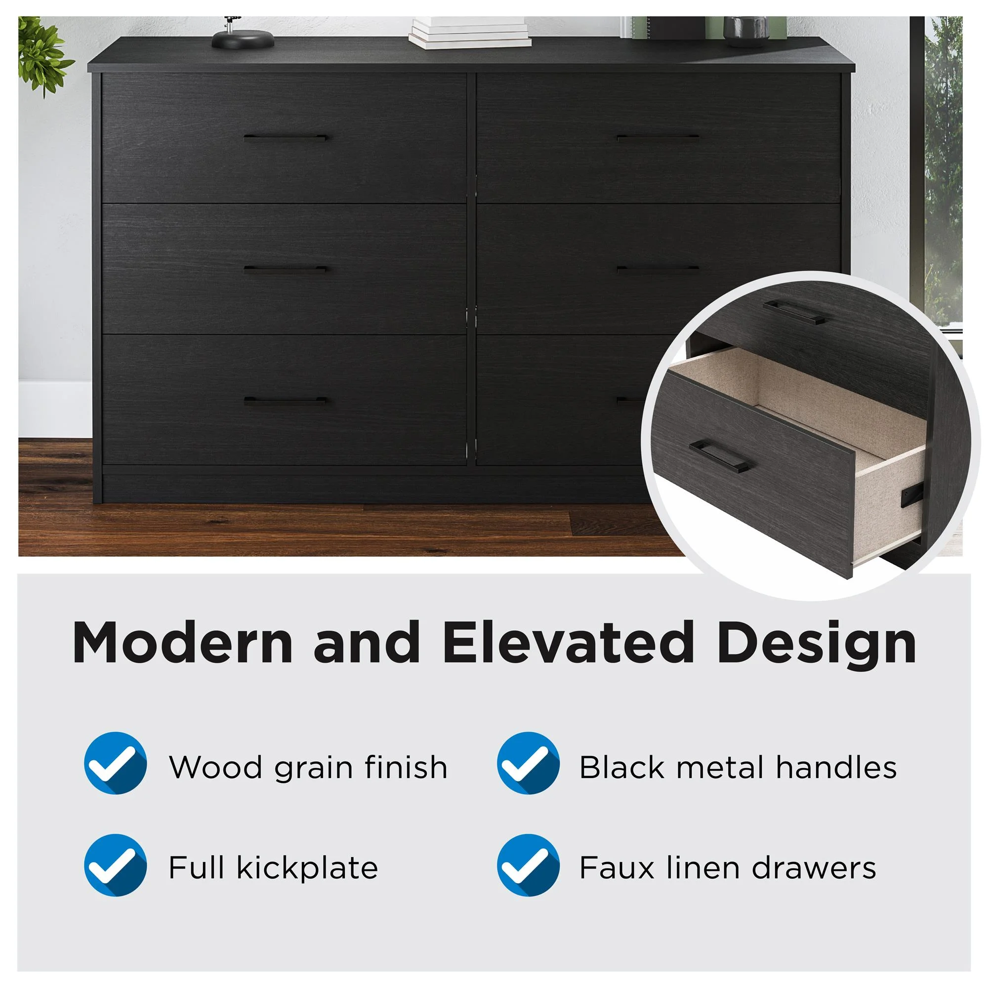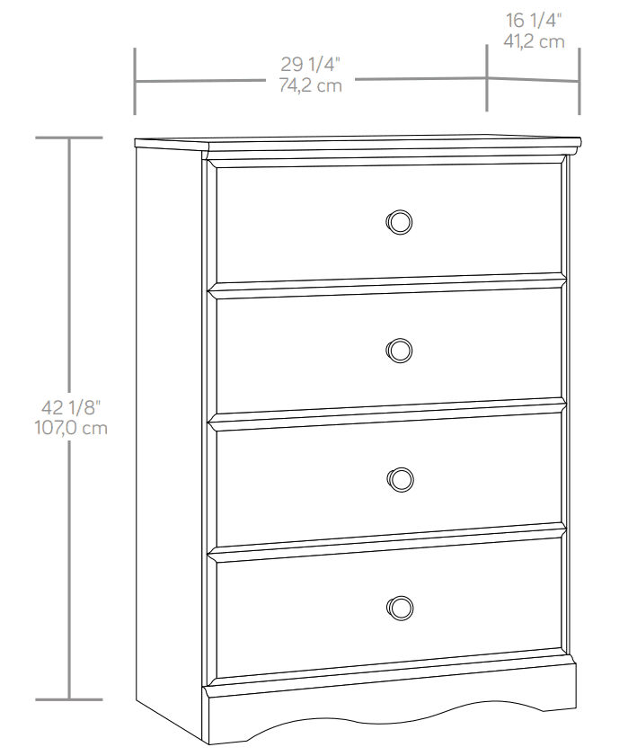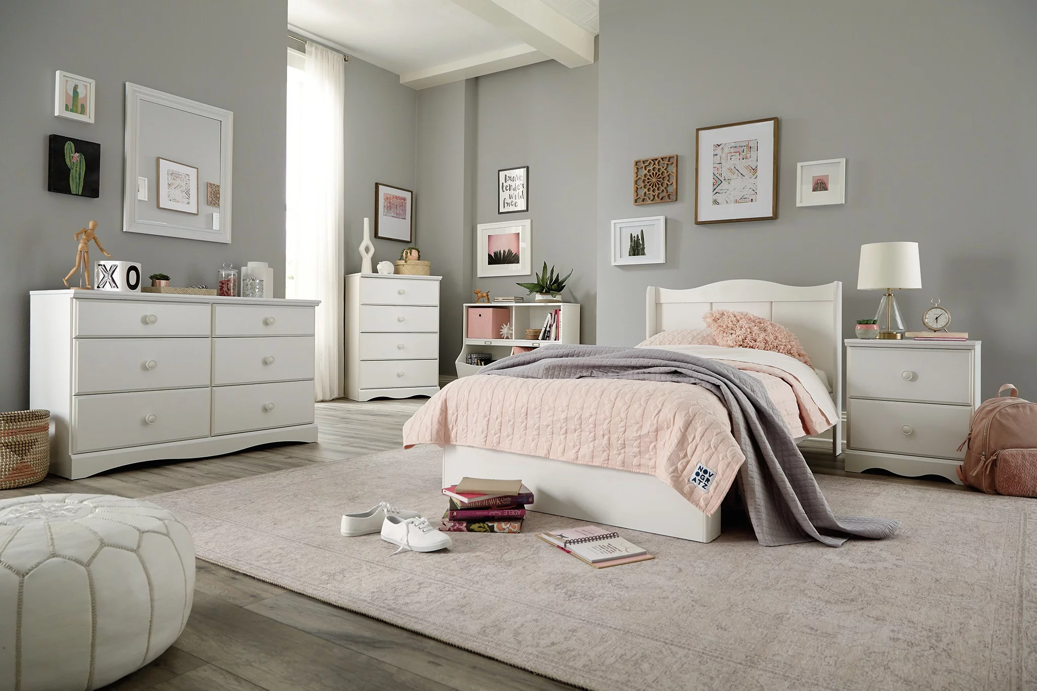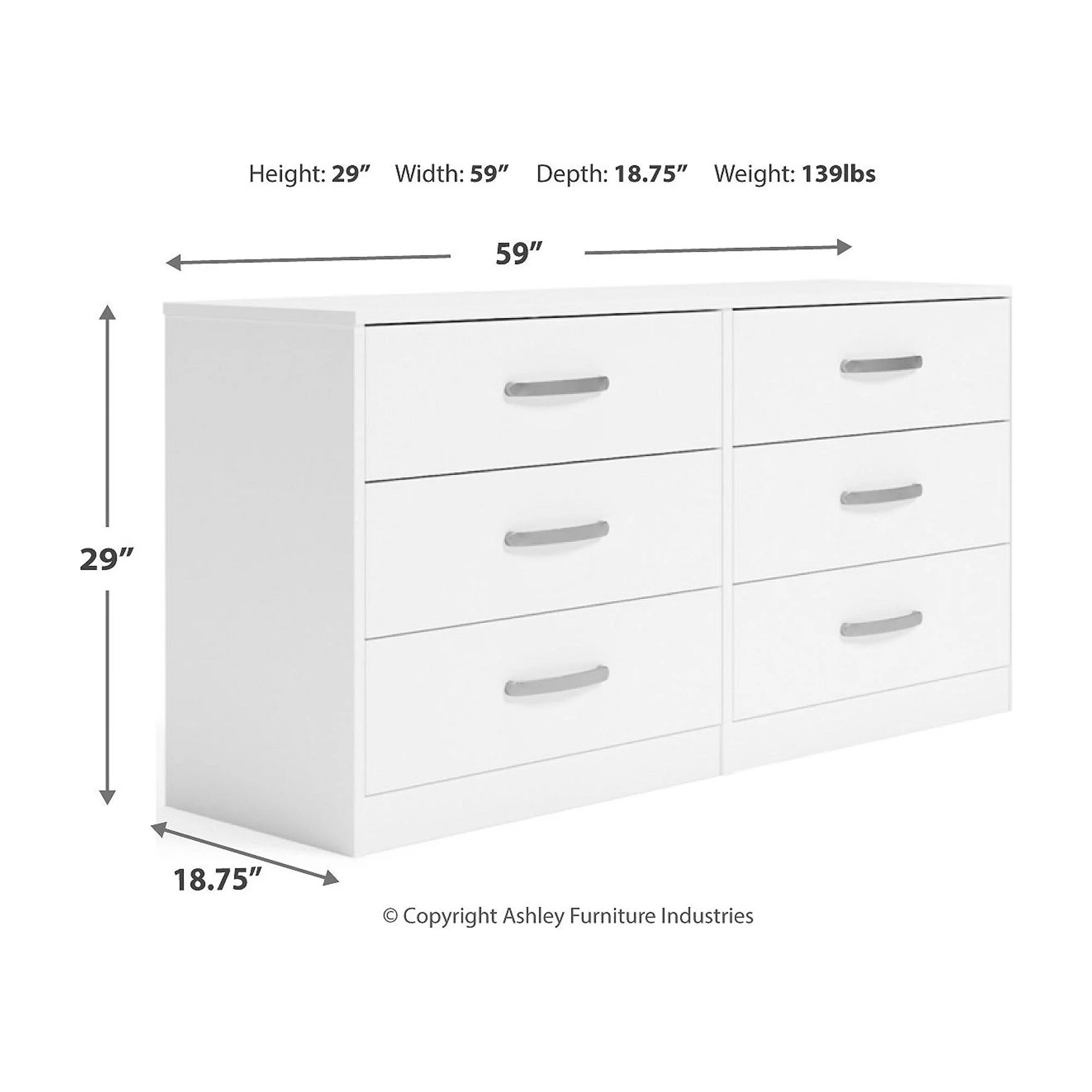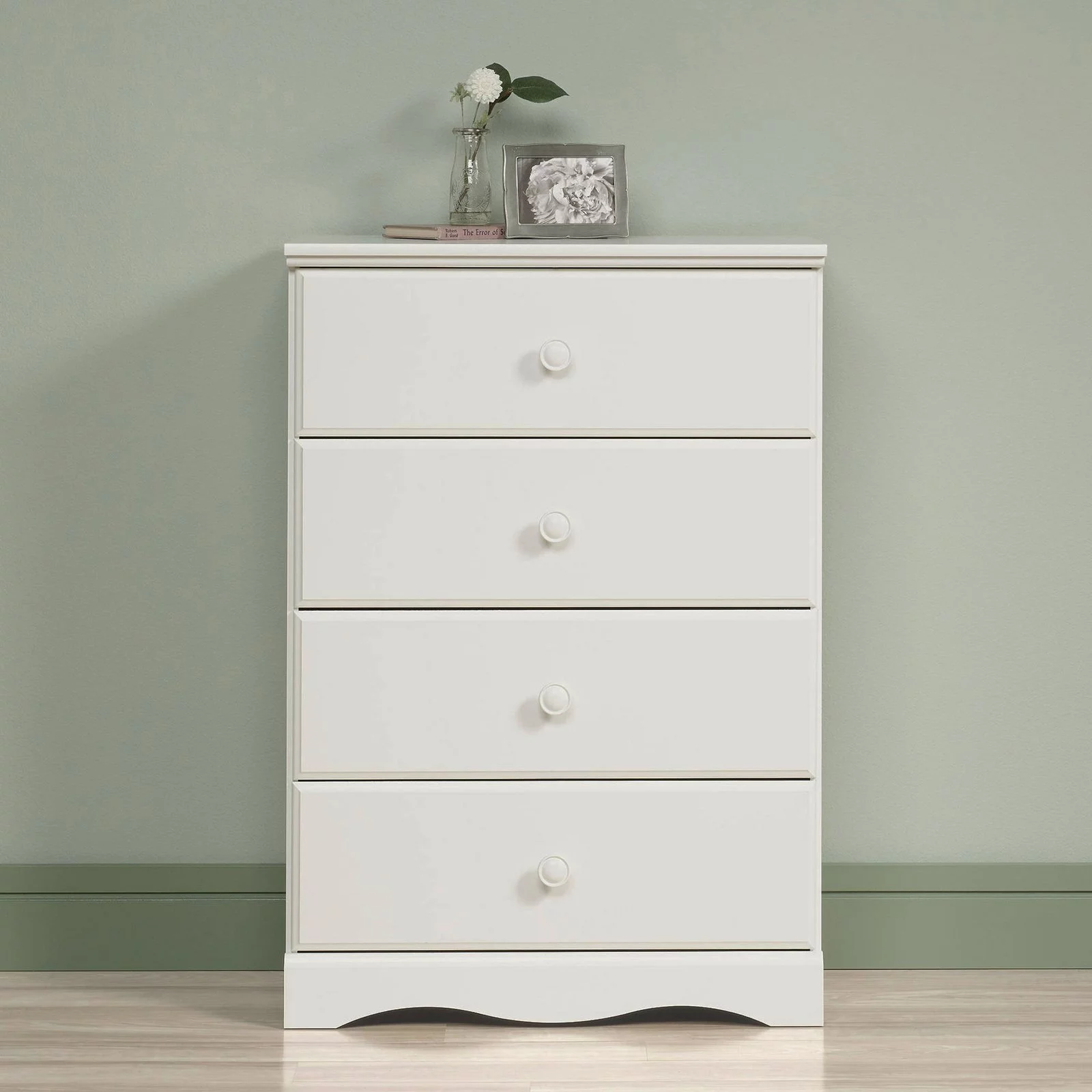 Prepac Astrid 6 Drawer Wooden Dresser with Crystal Knobs, 16" x 47.25" x 28.25", White