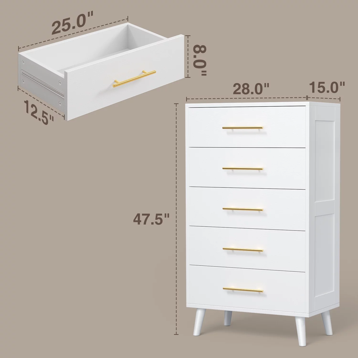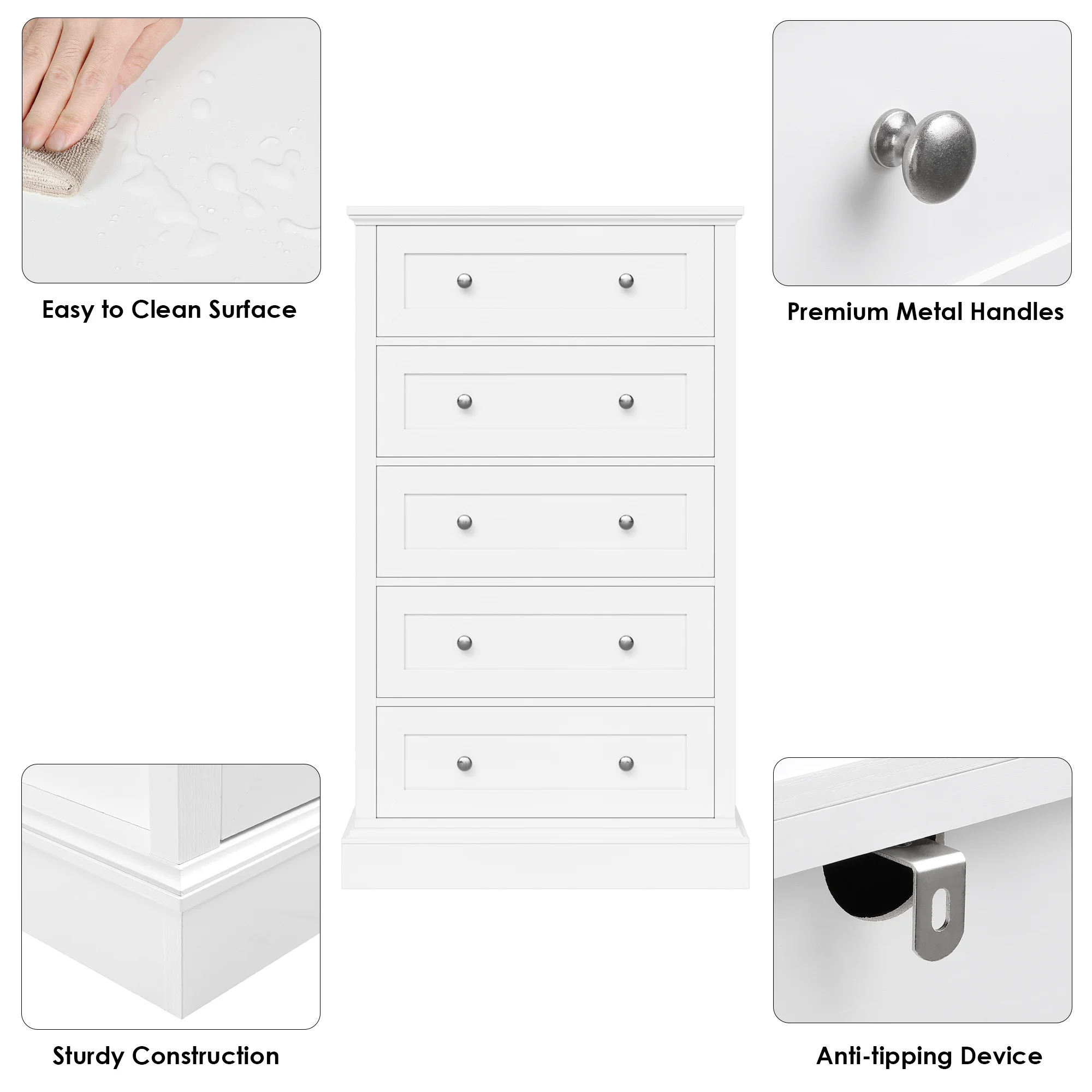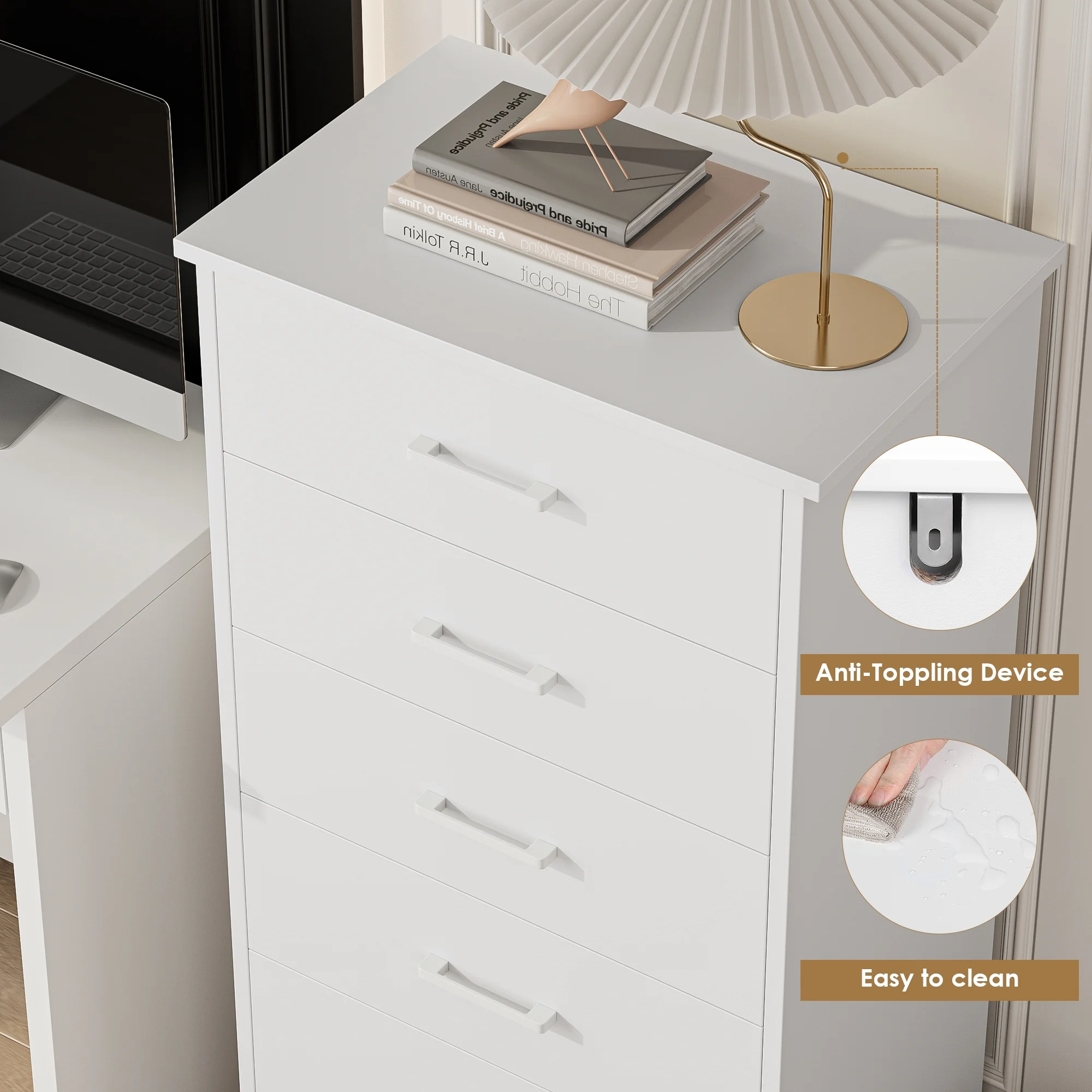 Homfa White Dresser with 5 Drawers, Vertical Storage Cabinet Chest of Drawers for Bedroom Living Room